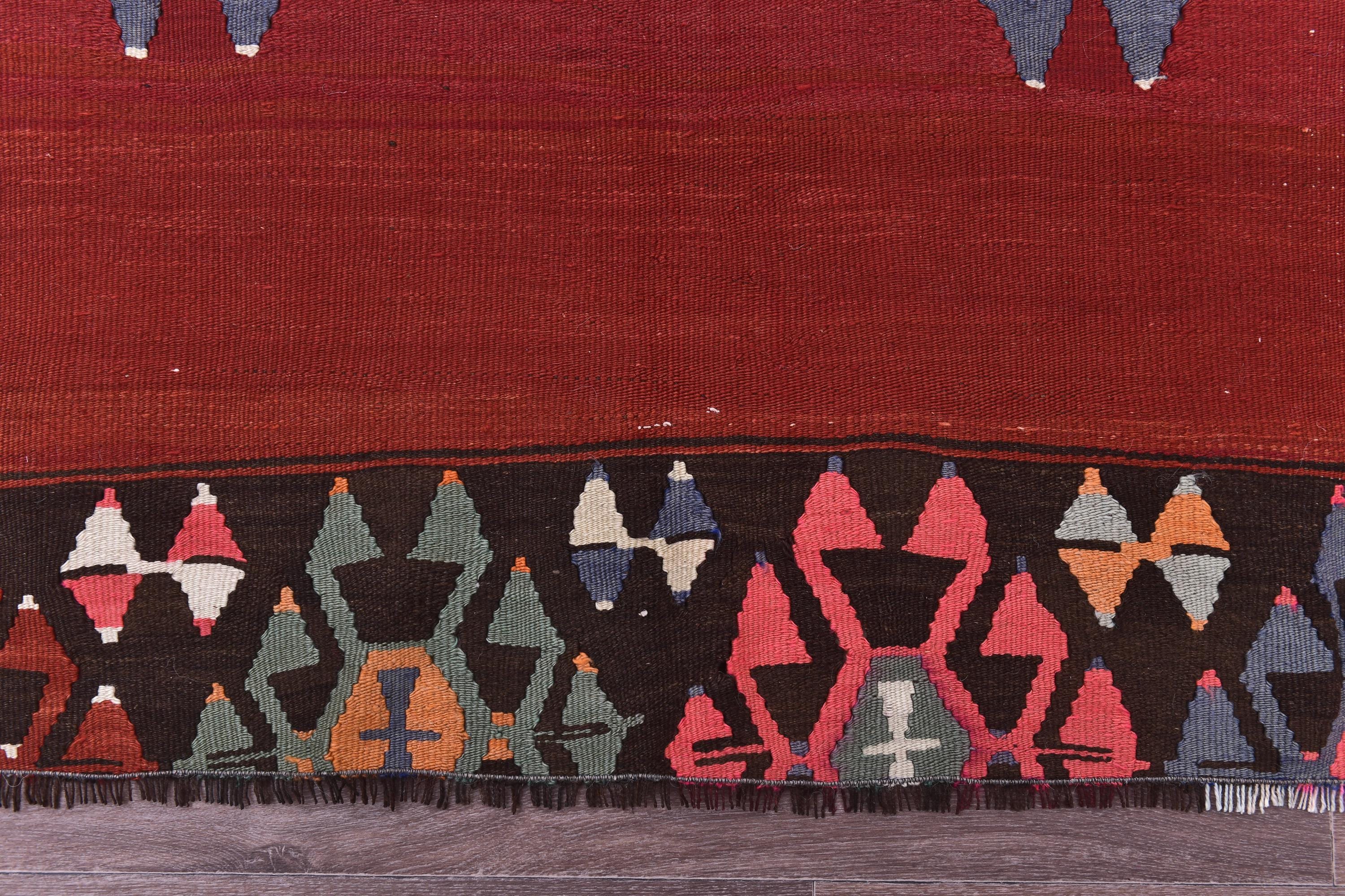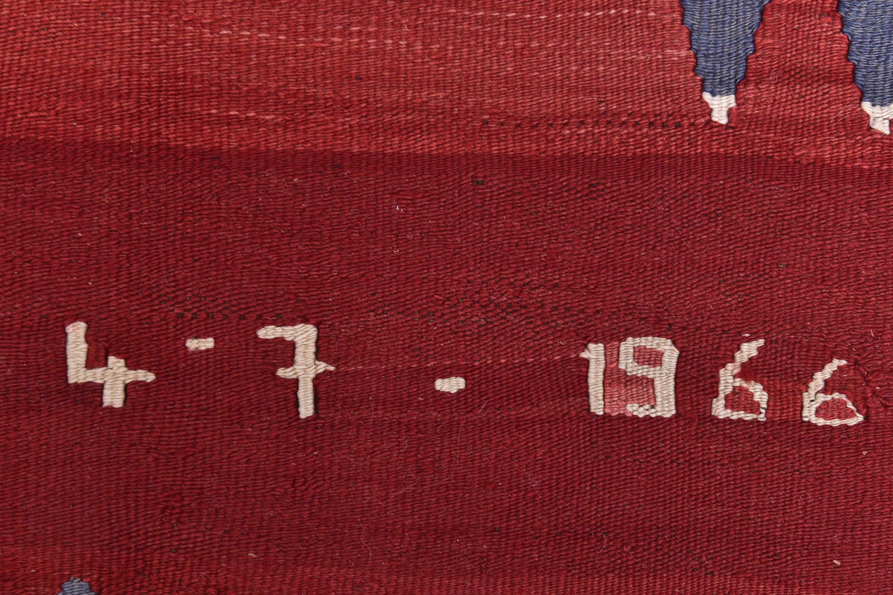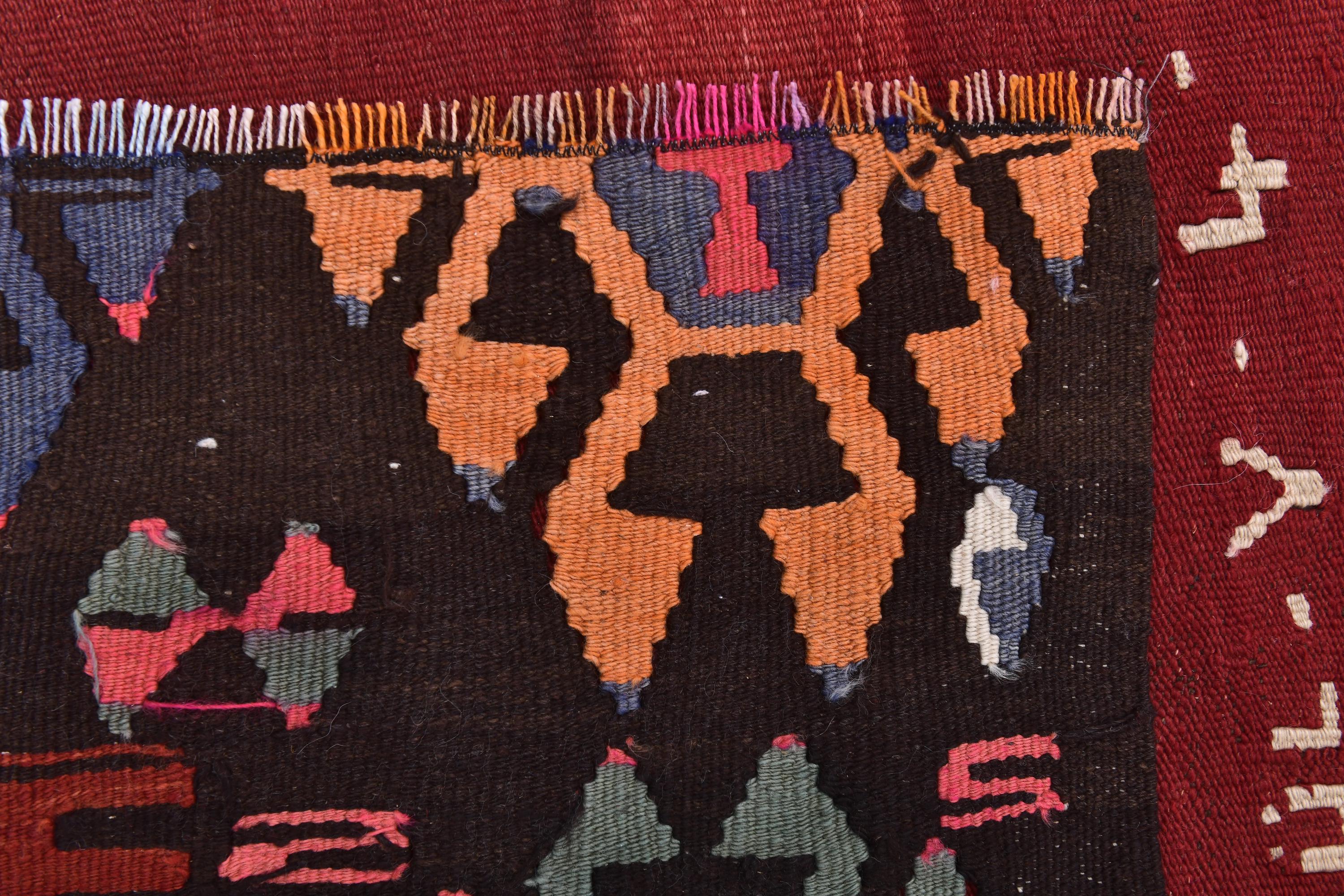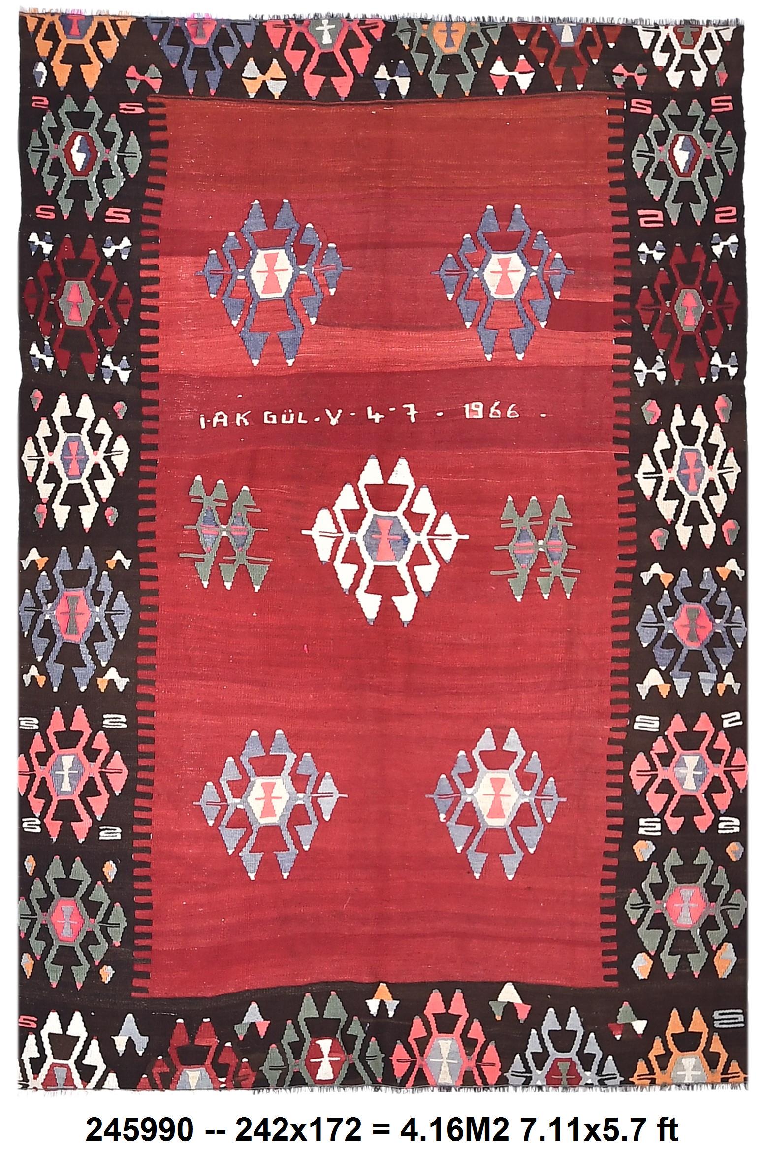 5x8 1966 Antique Turkish Kilim Rug, 5x8 Handmade Turkish Rug, Signed Kilim Rug, 5x8 Wool Jute Kilim Rug, Red Black Color, Living Room Rug