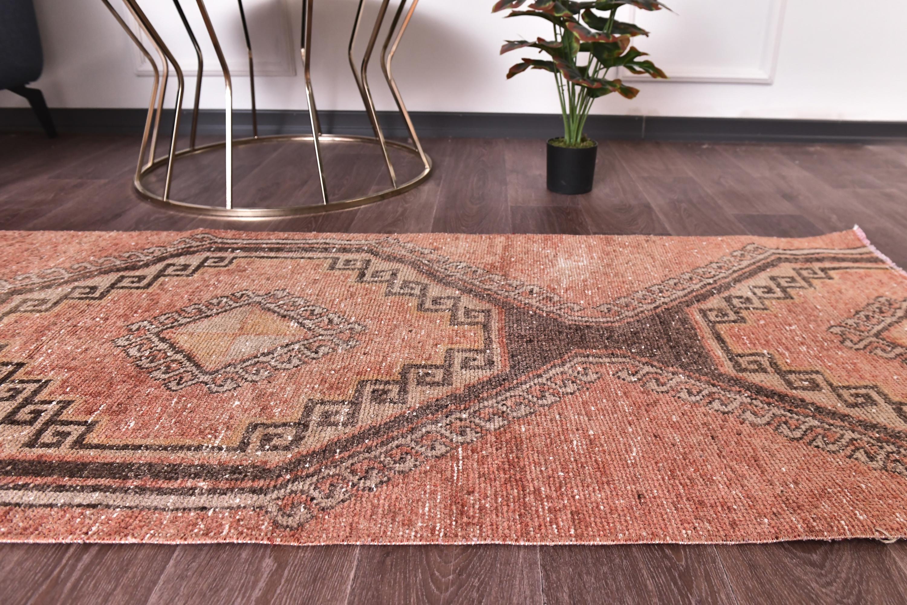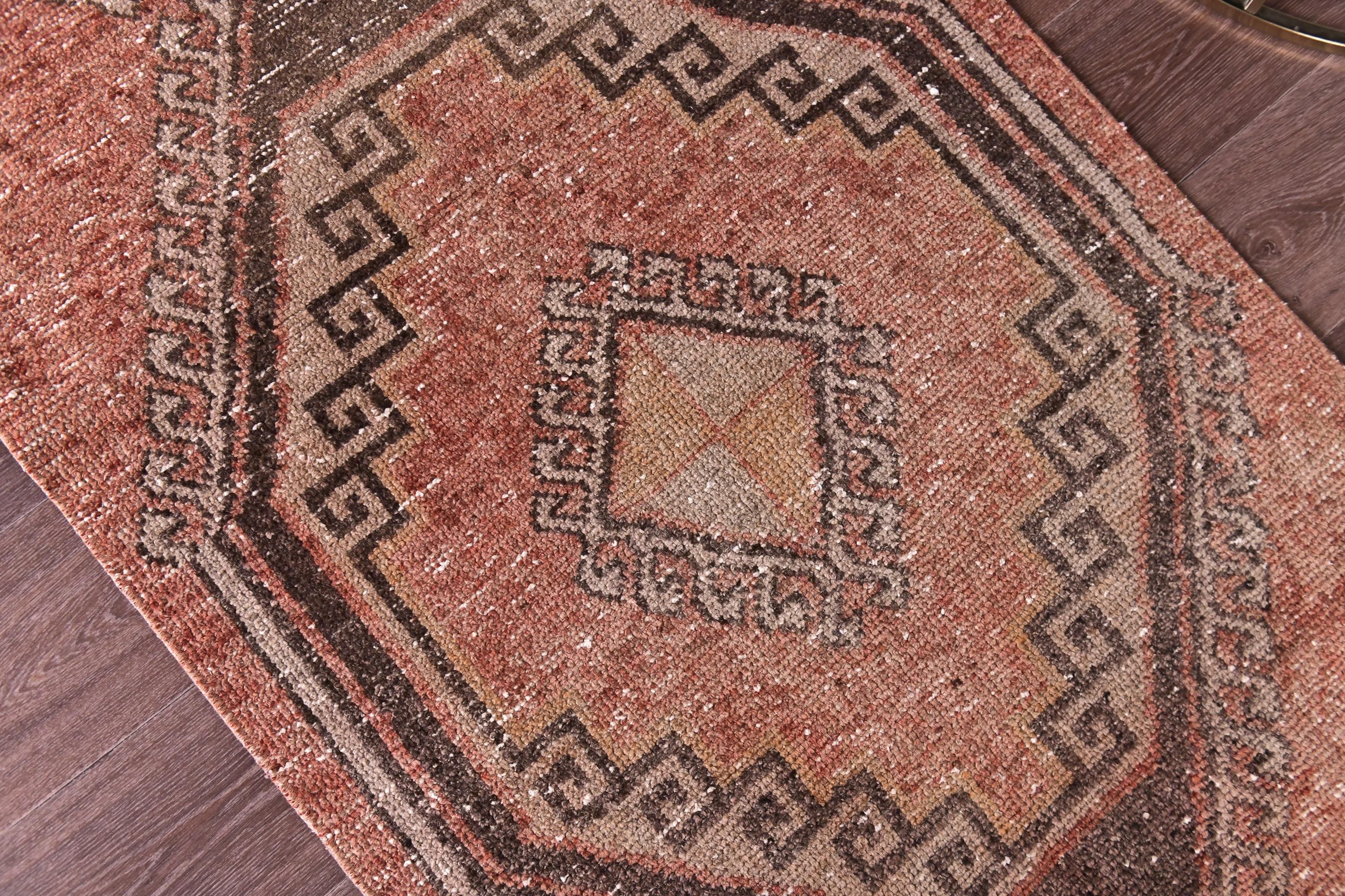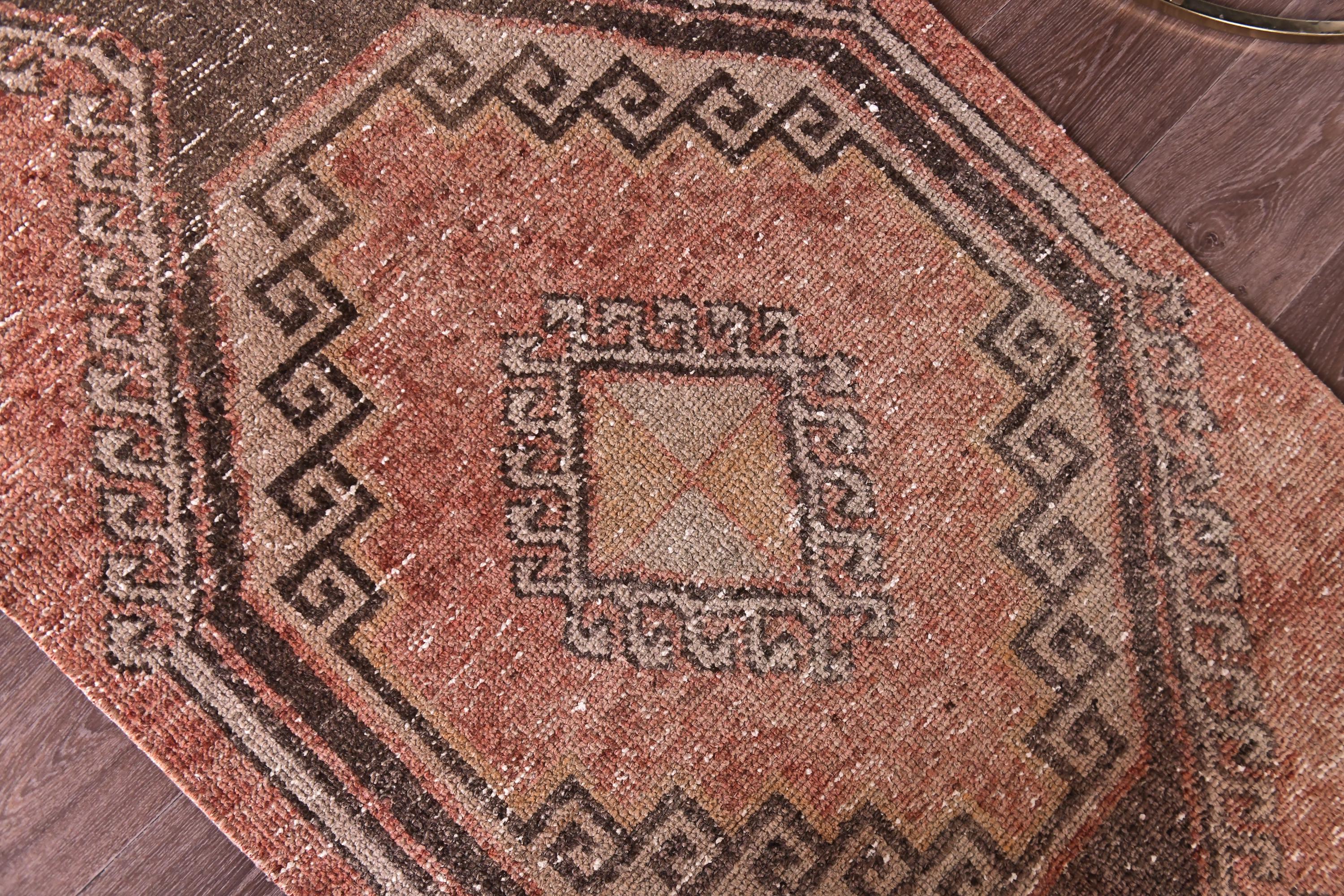 3x8 Runner Rug, 3x8 TURKISH VINTAGE RUNNER, 3x8, Handmade Oushak Rug, 3x8 Vintage Runner, Brown & Beige, Turkish Runner 3x8, Oriental Rugs