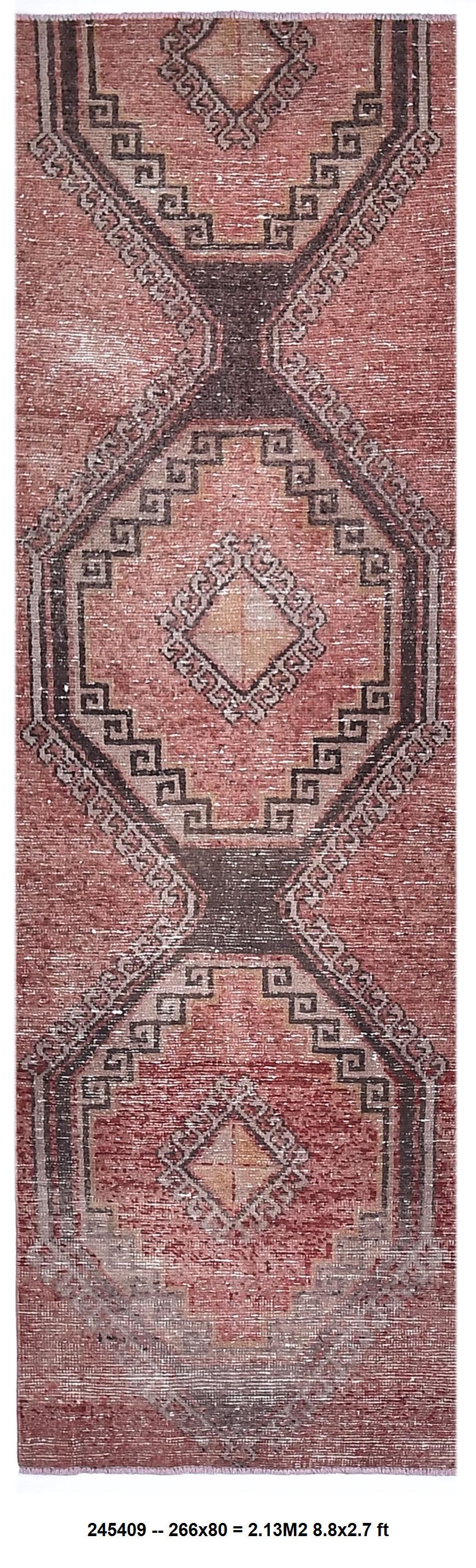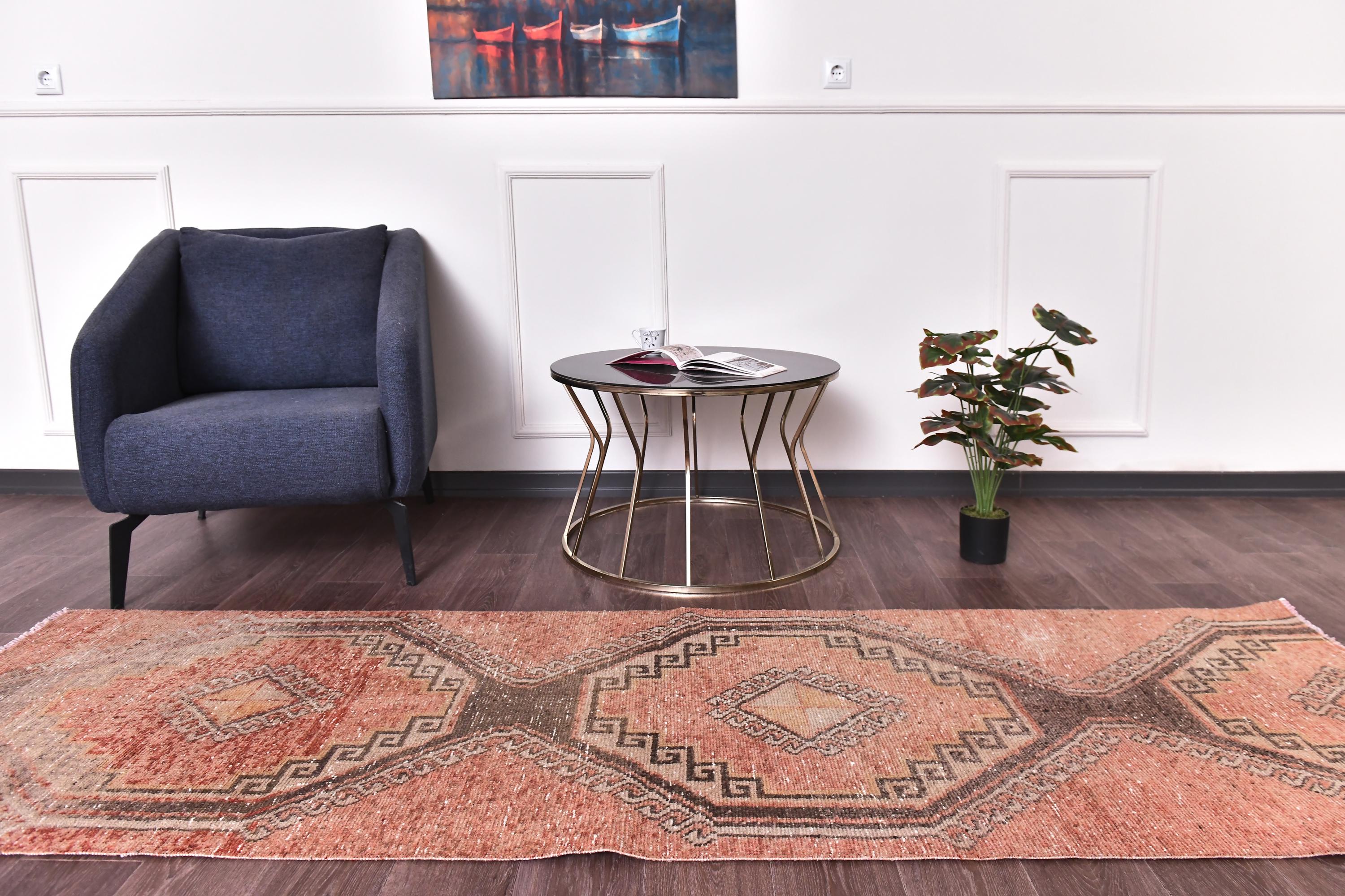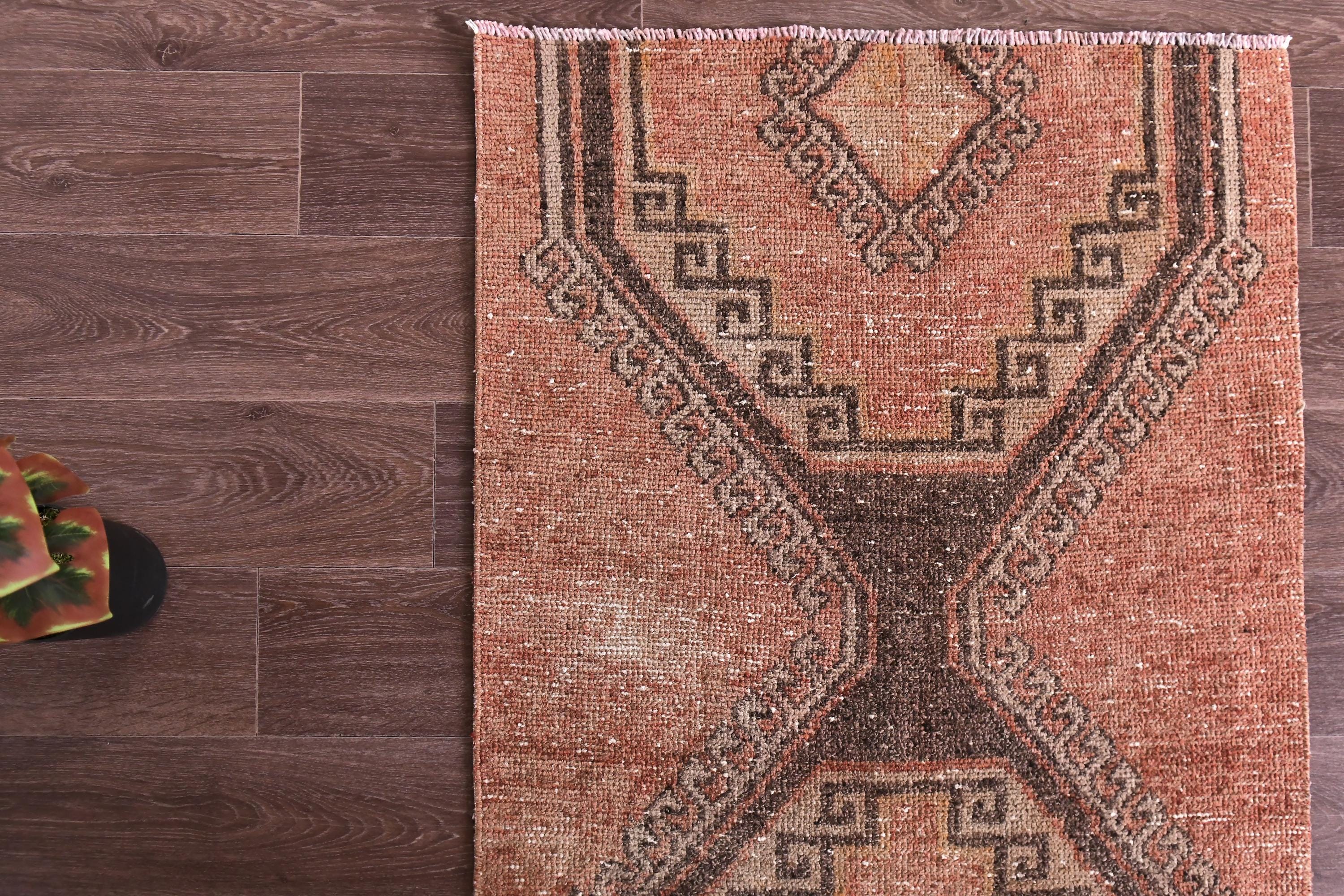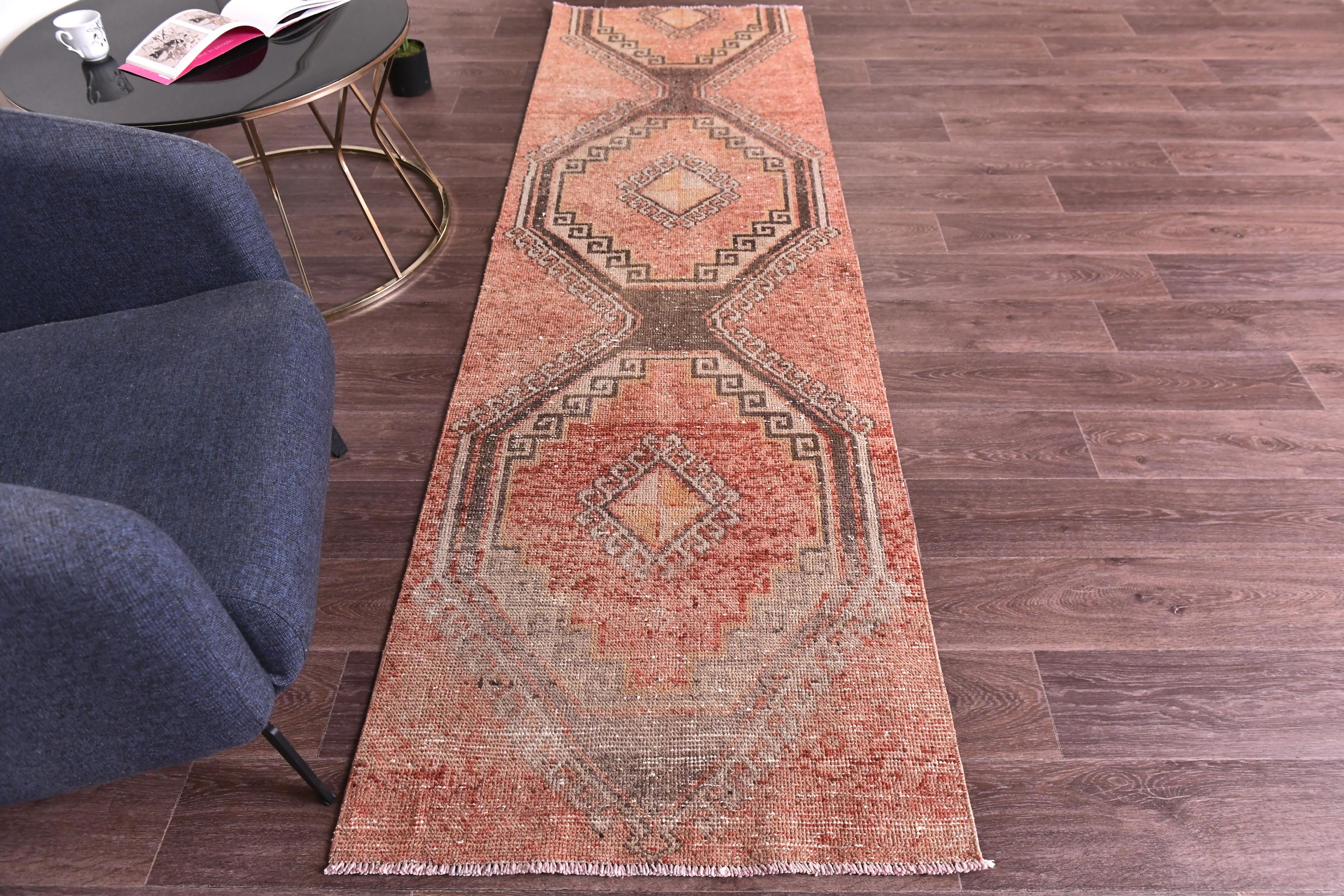 3x8 Runner Rug, 3x8 TURKISH VINTAGE RUNNER, 3x8, Handmade Oushak Rug, 3x8 Vintage Runner, Brown & Beige, Turkish Runner 3x8, Oriental Rugs