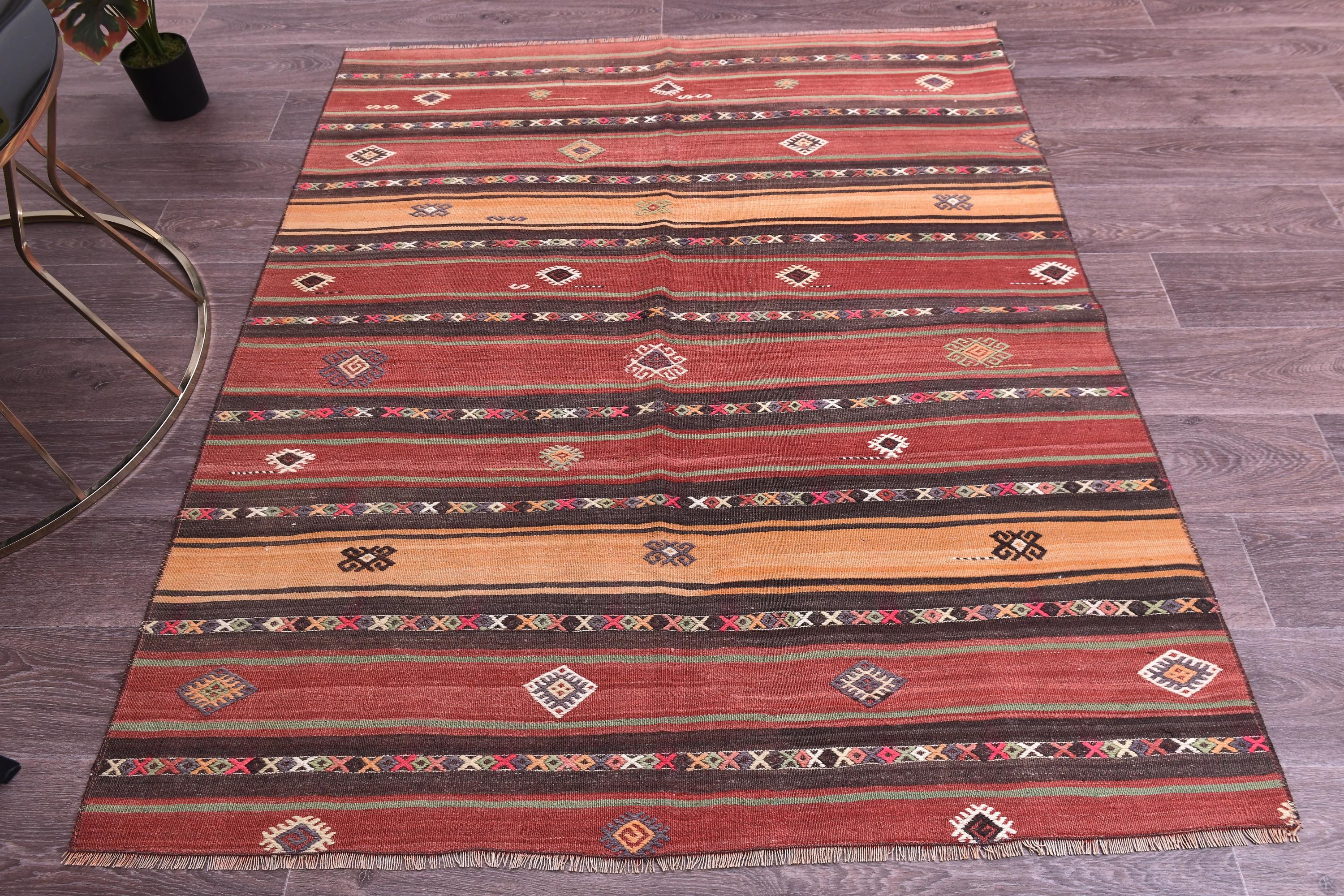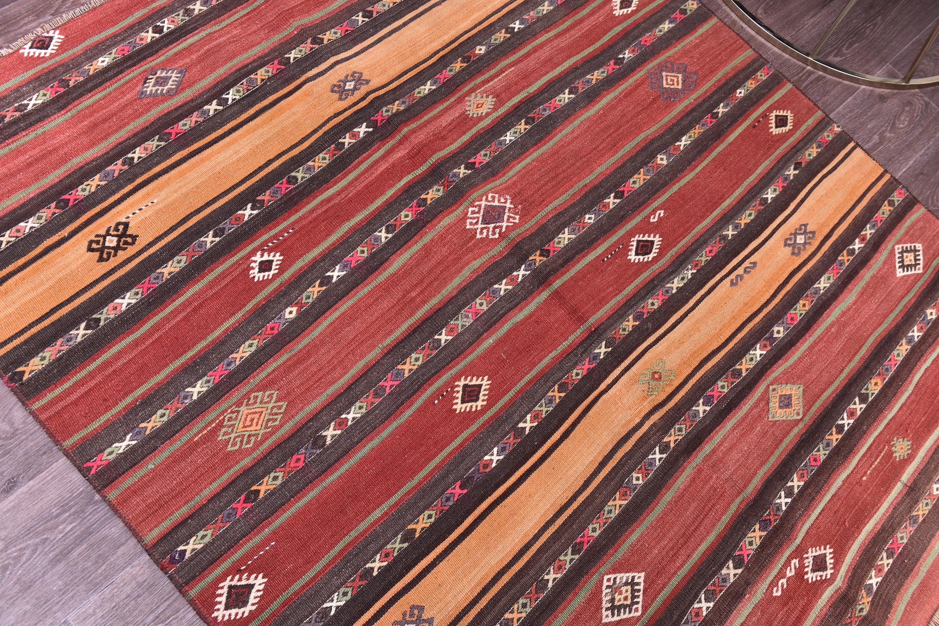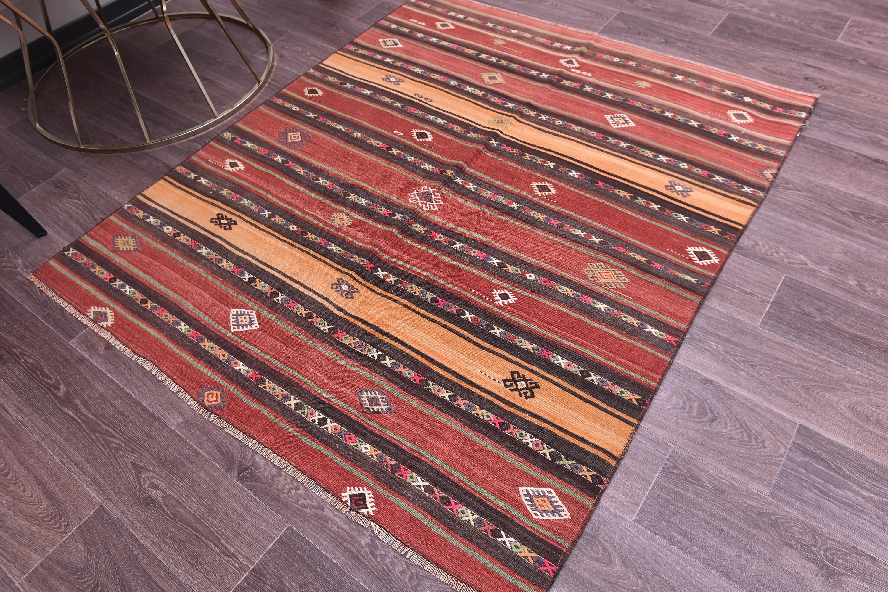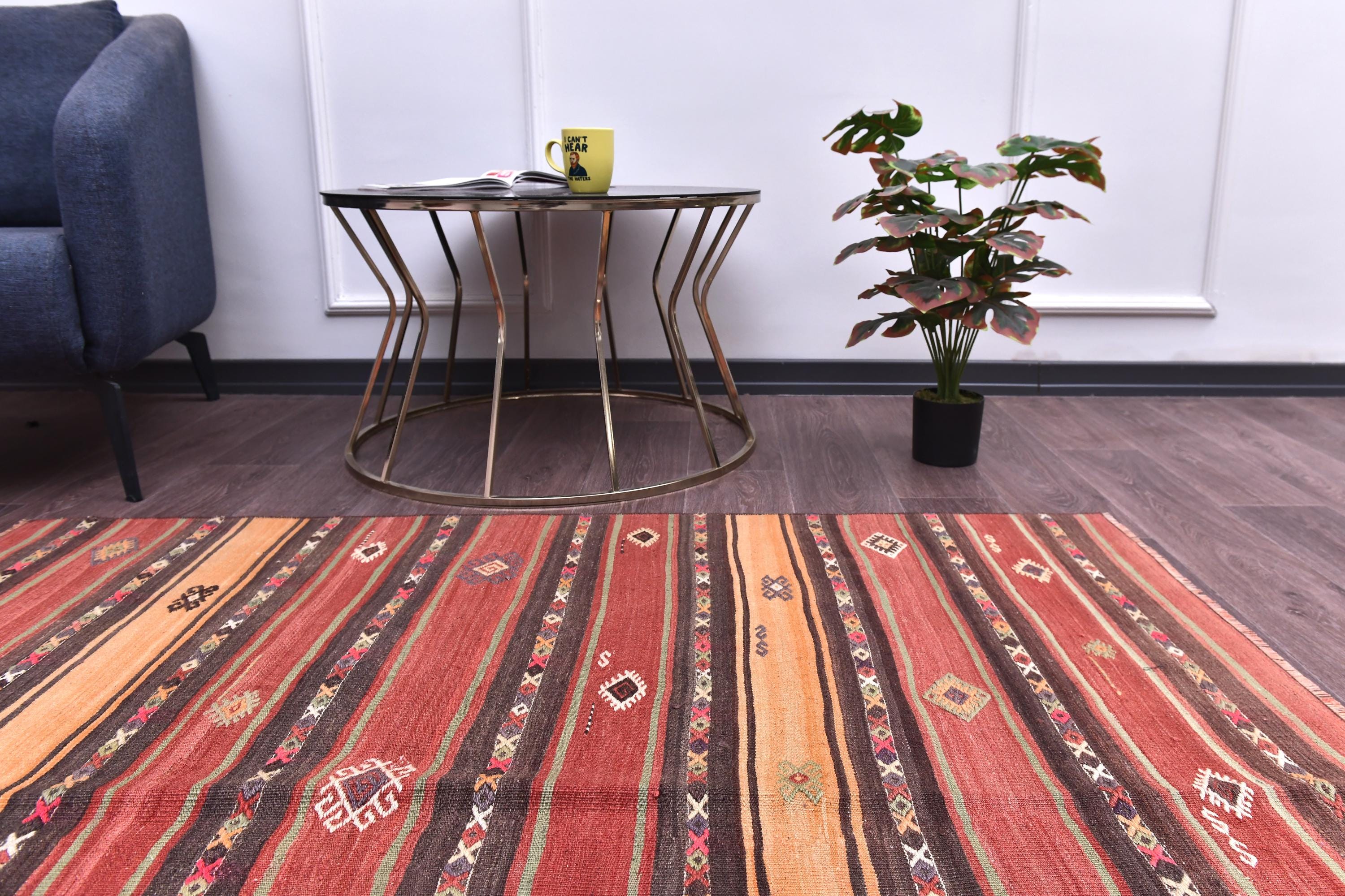 4x5 Rugs, Small Kilim, 4x5 TURKISH VINTAGE KILIM Rug, 4x5 Kilim Rug, 4x5 Area Rug, Wool Turkey Kilim, Light Copper & Red Kilim, Traditional
