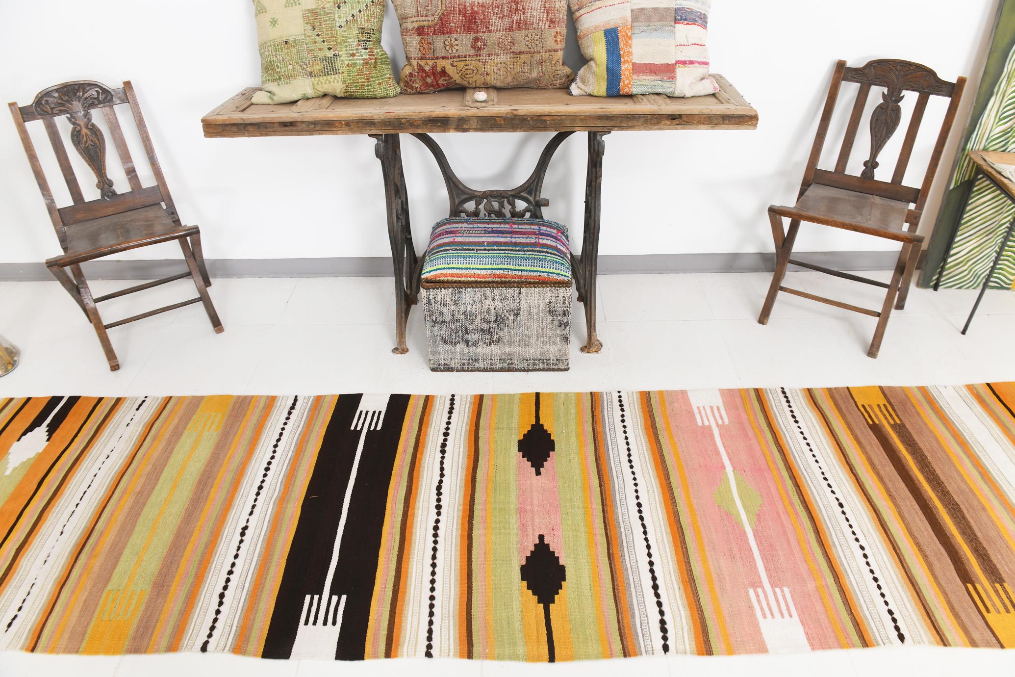 3x16 Runner Rug, 3x16 Extra Long Kilim Runner Rug, 3x16, Kilim Runner 3x16, Wool Handmade Oushak, Orange & Green Kilim, Rug For Hallway, 60s