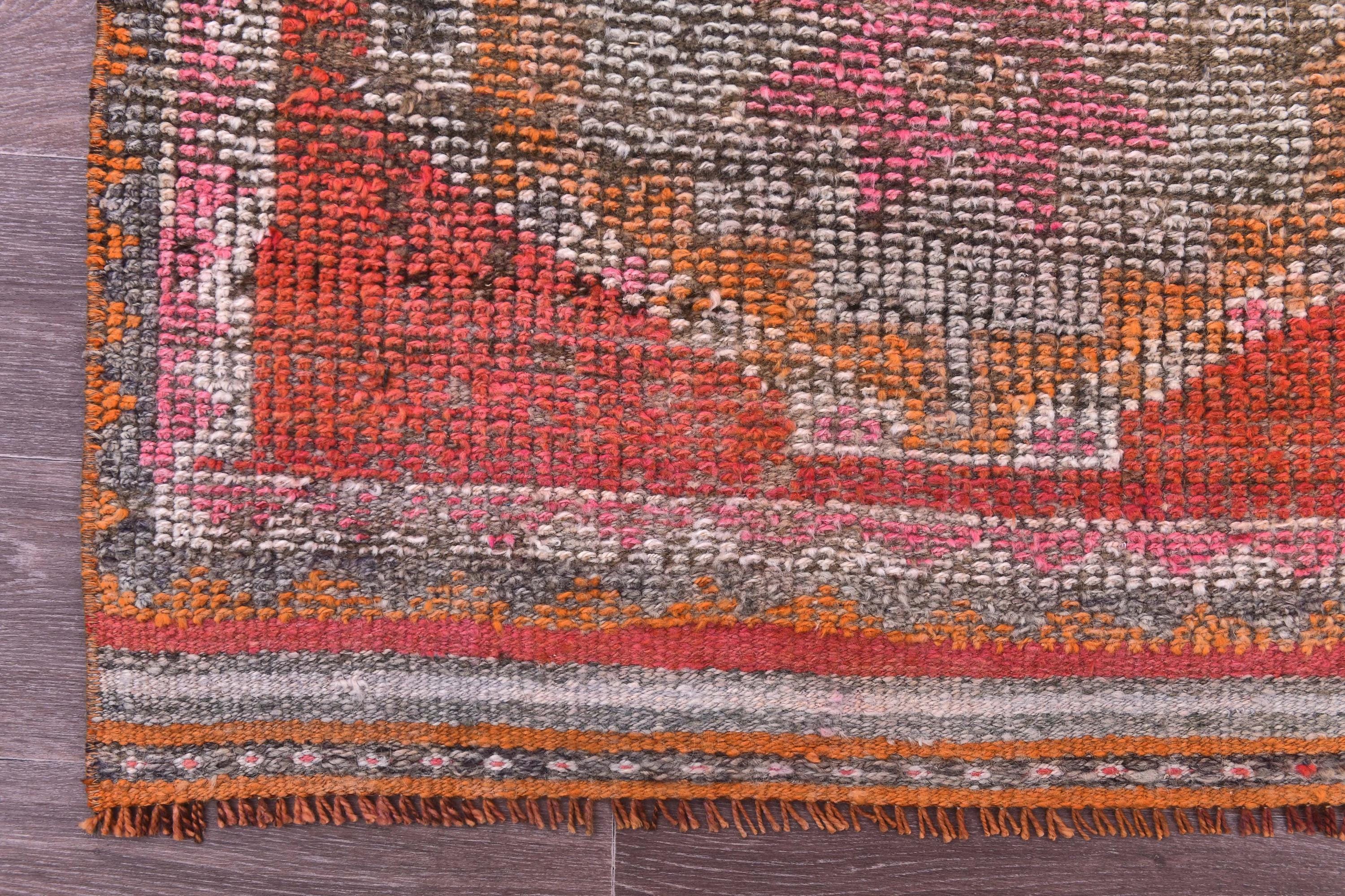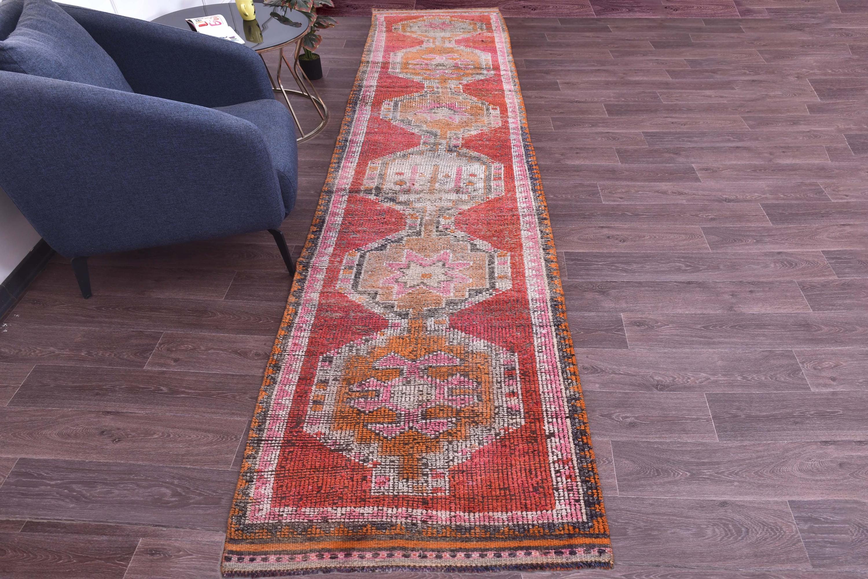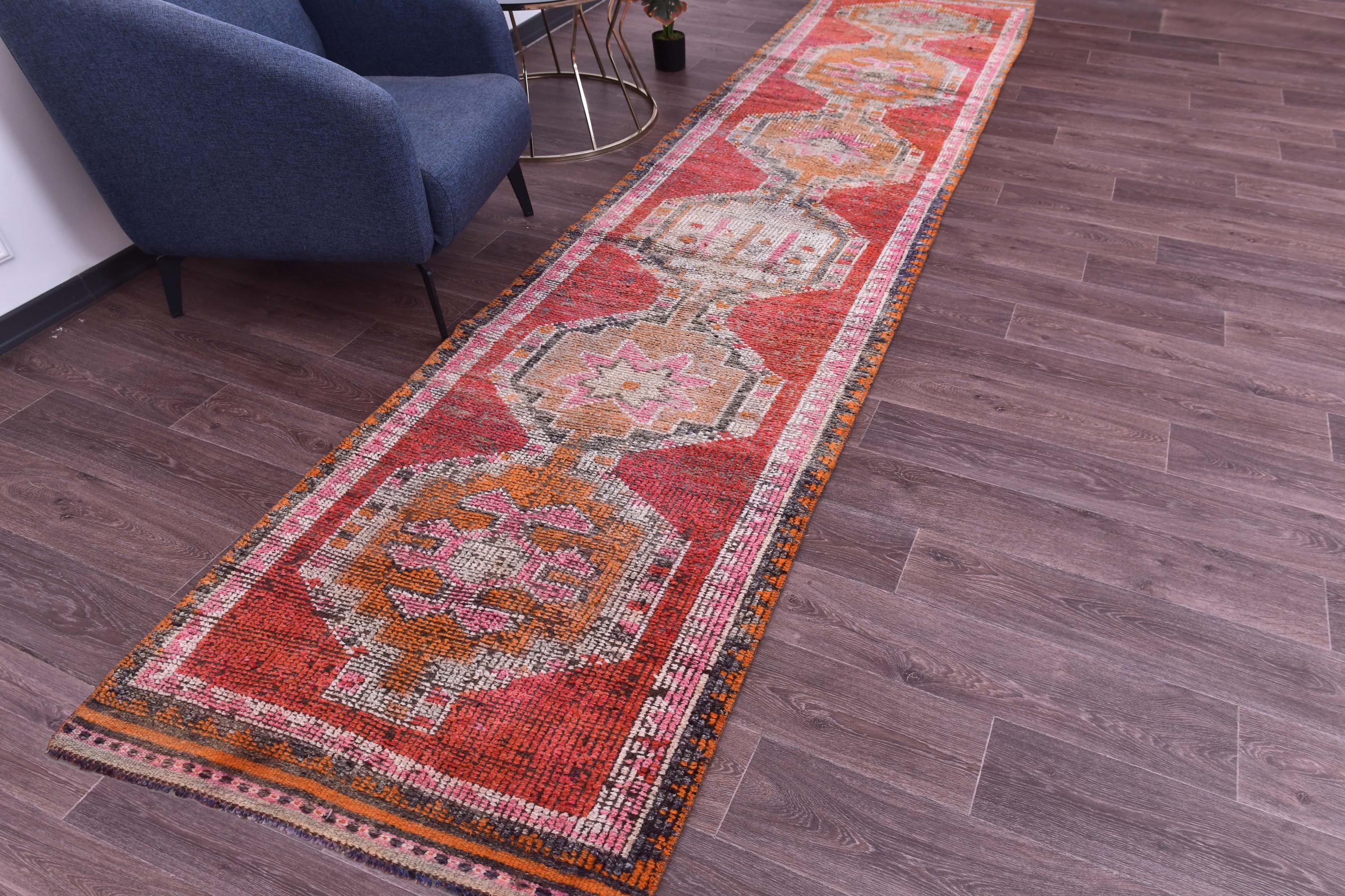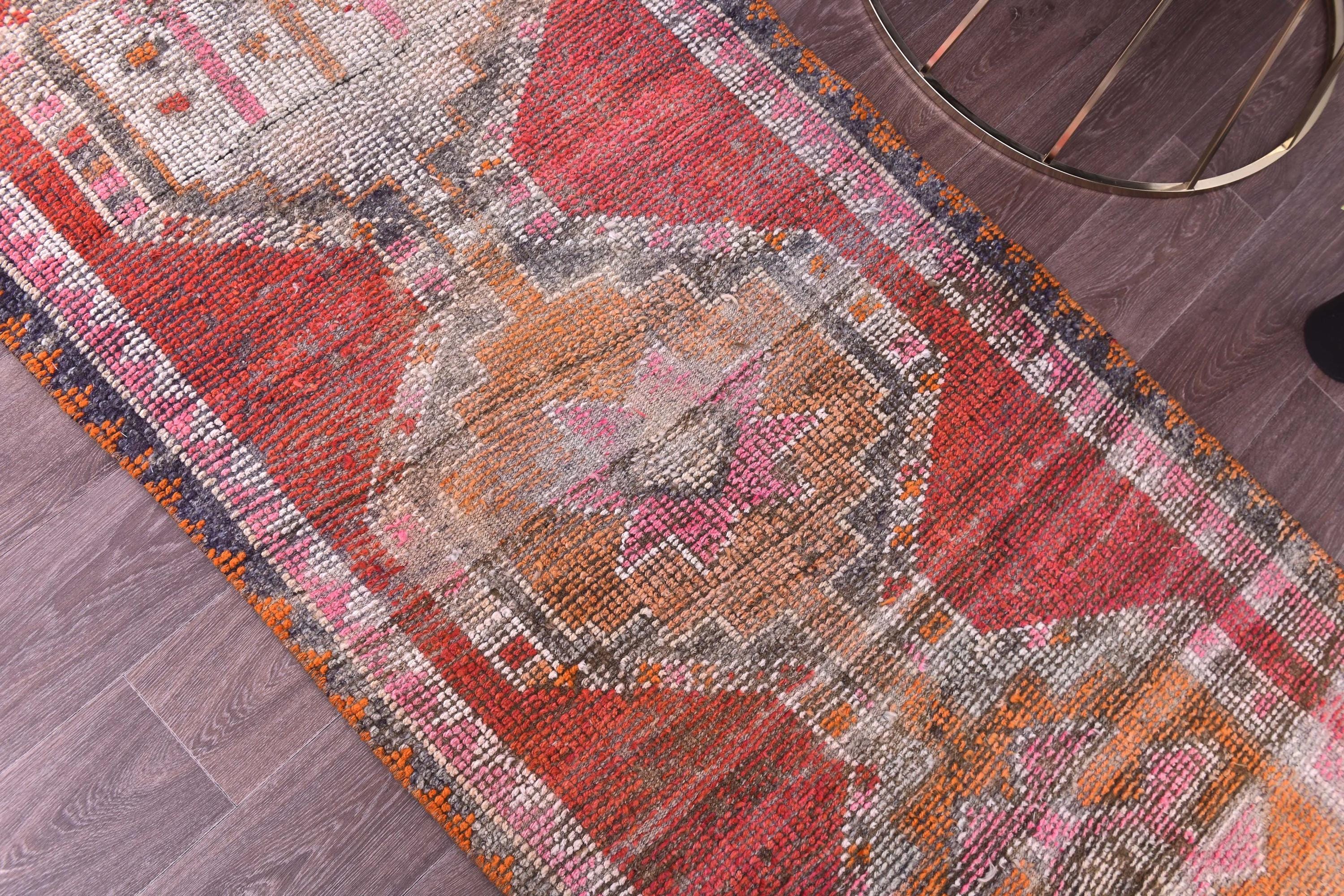 3x14 Runner Rug, 3x14 Vintage Runner, 3x14 GEOMETRIC RUNNER RUG, 3x14 Wool Handwoven Rug, Kilim Runner 3x14 Red & Orange Kilim 58s