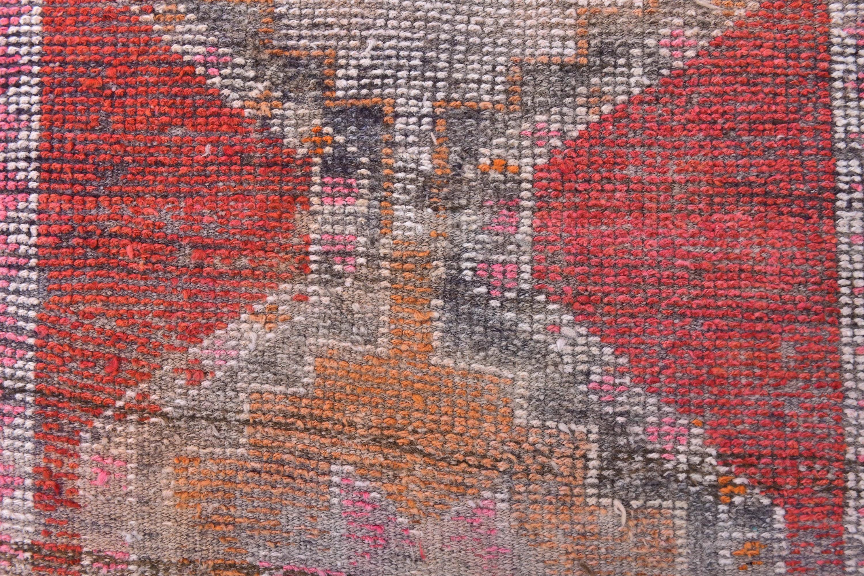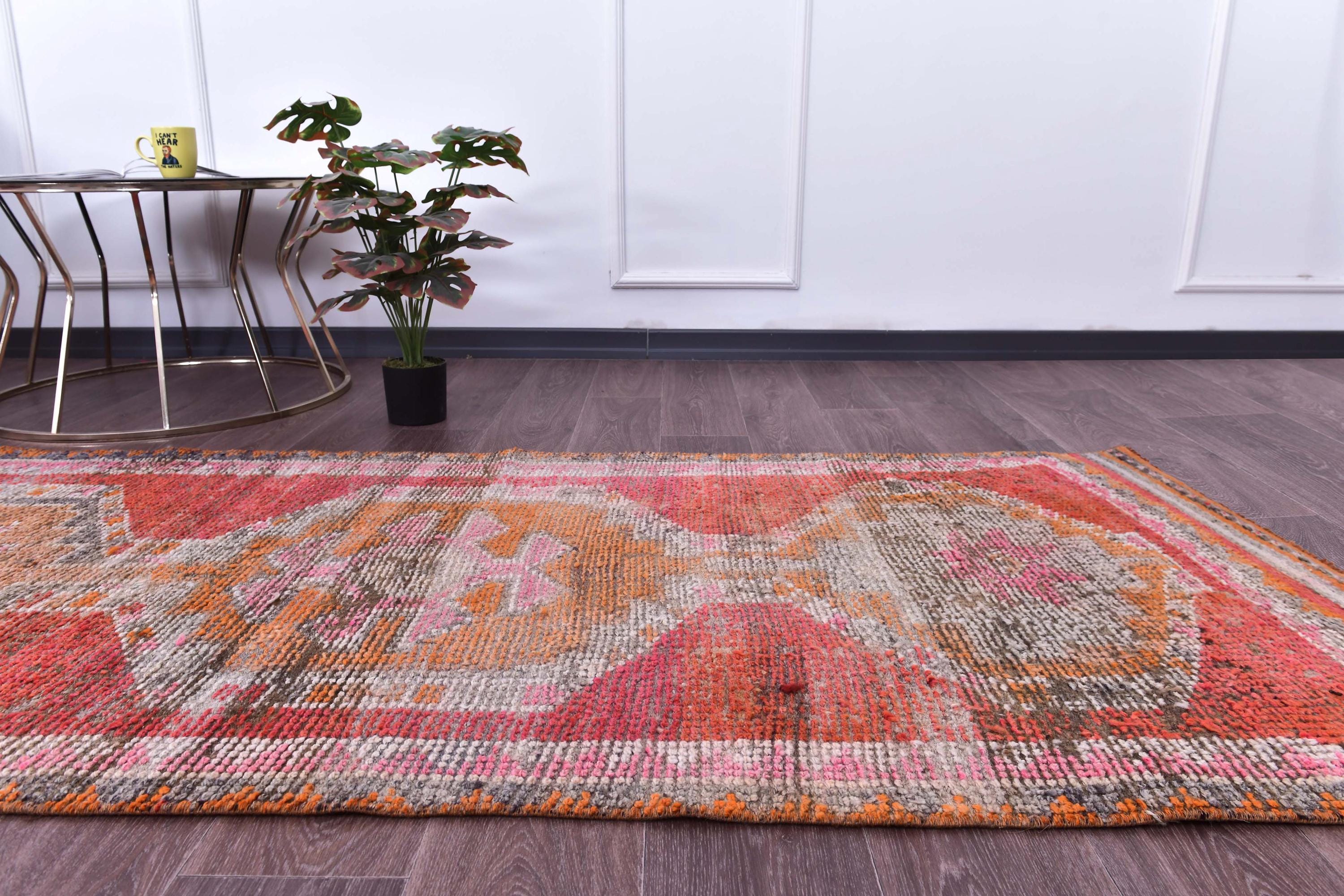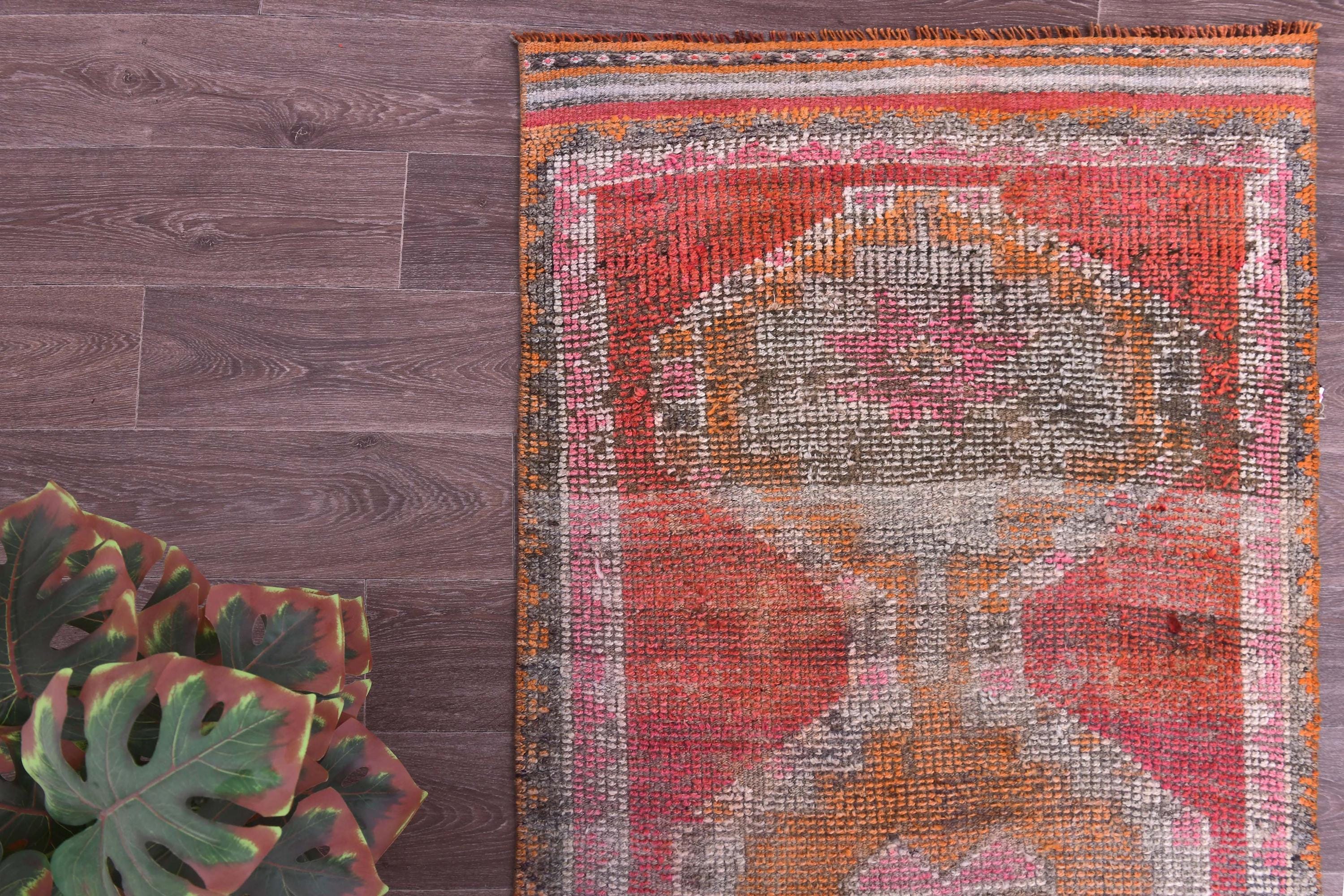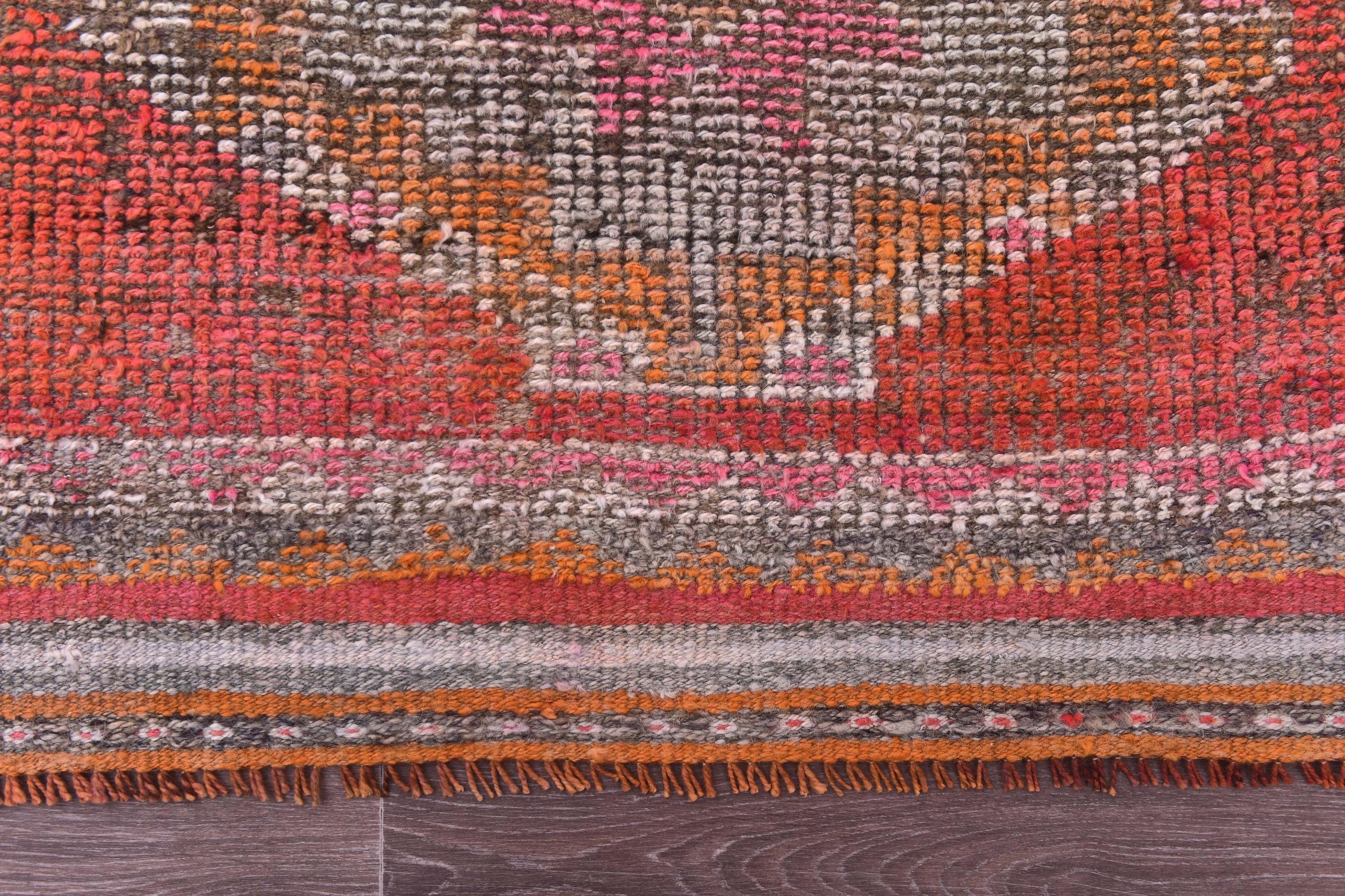 3x14 Runner Rug, 3x14 Vintage Runner, 3x14 GEOMETRIC RUNNER RUG, 3x14 Wool Handwoven Rug, Kilim Runner 3x14 Red & Orange Kilim 58s