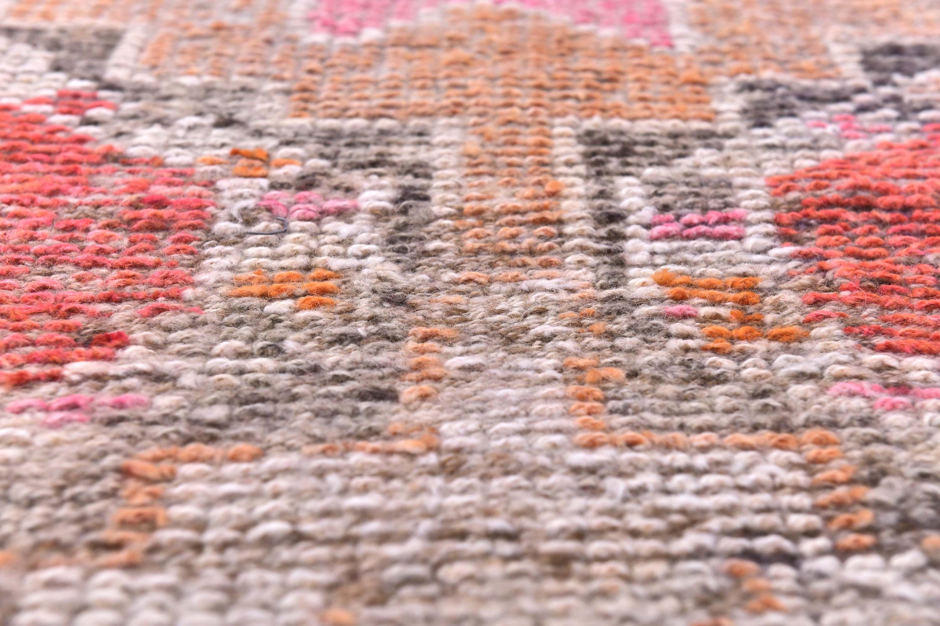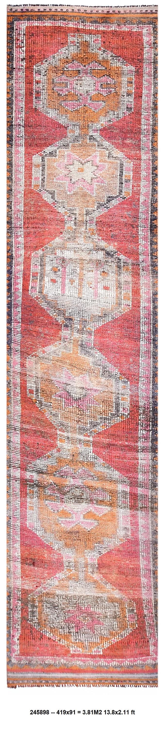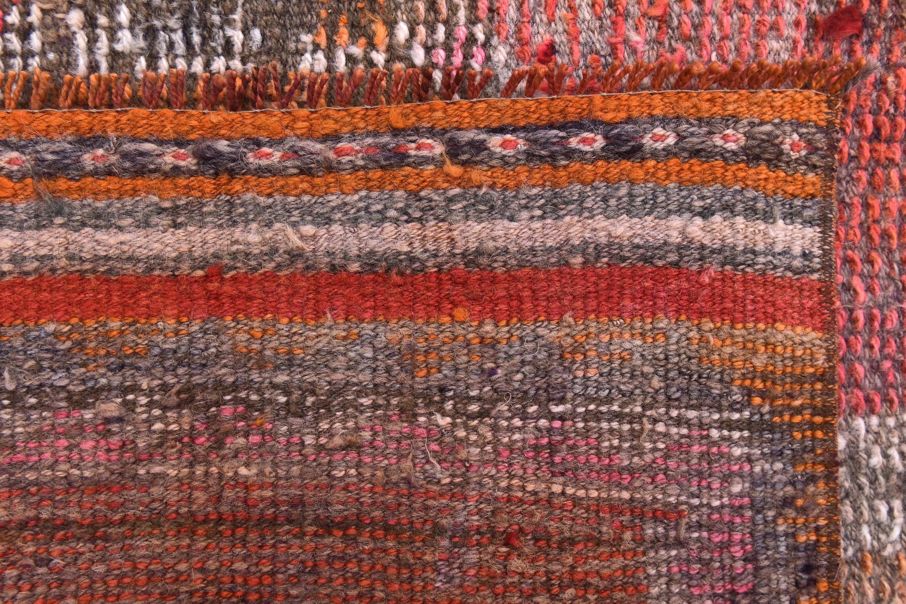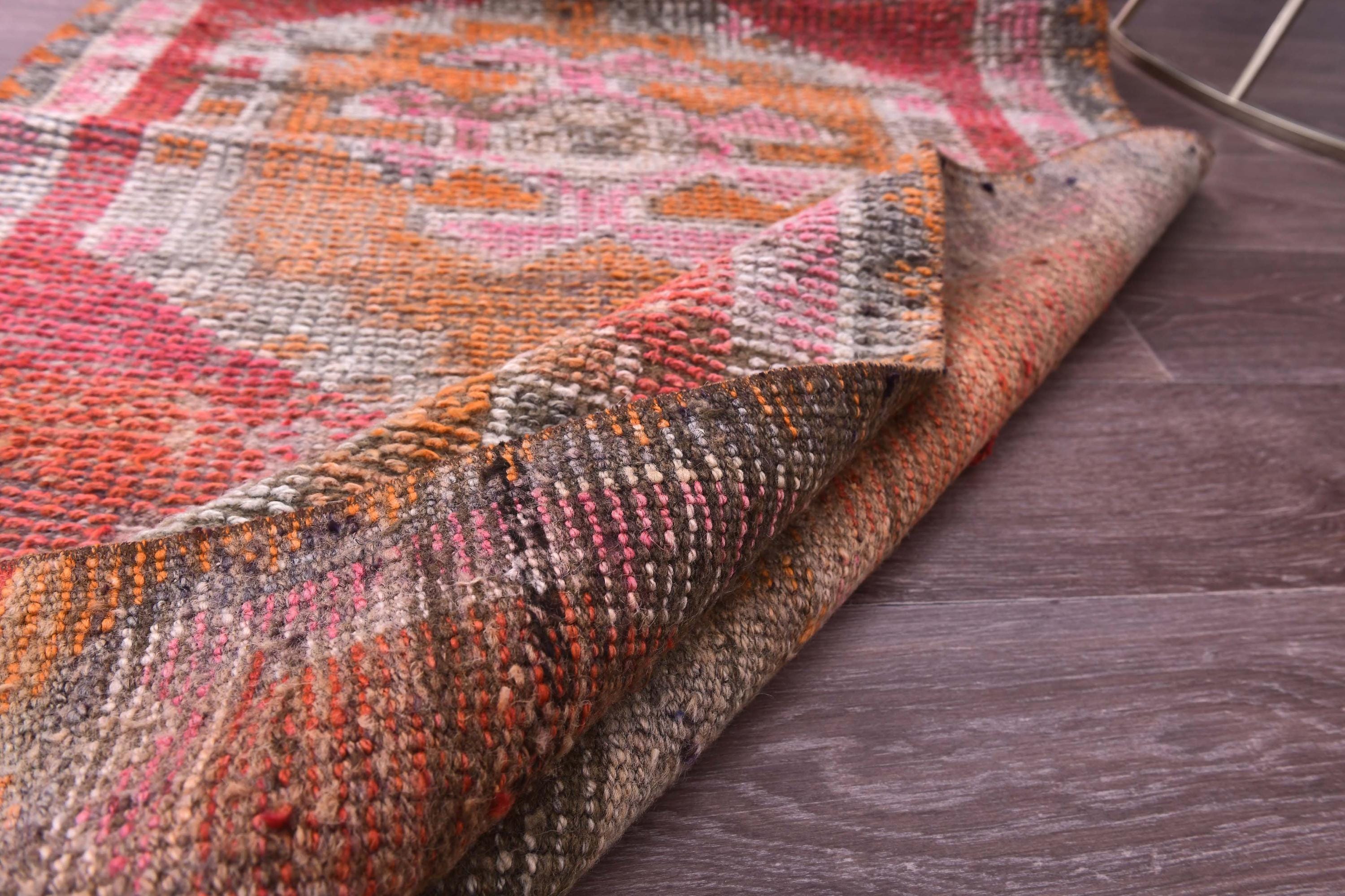 3x14 Runner Rug, 3x14 Vintage Runner, 3x14 GEOMETRIC RUNNER RUG, 3x14 Wool Handwoven Rug, Kilim Runner 3x14 Red & Orange Kilim 58s