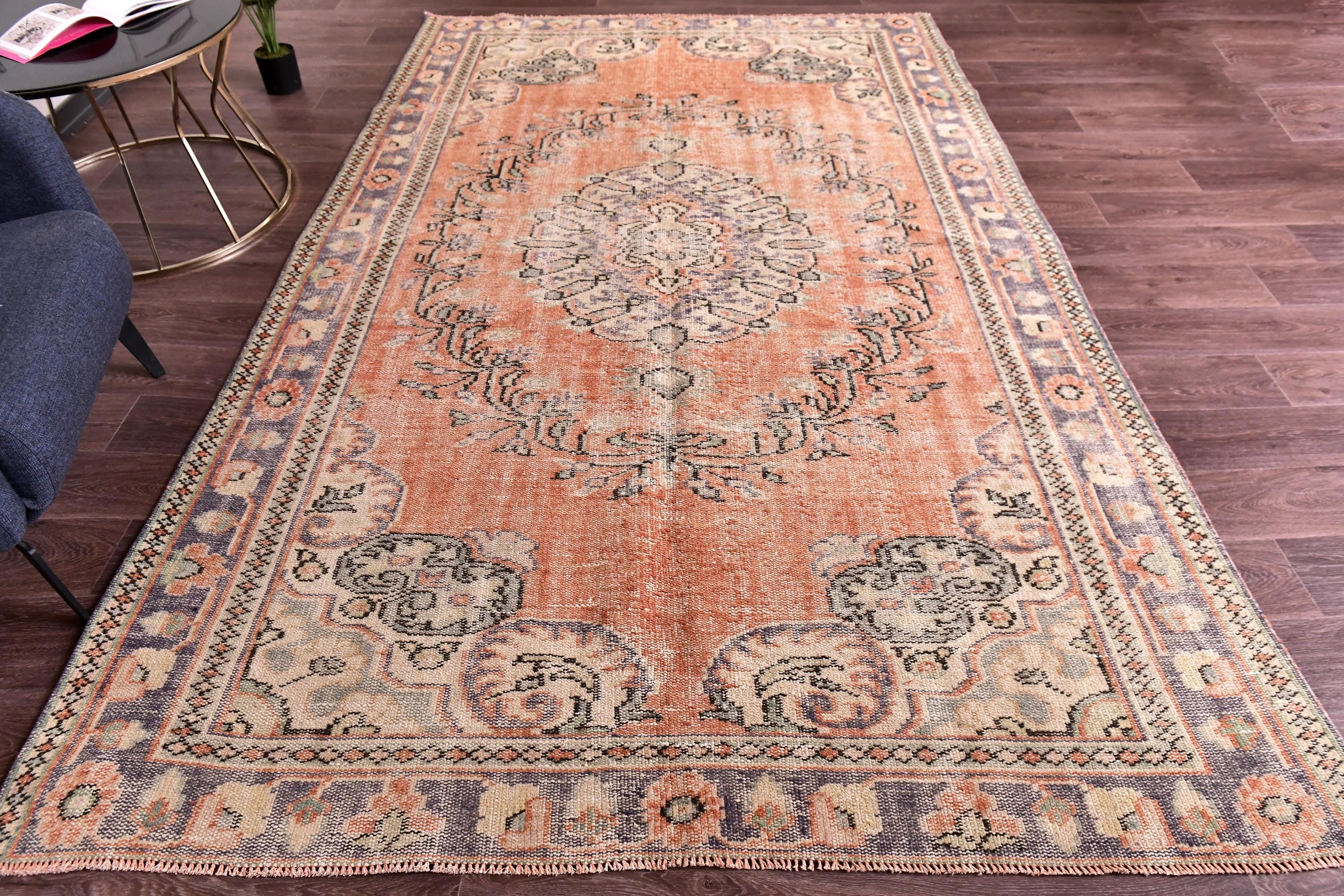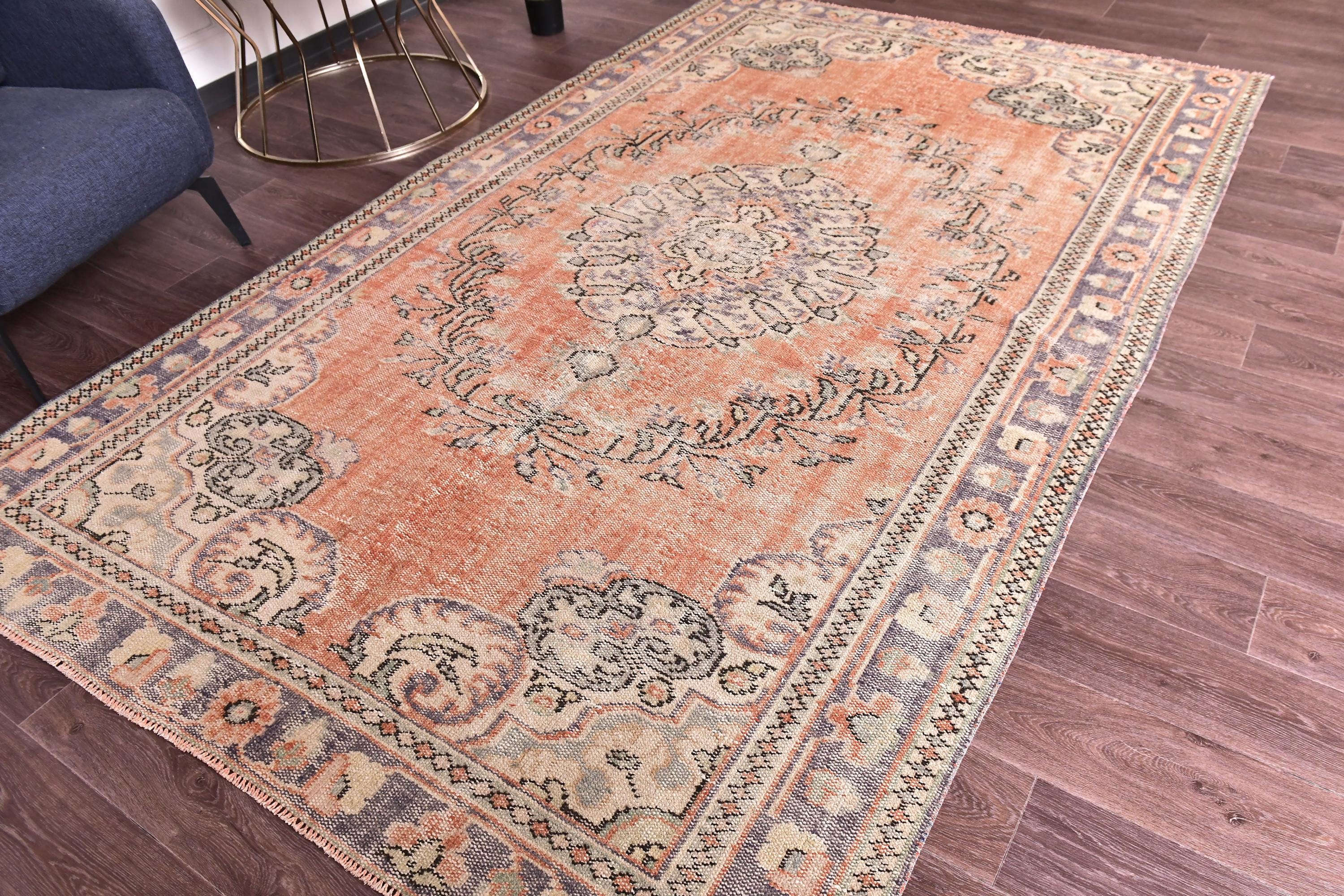 6x10 Area Rug, 6x10 Faded Vintage, 6x10 Soft Pale Turkish Vintage Rug, Wool Handmade Turkey, 6x10 Turkish Rug, Peach & Green Carpet, Boho