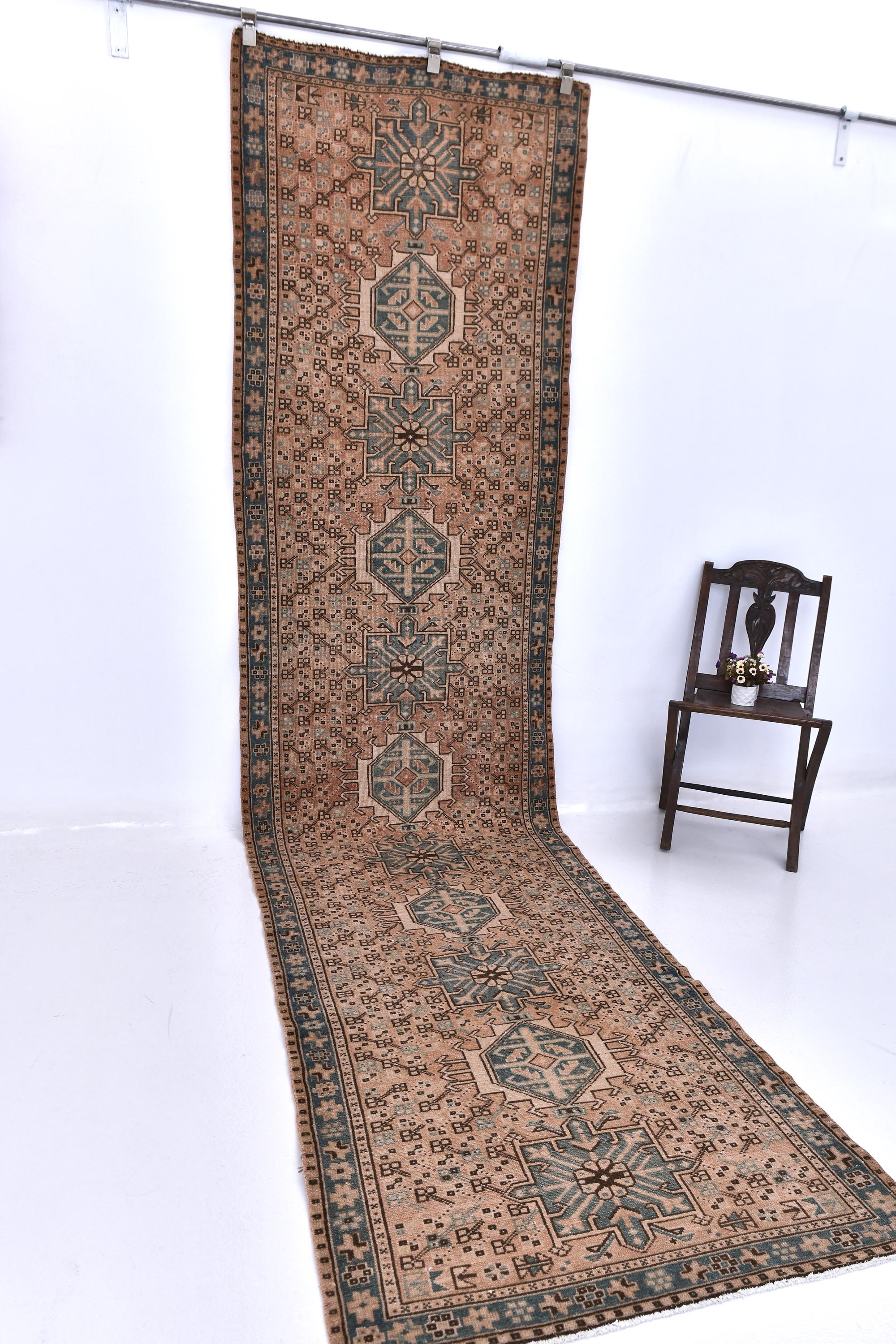 3x13 Persian Runner, 3x13 Teal Green Brown Persian Runner Rug, 3x13 Rug, Wool Hand-Knotted Rug, 3x13 Rugs, Persian Runner 3x13, Hallway Rug