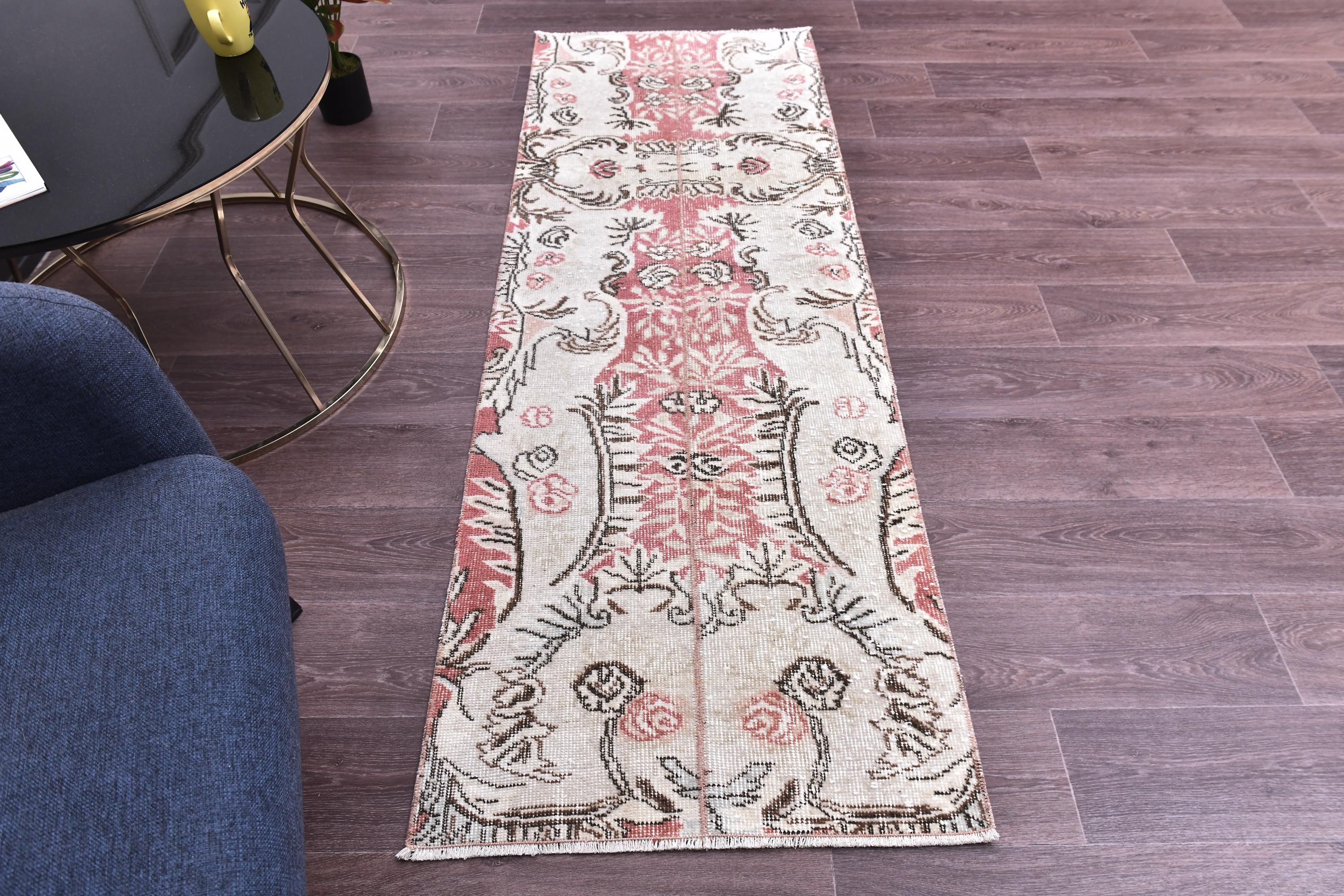 2x6 Blue Beige Turkish Runner Rug, 2x6 Turkish Runner, 2x6 Rug, Wool Hand Woven Rug, 2x6 Runner Rug, 2x6 Vintage Runner, Entrway Runner
