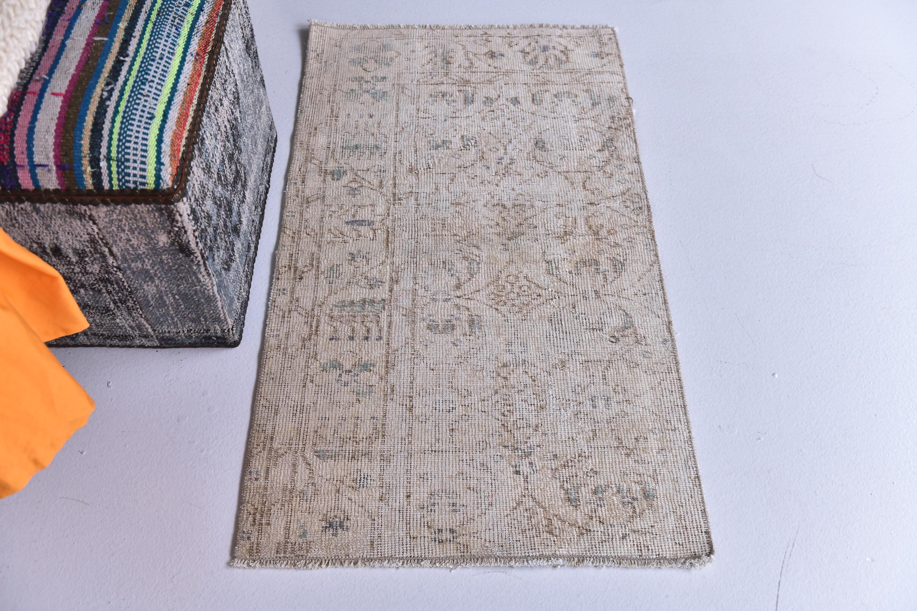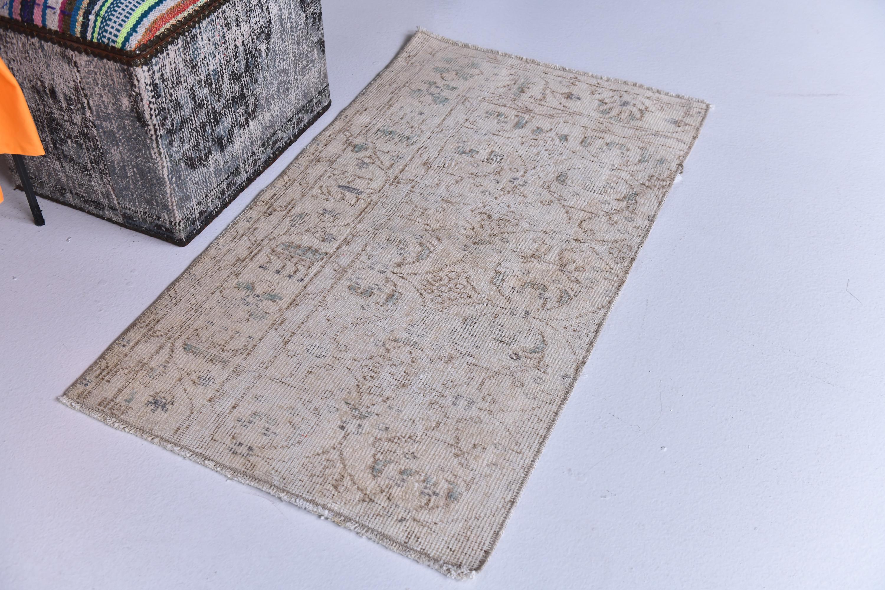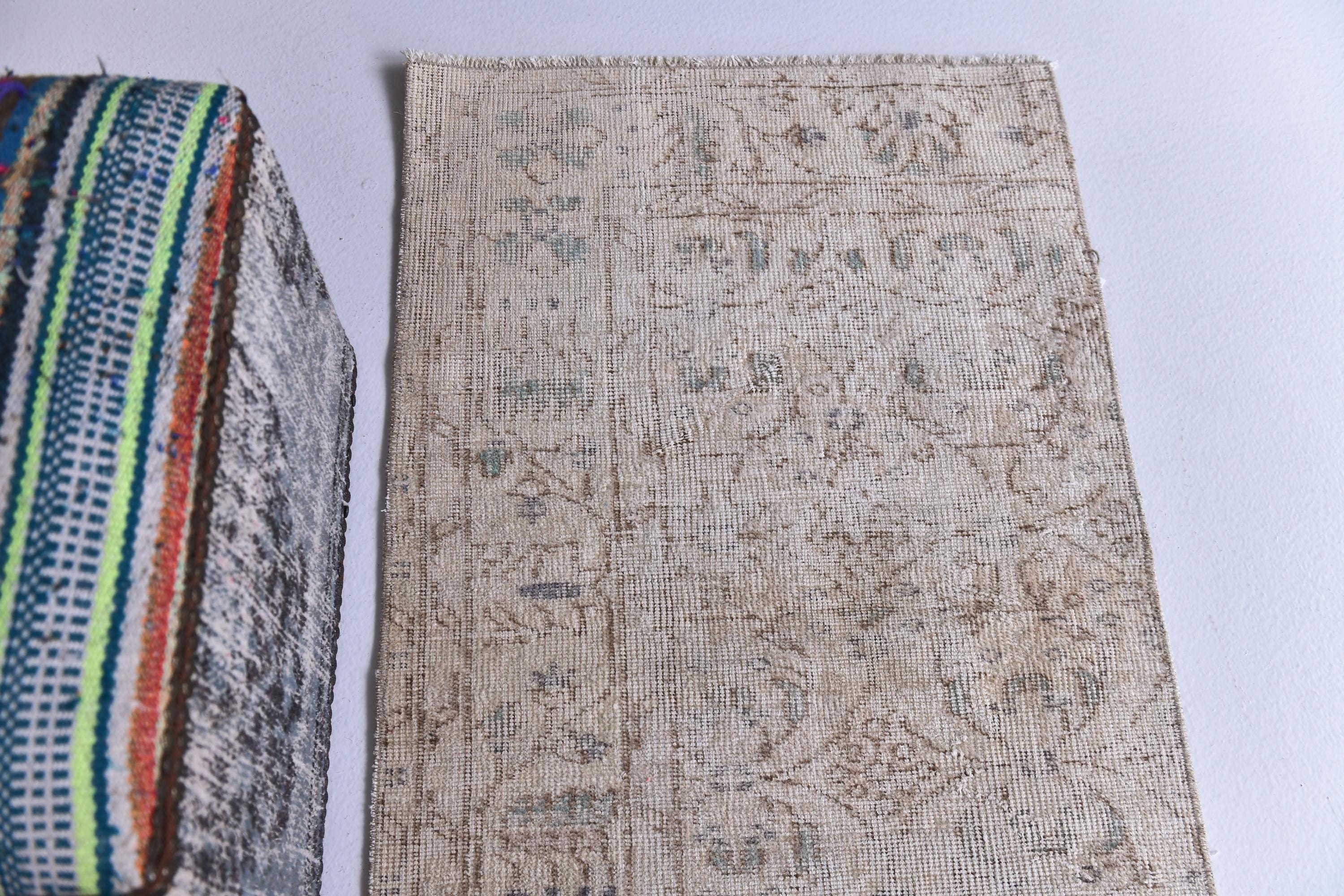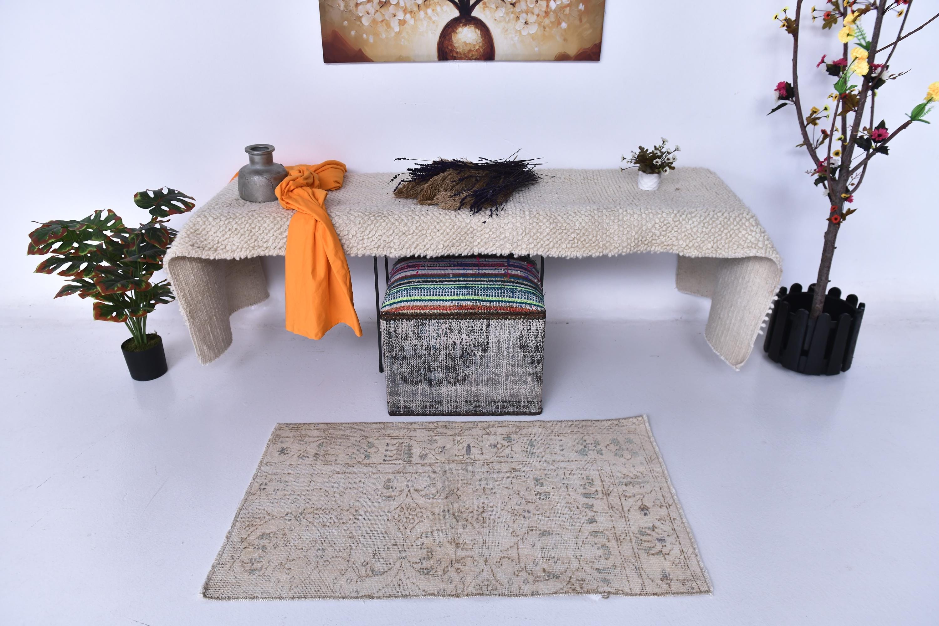 2x4 Cream Brown Vintage Doormat Rug, 2x4 Doormat Rug, 2x4 Rug, Small Handmade Wool Rug, 2x3 Turkish Rug, Rug For Bedroom Accent Bathmat