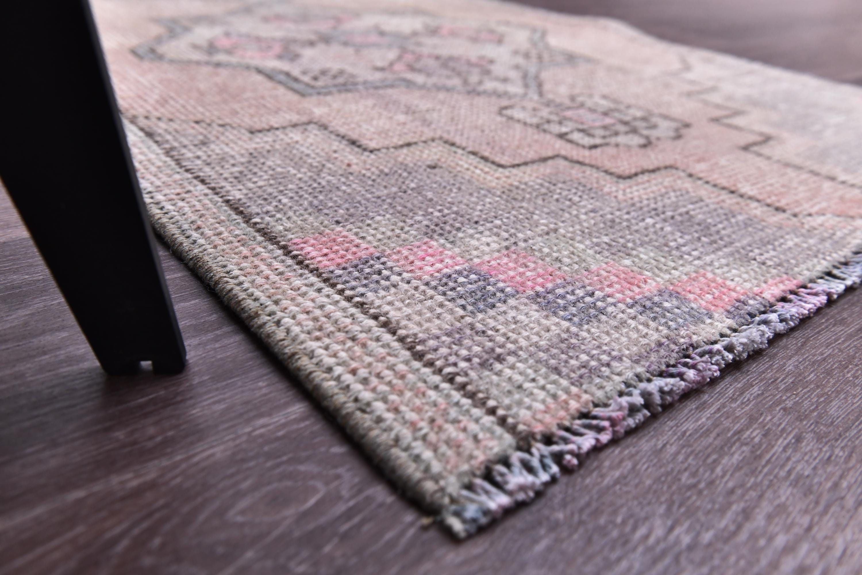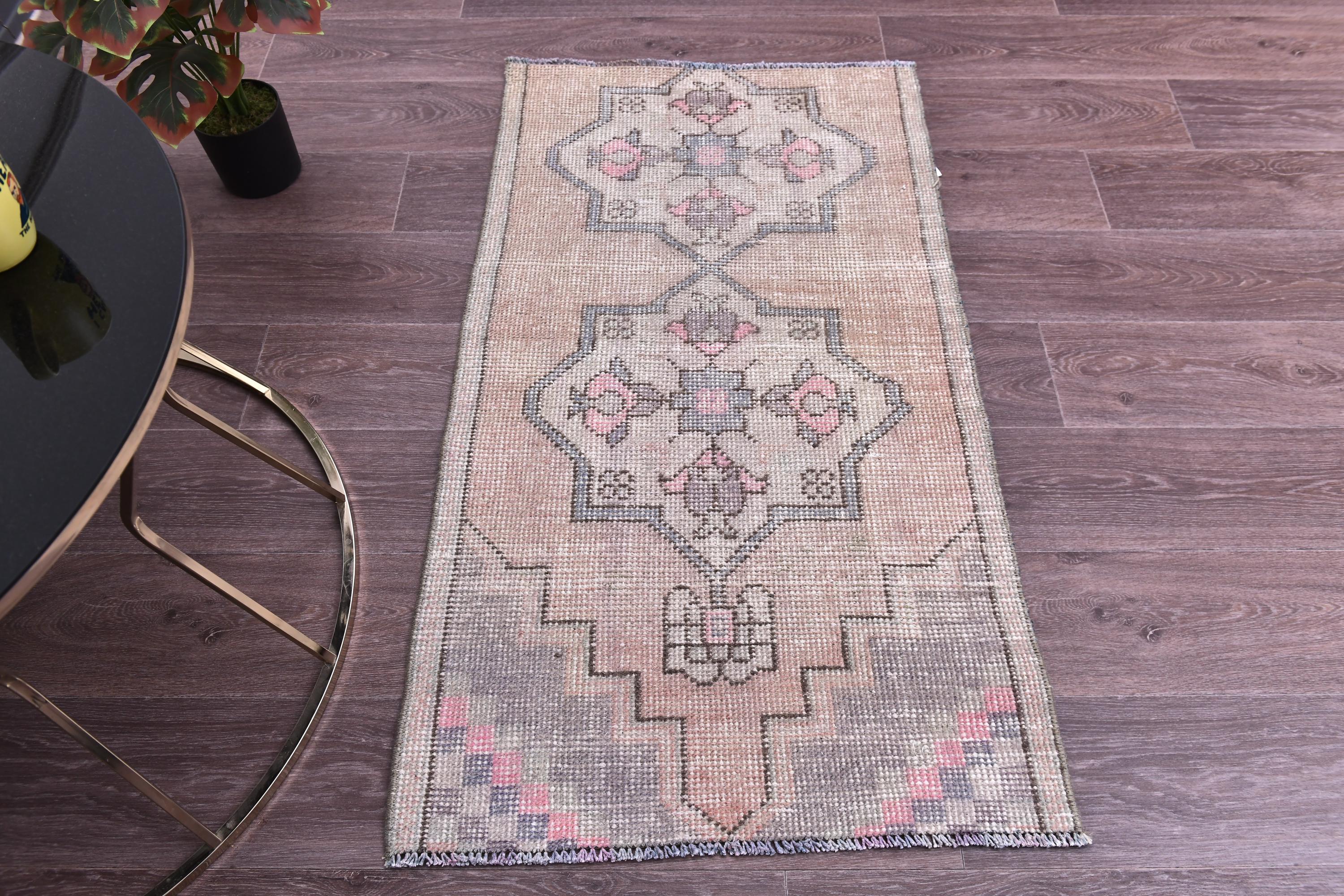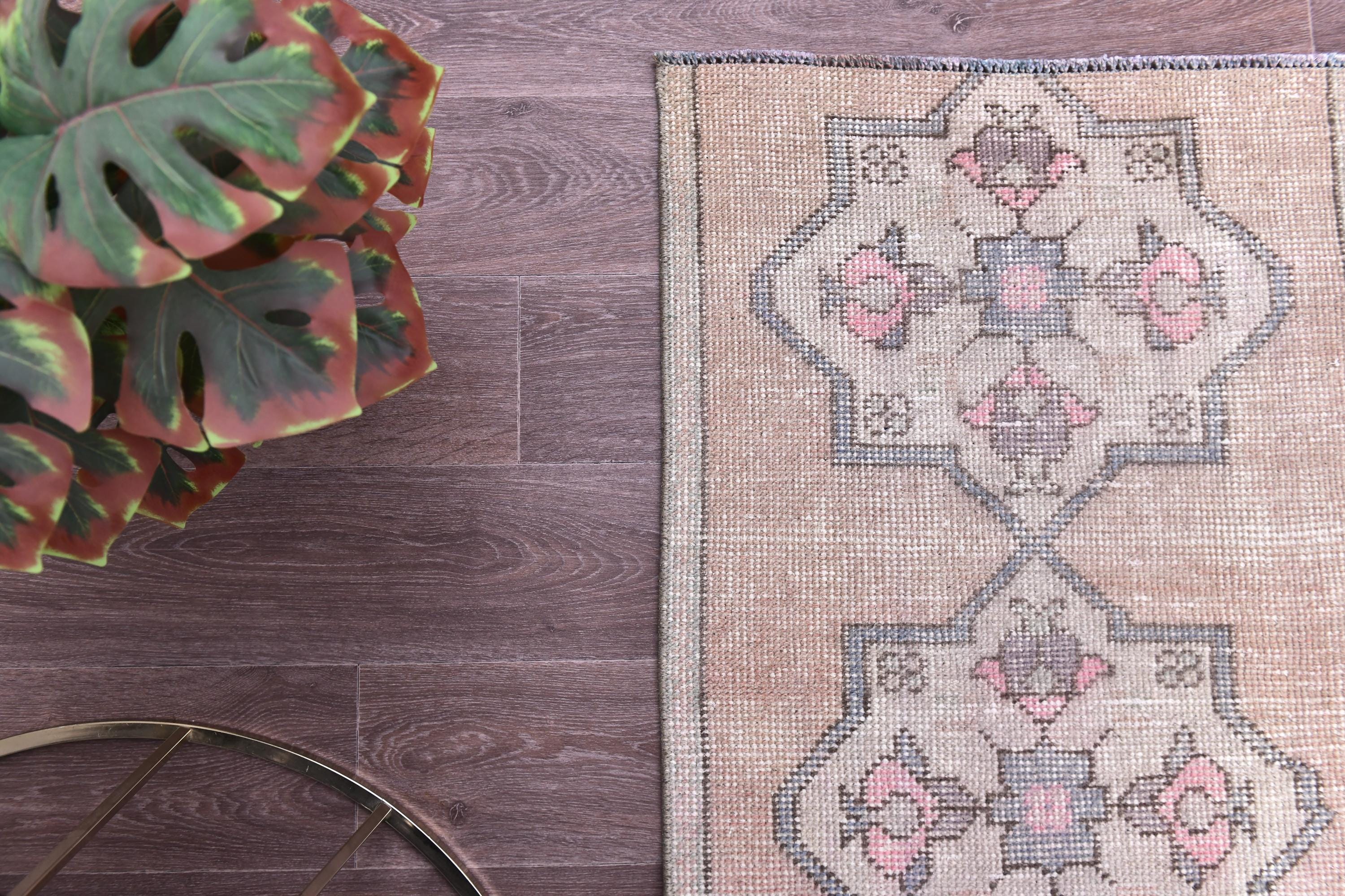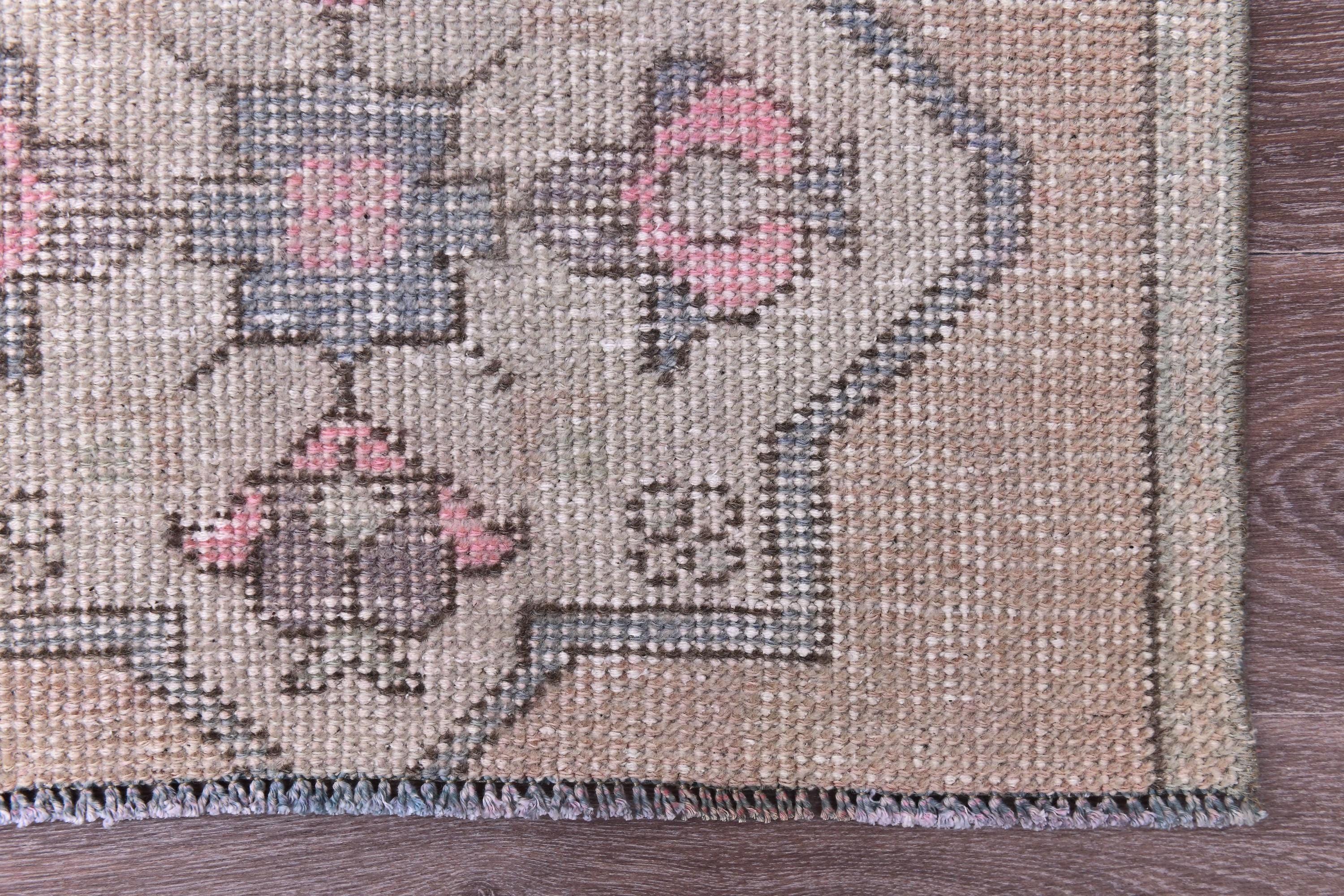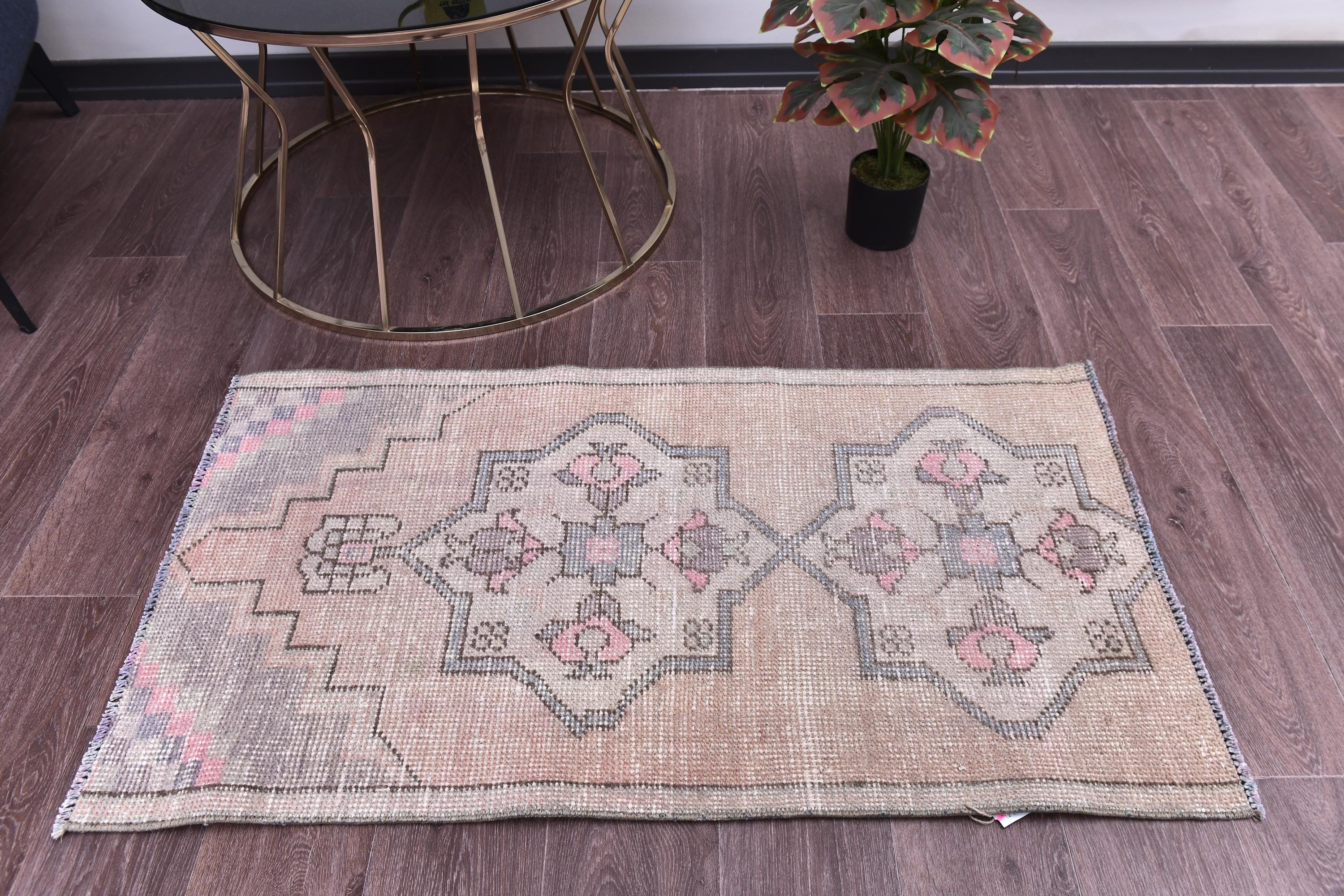 2x4 Cream Brown Vintage Doormat Rug, 2x4 Doormat Rug, 2x4 Rug, Small Handmade Wool Rug, 2x3 Turkish Rug, Rug For Bedroom Accent Bathmat