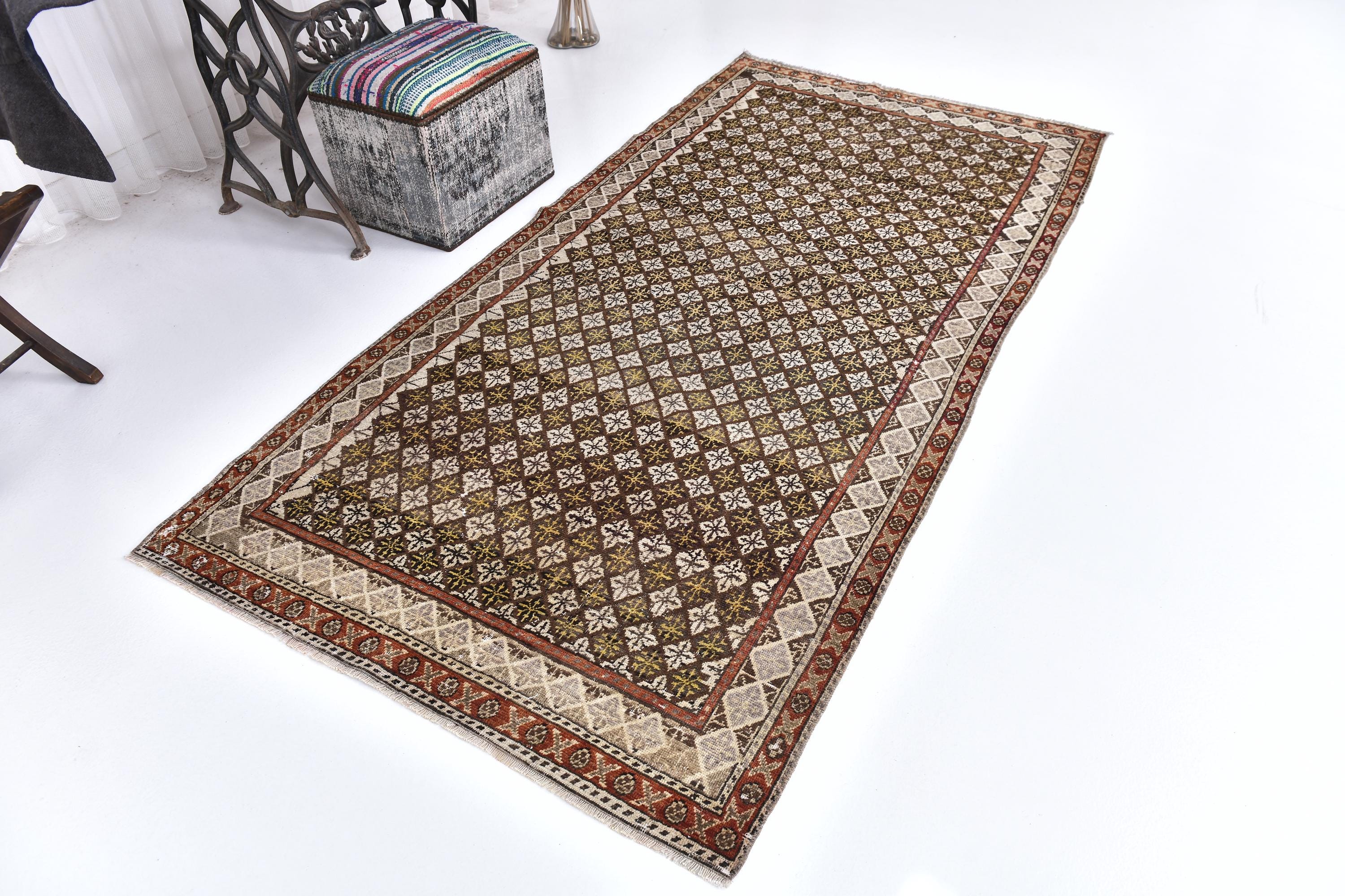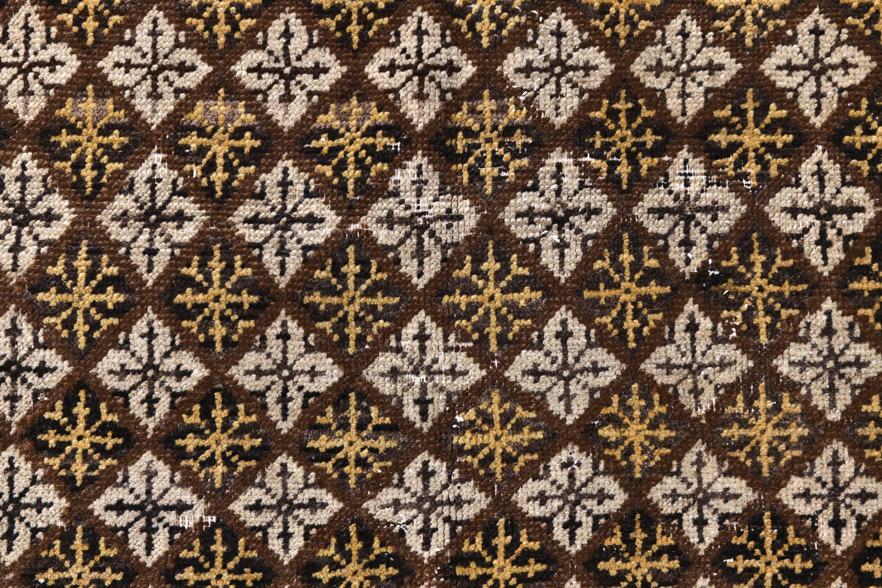 Vintage Runner Rug 3x9, Vintage Distressed Rug,Vintage Turkish Runner Rug, Wool Runner Rugs 3x9, Dark Brown and Gray Runner Rugs