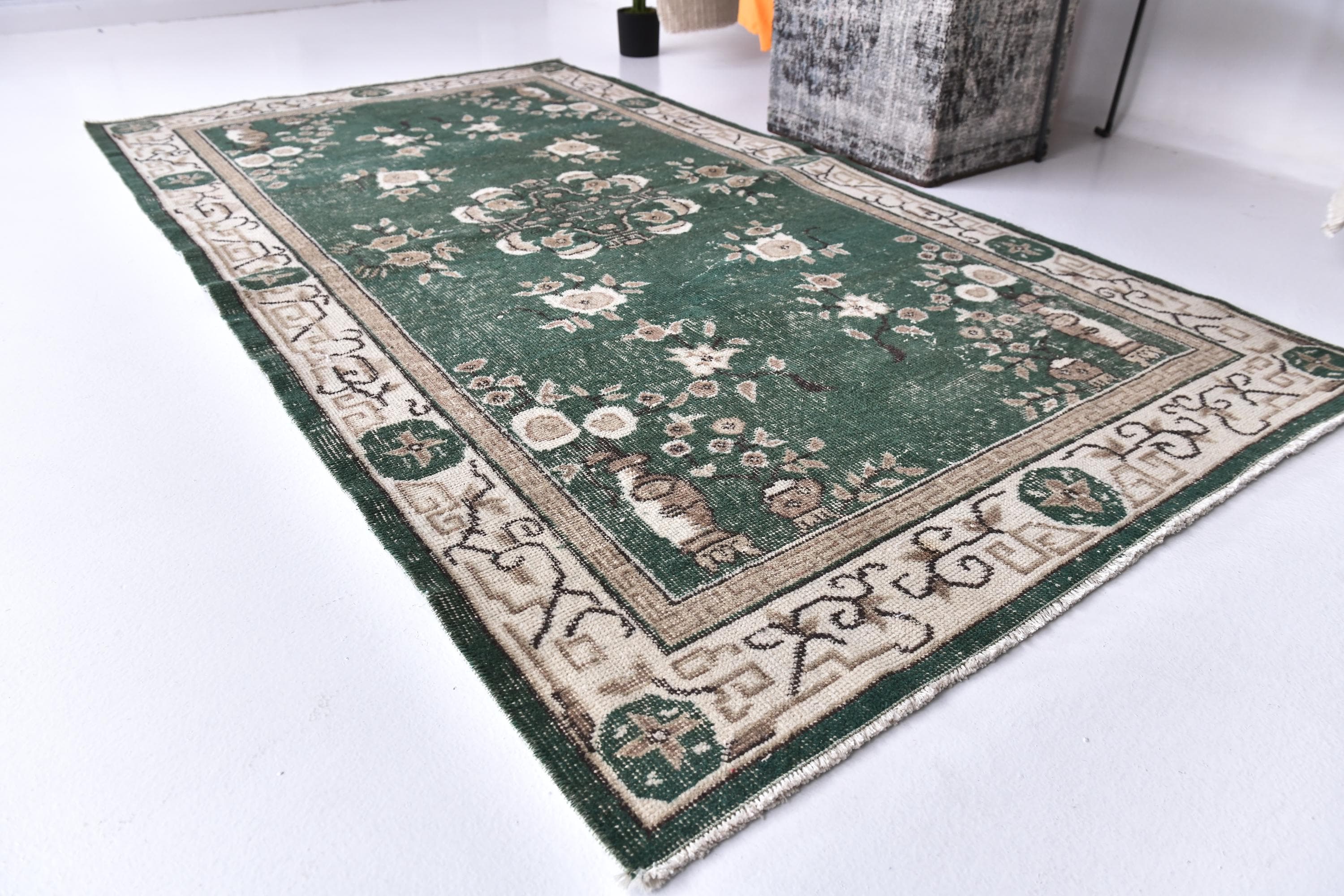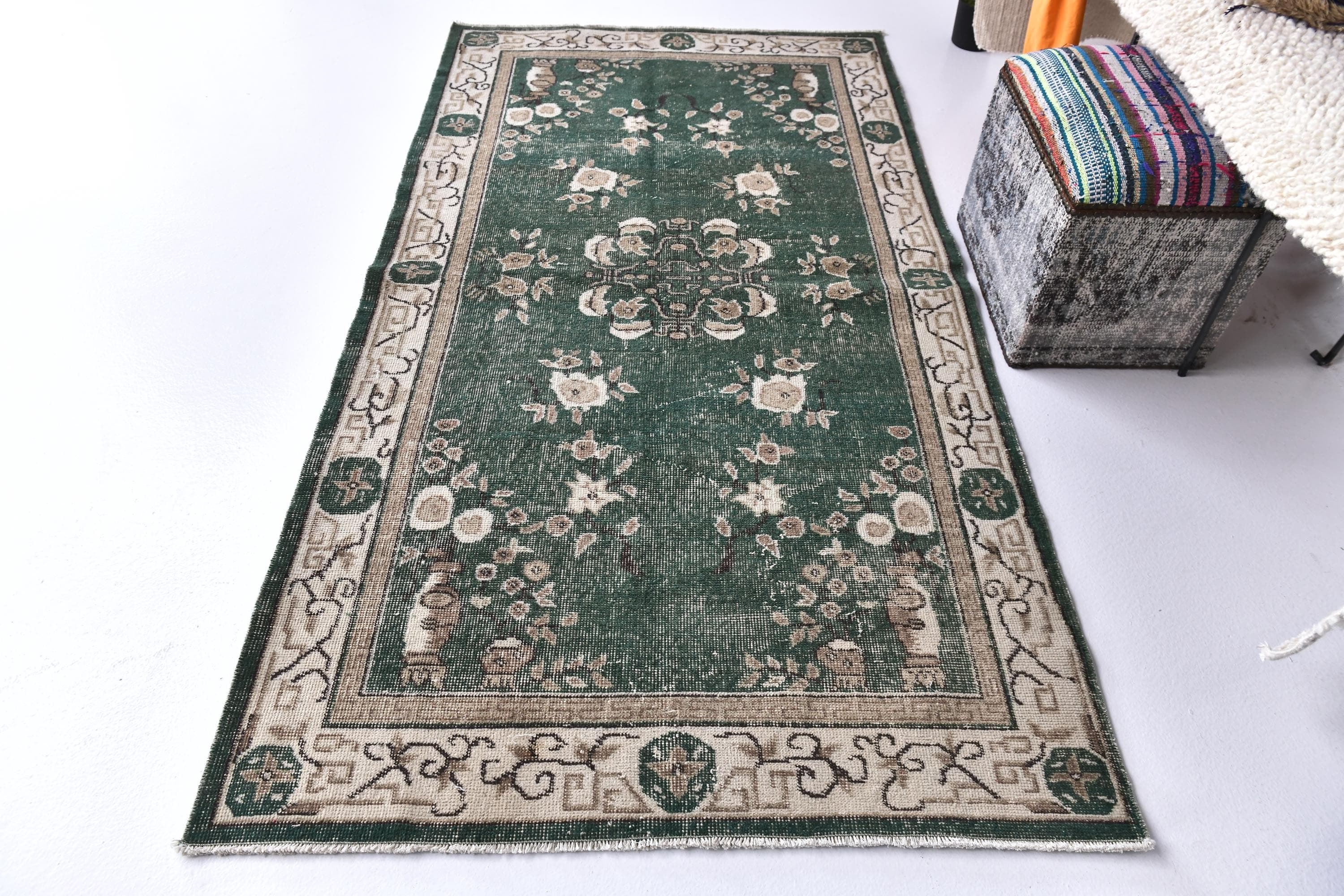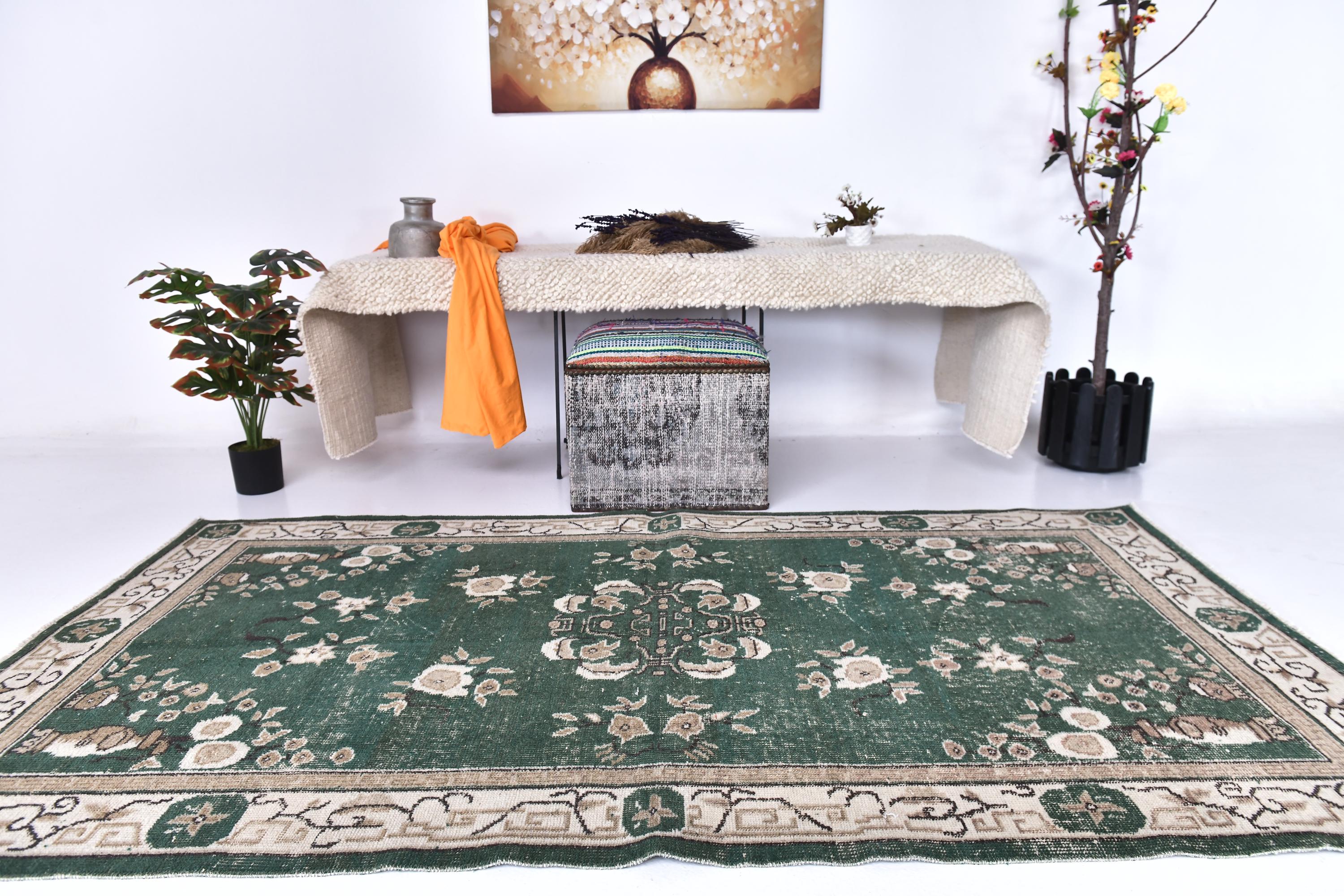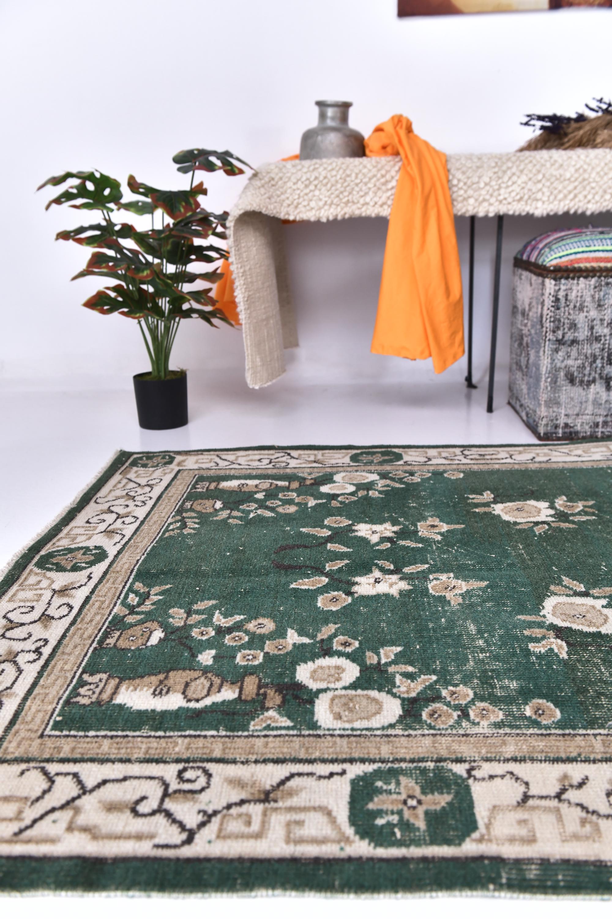 4x7 Vintage Forest Green Rug, 4x7 Floral Area Rug, Handmade Area Rug, 4x7 Rug, Bedroom Rug, Turkish Green Color Rug 4x7, 4x7 Tapis, Teppich, Green Rug, Rohan Green Rug :)