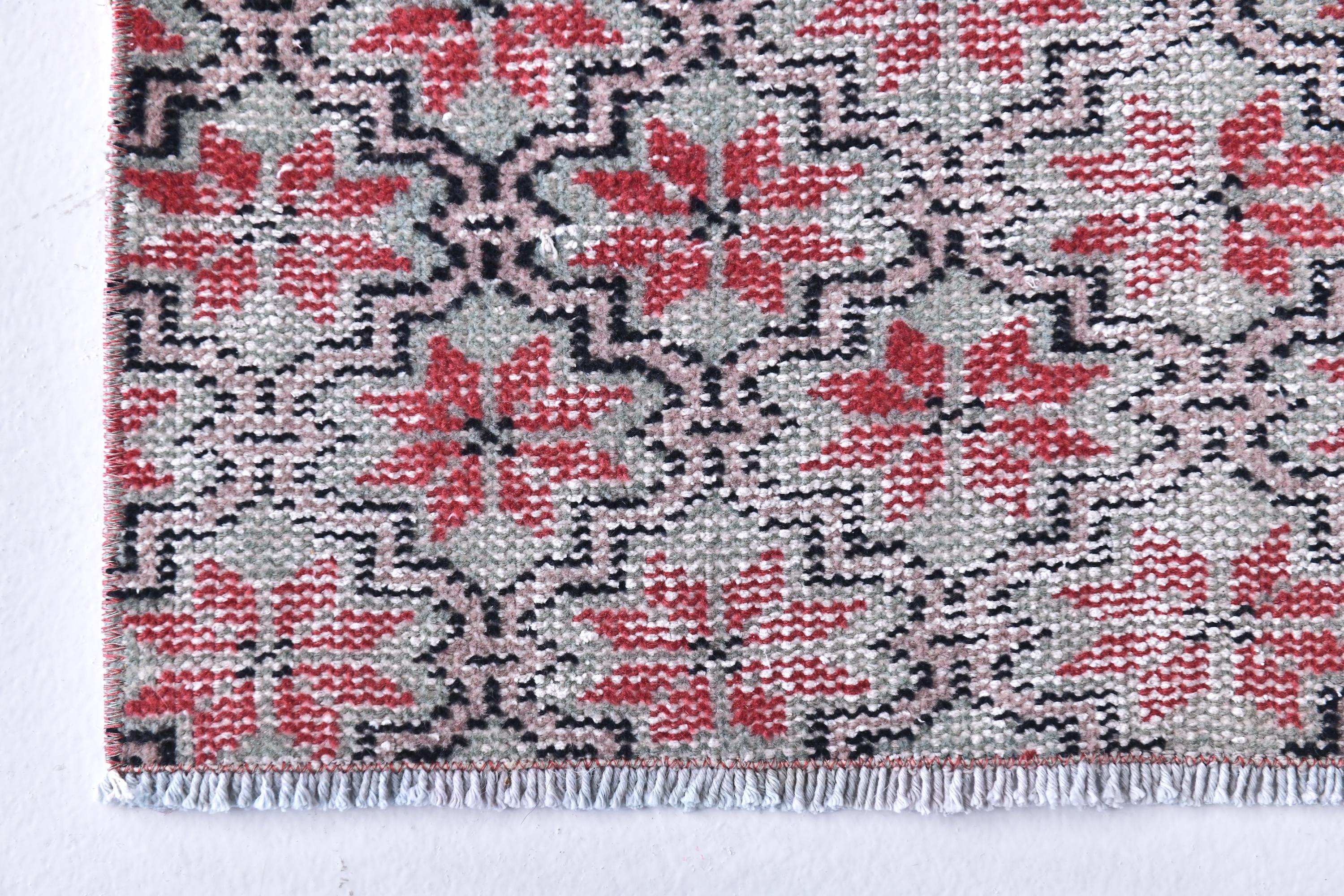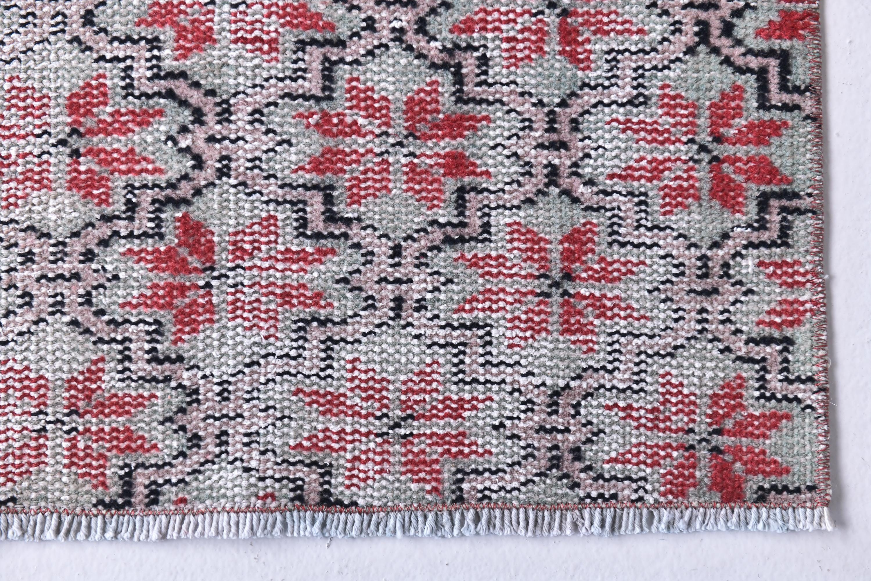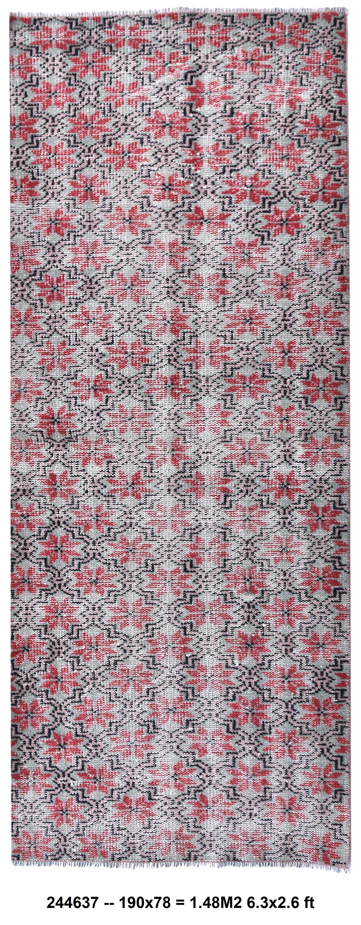 📜📌 Vintage Turkish kilim runner featuring red and green all-over geometric pattern with traditional Anatolian motifs, flat weave construction measuring 6.3x2.6 feet, perfect for hallways, corridors, and narrow spaces.