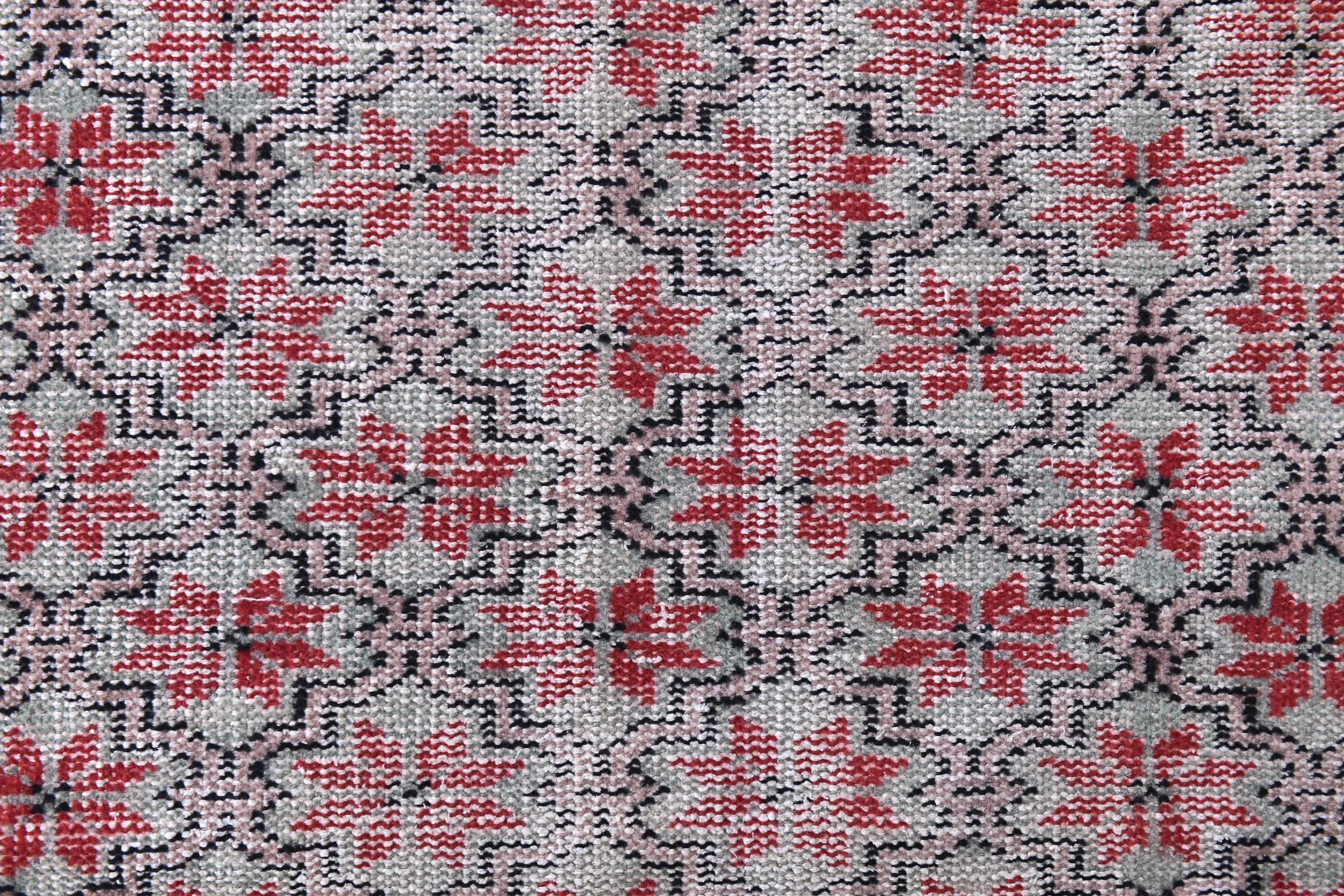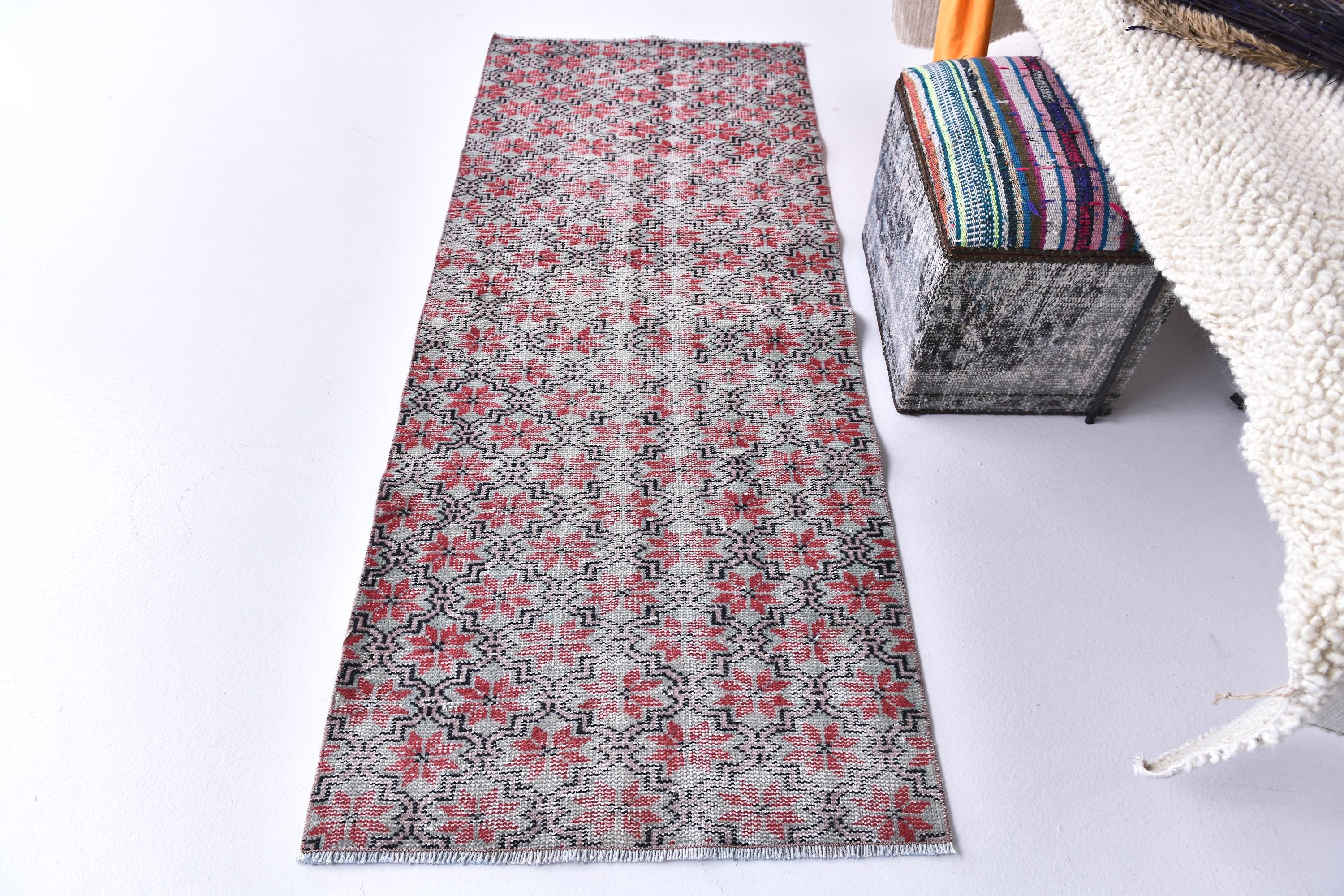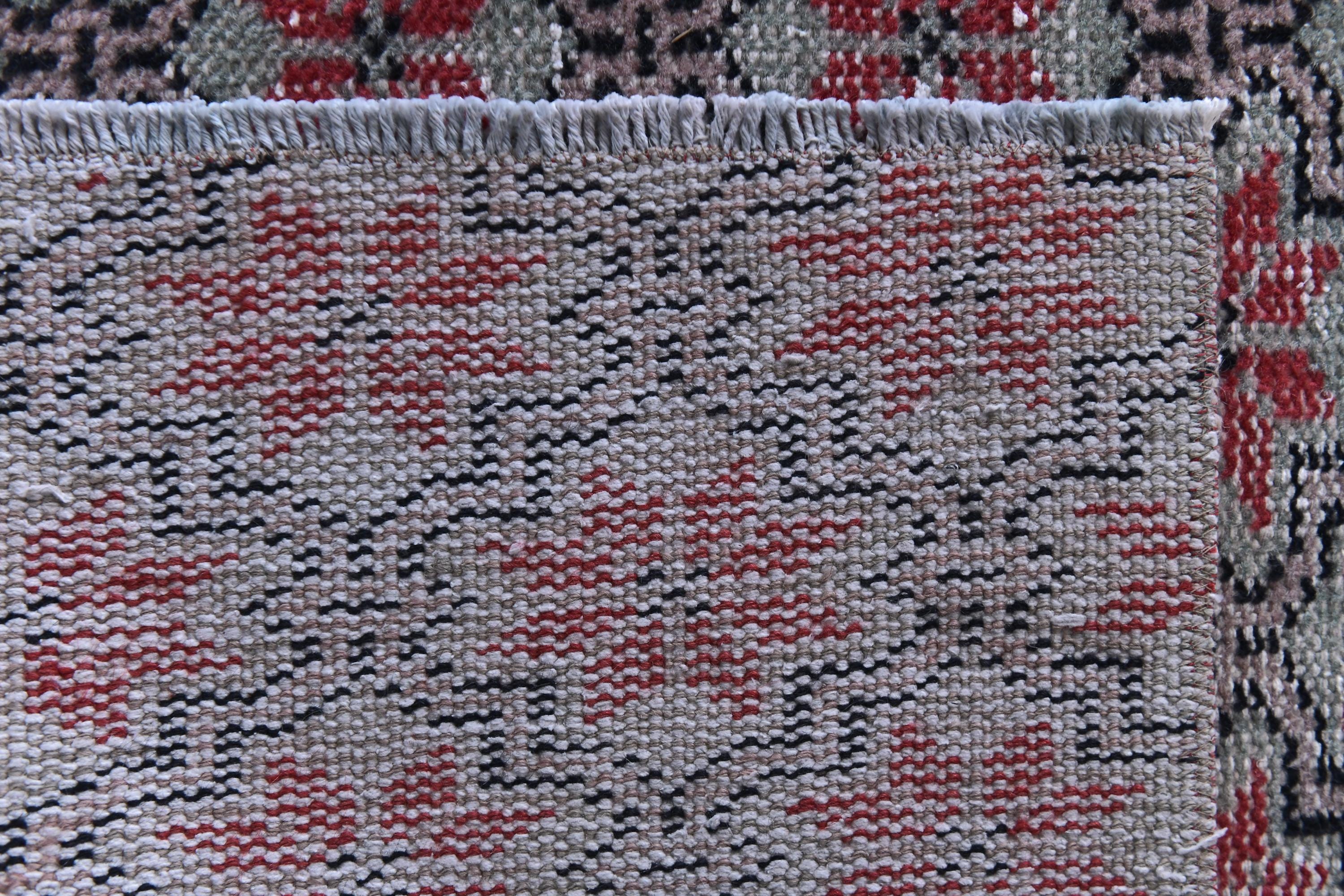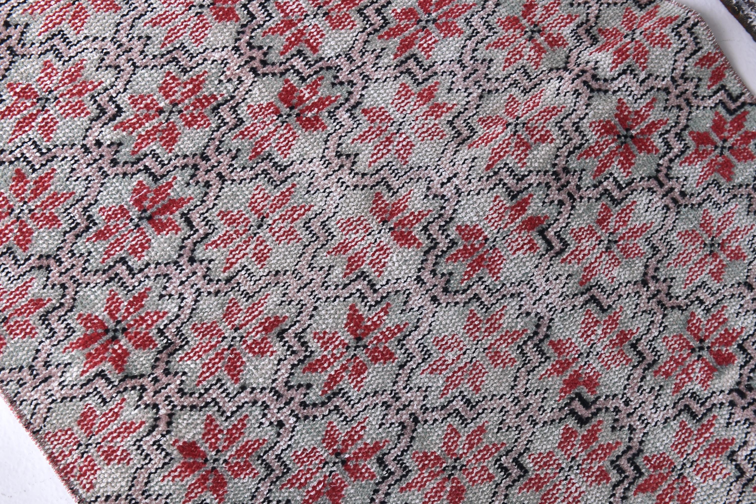 📜📌 Vintage Turkish kilim runner featuring red and green all-over geometric pattern with traditional Anatolian motifs, flat weave construction measuring 6.3x2.6 feet, perfect for hallways, corridors, and narrow spaces.