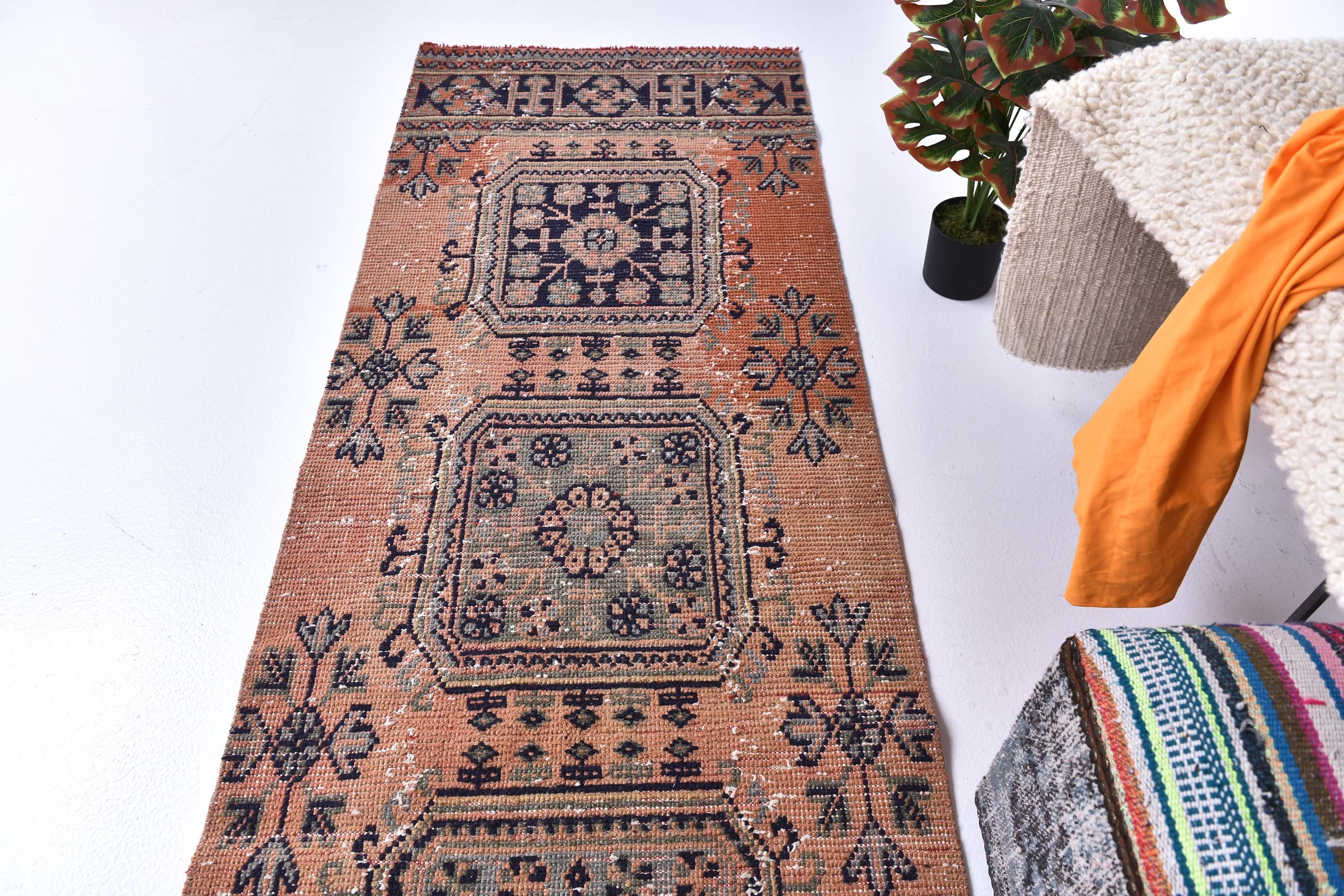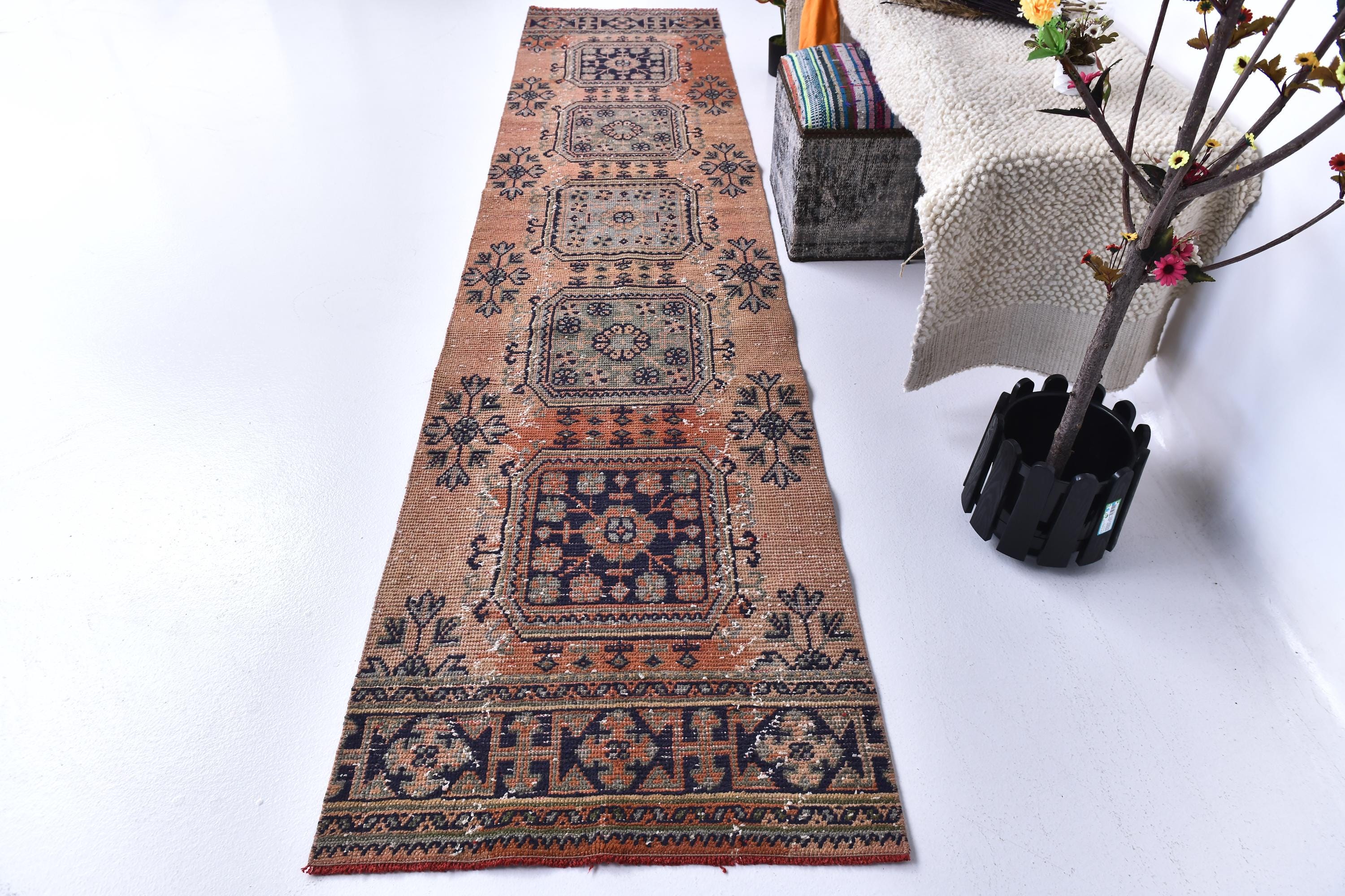 2x12 Vintage Turkish Terracotta Runner Rug, 2x12 Turkish Hand Knotted Hallway Rug, 2x12 Turquoise Blue Rug, Handmade Wool Rug, 2x12 Wool Hallway Rug, Hallway Decor, 2x12 Handmade Hallway Rug, 2x12 Terracotta Runner Rug, 2x12 Terracotta Rug, Soft Wool Rug, Tribal Rug, Doorway Rug, 2x12 Vintage Runner,