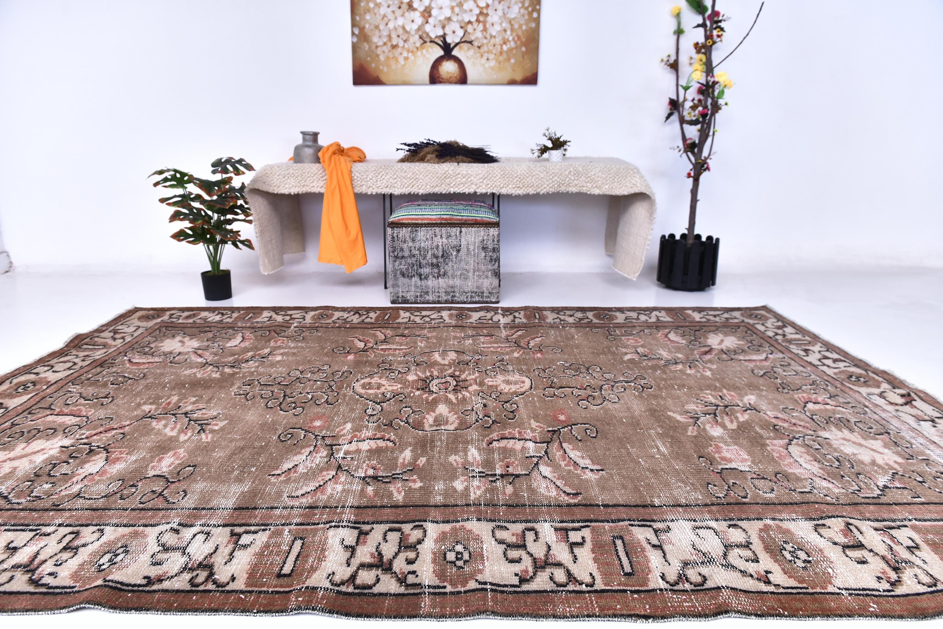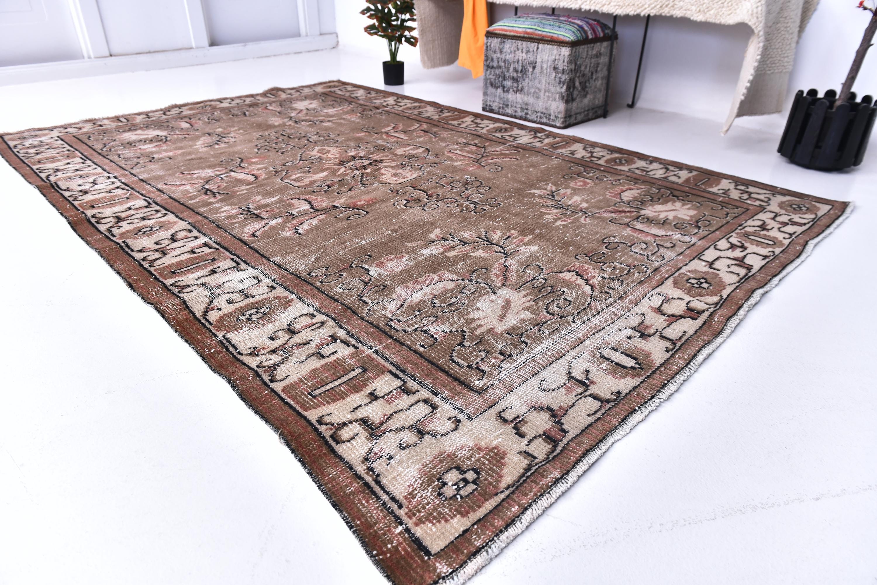 6x10 Antique Vintage Turkish Rug, Brown Color Rug, 6x10 Rug Handmade Wool Rug 6x10 Area Rug, 6x10 Turkish Rug For Living Room Bedroom, Soft Rug, 6x10 Vintage Rug, 6x10 Turkish Area Rug, Floral Rug, Persian Rug, Living Room Rug, kithcen Rug, Tribal Rug, 6x10 Rug, Brown Area Rug