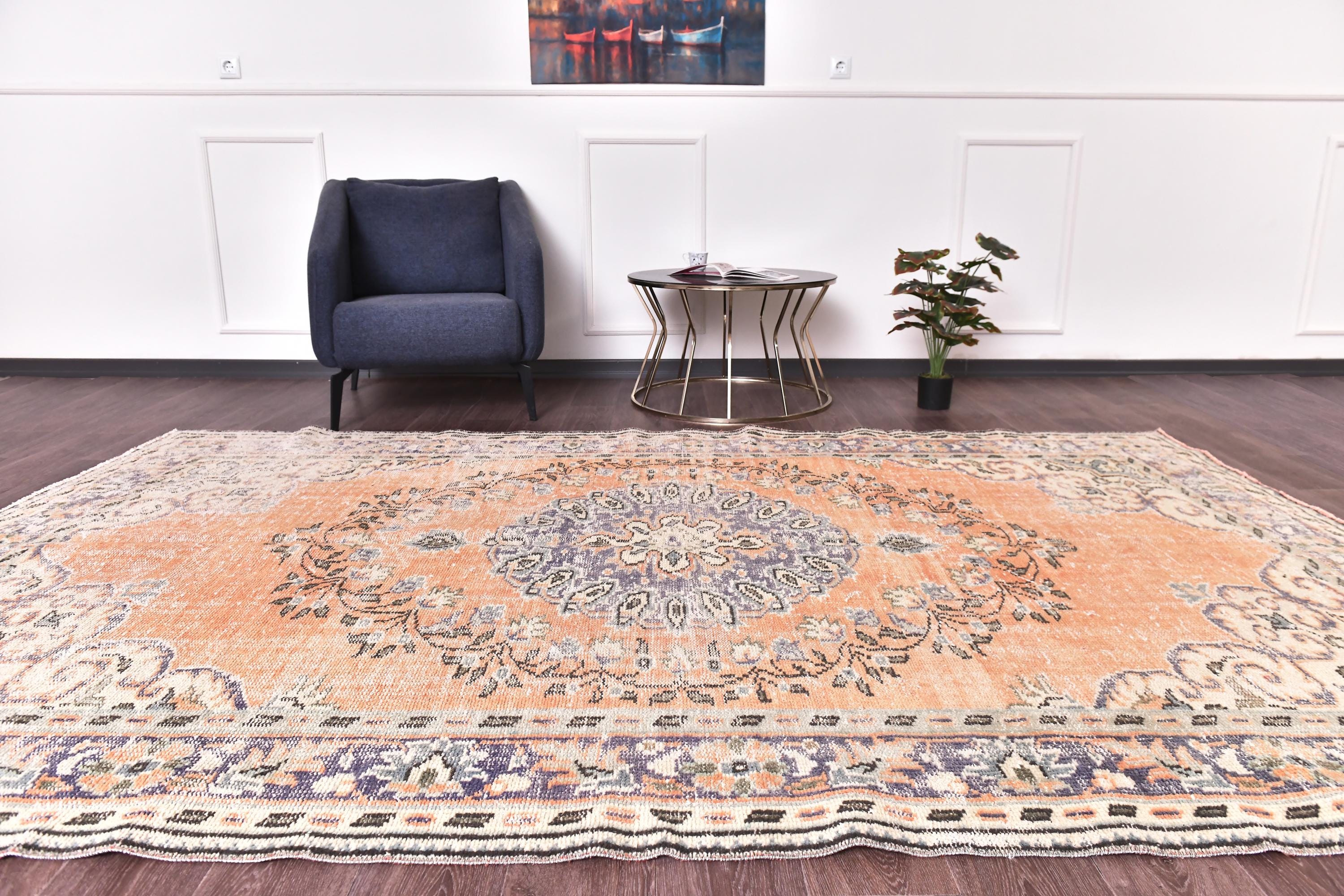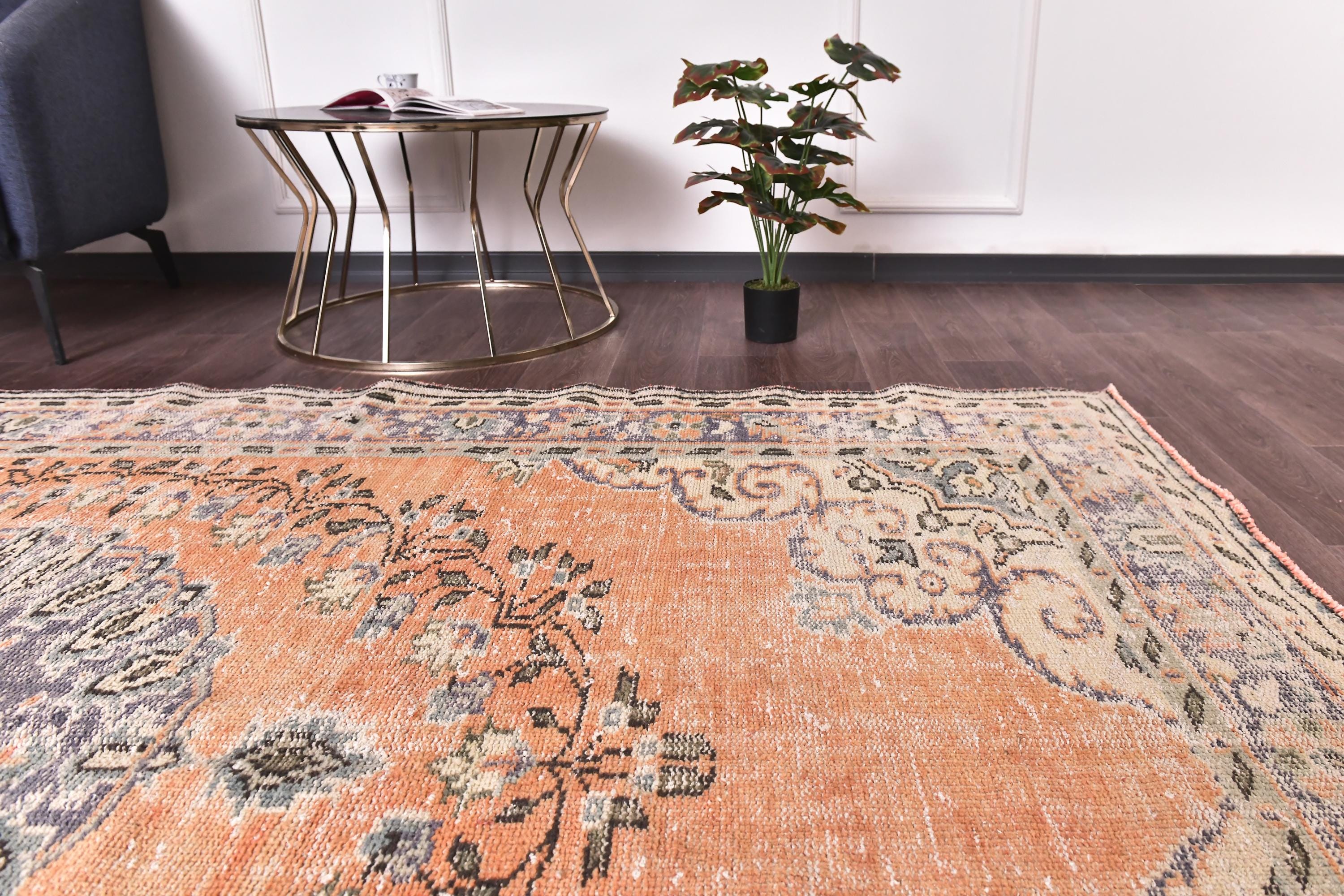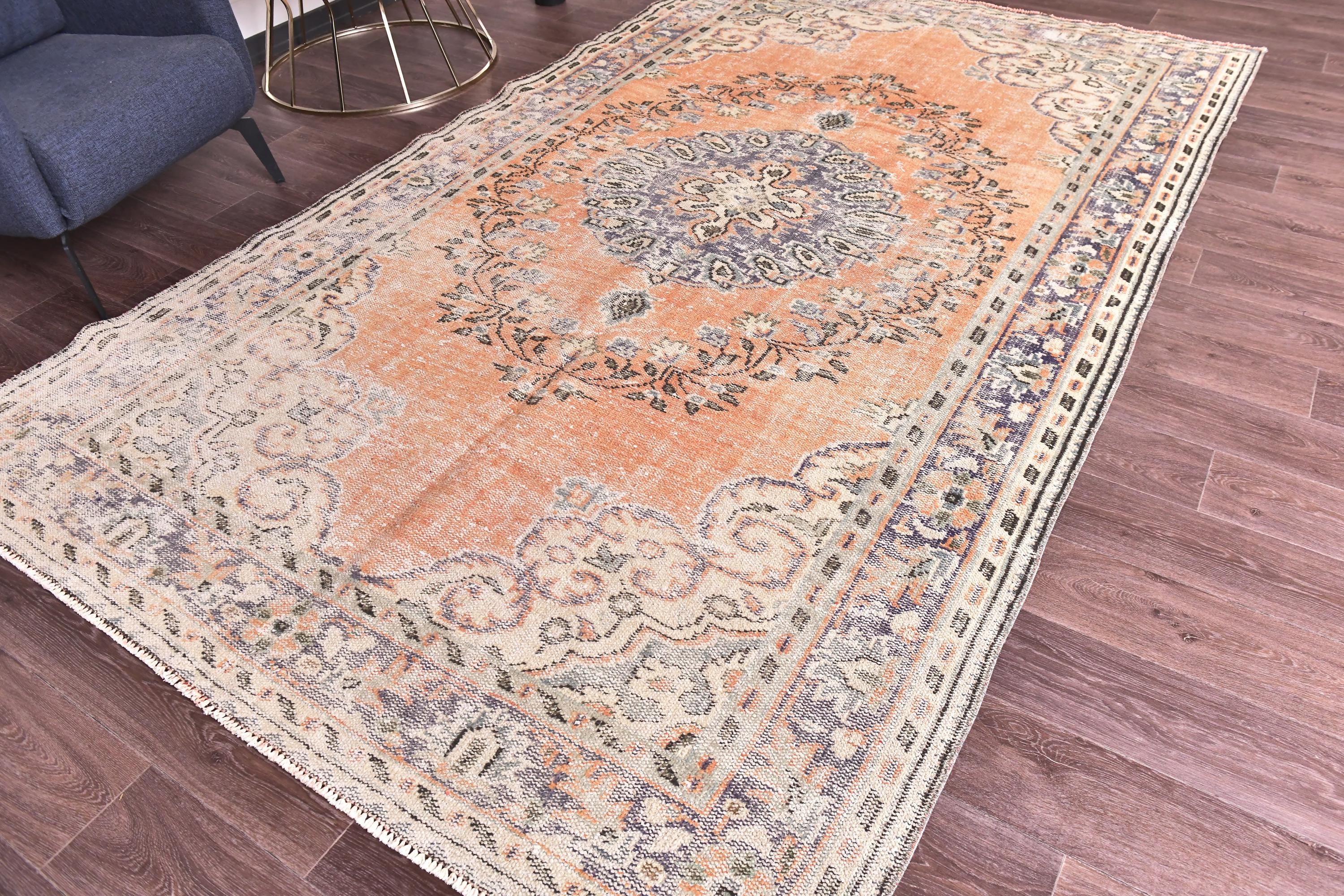 6x10 Antique Vintage Turkish Rug, Orange Blue Color Rug, 6x10 Rug Handmade Wool Rug 6x10 Area Rug, 6x10 Turkish Rug For Living Room Bedroom, Soft Rug, 6x10 Vintage Rug, 6x10 Turkish Area Rug, Floral Rug, Persian Rug, Living Room Rug, kithcen Rug, Tribal Rug, 6x10 Rug