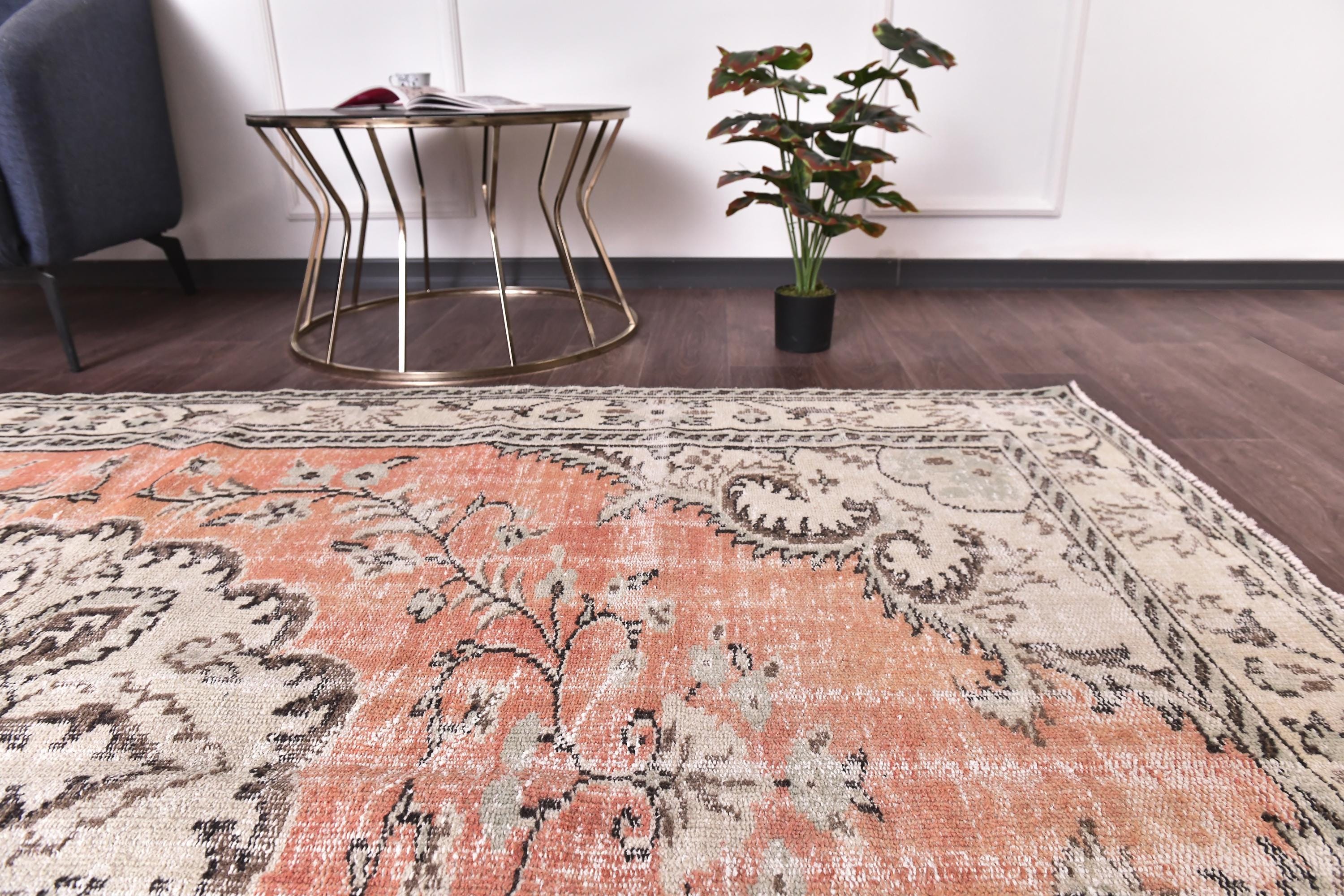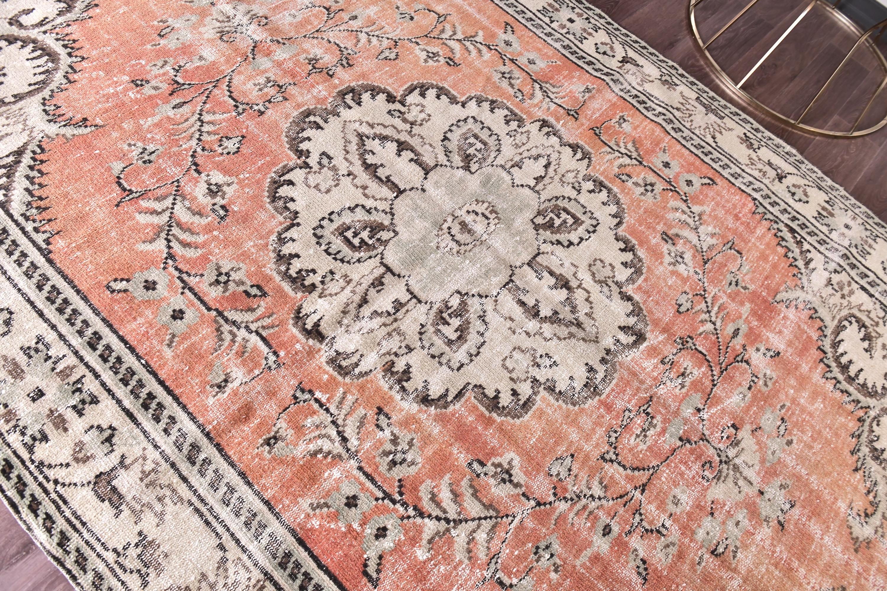 6x10 Antique Vintage Turkish Rug, Orange Color Rug, 6x10 Rug Handmade Wool Rug 6x10 Area Rug, 6x10 Turkish Rug For Living Room Bedroom, Soft Rug, 6x10 Vintage Rug, 6x10 Turkish Area Rug, Floral Rug, Persian Rug, Living Room Rug, kithcen Rug, Tribal Rug, 6x10 Rug, Brown Area Rug