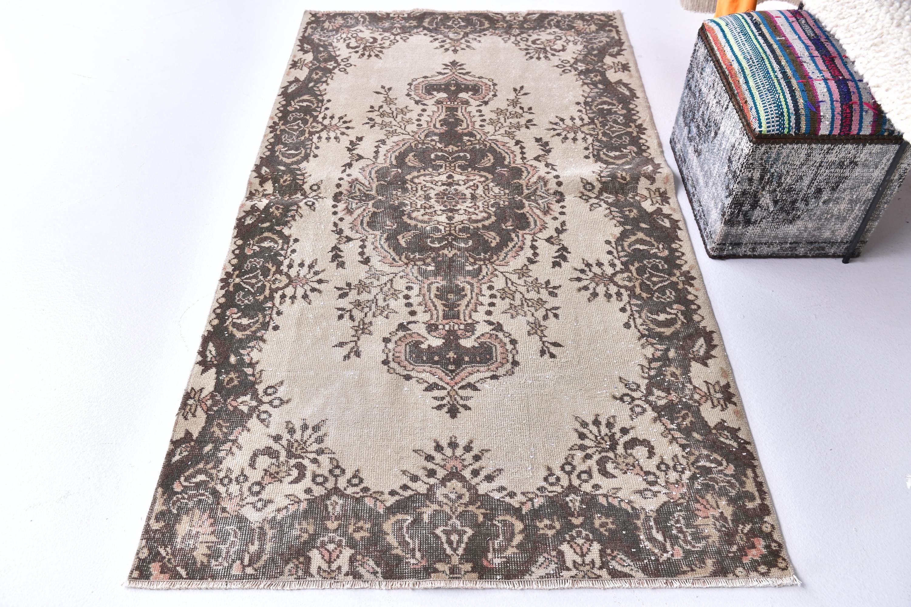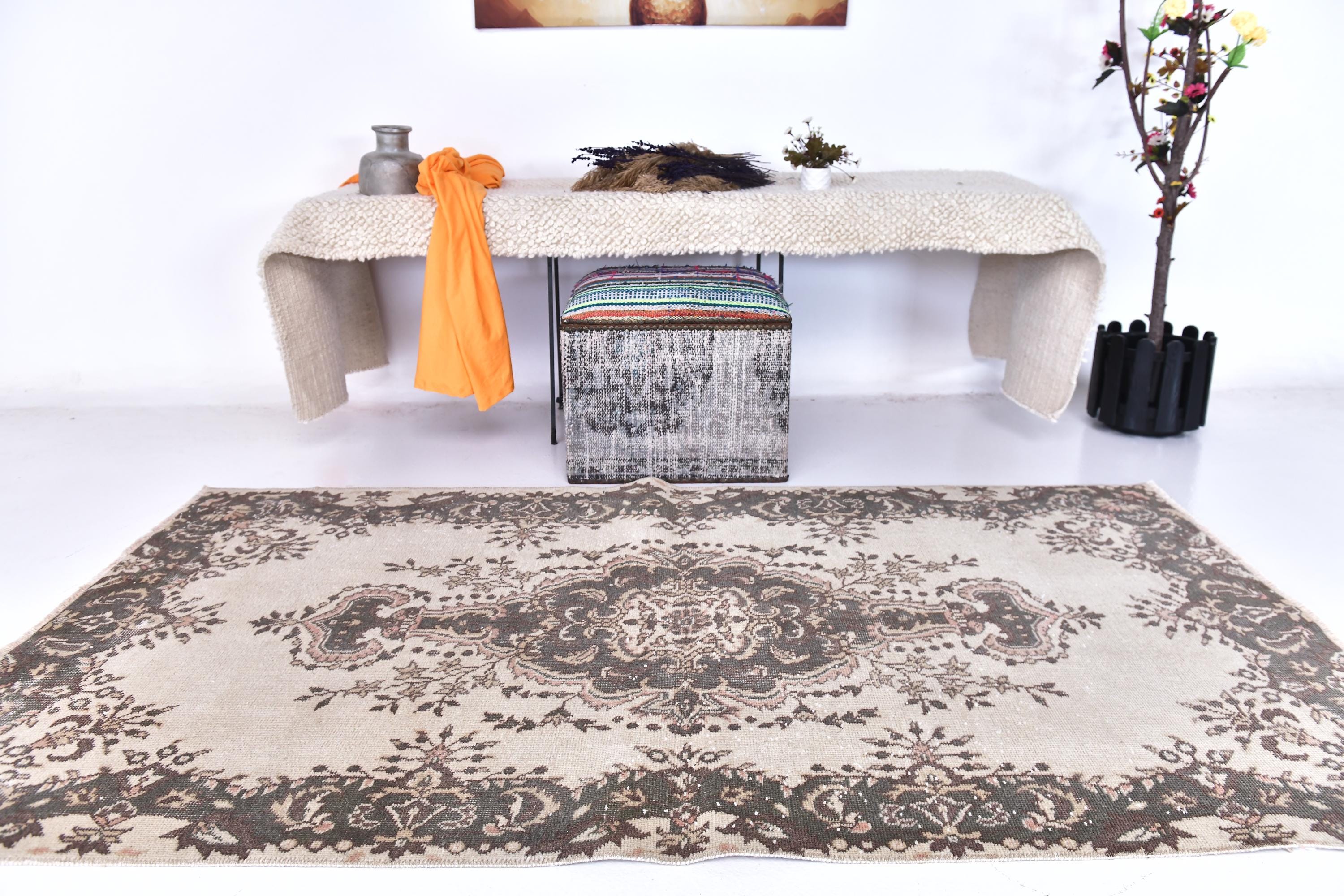 📜📌 3x6 Vintage Elegant Accent Rug, Cream Green Color Rug, 3x6 Handmade Wool Rug, 3x6 Medallion Rug, 3x6 Green rug, 3x6 Bedroom Living Room Rug, Area Rug 3x6, Naturel Rug, Handmade Rug, 3x6 Rug, Medallion Design Rug,