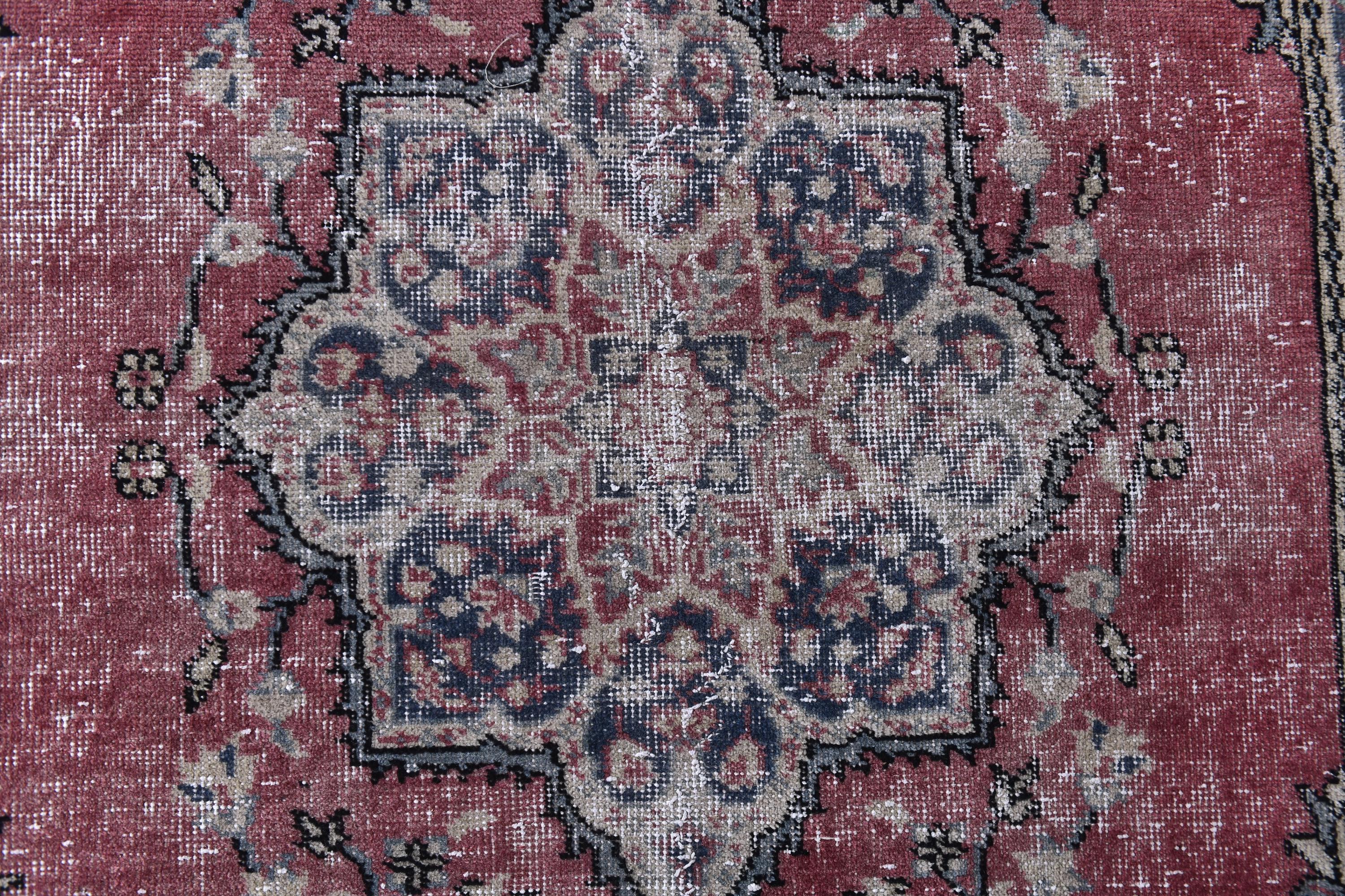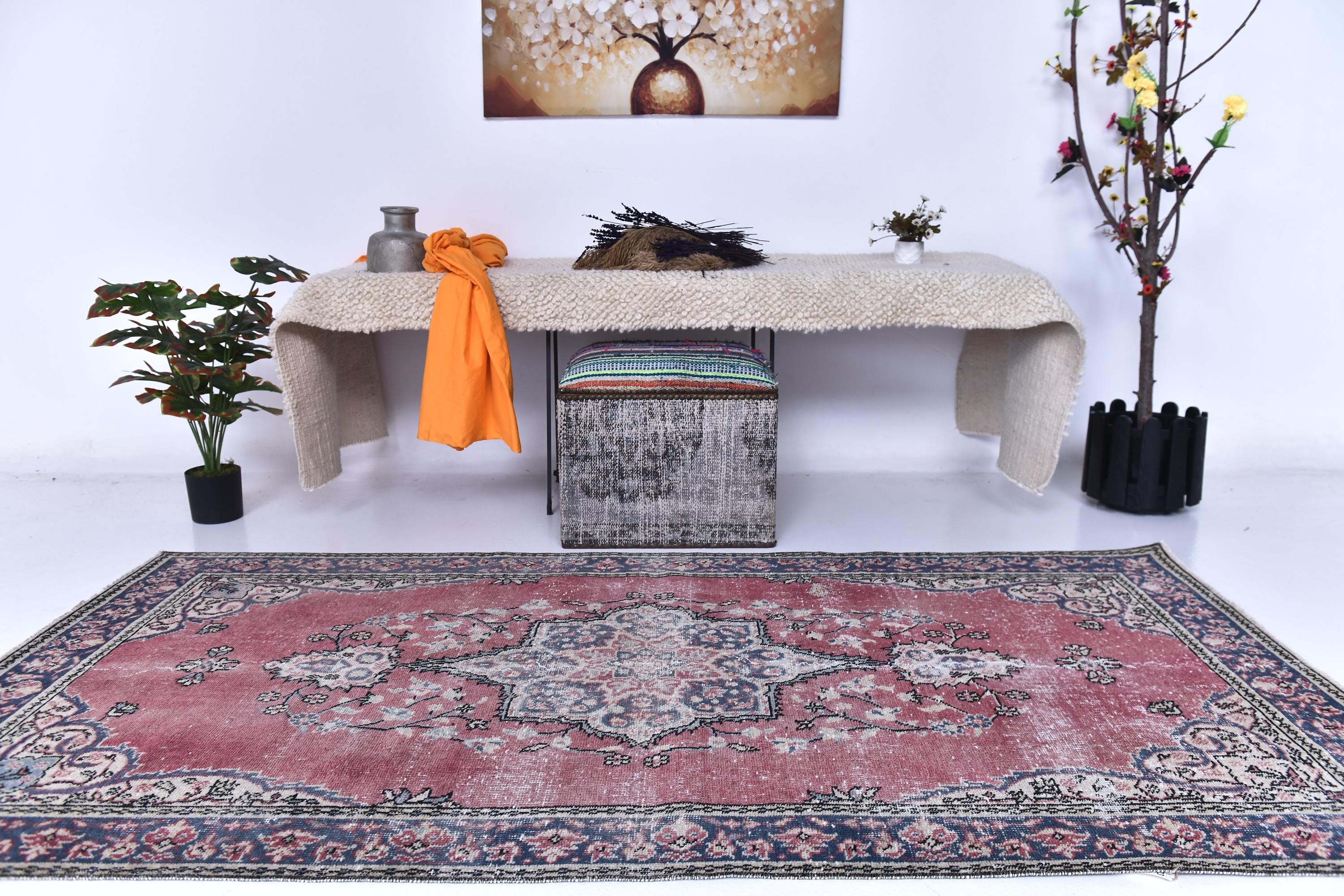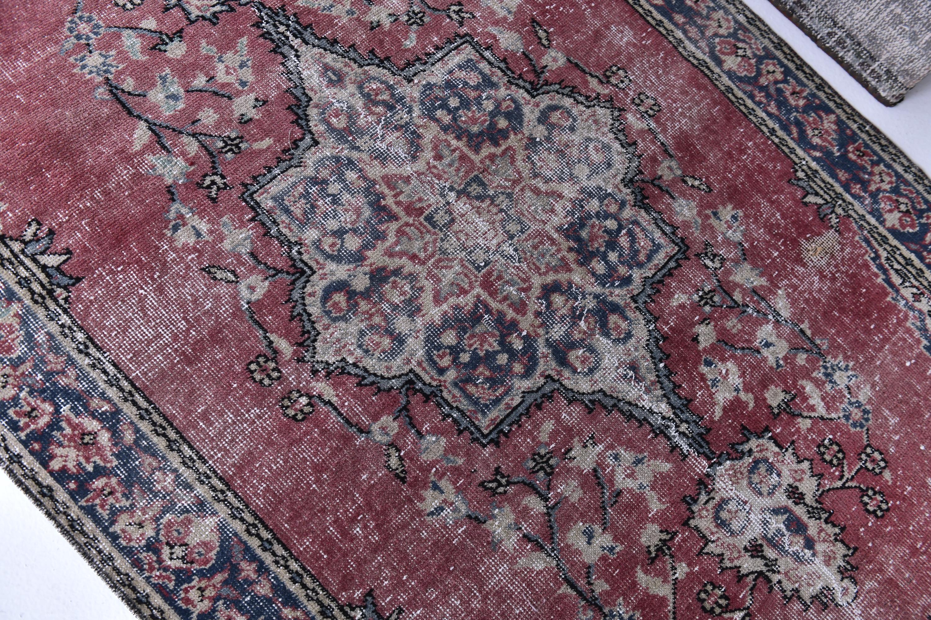 📜📌 Medium-sized vintage-style area rug featuring a soft burgundy and blue color palette with an intricate Floral design as the central medallion motif. The distressed finish showcases authentic aged character with detailed floral and botanical patterns throughout. Red ornate borders frame the delicate pink field, creating a beautiful contrast with traditional Persian-inspired craftsmanship perfect for adding elegance to any room.