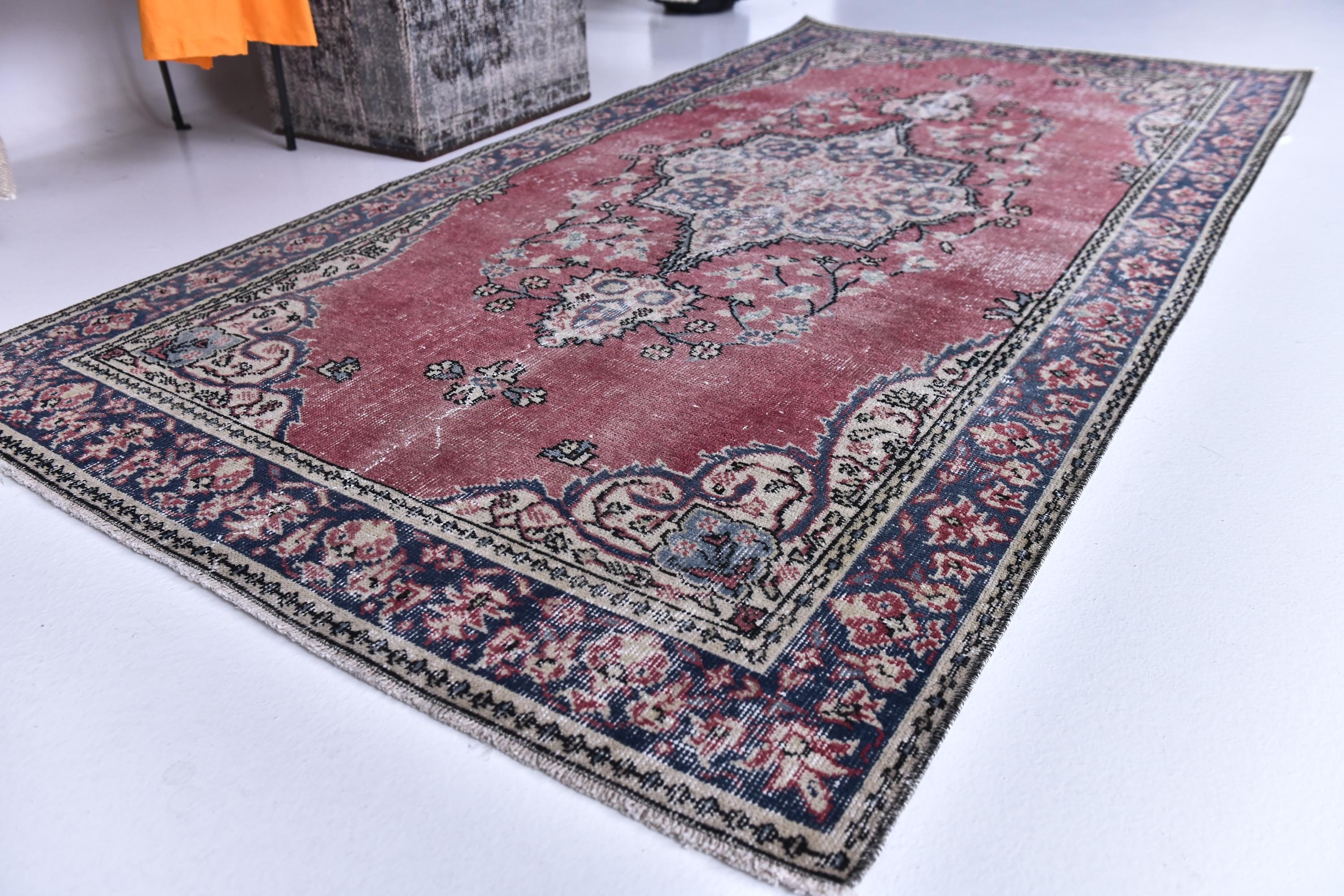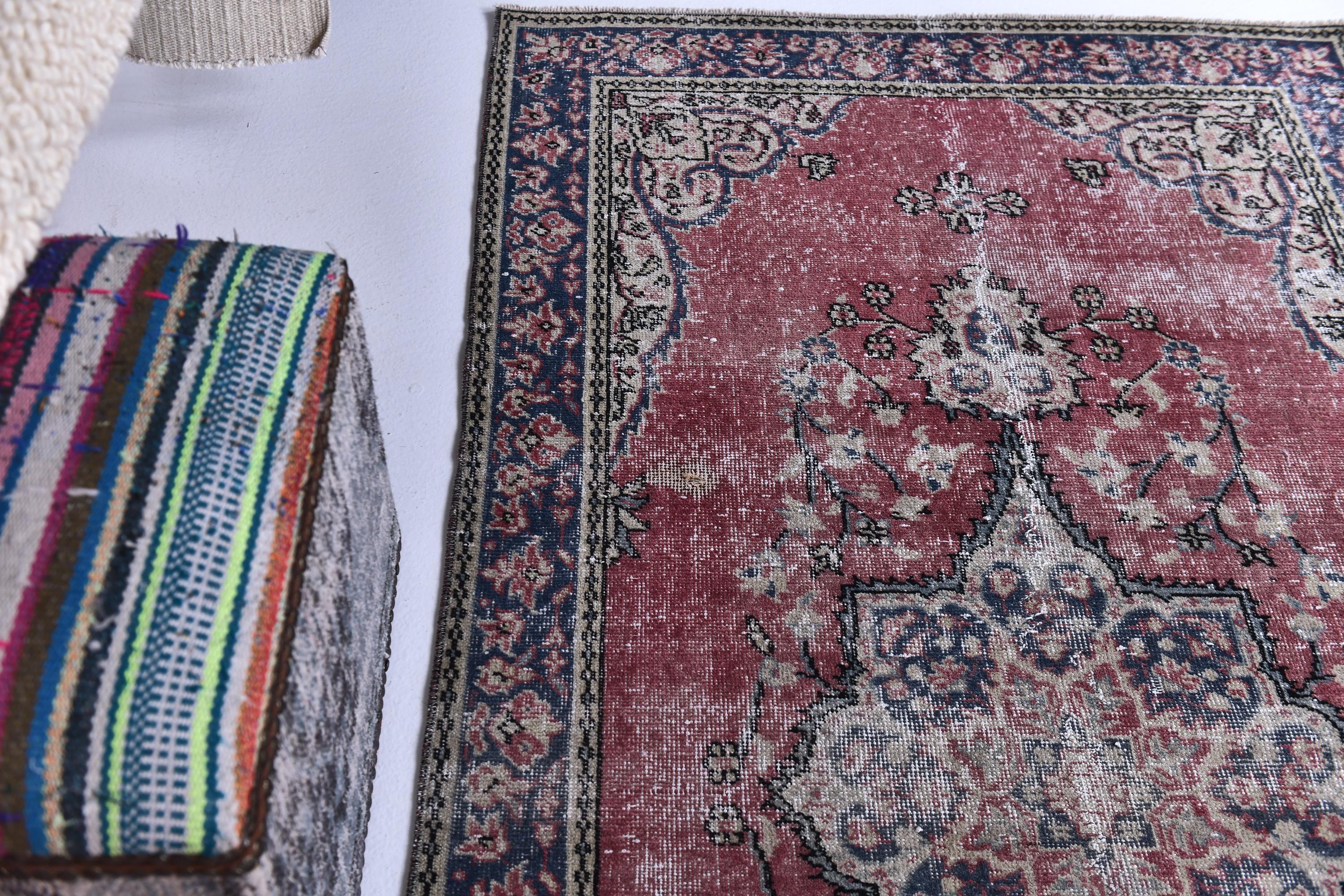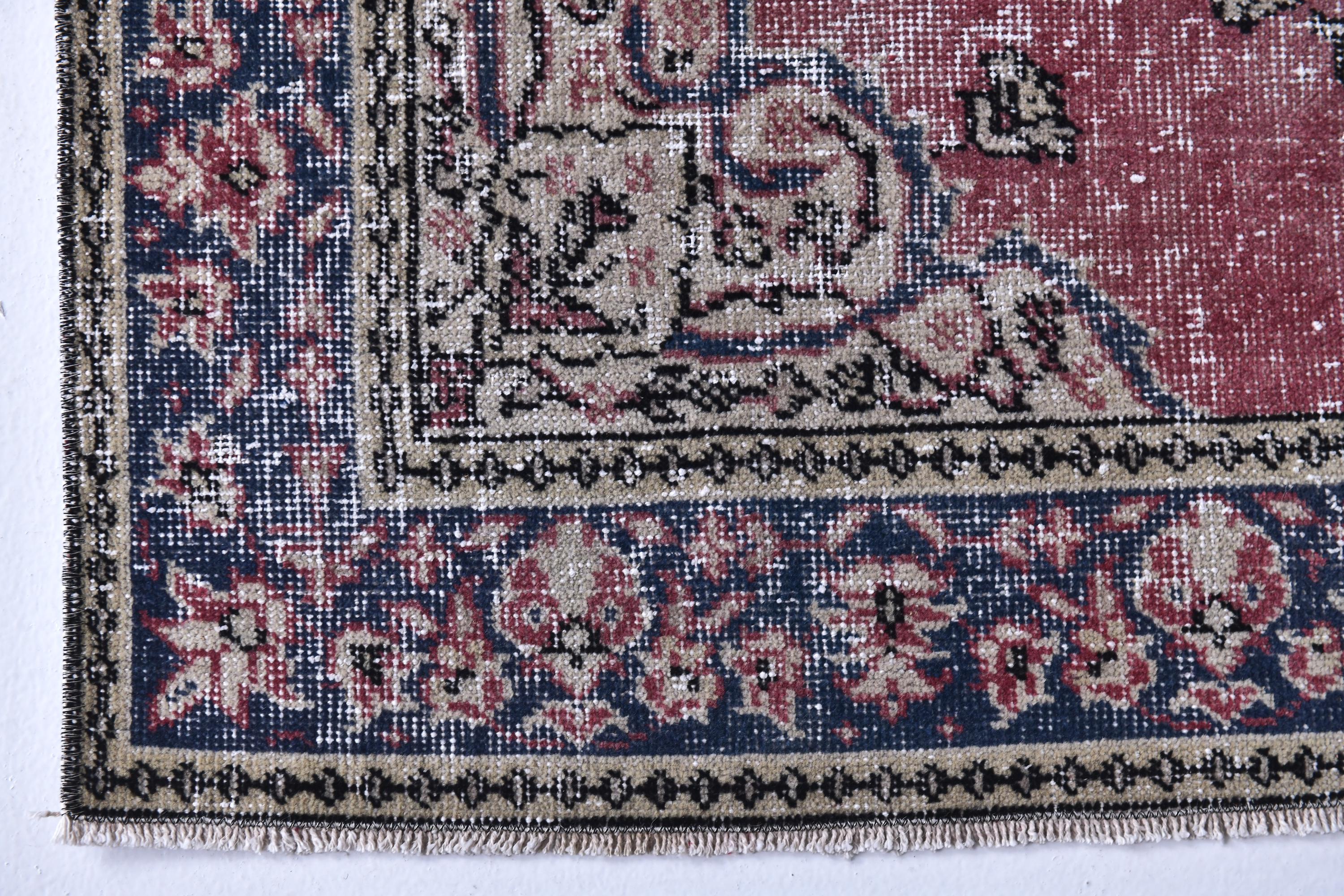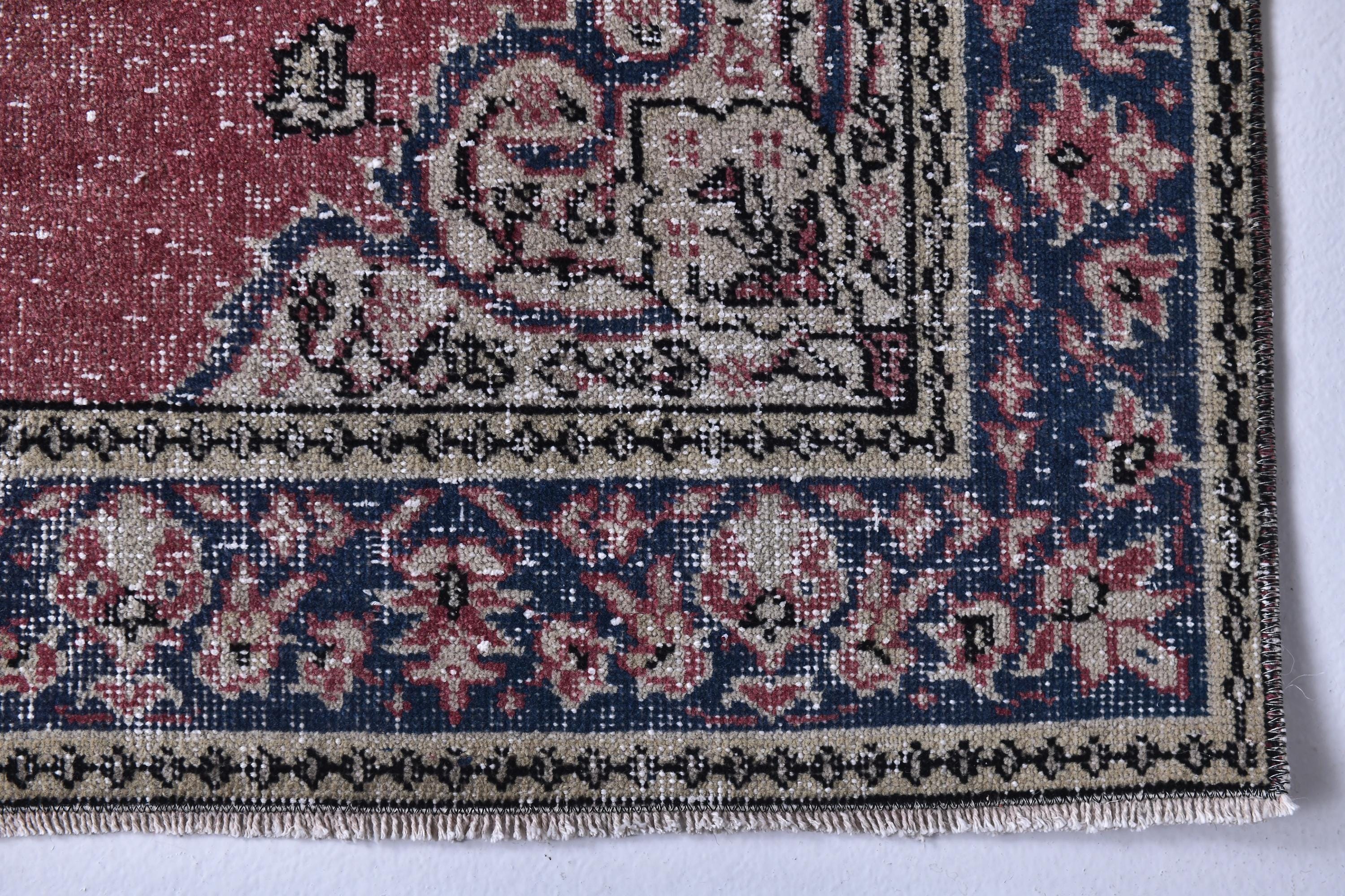 📜📌 Medium-sized vintage-style area rug featuring a soft burgundy and blue color palette with an intricate Floral design as the central medallion motif. The distressed finish showcases authentic aged character with detailed floral and botanical patterns throughout. Red ornate borders frame the delicate pink field, creating a beautiful contrast with traditional Persian-inspired craftsmanship perfect for adding elegance to any room.