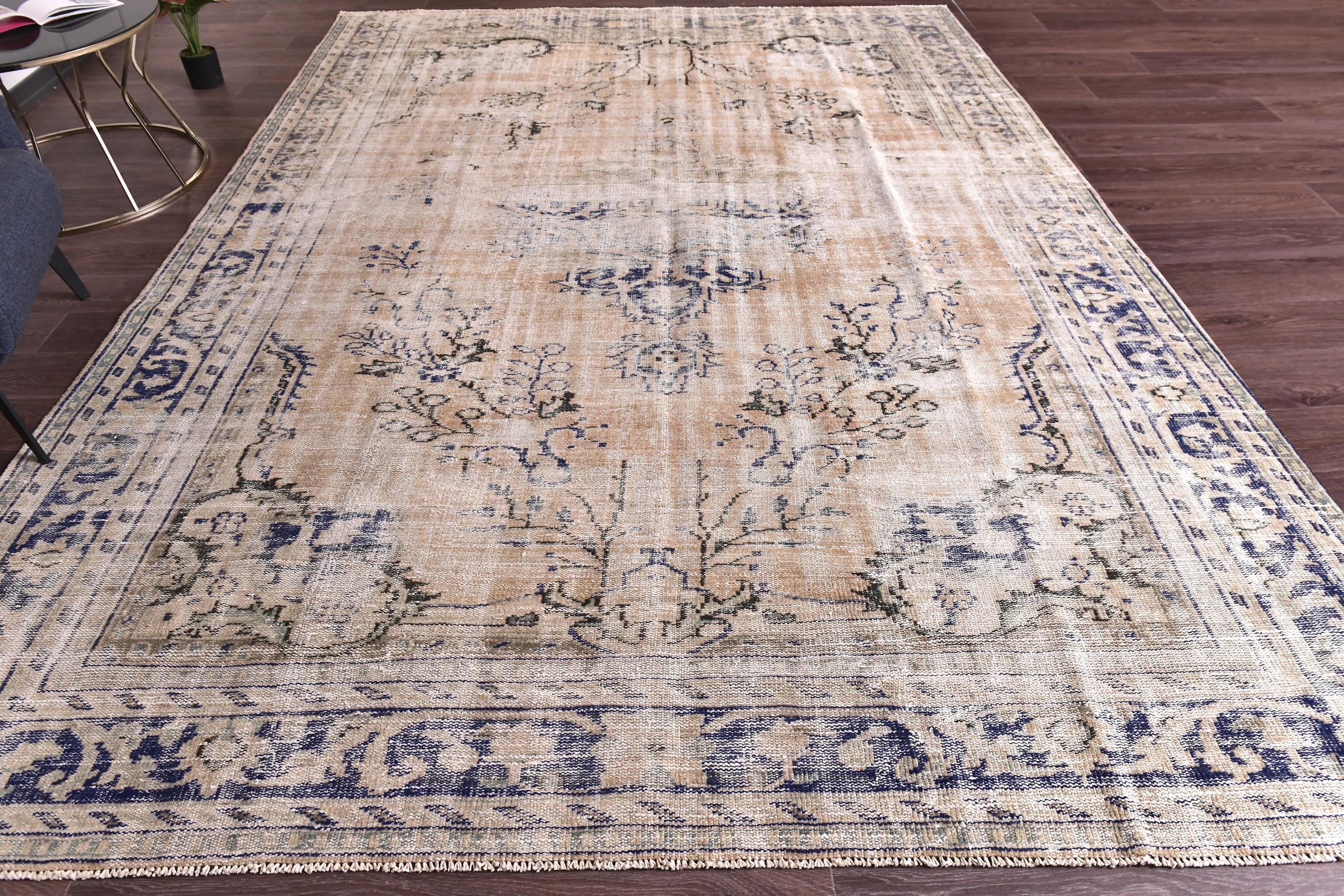 8x12 Antique Vintage Turkish Rug, Muted Orange Blue Color Rug, 8x12 Rug Handmade Wool Rug 8x12 Area Rug, 8x12 Turkish Rug For Living Room Bedroom, Soft Rug, 8x12 Vintage Rug, 8x12 Turkish Area Rug, Floral Rug, Persian Rug, Living Room Rug, kithcen Rug, Tribal Rug, 8x12 Rug, 8x12 Farmhouse Rug