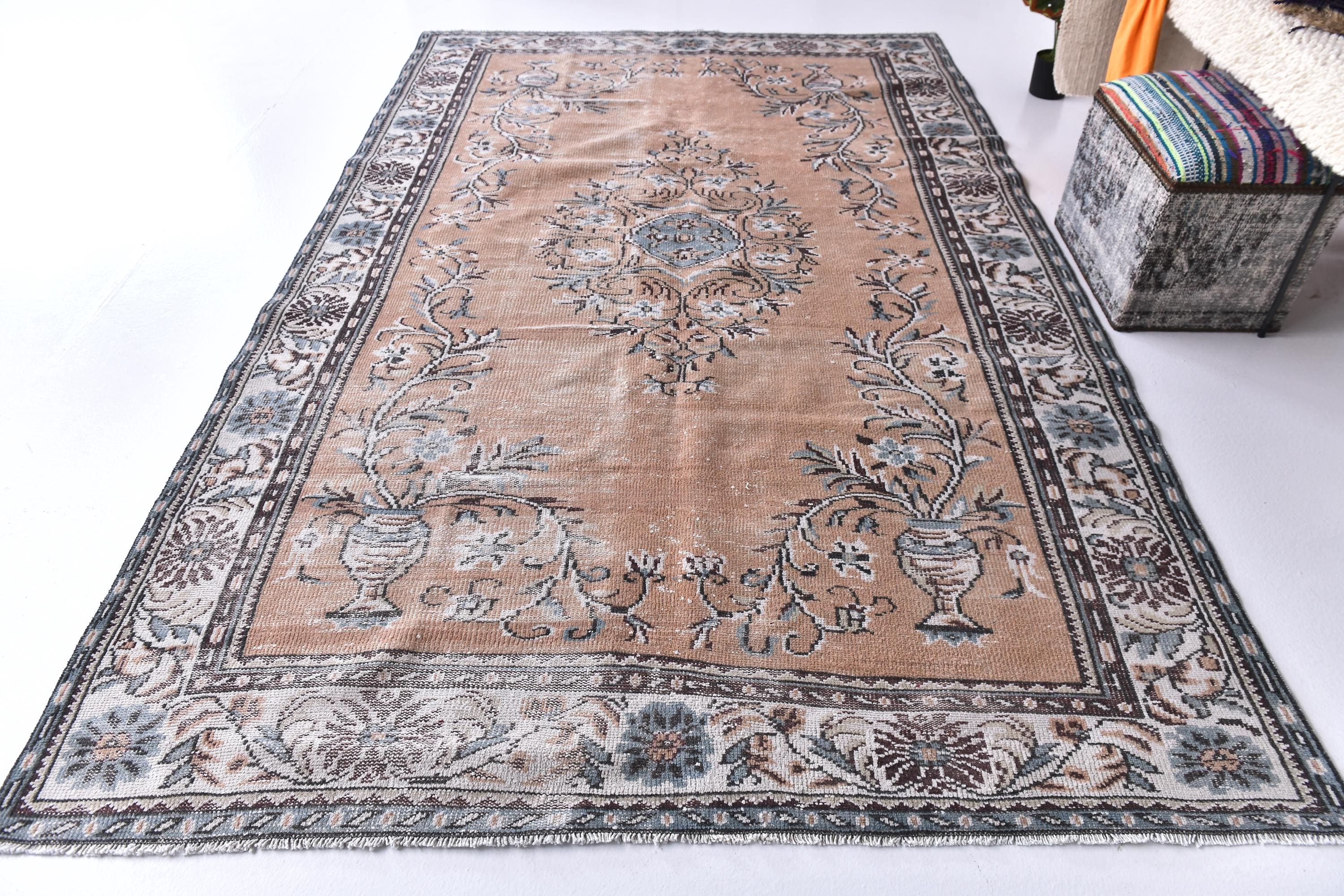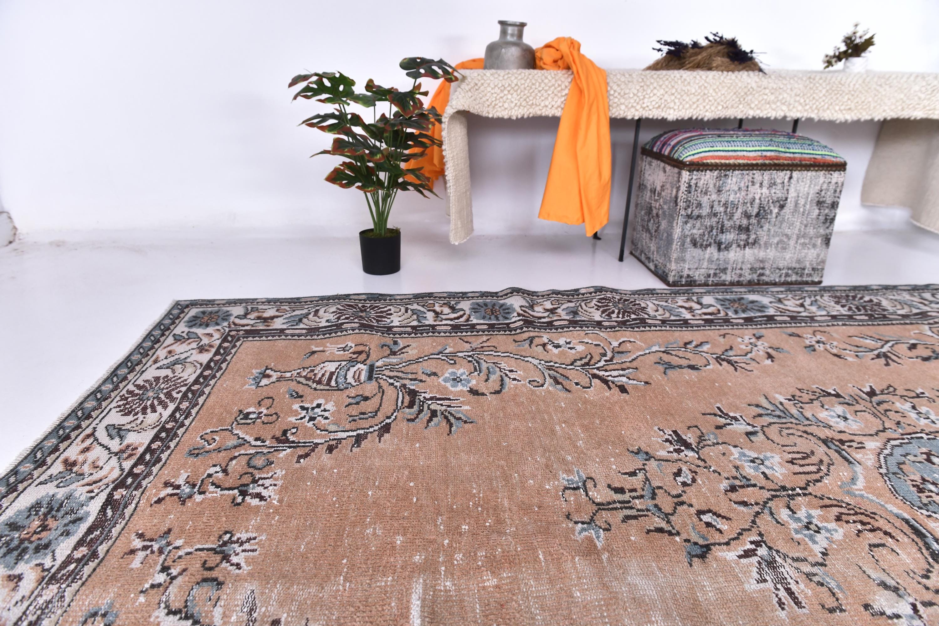 6x9 Antique Vintage Turkish Rug, Orange Color Rug, 6x9 Rug Handmade Wool Rug 6x9 Area Rug, 6x9 Turkish Rug For Living Room Bedroom, Soft Rug, 6x9 Vintage Rug, 6x9 Turkish Area Rug, Floral Rug, Persian Rug, Living Room Rug, kithcen Rug, Tribal Rug, 6x9 Rug, Faded Area Rug