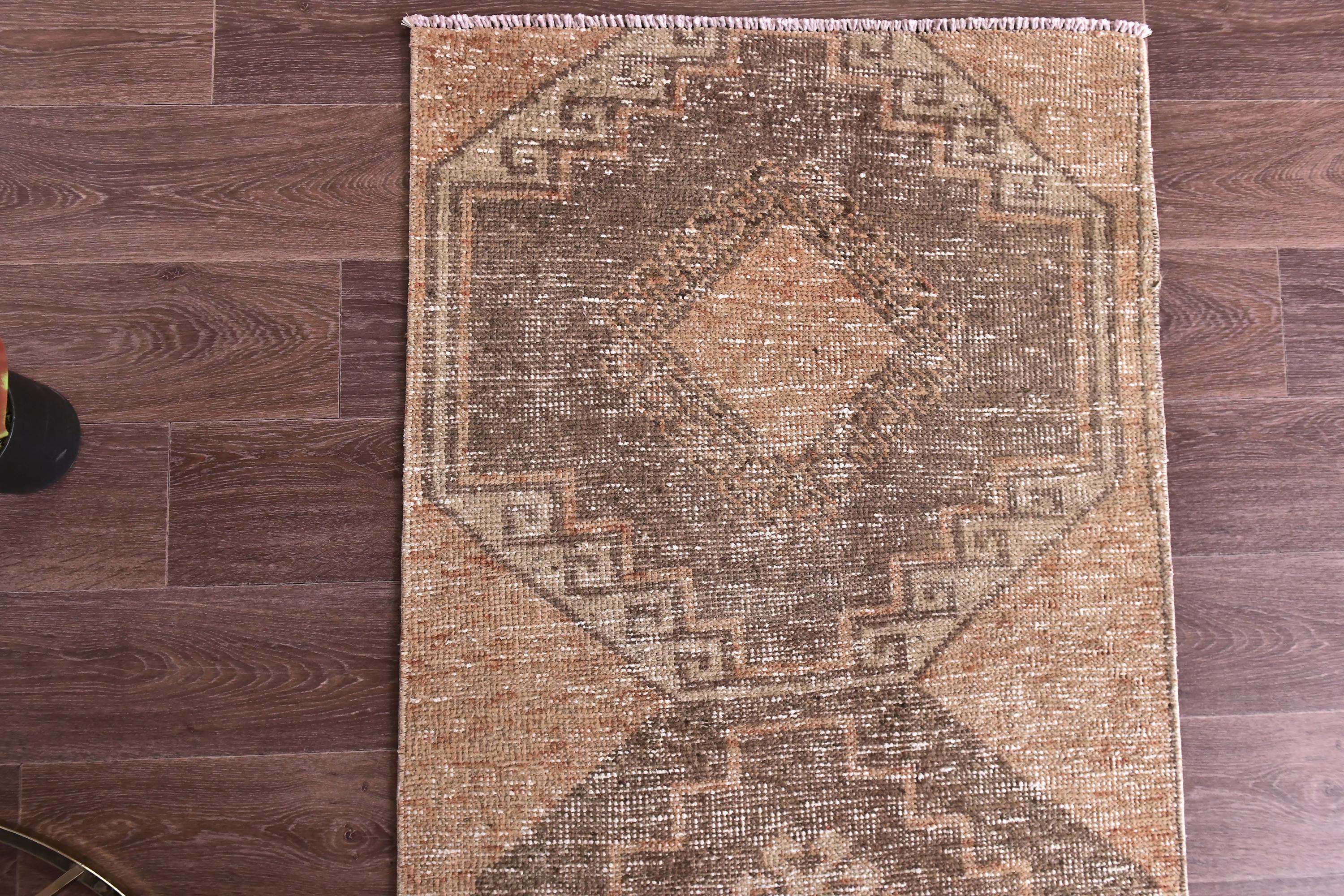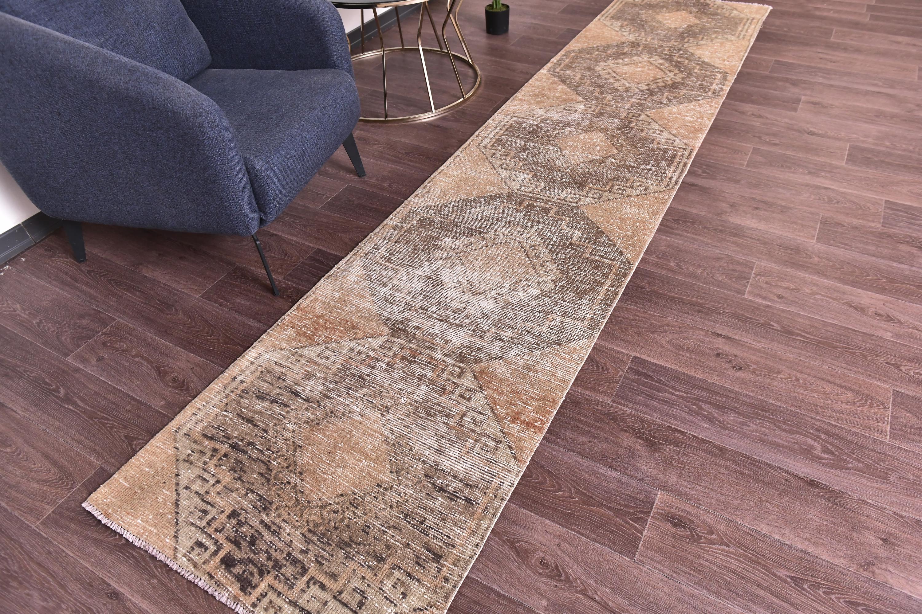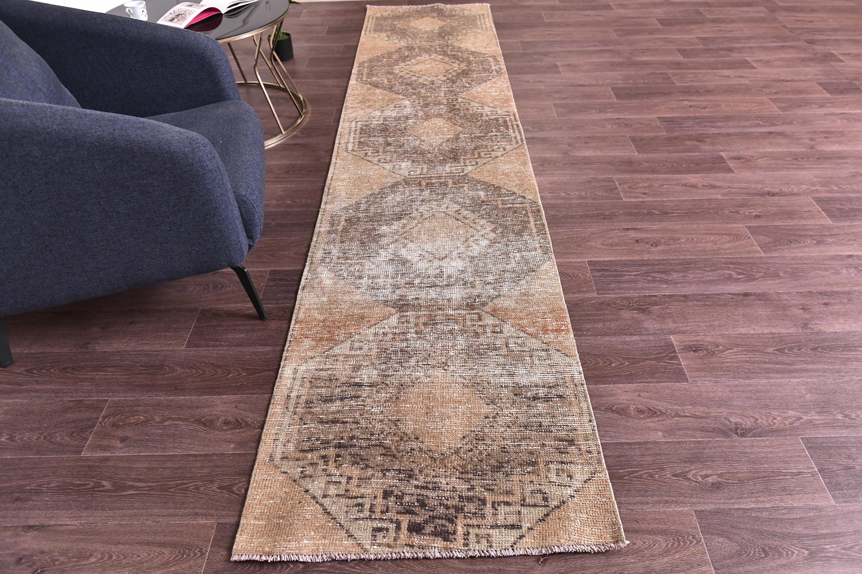 2x11 Vintage Turkish Runner Rug, 2x11 Turkish Hand Knotted Hallway Rug, 2x11 Brown Color Rug, Handmade Wool Rug, 2x11 Wool Hallway Rug, Hallway Decor, 2x11 Handmade Hallway Rug, 2x11 Brown Runner Rug, 2x11 Brown Rug, Soft Wool Rug, Tribal Rug, Doorway Rug, 2x11 Vintage Runner,