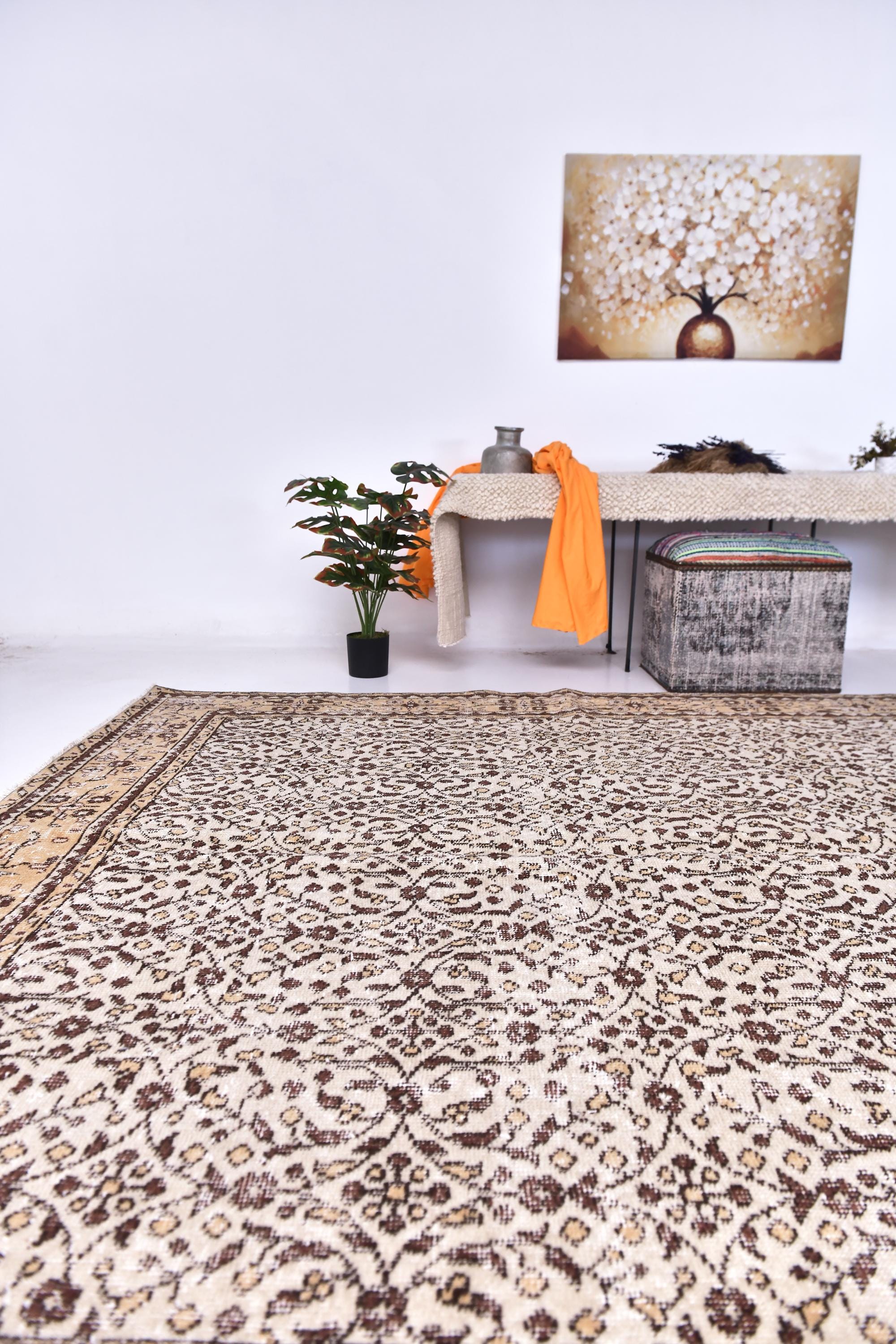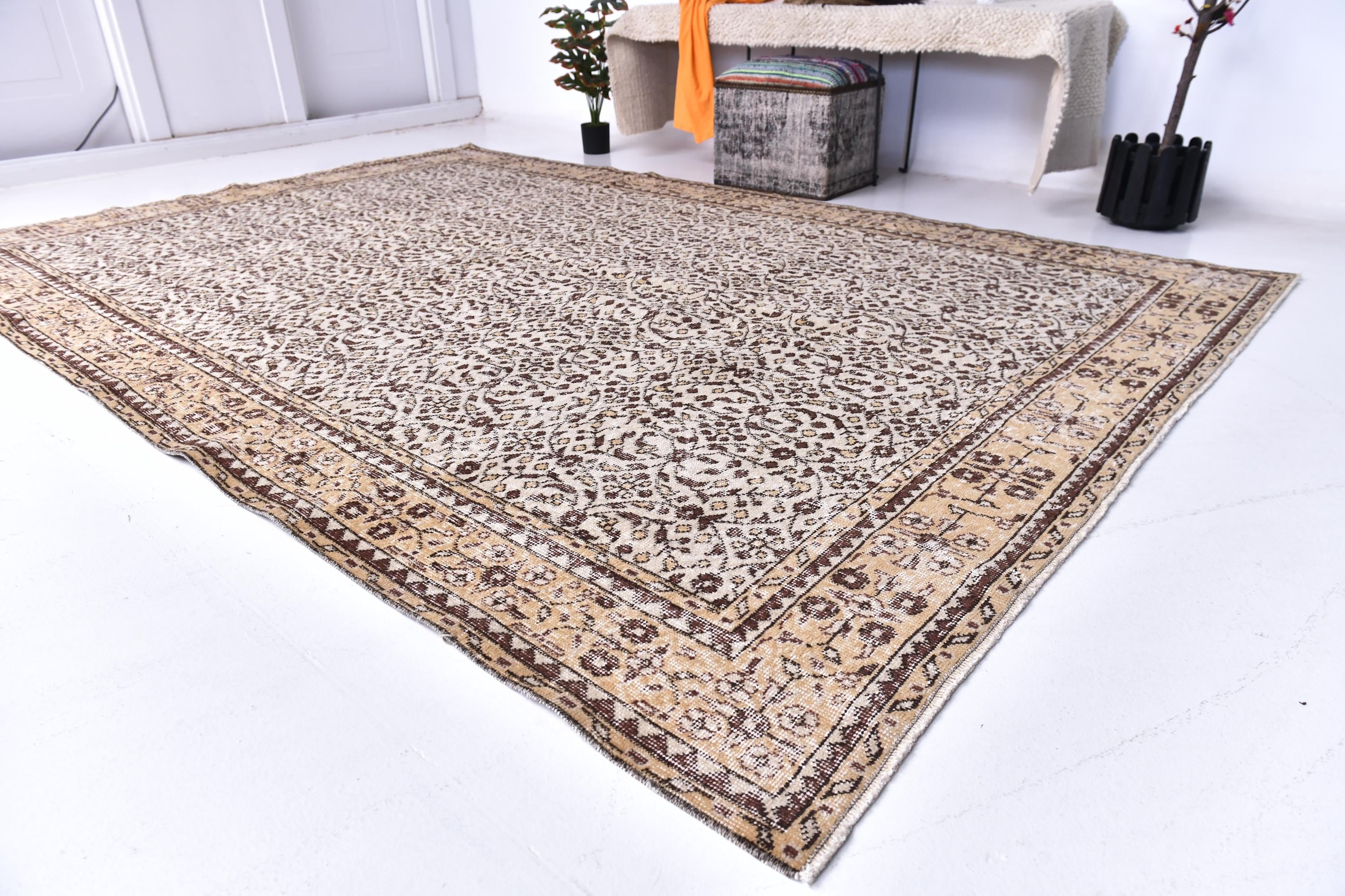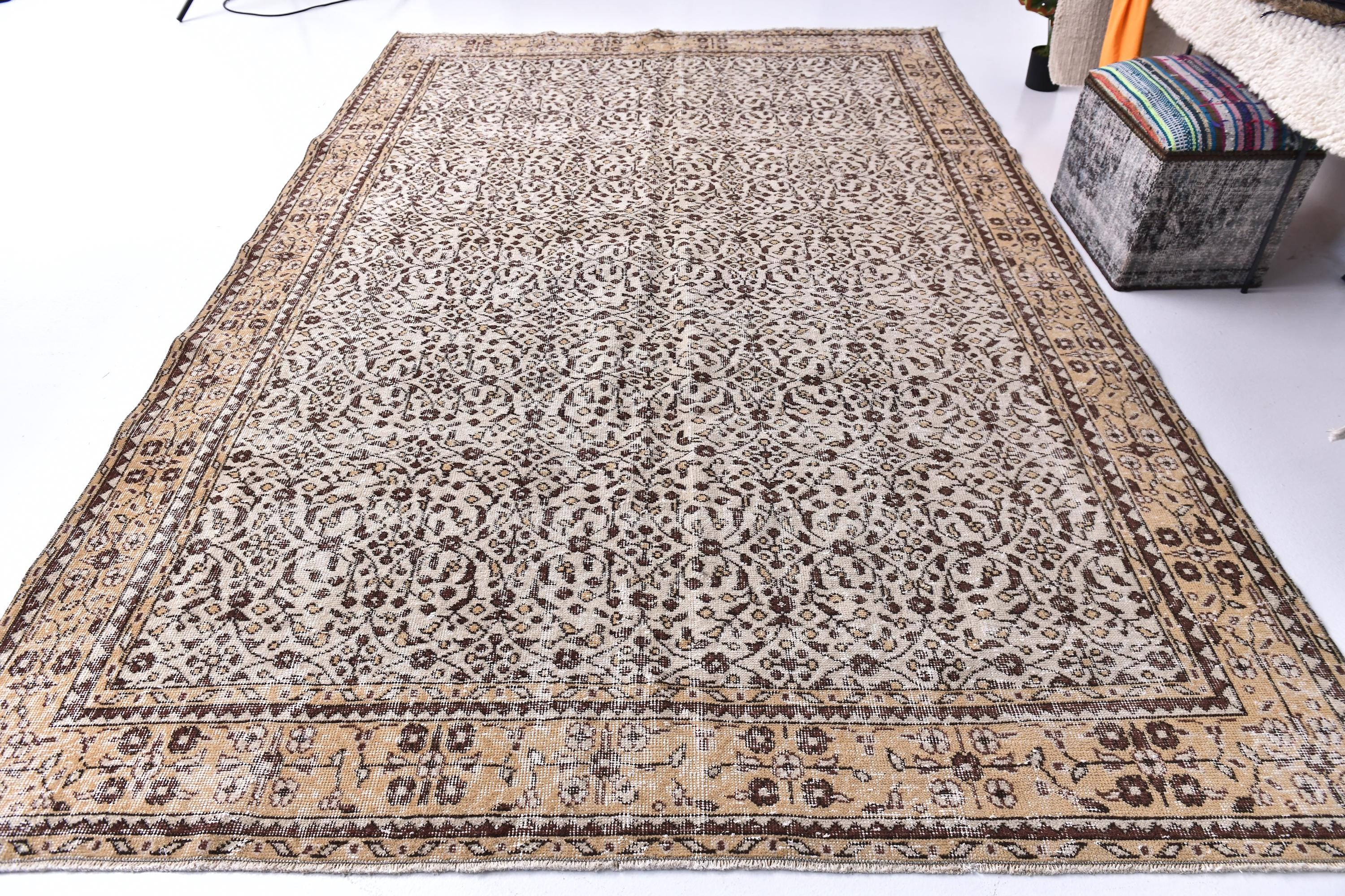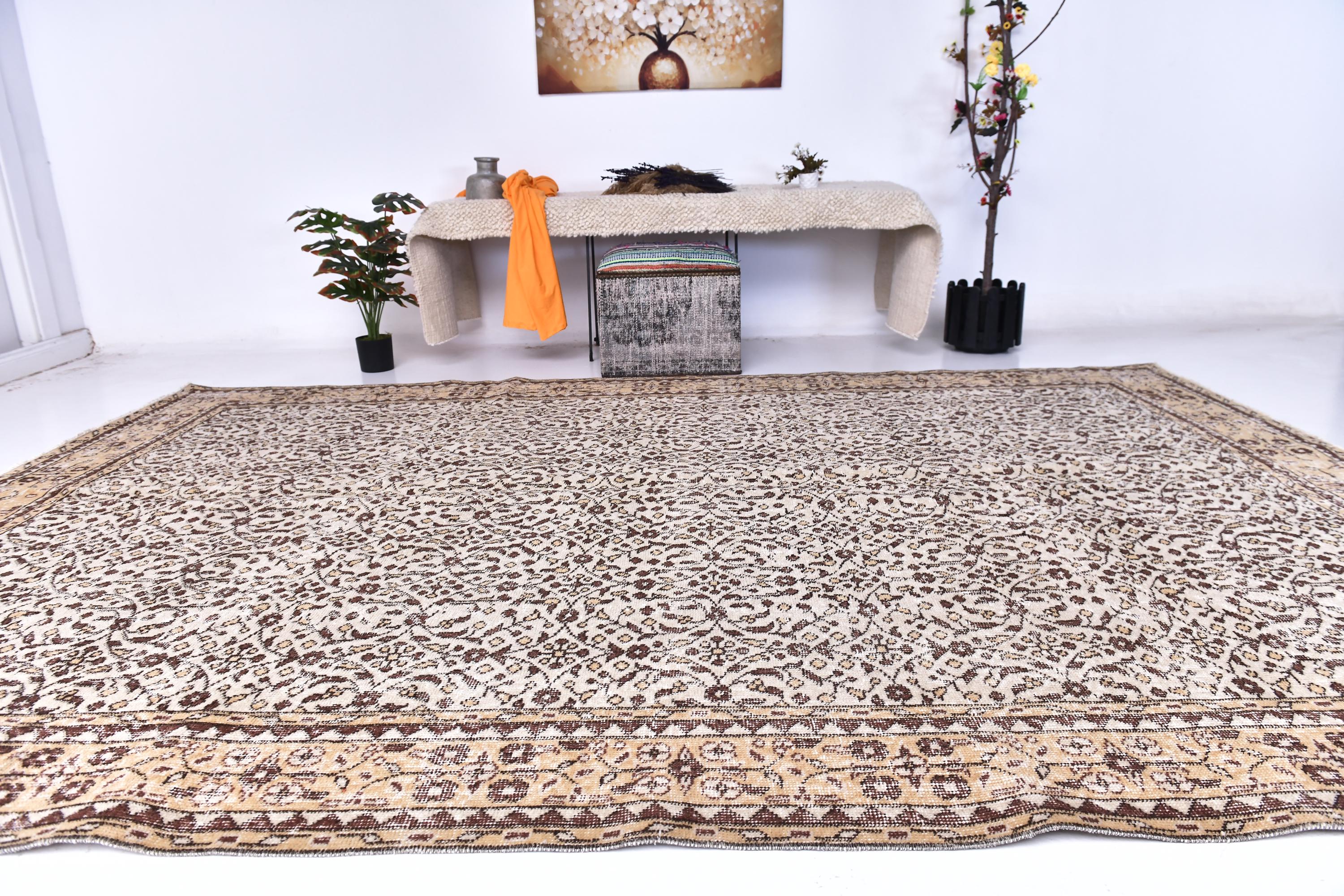 7x10 Antique Vintage Turkish Rug, Gold Beige Brown Color Rug, 7x10 Rug Handmade Wool Rug 7x10 Area Rug, 7x10 Turkish Rug For Living Room Bedroom, Soft Rug, 7x10 Vintage Rug, 7x10 Turkish Area Rug, Floral Rug, Persian Rug, Living Room Rug, kithcen Rug, Tribal Rug, 7x10 Rug