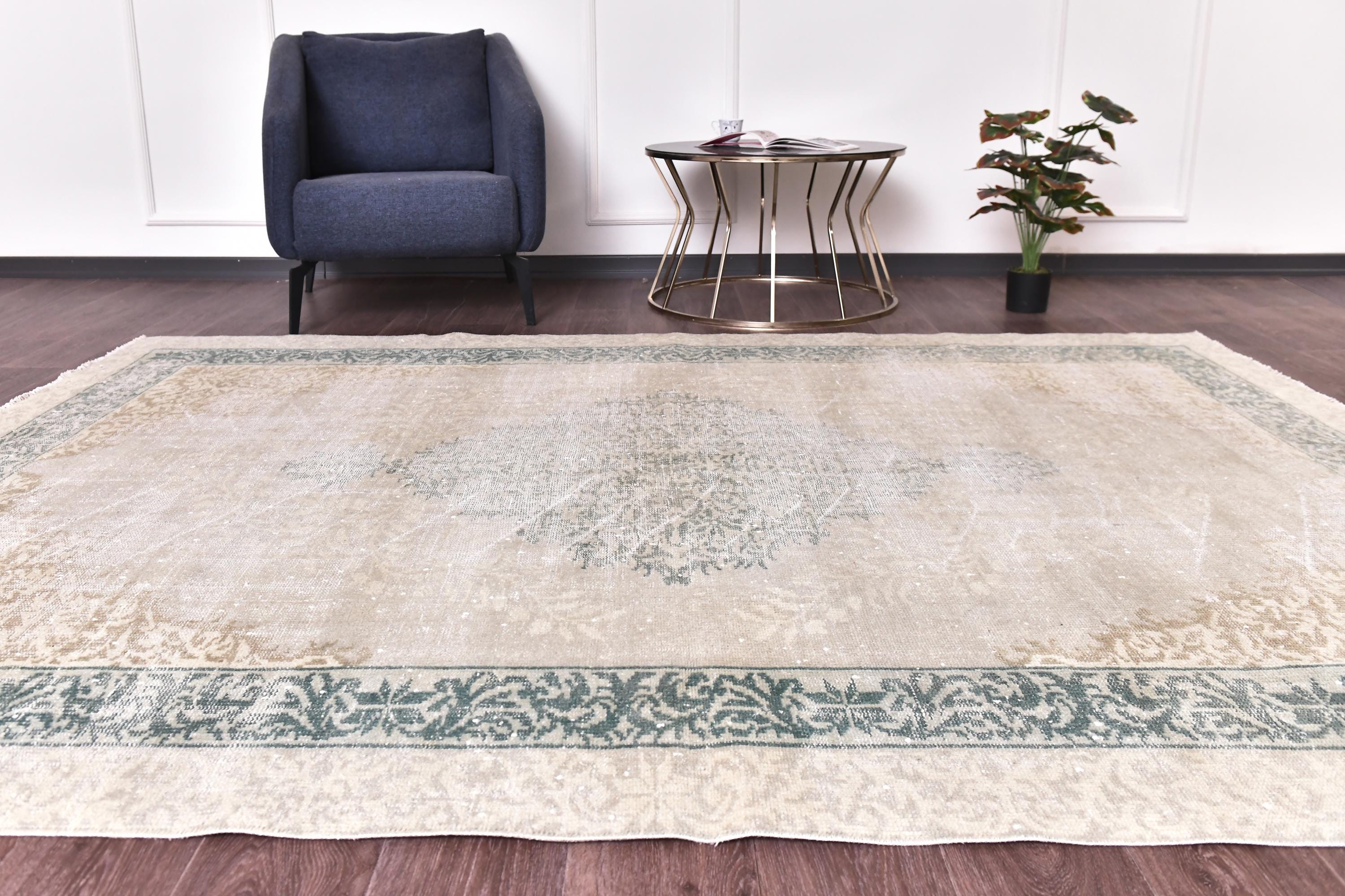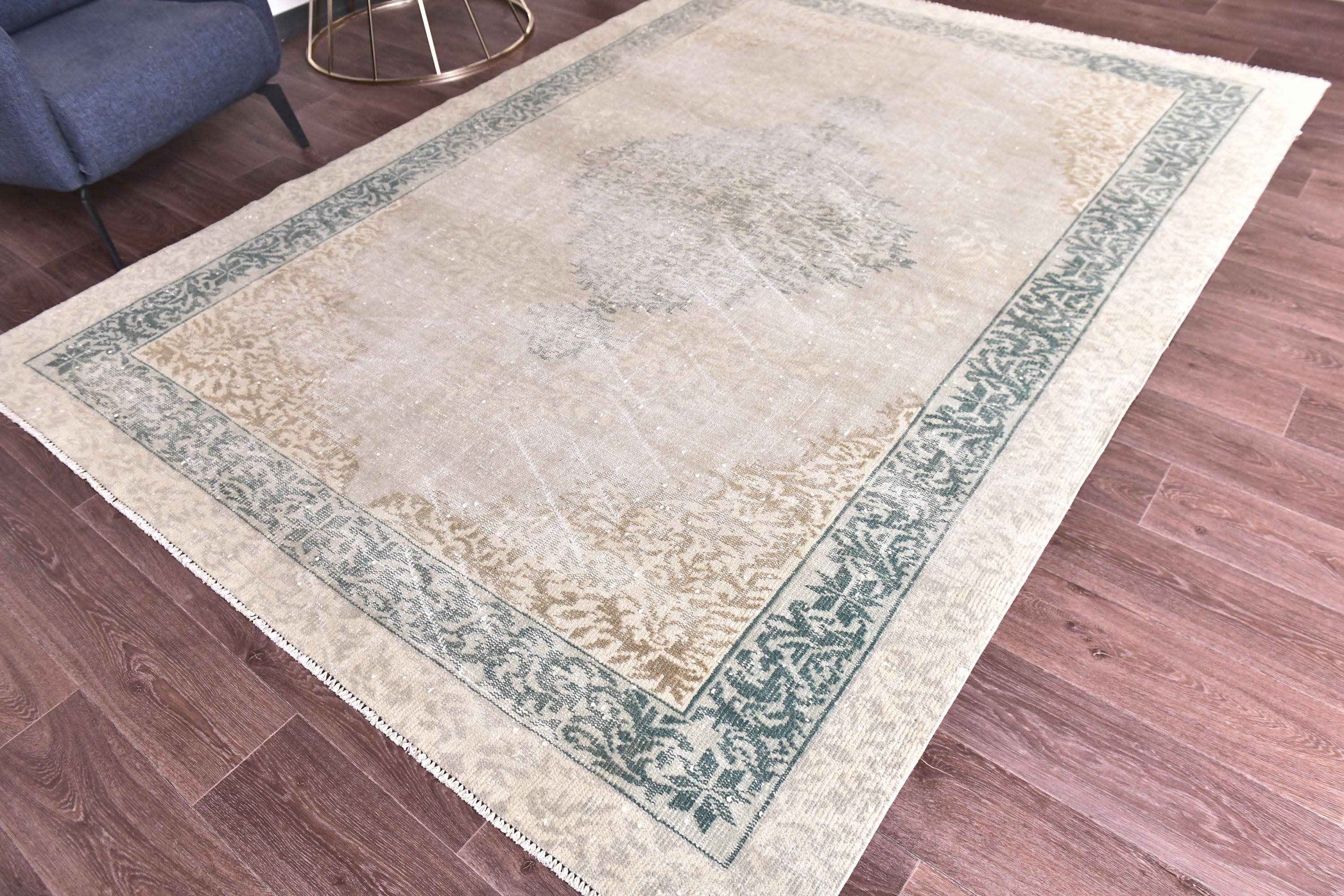 7x9 Antique Vintage Turkish Rug, Beige Green Color Rug, 7x9 Rug Handmade Wool Rug 7x9 Area Rug, 7x9 Turkish Rug For Living Room Bedroom, Soft Rug, 7x9 Vintage Rug, 7x9 Turkish Area Rug, Floral Rug, Persian Rug, Living Room Rug, kithcen Rug, Tribal Rug, 7x9 Rug