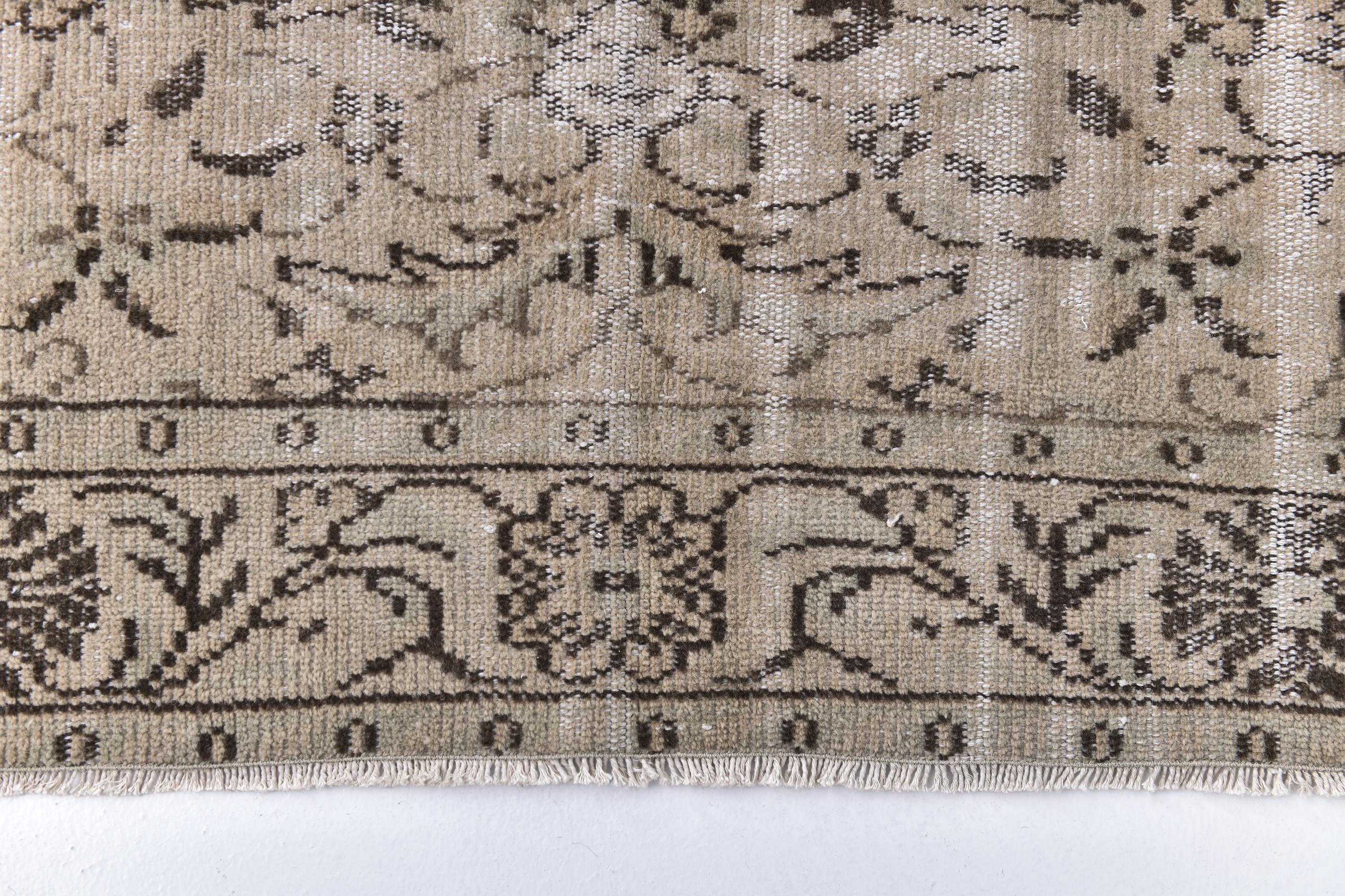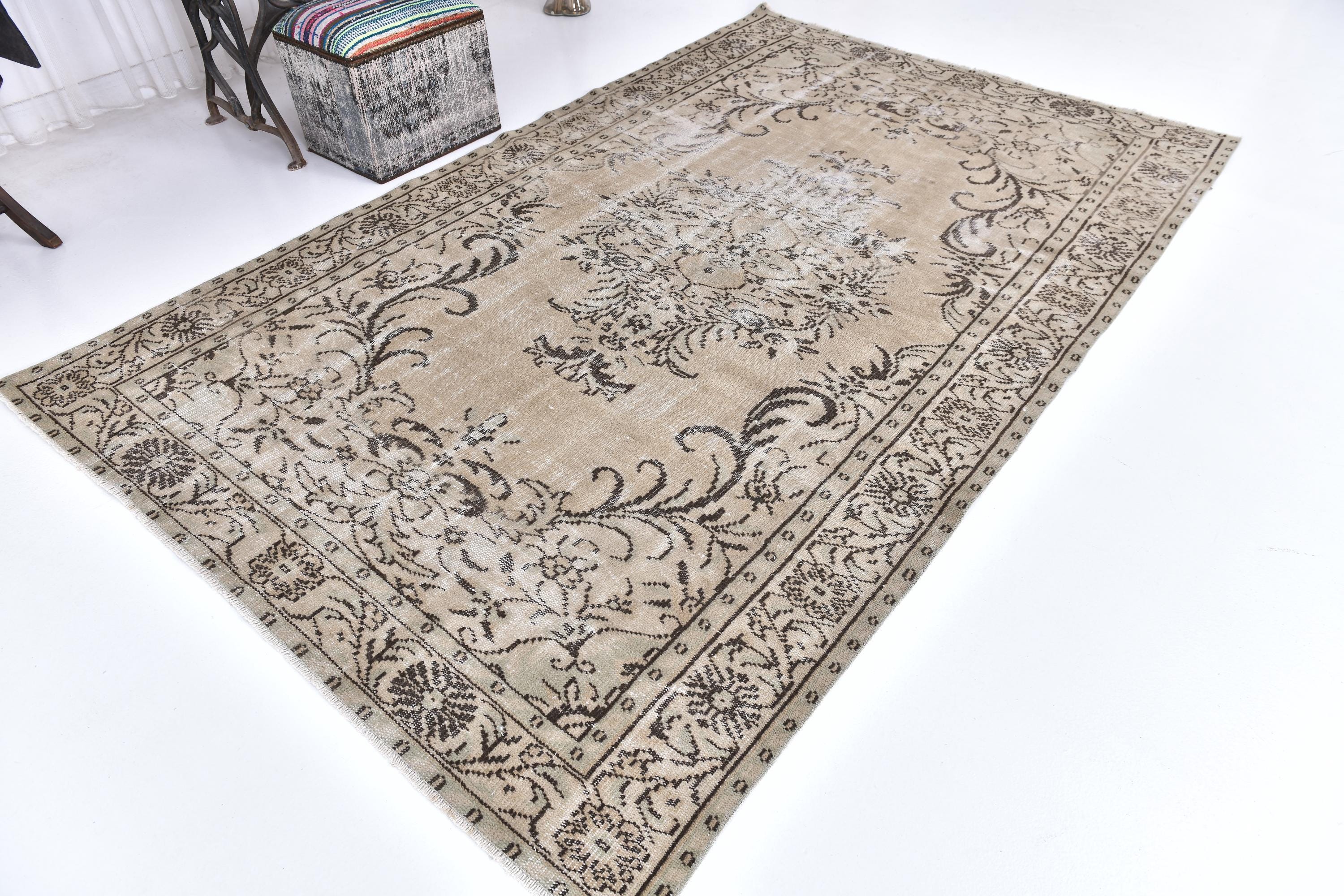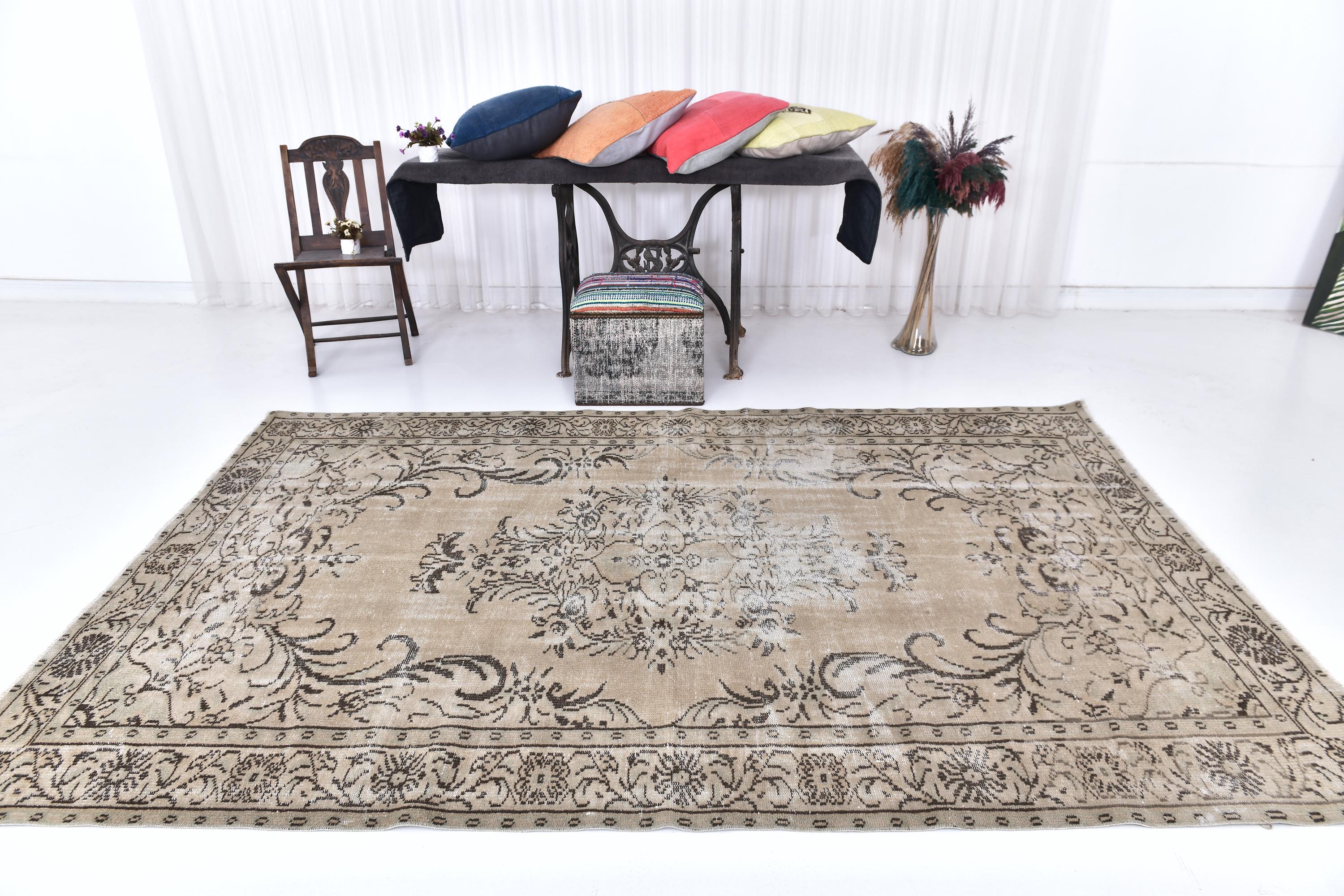 📜📌Vintage Turkish area rug, rustic home style with Floral medallion in central, suitable for use in the living room, bedroom and kithcen