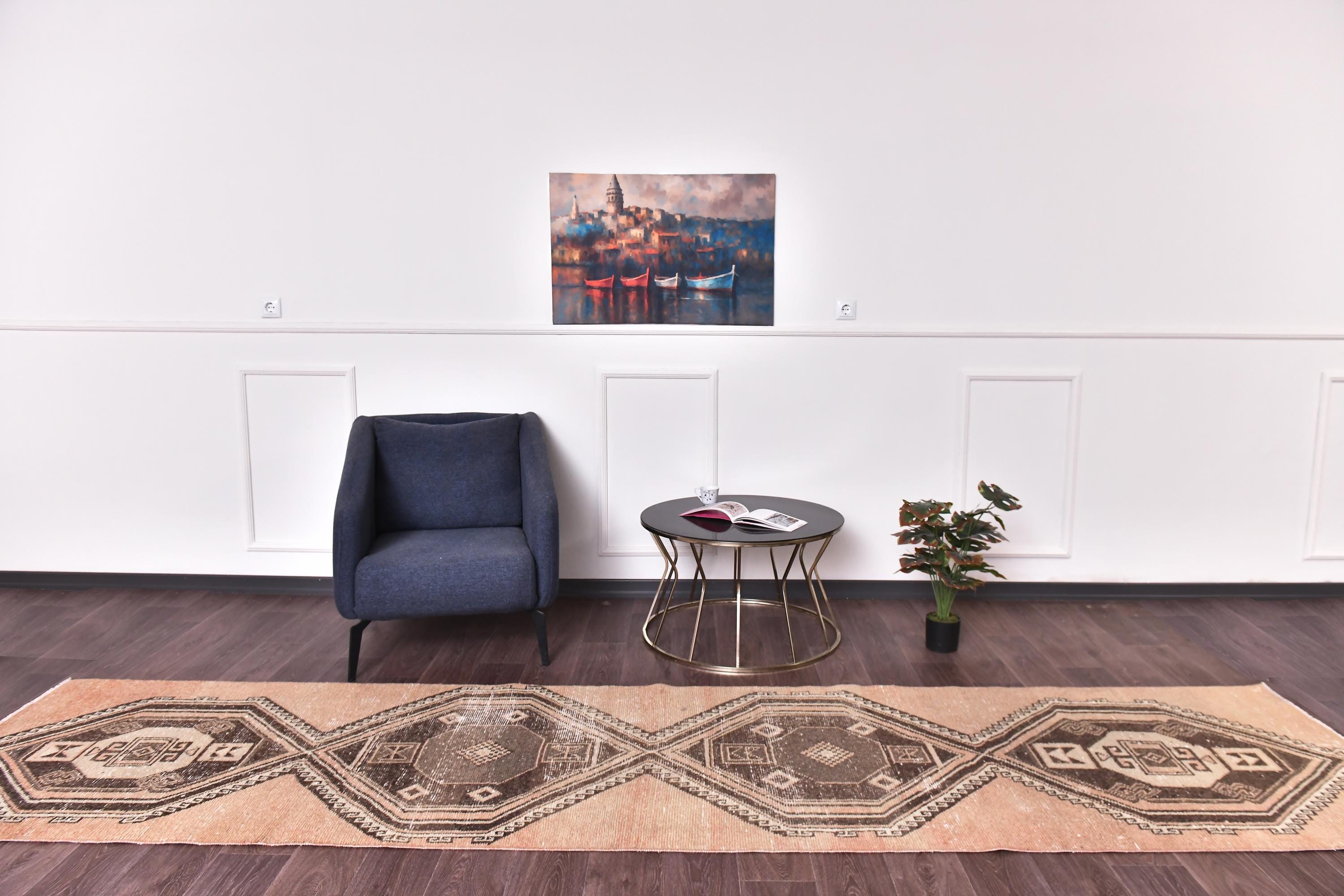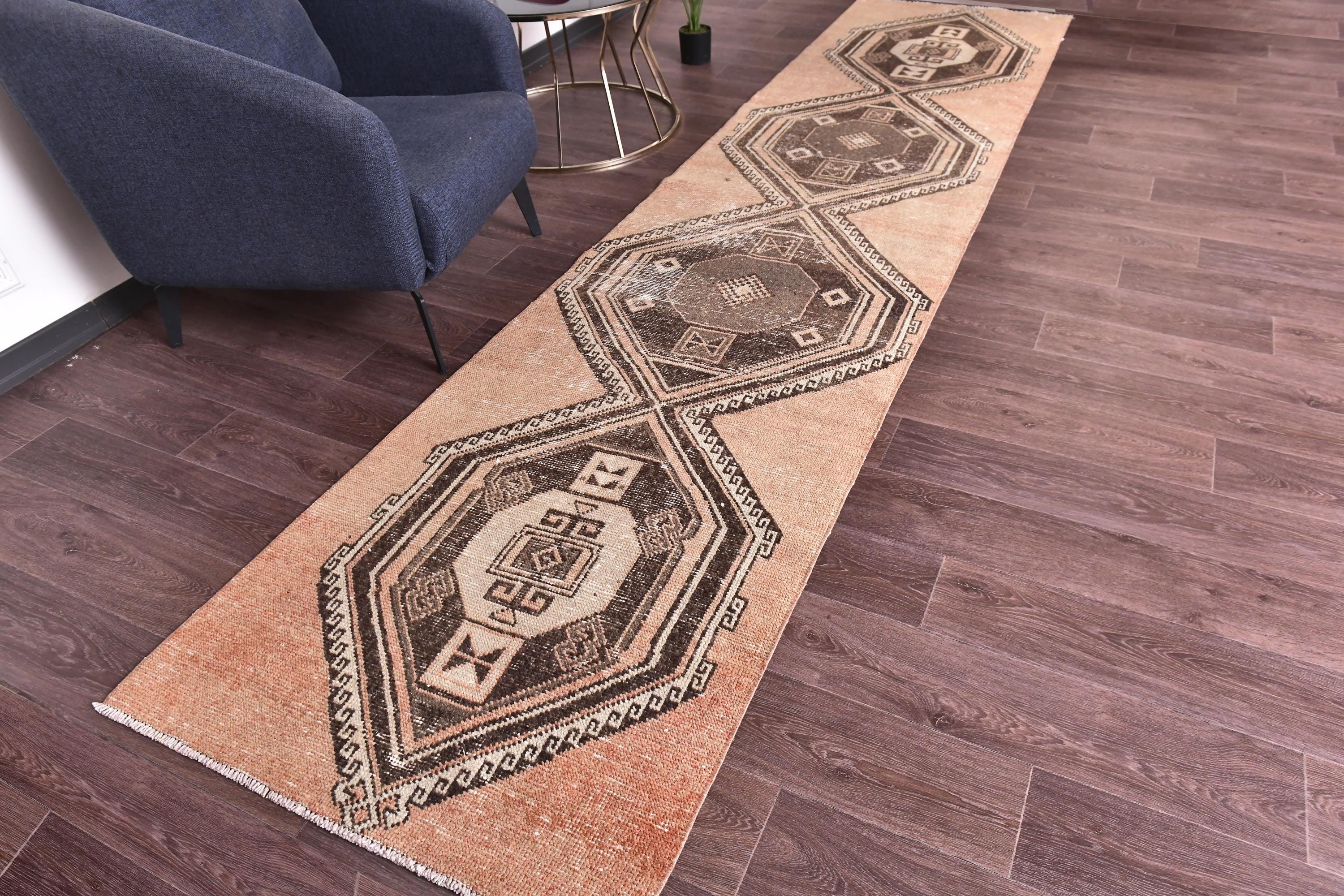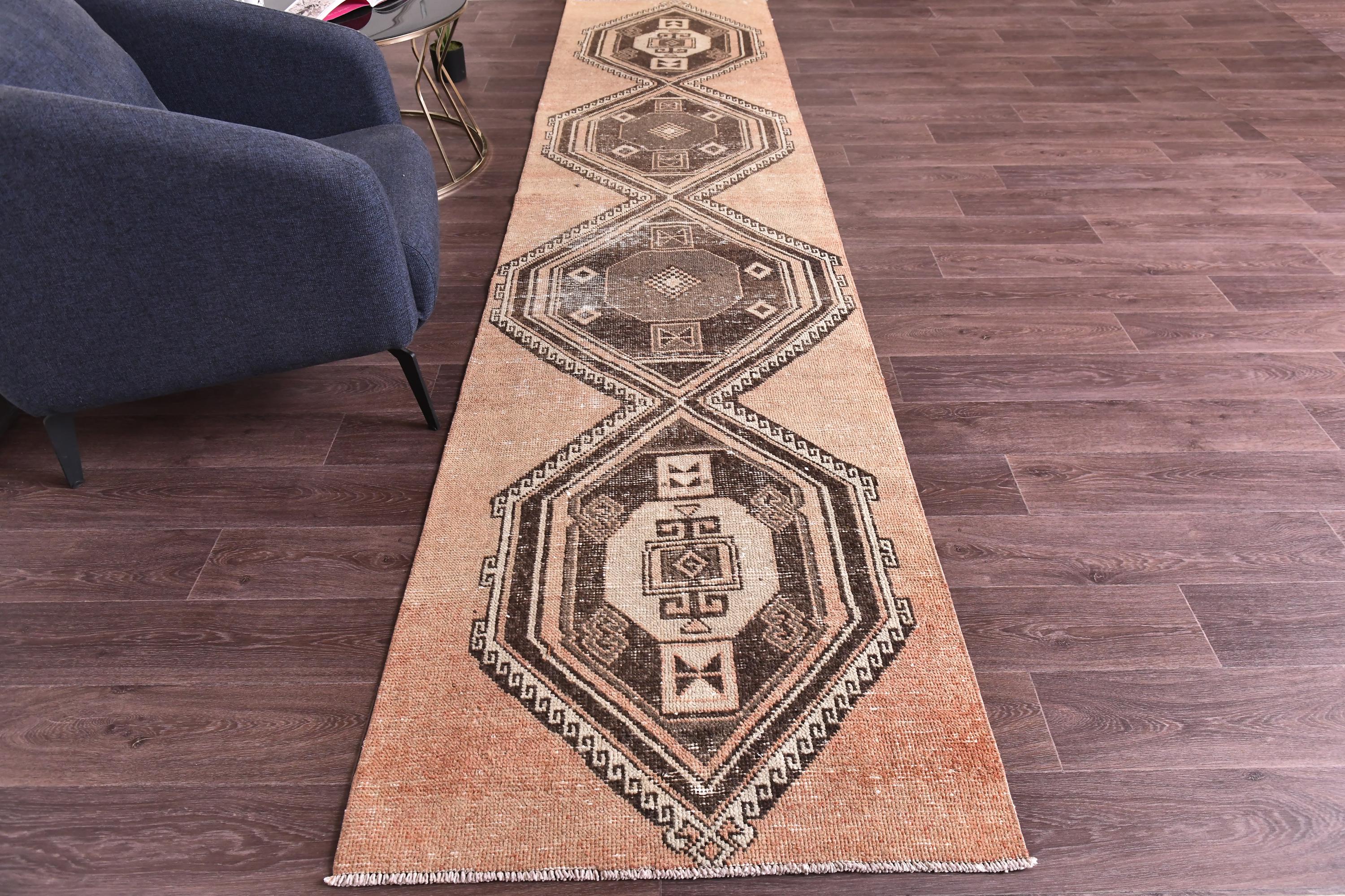 3x13 Vintage Turkish Runner Rug, 3x13 Turkish Hand Knotted Hallway Rug, 3x13 Brown Color Rug, Handmade Wool Rug, 3x13 Wool Hallway Rug, Hallway Decor, 3x13 Handmade Hallway Rug, 3x13 Terracotta Runner Rug, 3x13 Brown Rug, Soft Wool Rug, Tribal Rug, Doorway Rug, 3x13 Vintage Runner,