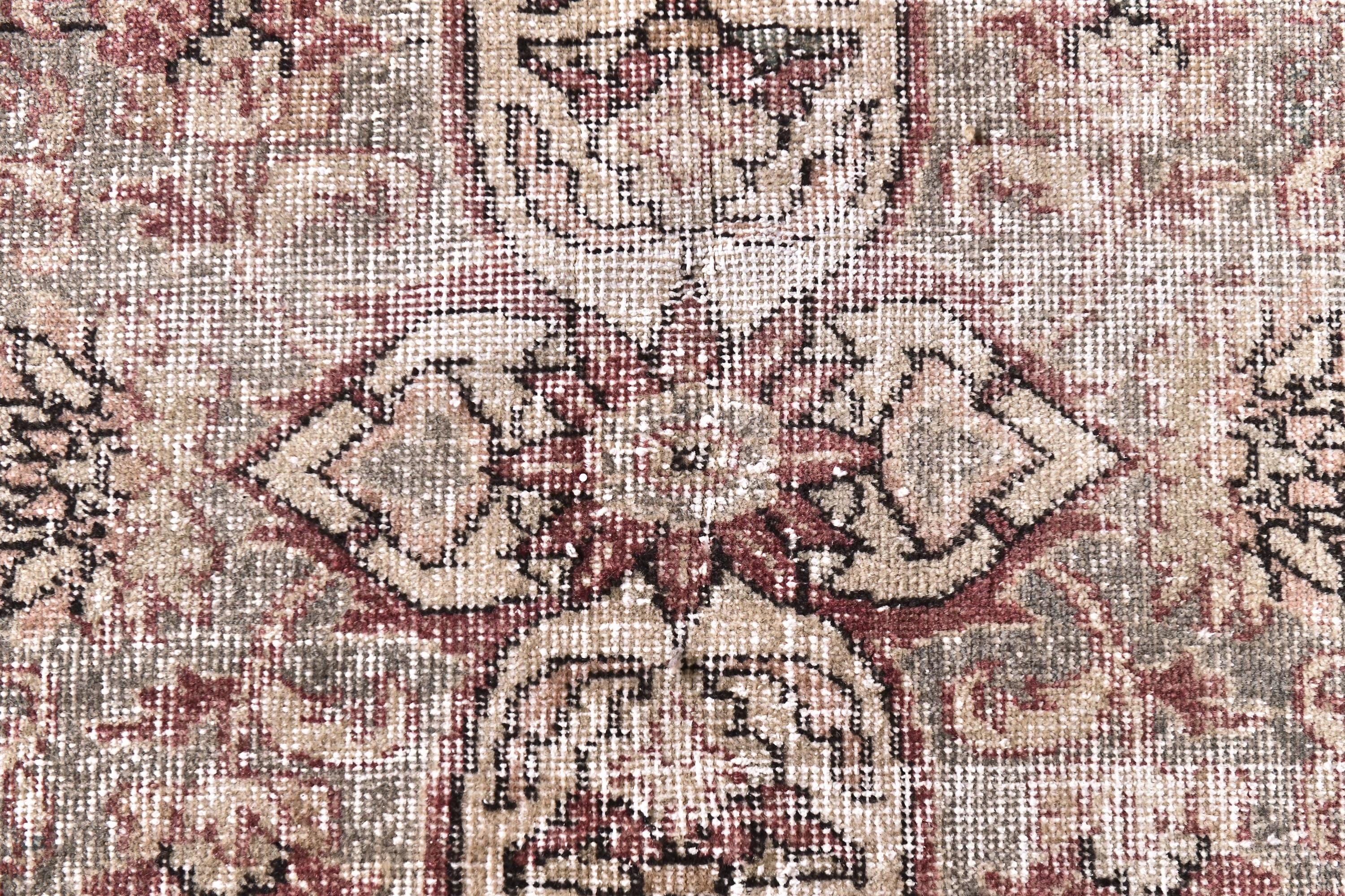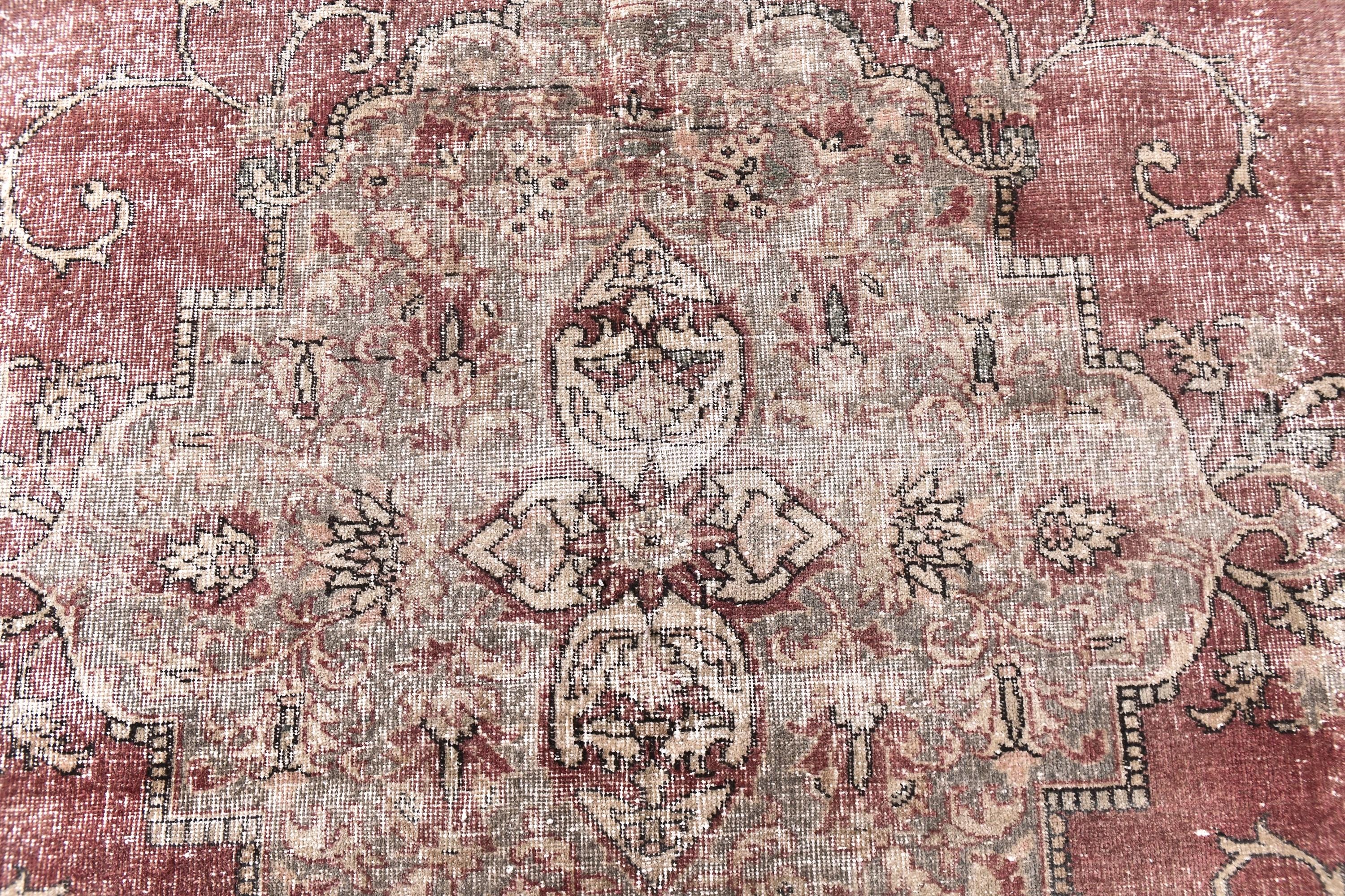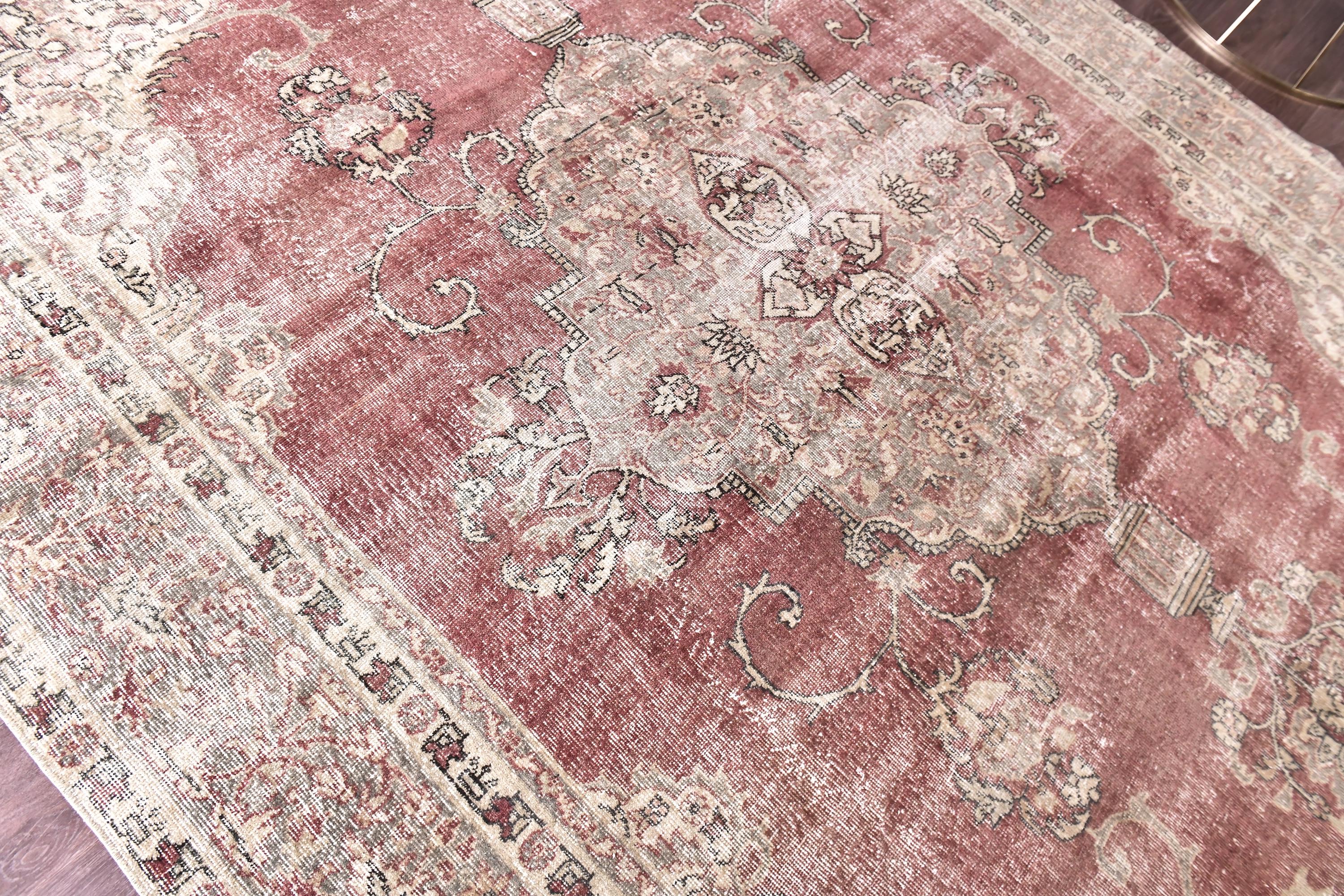 📜📌Vintage Faded Persian Style area rug featuring dusty burgundy base with cream and beige floral medallion patterns, traditional botanical and geometric motifs woven in antique style, ornate decorative border in cream and mauve tones