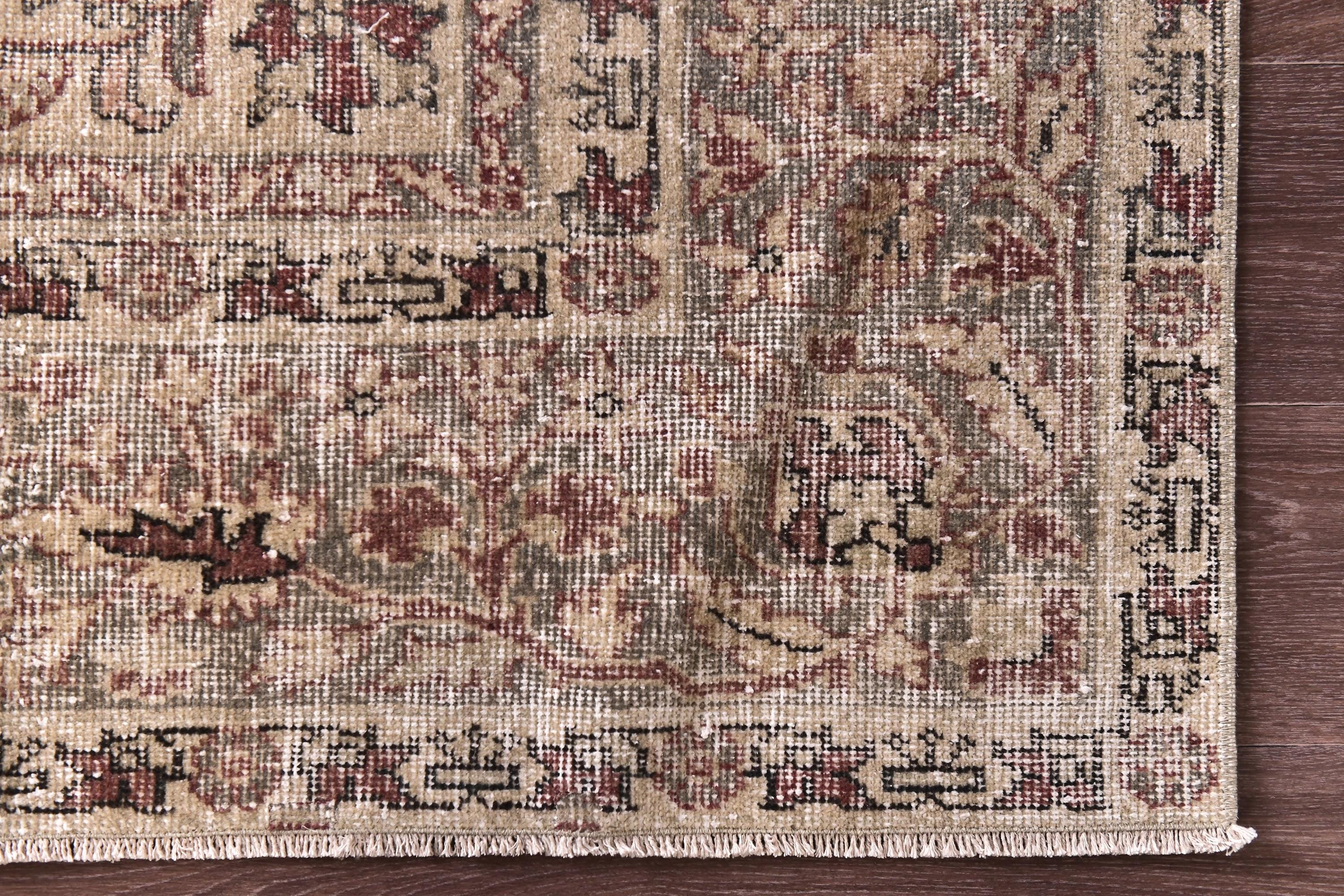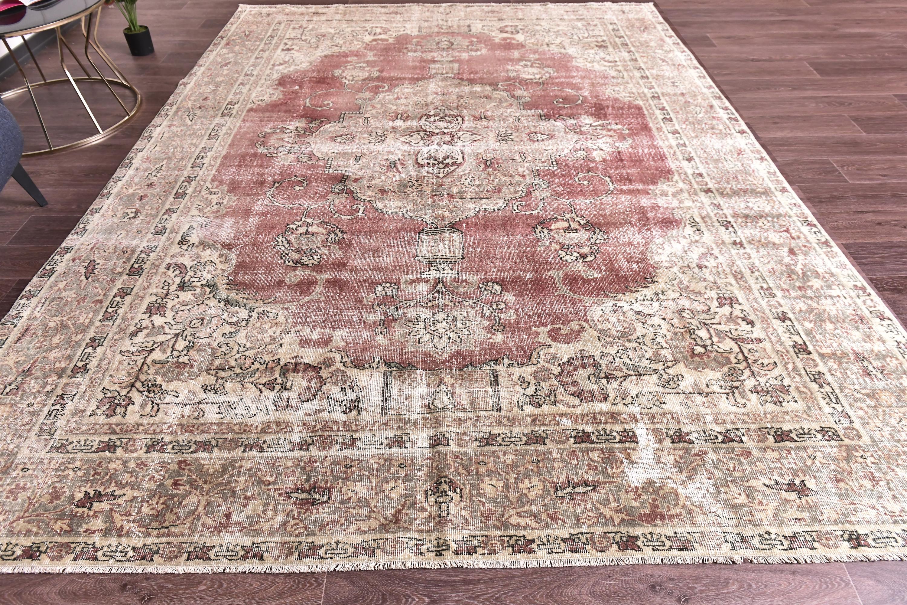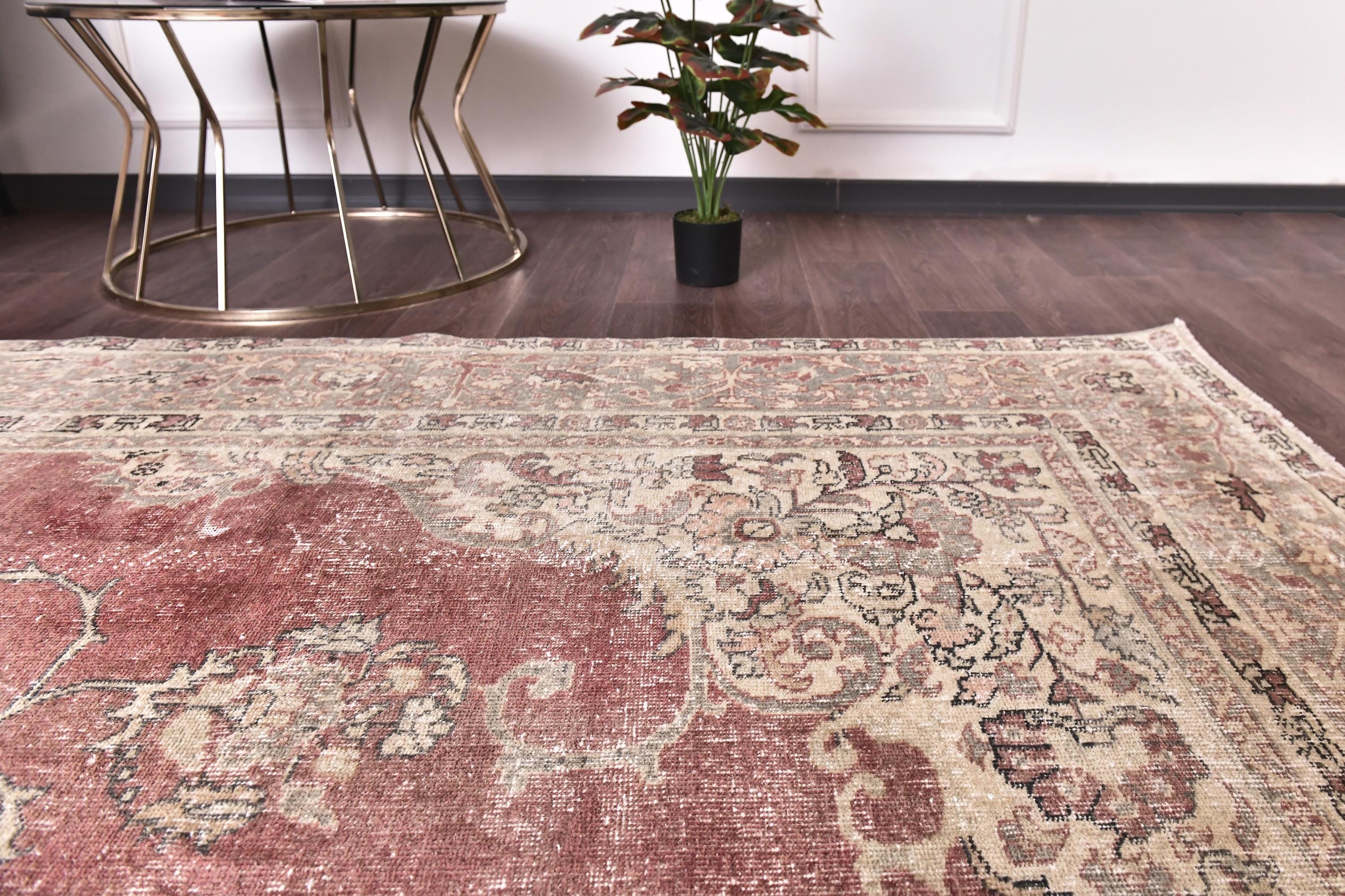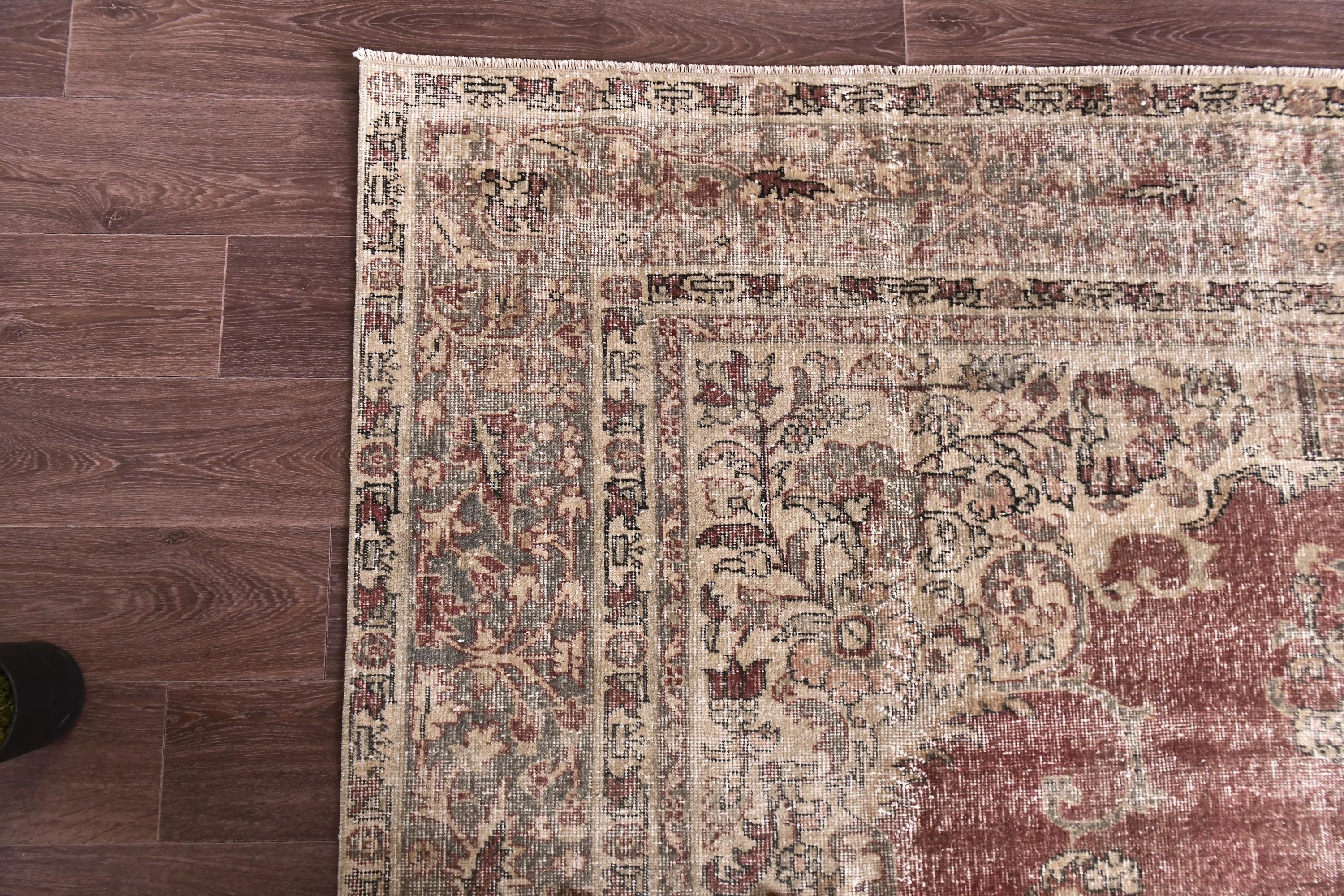 📜📌Vintage Faded Persian Style area rug featuring dusty burgundy base with cream and beige floral medallion patterns, traditional botanical and geometric motifs woven in antique style, ornate decorative border in cream and mauve tones