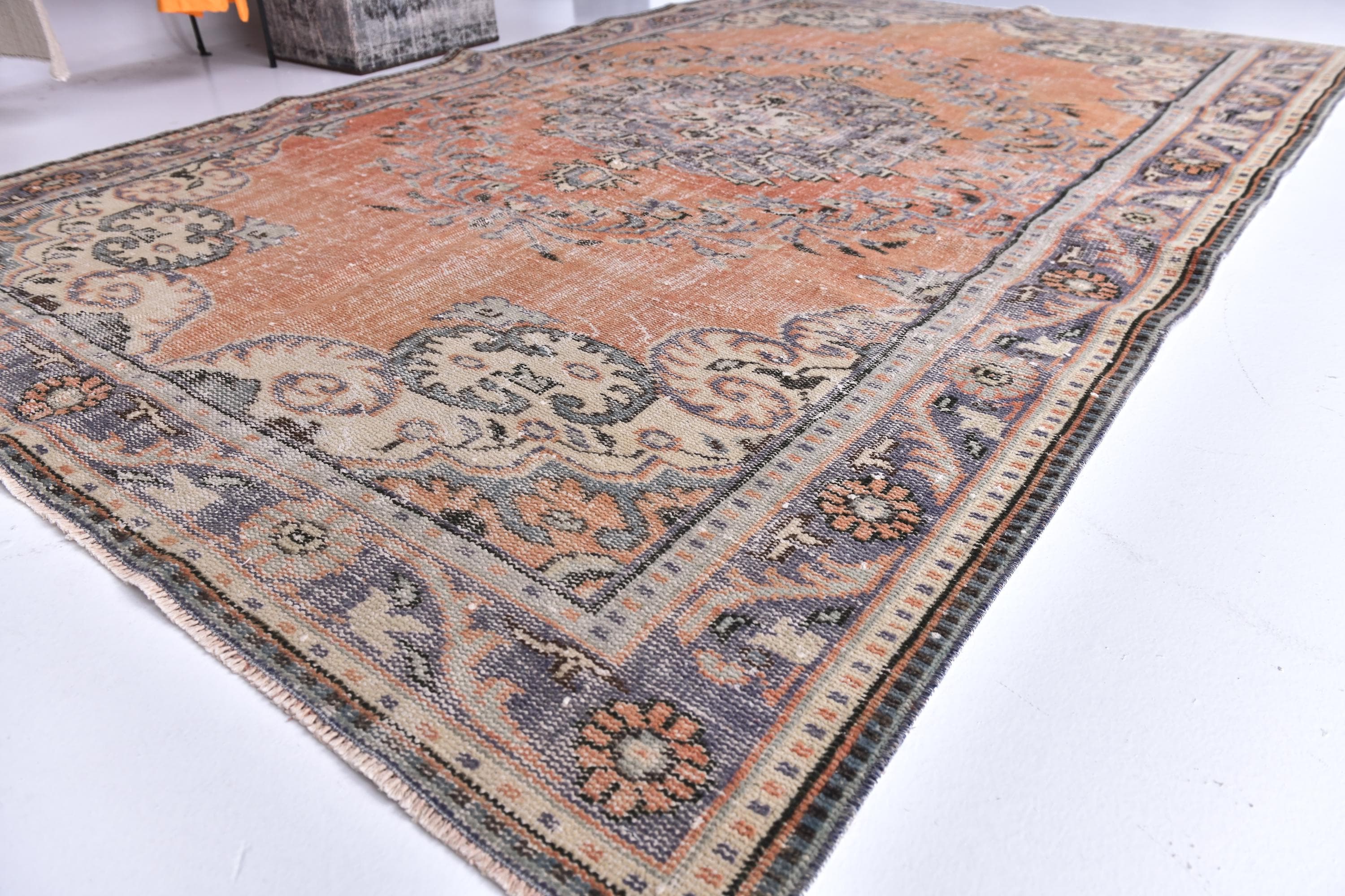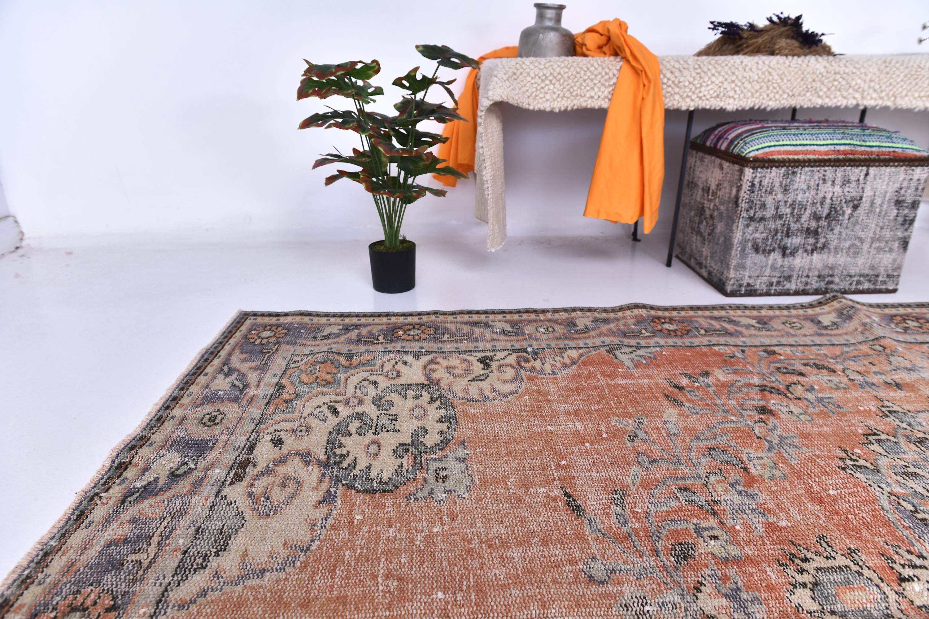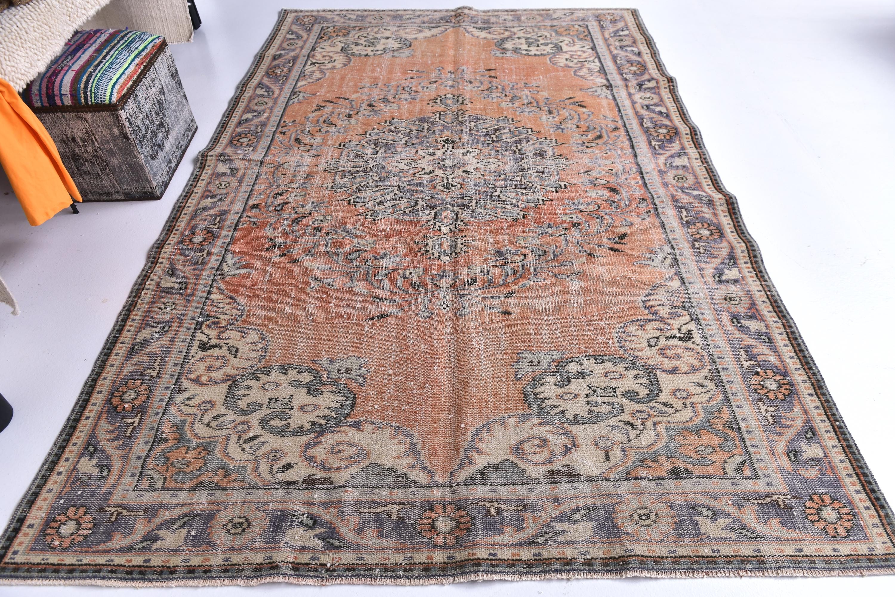 6x9 Antique Vintage Turkish Rug, Orange Blue Color Rug, 6x9 Rug Handmade Wool Rug 6x9 Area Rug, 6x9 Turkish Rug For Living Room Bedroom, Soft Rug, 6x9 Vintage Rug, 6x9 Turkish Area Rug, Floral Rug, Persian Rug, Living Room Rug, kithcen Rug, Tribal Rug, 6x9 Rug, Faded Area Rug