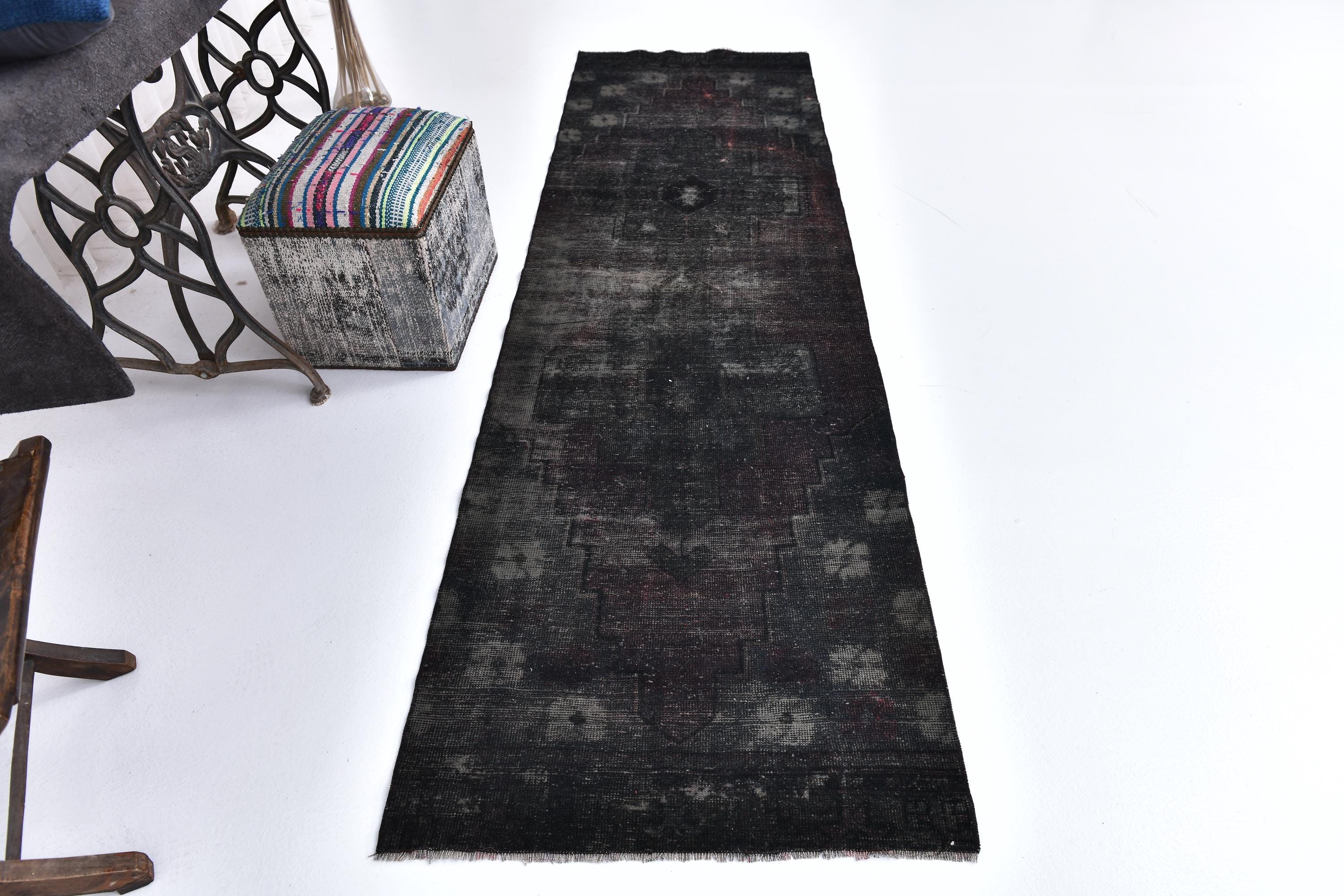3x9 Vintage Turkish Runner Rug, 3x9 Turkish Hand Knotted Hallway Rug, 3x9 Muted Red Black Color Rug, Handmade Wool Rug, 3x9 Wool Hallway Rug, Hallway Decor, 3x9 Handmade Hallway Rug, 3x9 Salmon Runner Rug, 2x9 Soft Wool Rug, Tribal Rug, Doorway Rug, 3x9 Vintage Runner,