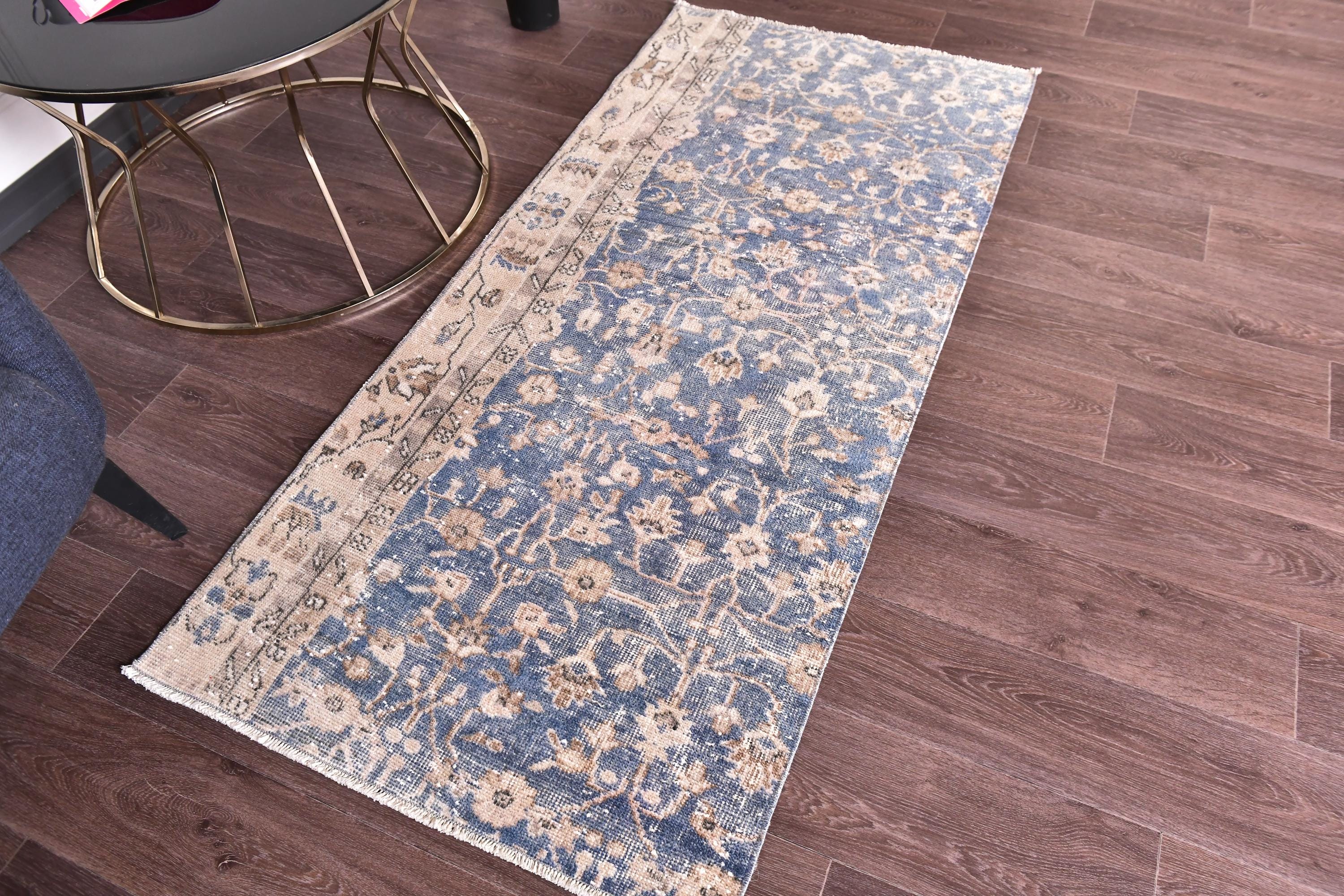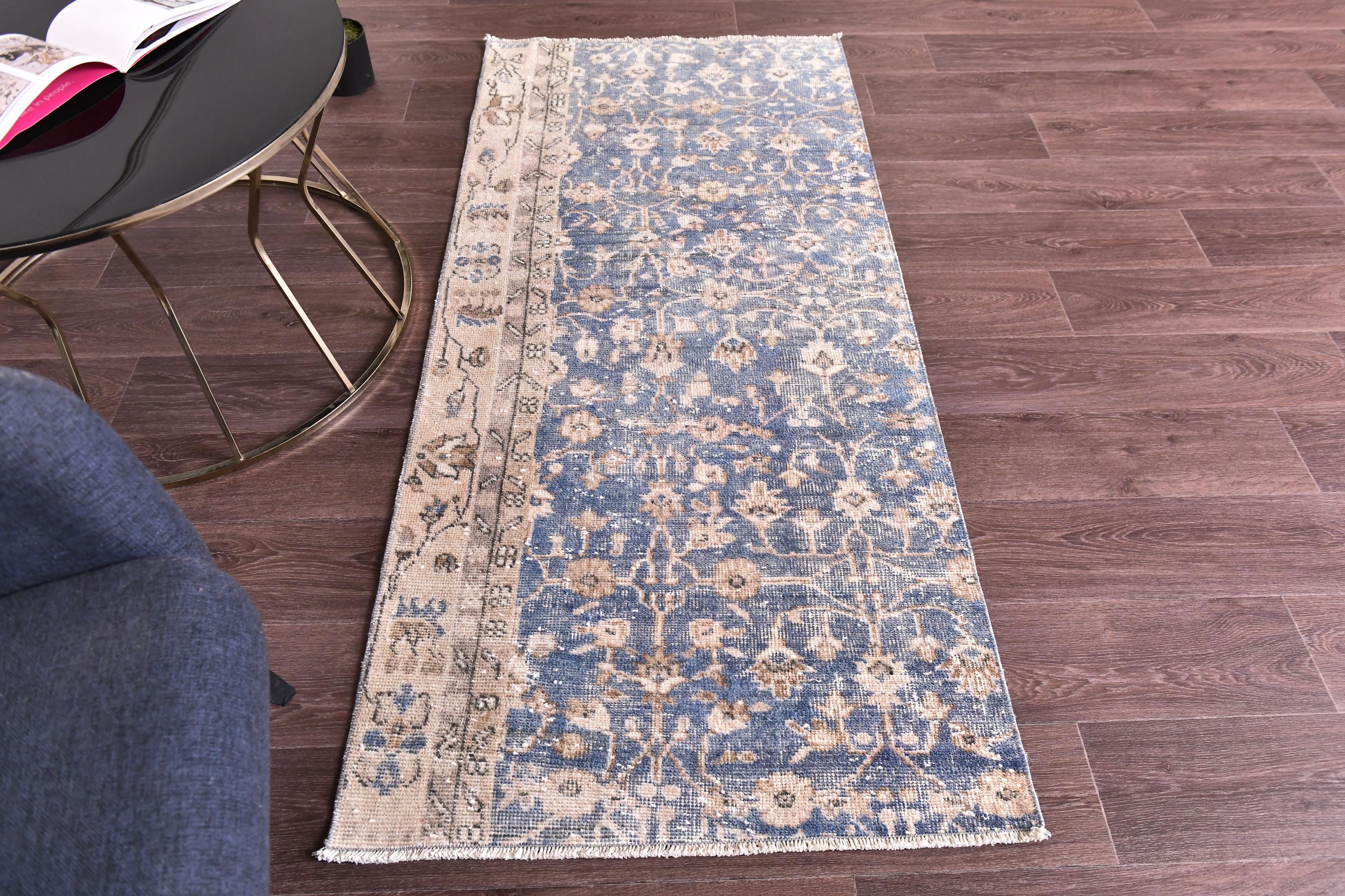 Vintage Runner Rug 3x9, Vintage Distressed Rug,Vintage Turkish Runner Rug, Wool Runner Rugs 3x9, Dark Brown and Gray Runner Rugs