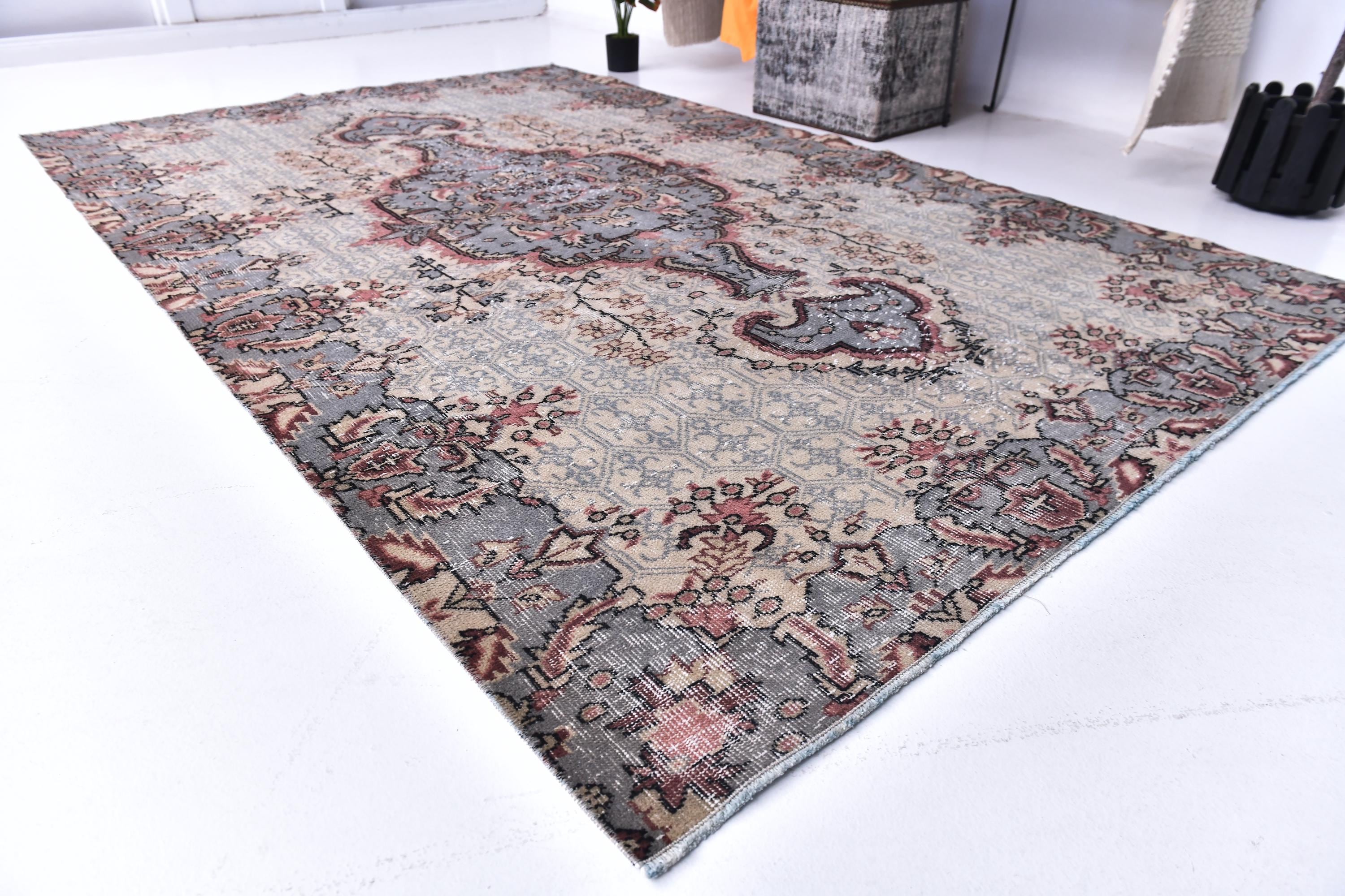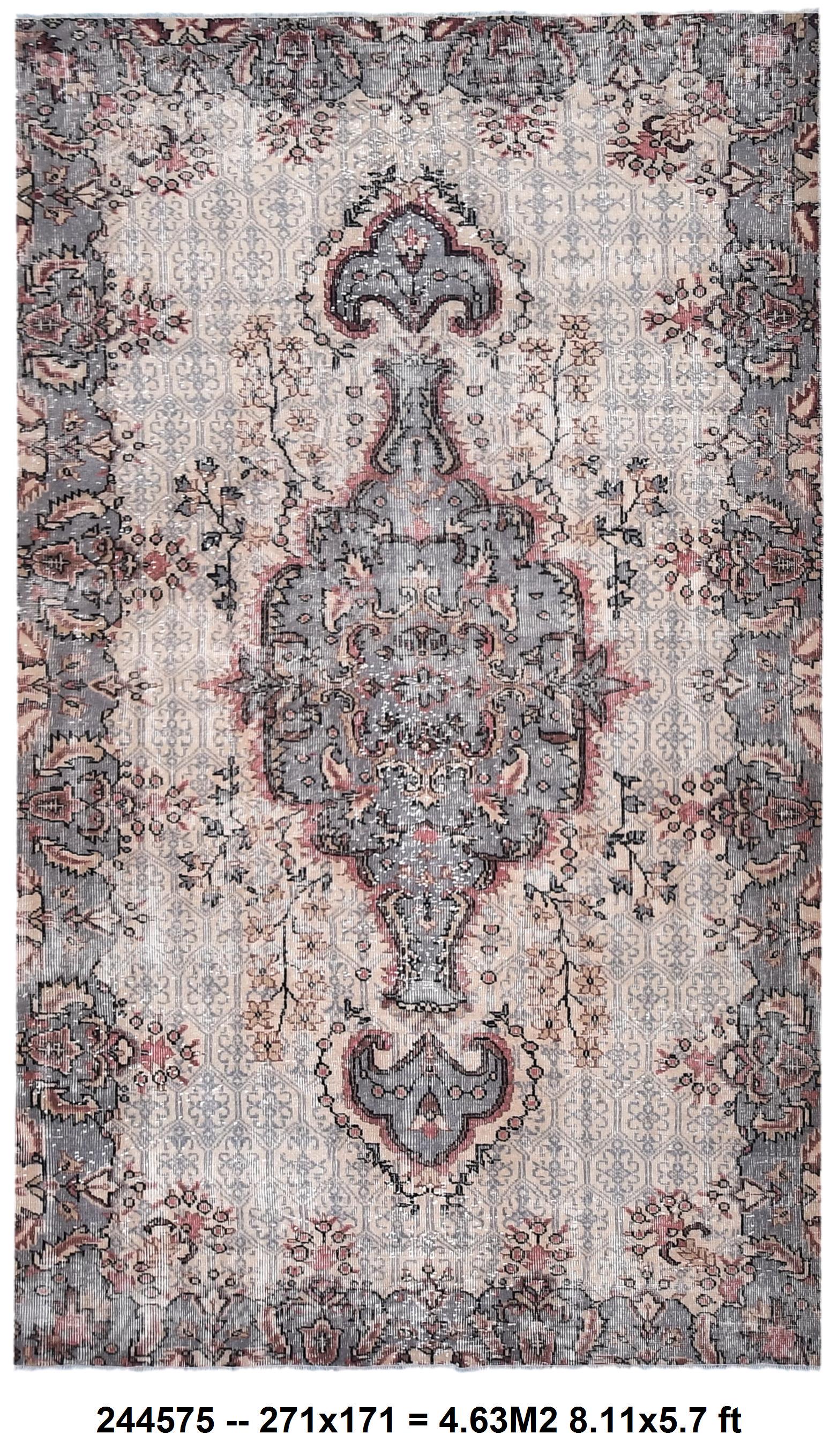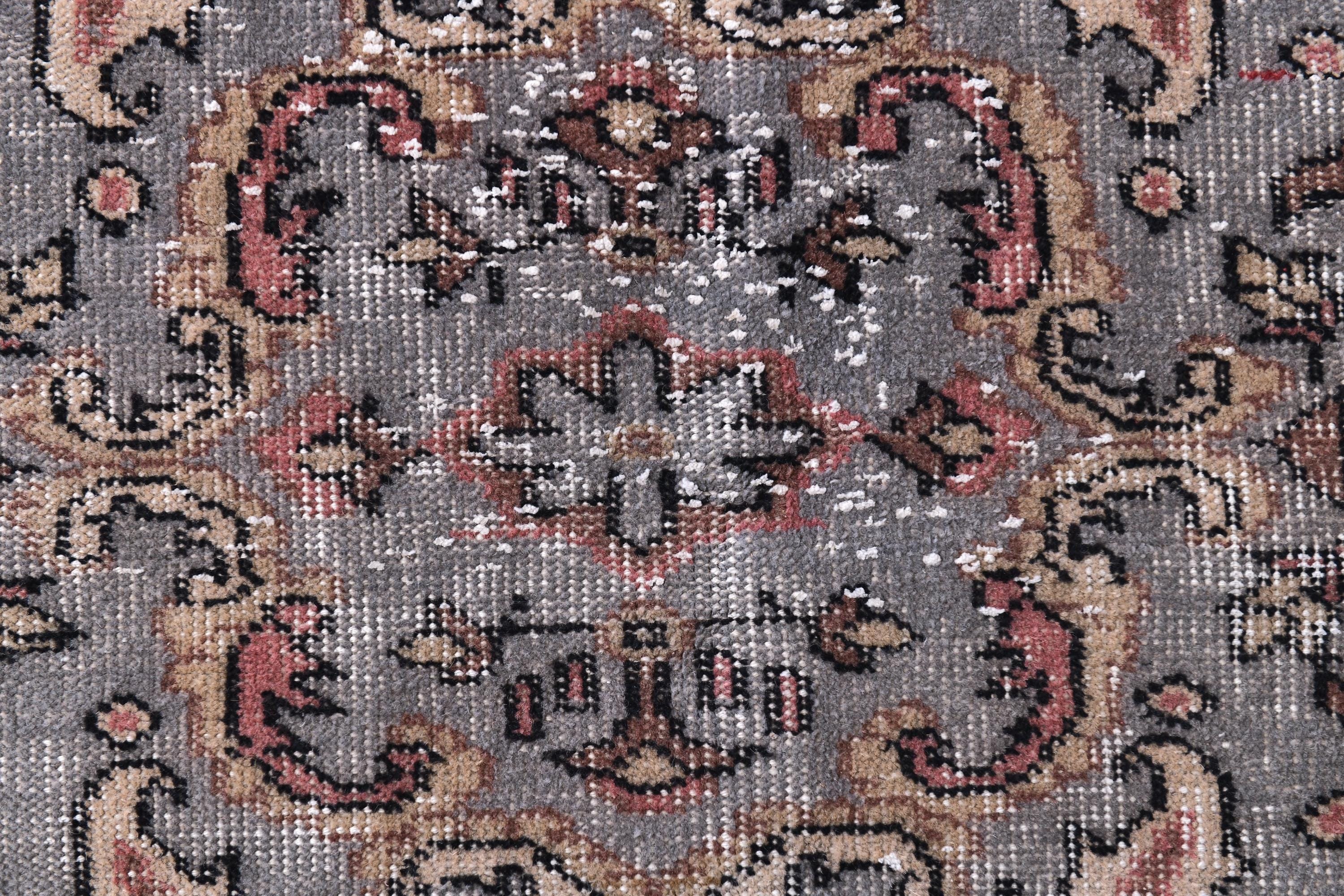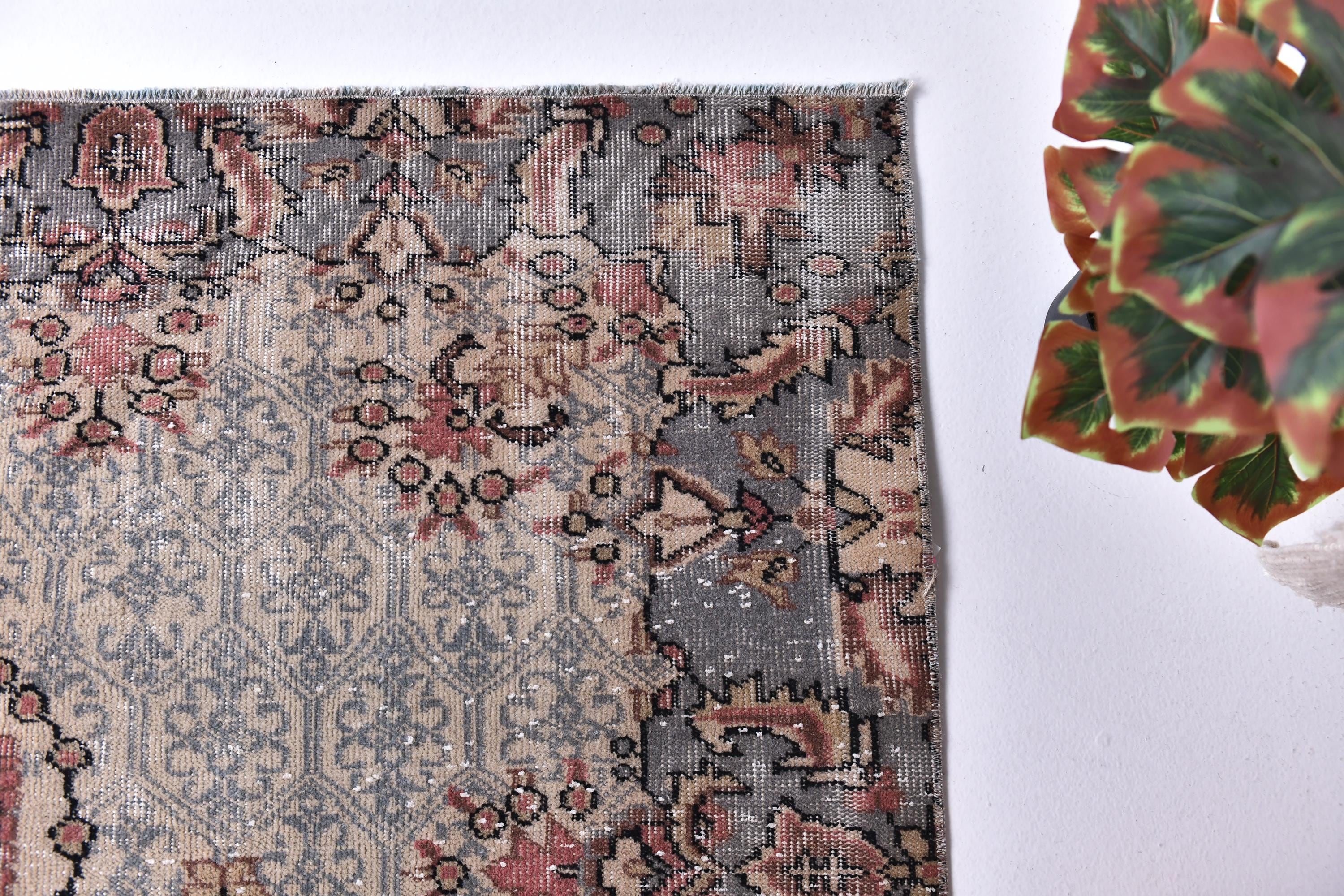 📜📌Distressed Vintage rug in charcoal gray tones with dusty rose pink central medallion design and traditional Persian motifs, vintage hand-knotted Turkish carpet with authentic weathered appearance and multi-tonal gray coloring, elegant area rug for contemporary bohemian home styling