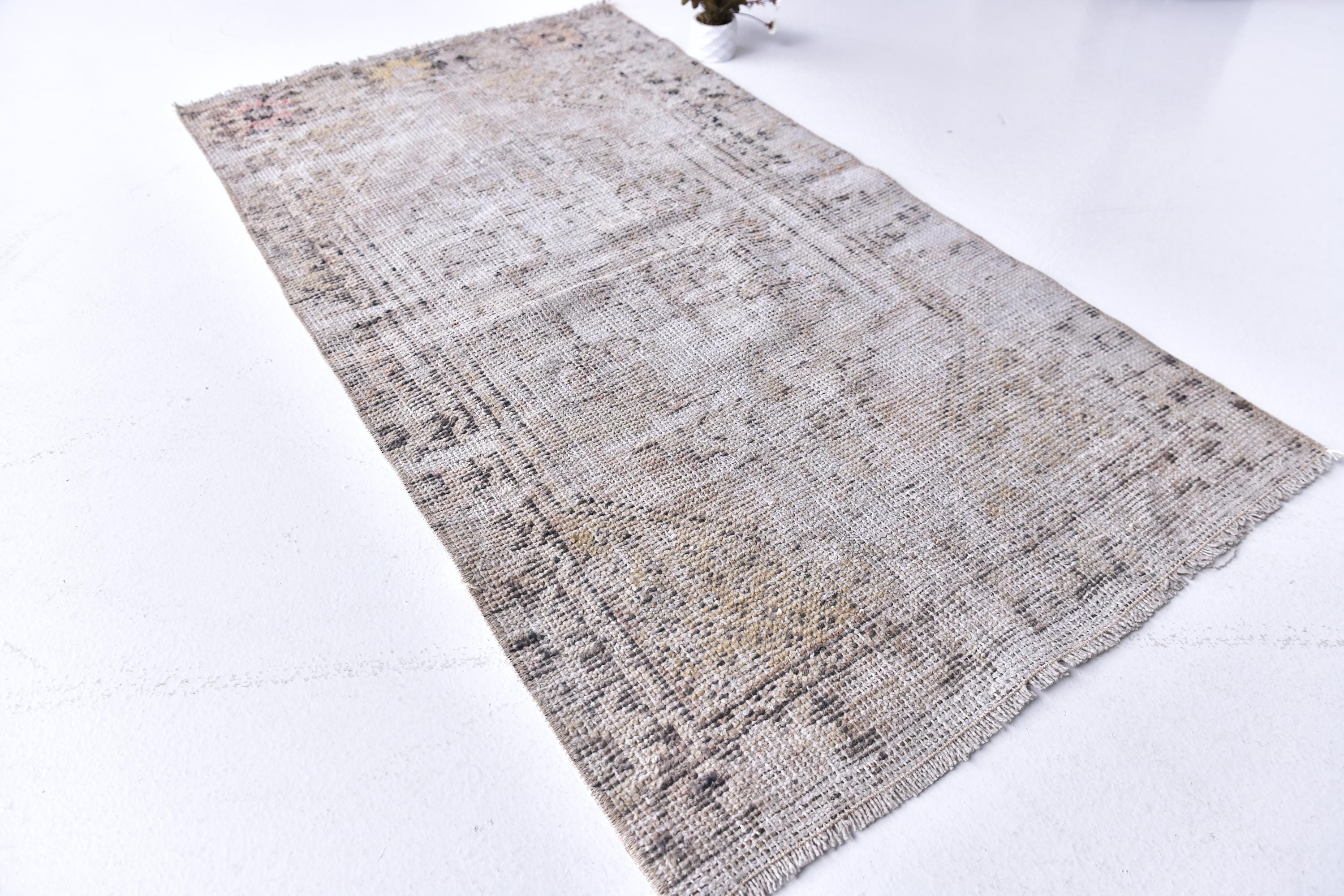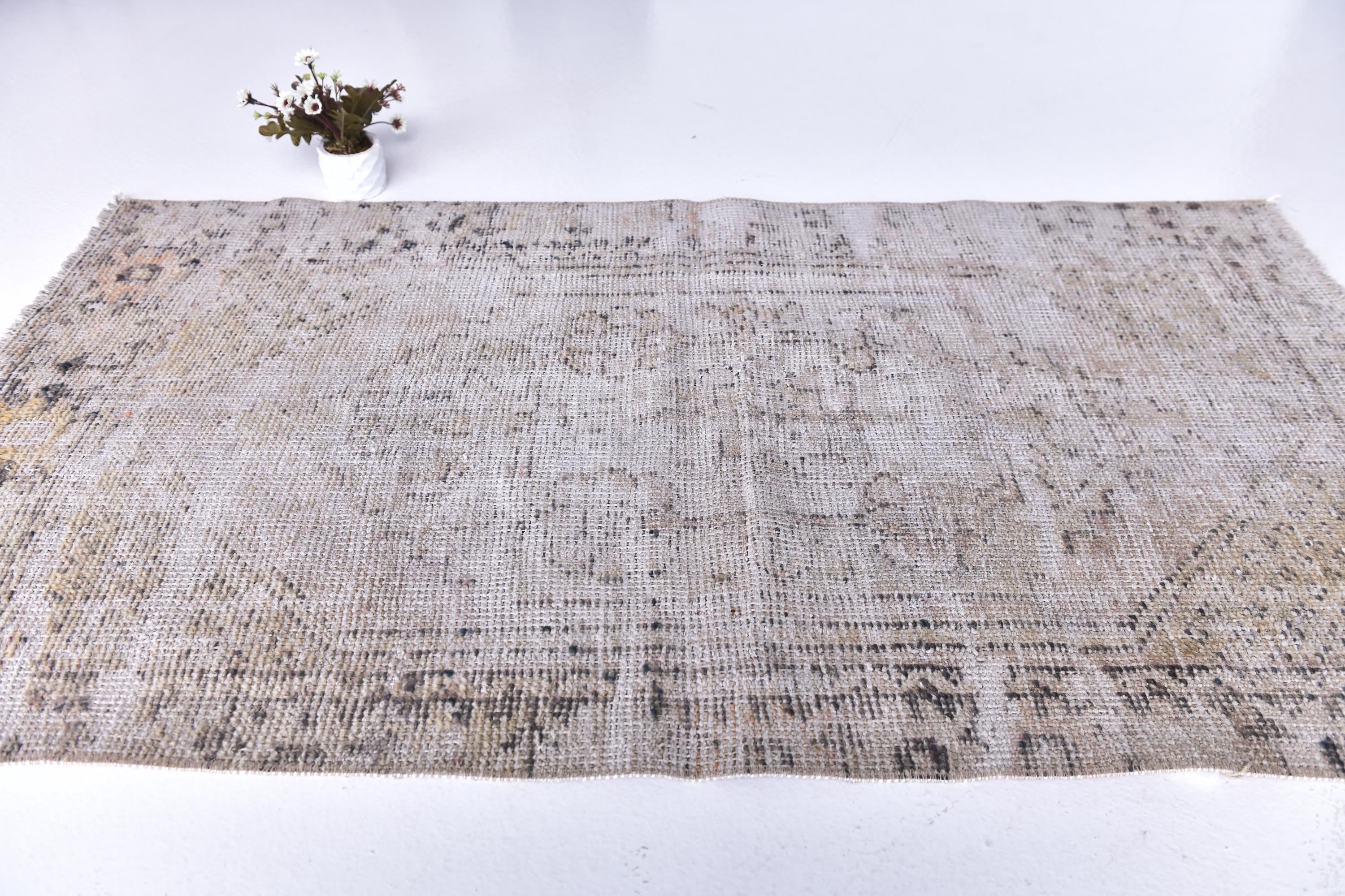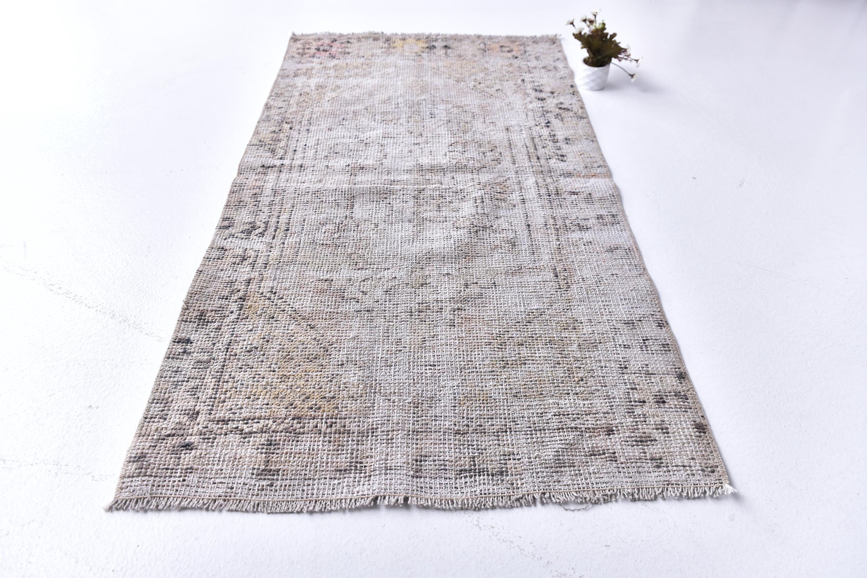 2x4 Cream Brown Vintage Doormat Rug, 2x4 Doormat Rug, 2x4 Rug, Small Handmade Wool Rug, 2x3 Turkish Rug, Rug For Bedroom Accent Bathmat