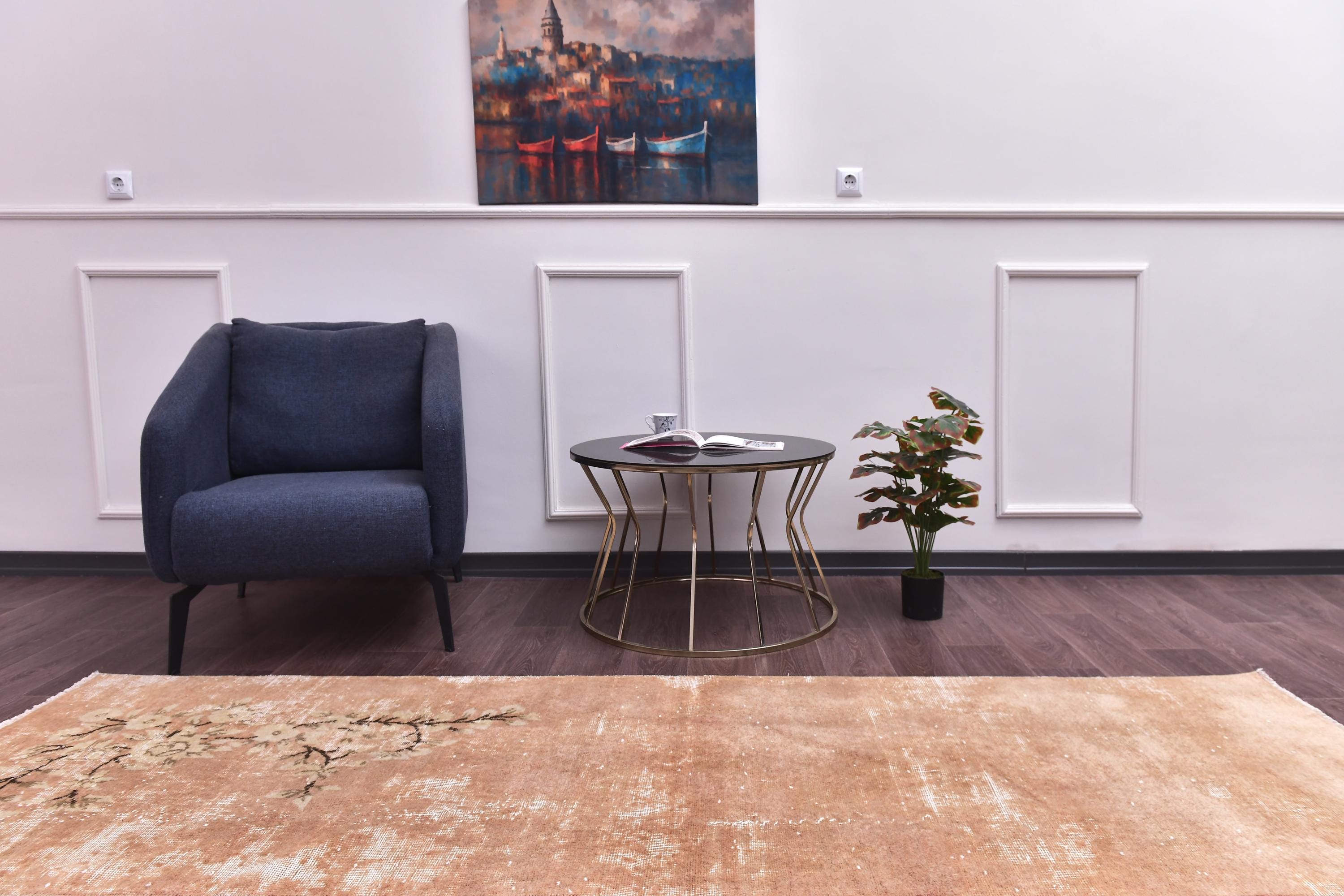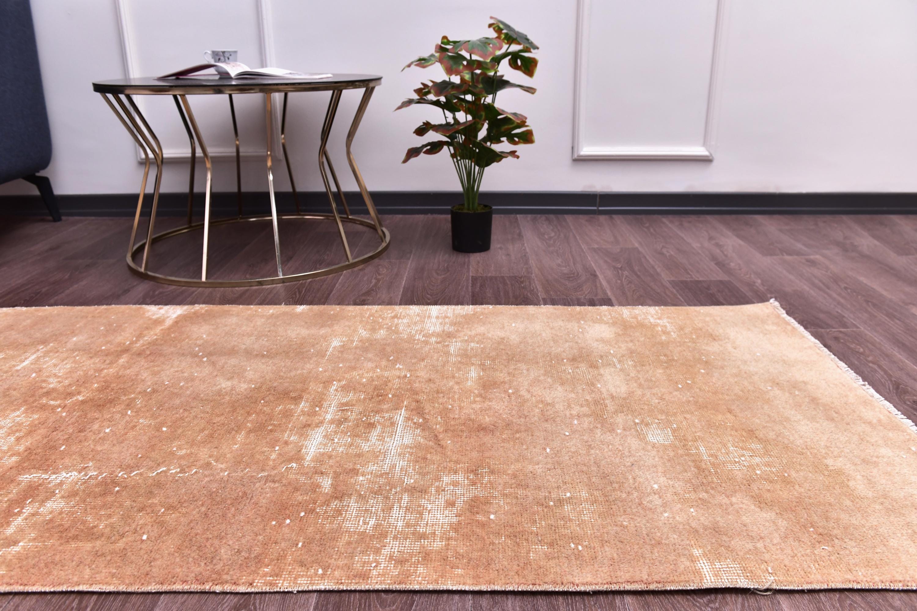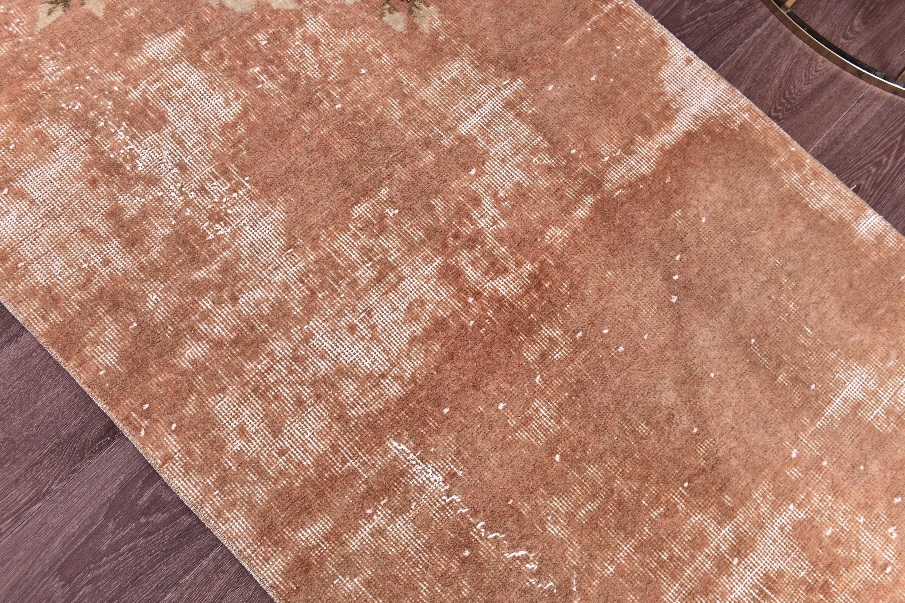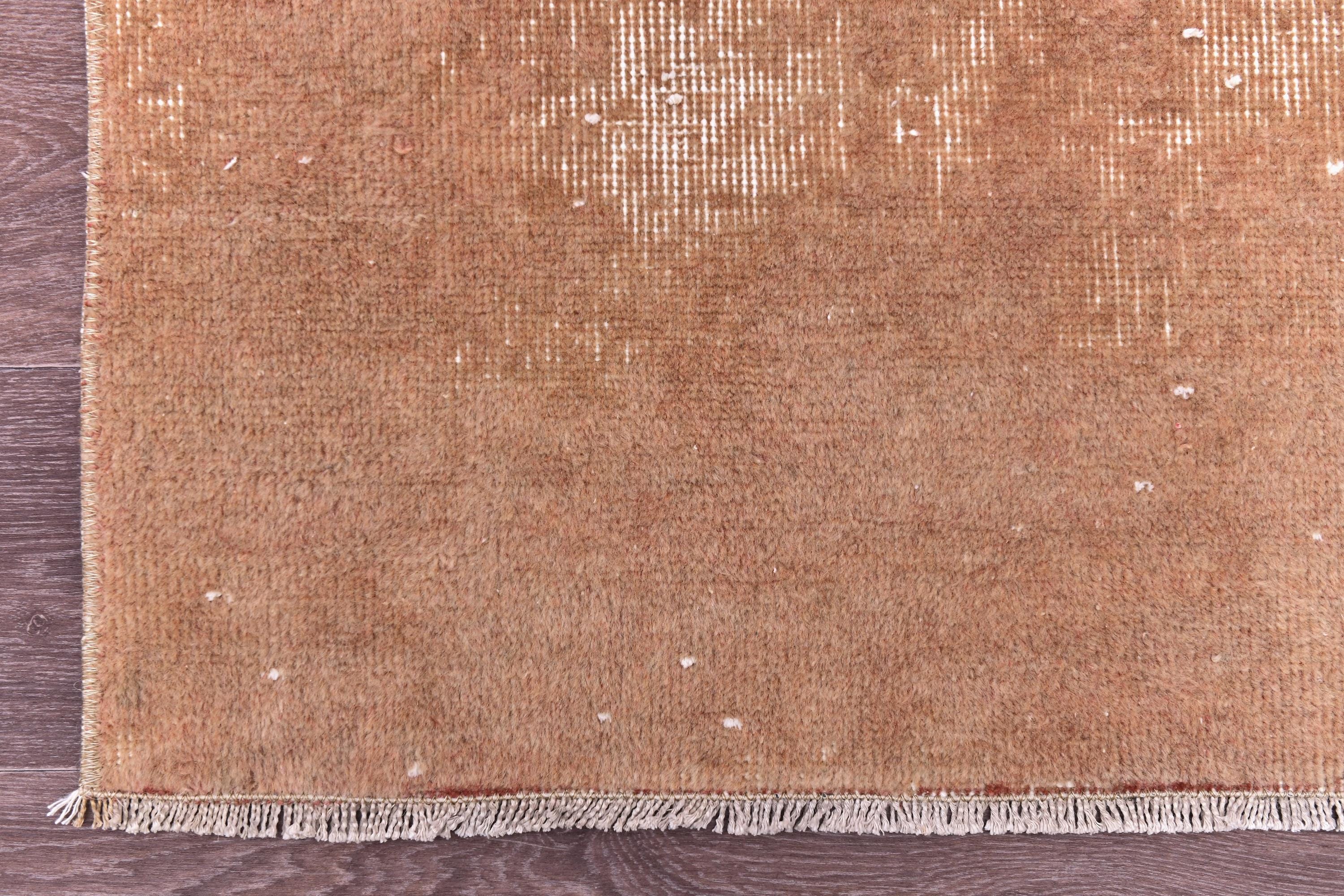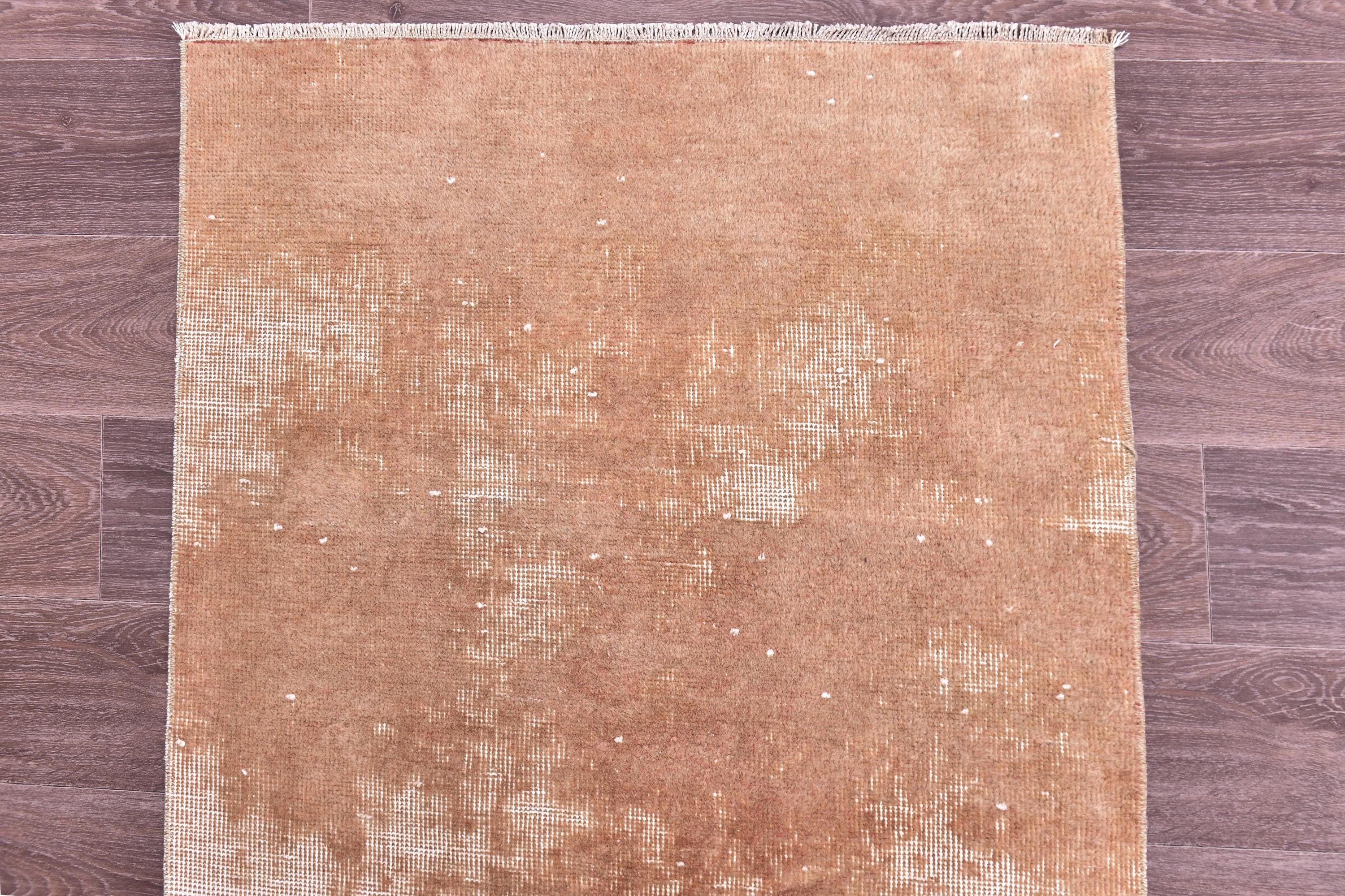 📜📌 Vintage Turkish runner rug featuring warm peachy coral and apricot tones with naturally faded distressed appearance, showcasing subtle minimalist floral branch design on open plain field, hand-knotted low pile wool construction with authentic worn texture and airy aesthetic, perfect long narrow carpet for modern bohemian hallways, entryways and corridors seeking understated organic elegance with soft neutral warmth