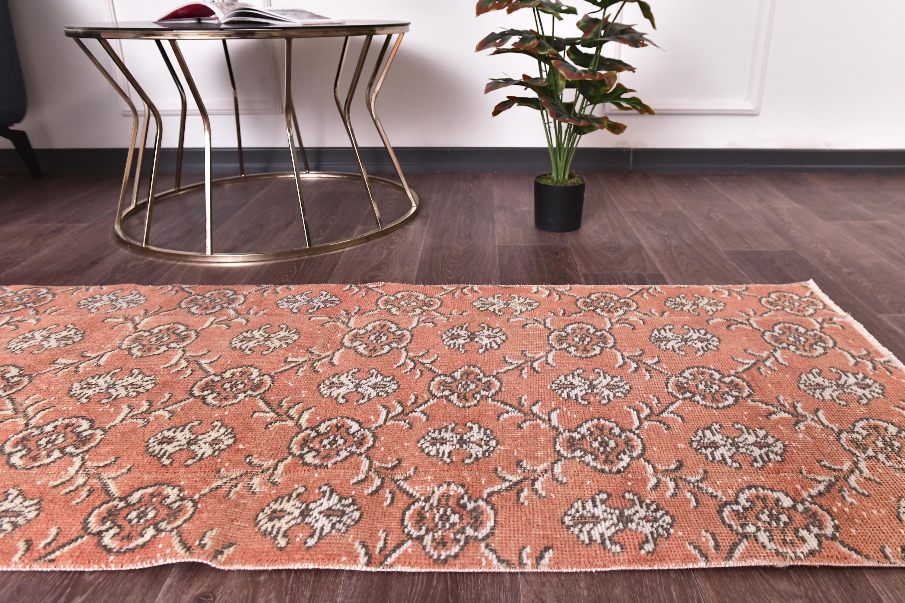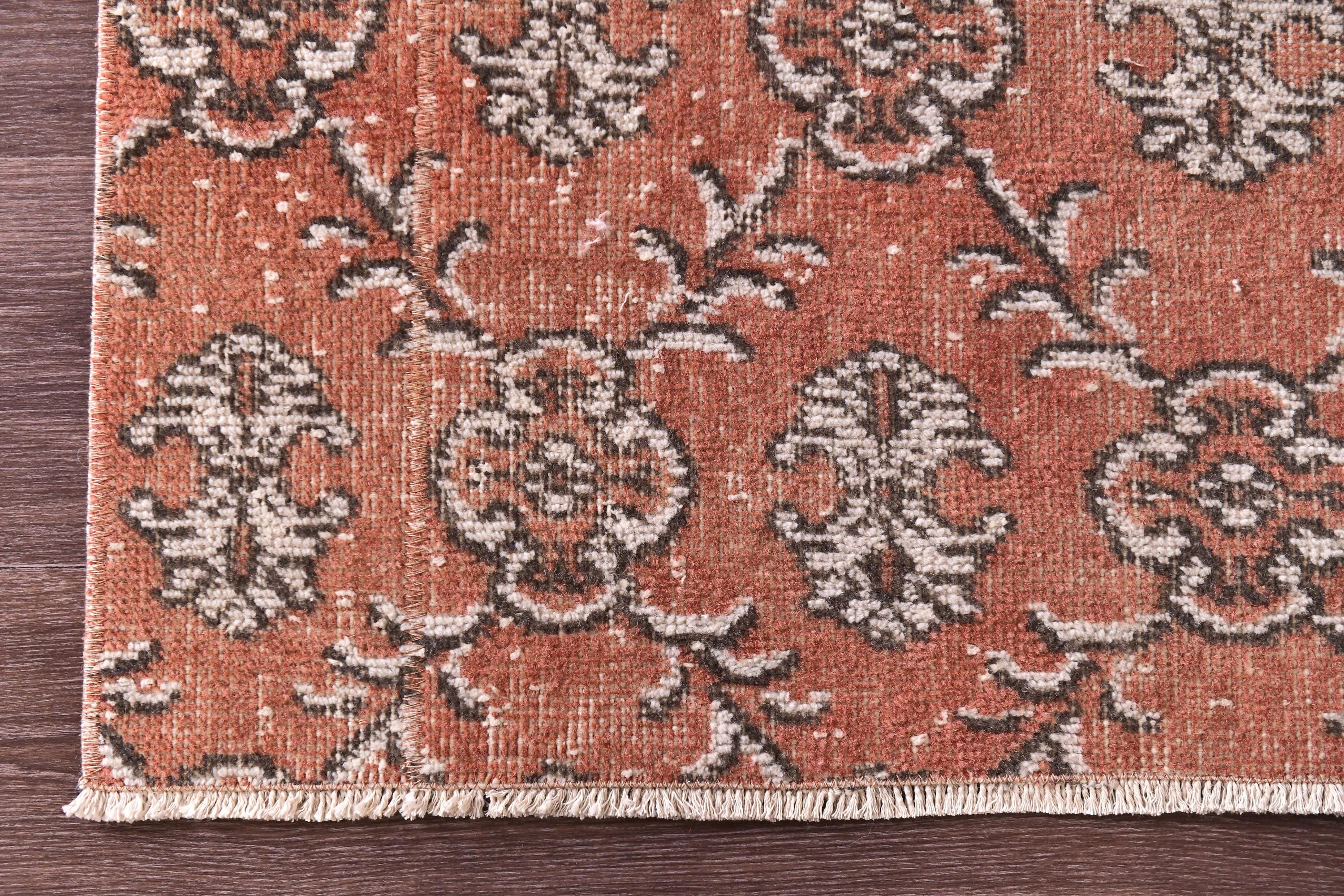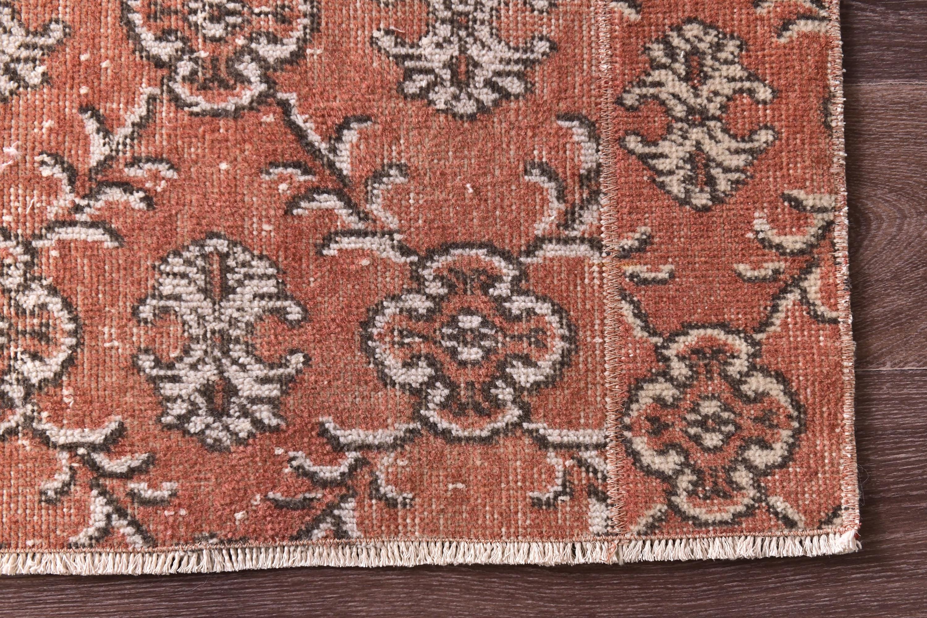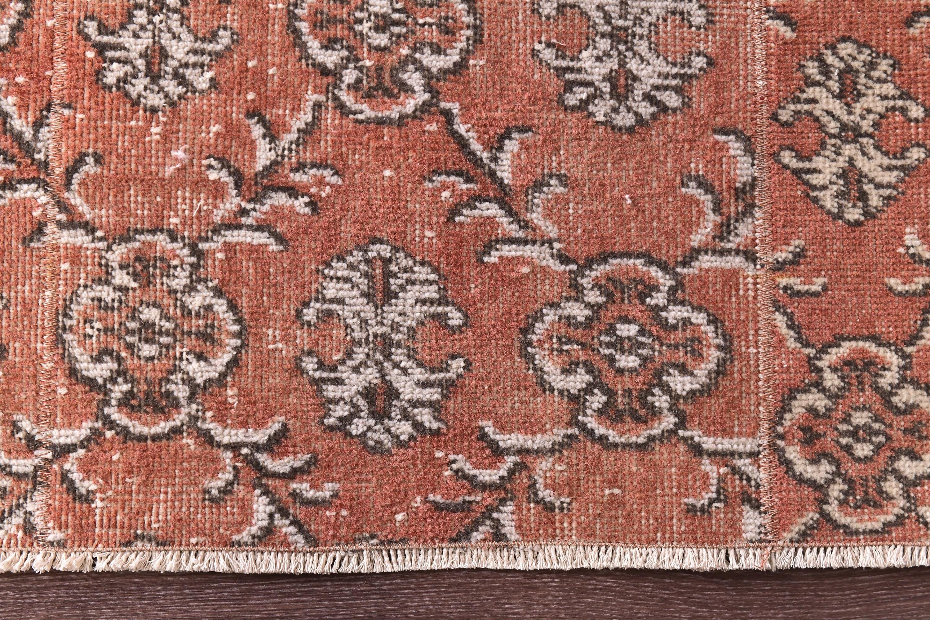 📜📌 Vintage Turkish runner rug featuring sophisticated faded color palette with rich terracotta and cream tones, showcasing intricate all-over floral vine pattern with traditional ornate borders, hand-knotted low pile wool with authentic distressed texture and naturally worn appearance, perfect long narrow carpet for hallways, entryways and corridors in bohemian and vintage inspired interiors