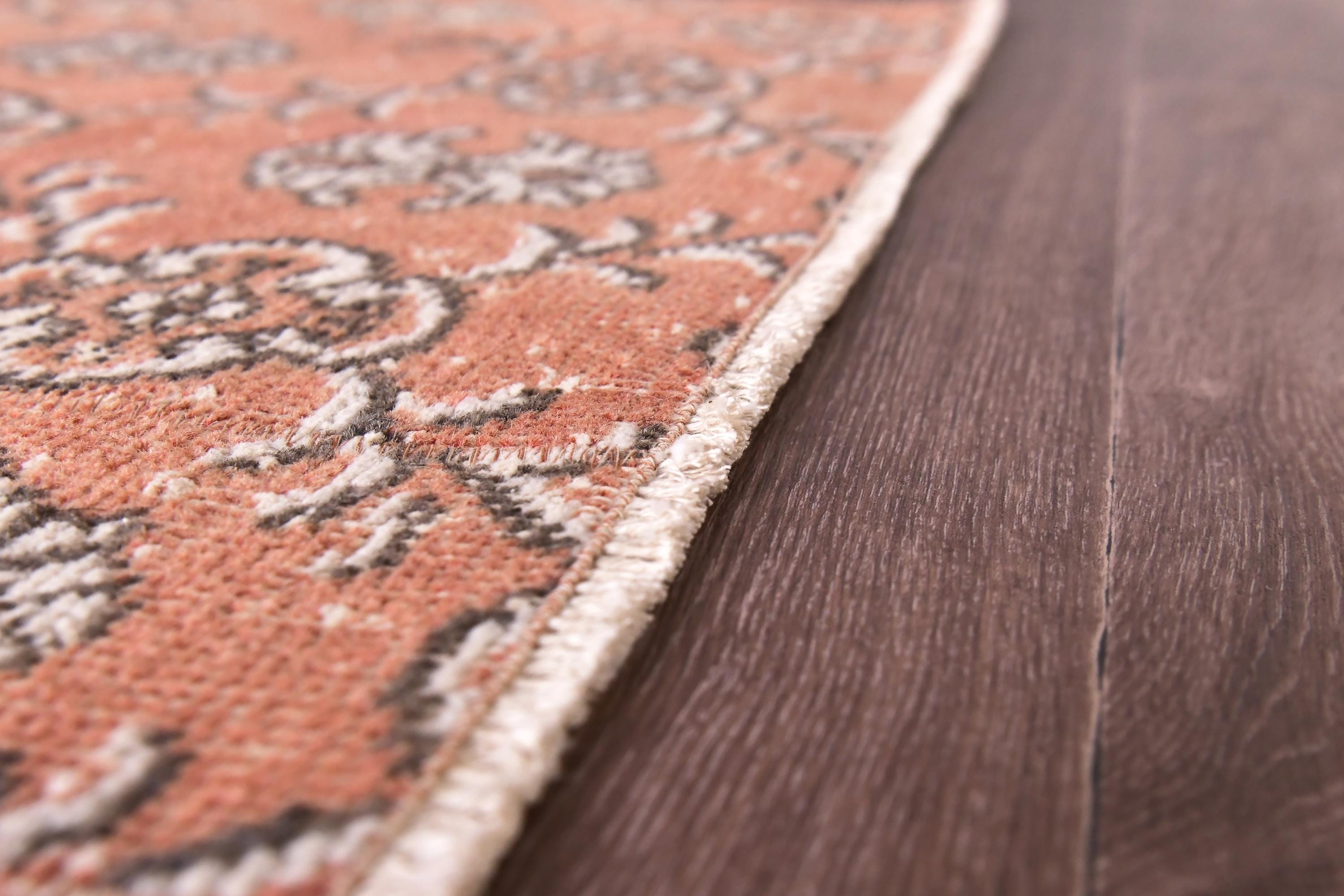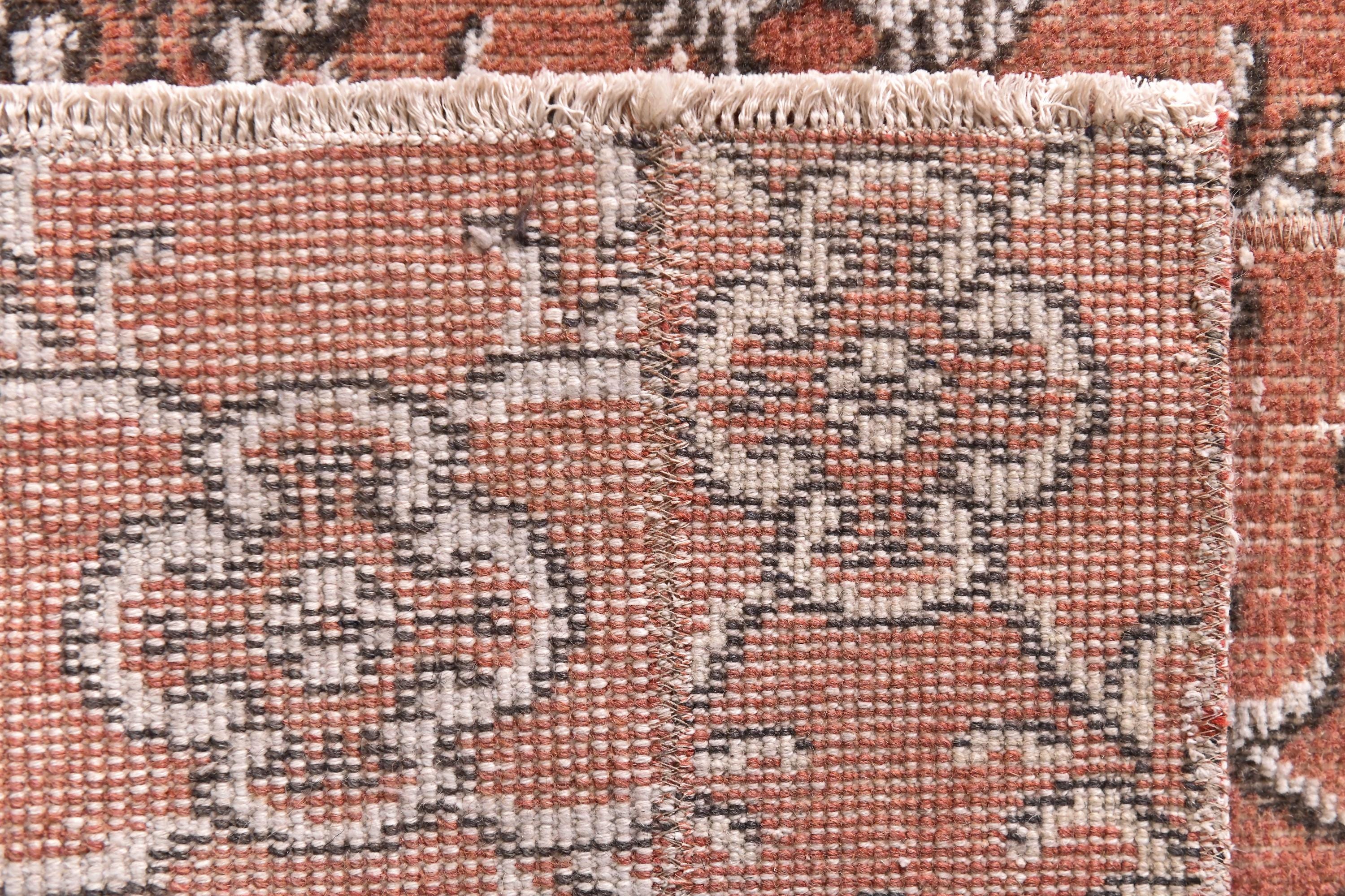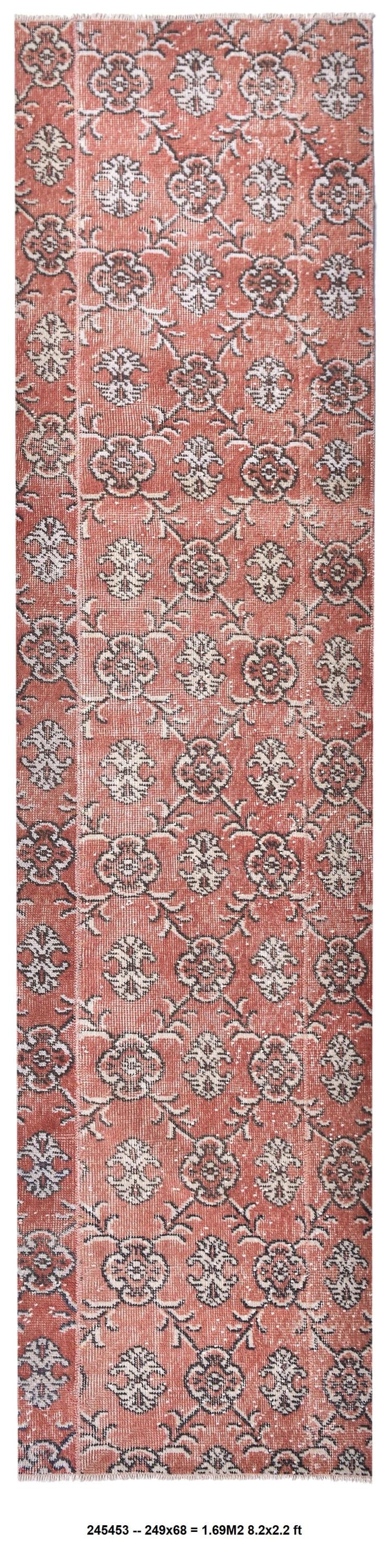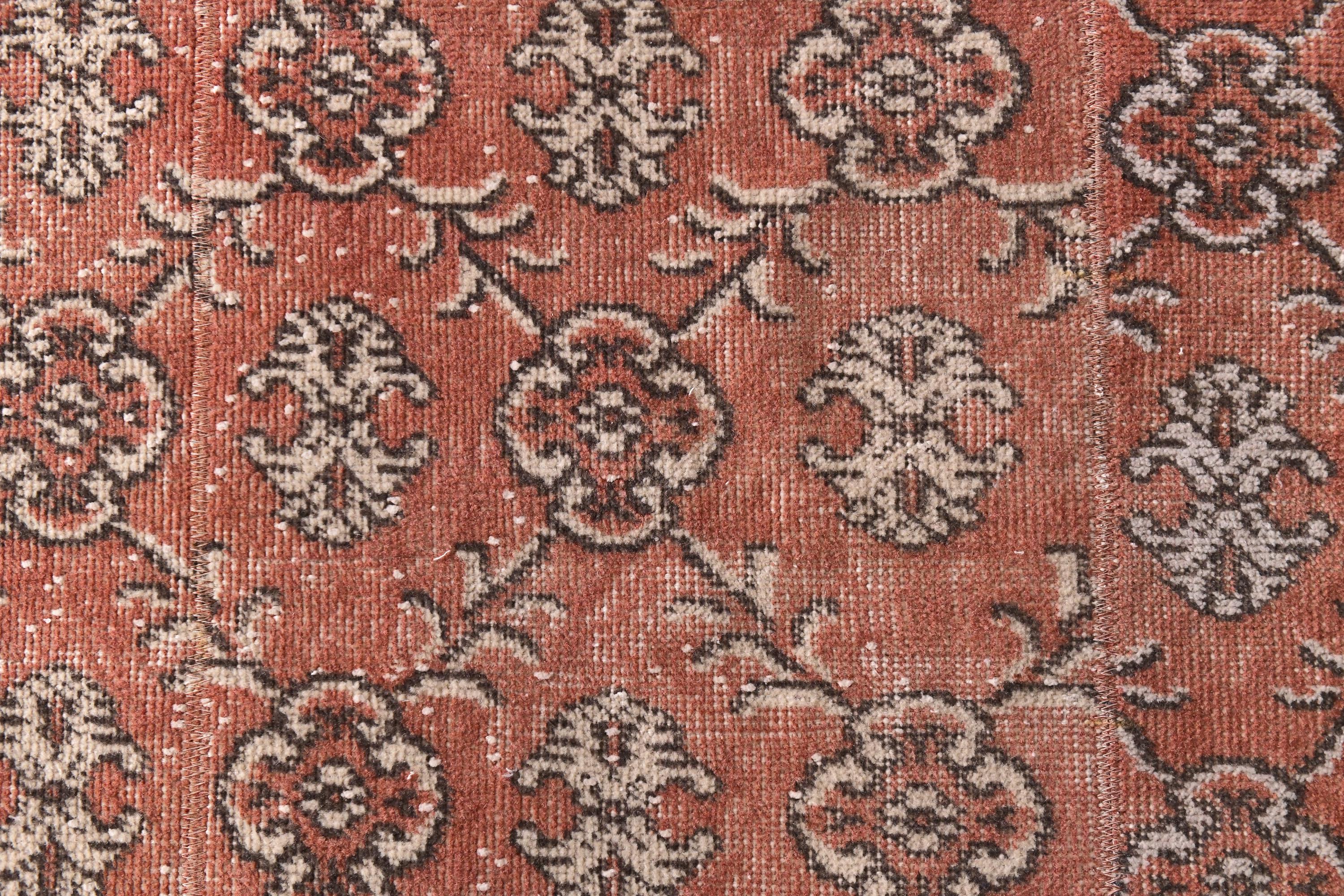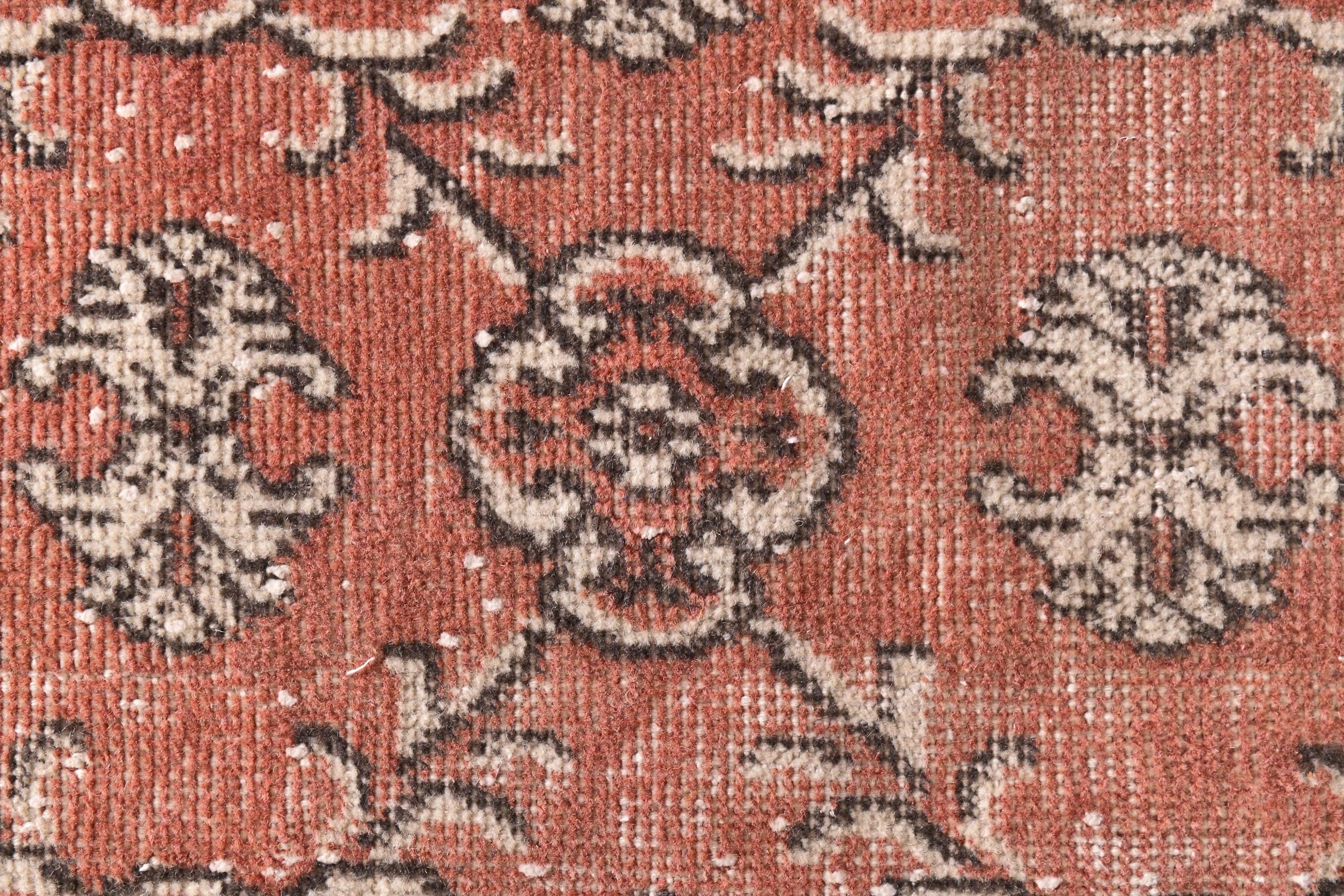 📜📌 Vintage Turkish runner rug featuring sophisticated faded color palette with rich terracotta and cream tones, showcasing intricate all-over floral vine pattern with traditional ornate borders, hand-knotted low pile wool with authentic distressed texture and naturally worn appearance, perfect long narrow carpet for hallways, entryways and corridors in bohemian and vintage inspired interiors