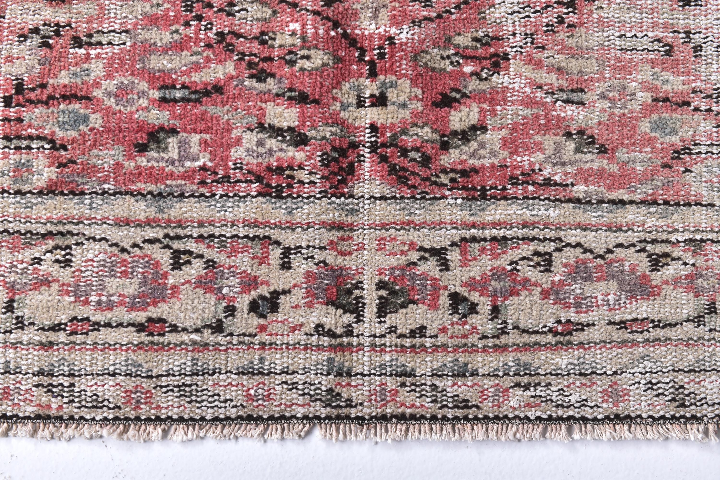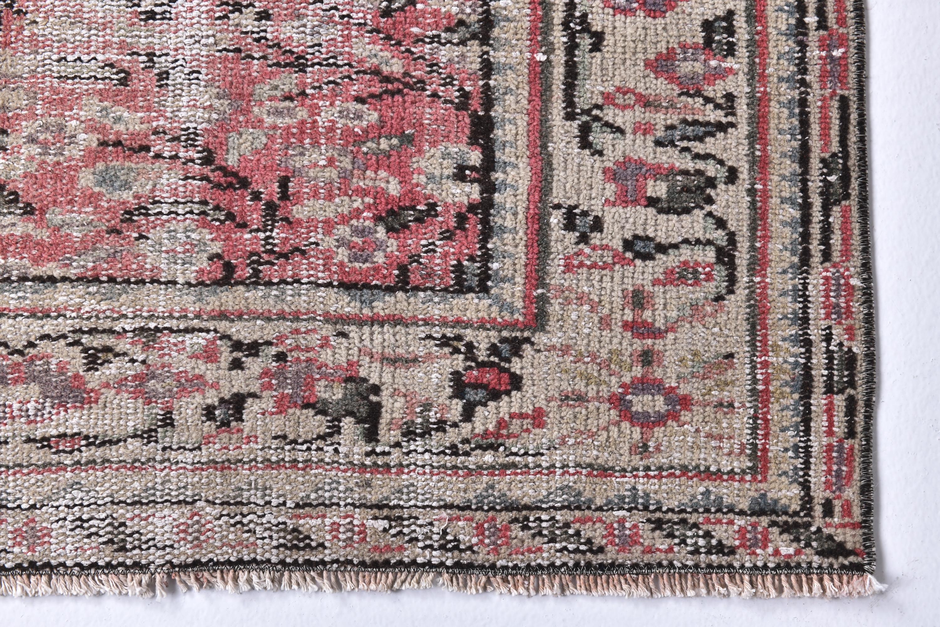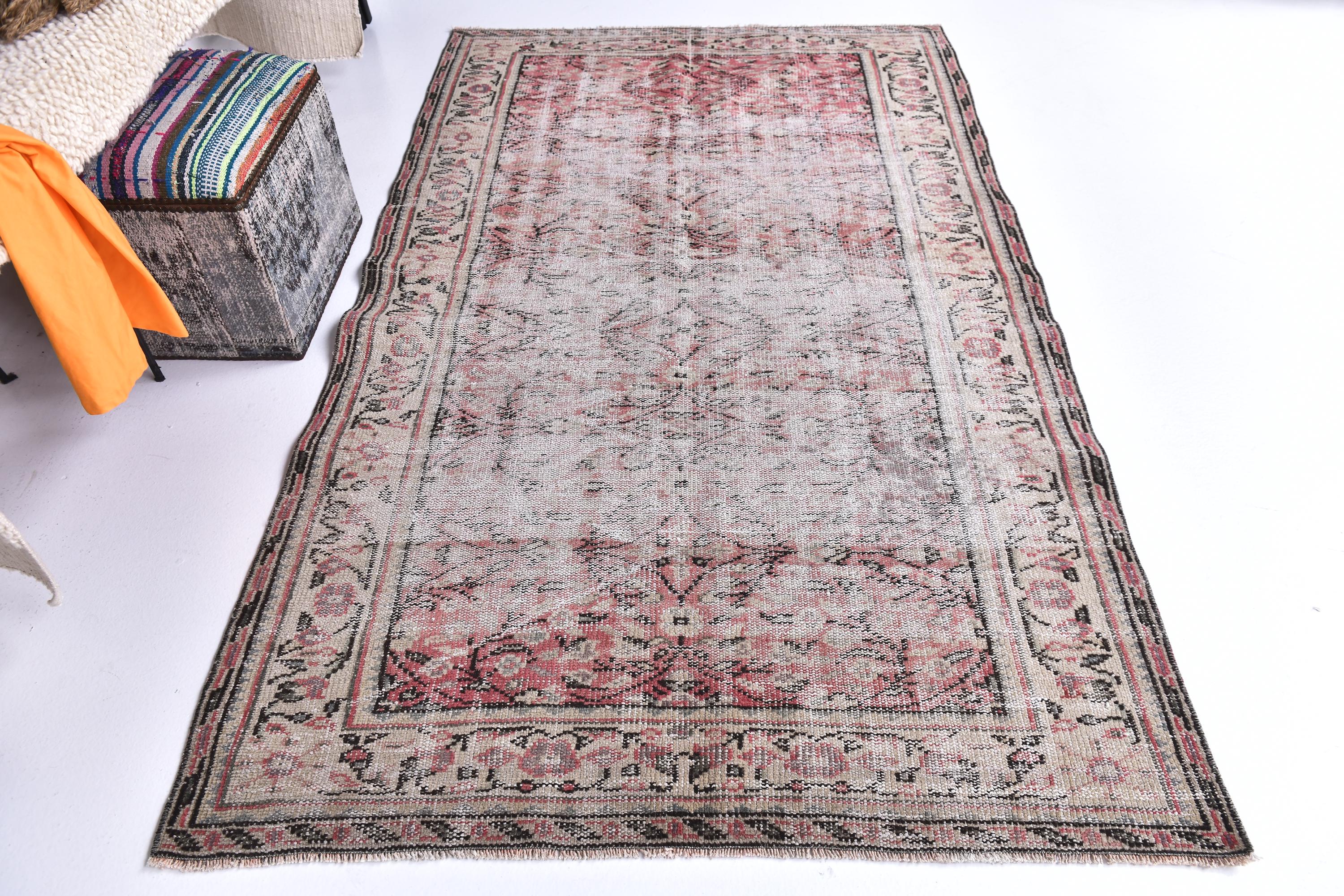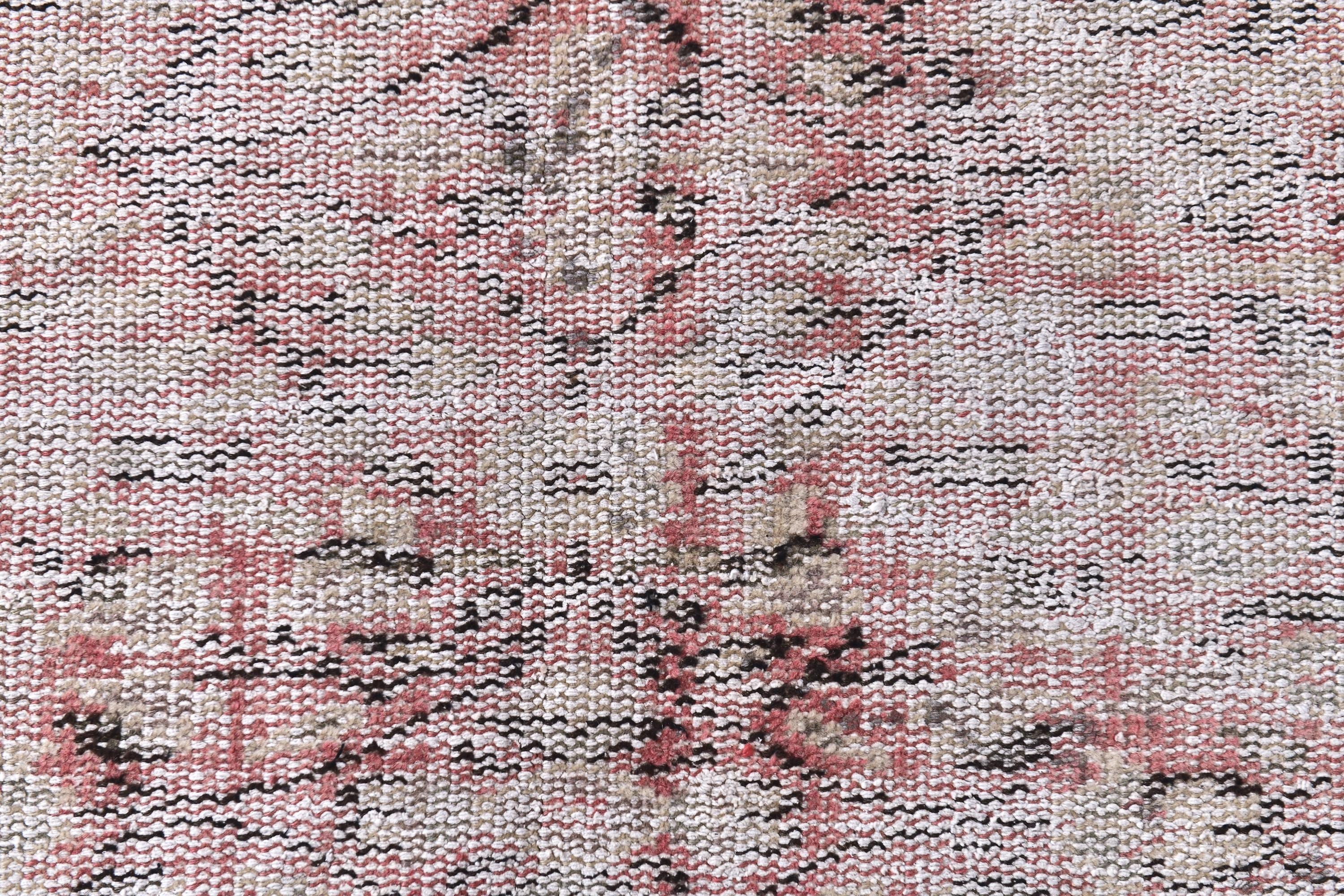 📜📌 Antique Turkish Oushak area rug with worn vintage aesthetic showing soft gray field and dusty pink floral border patterns. Hand-woven wool carpet with distressed finish, visible weave texture, and symmetrical design in muted tones including rose, taupe, cream, and charcoal with elegant corner motifs.
