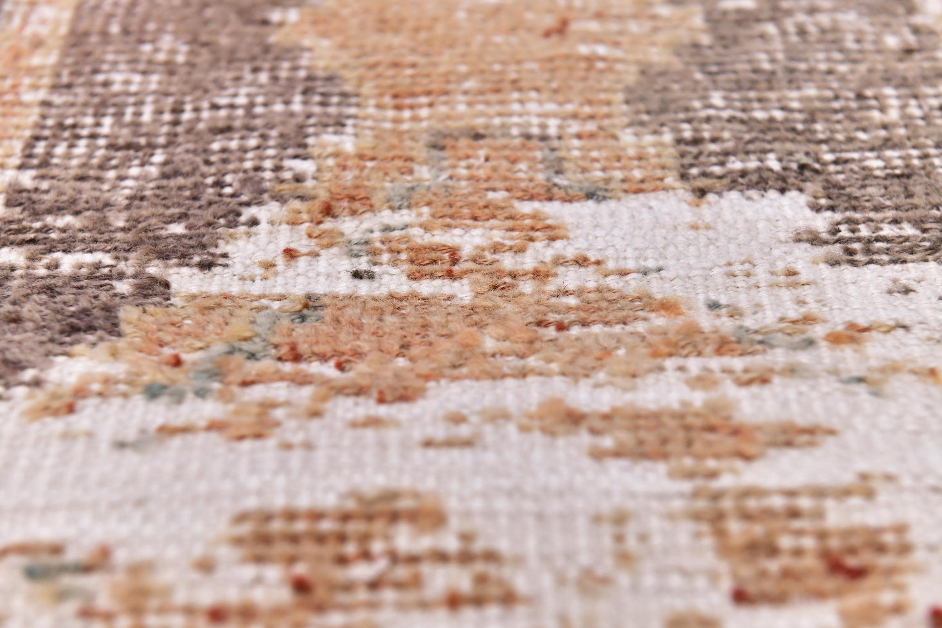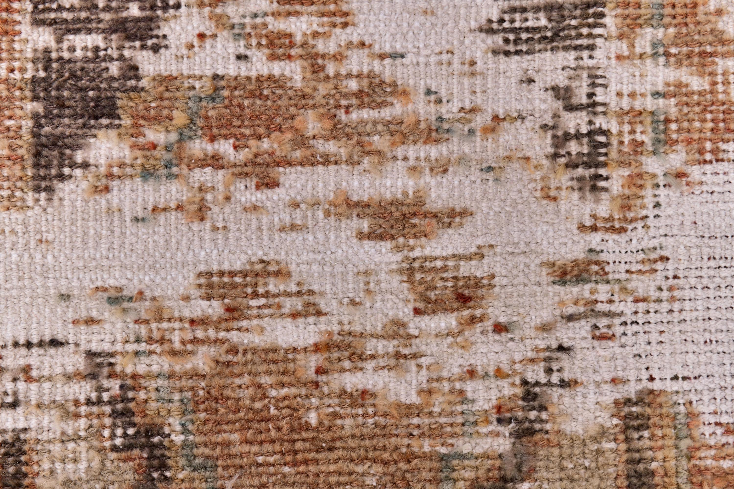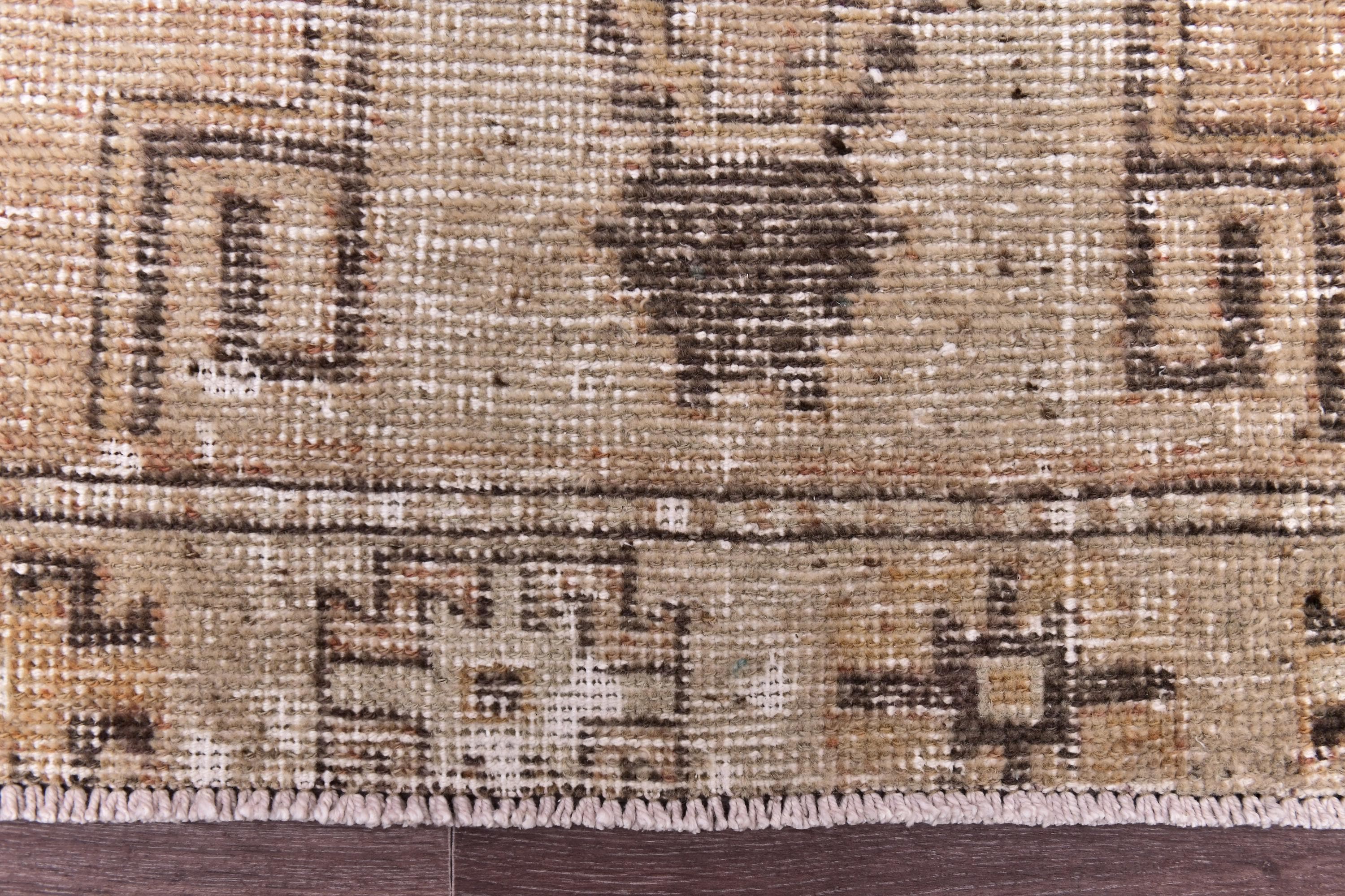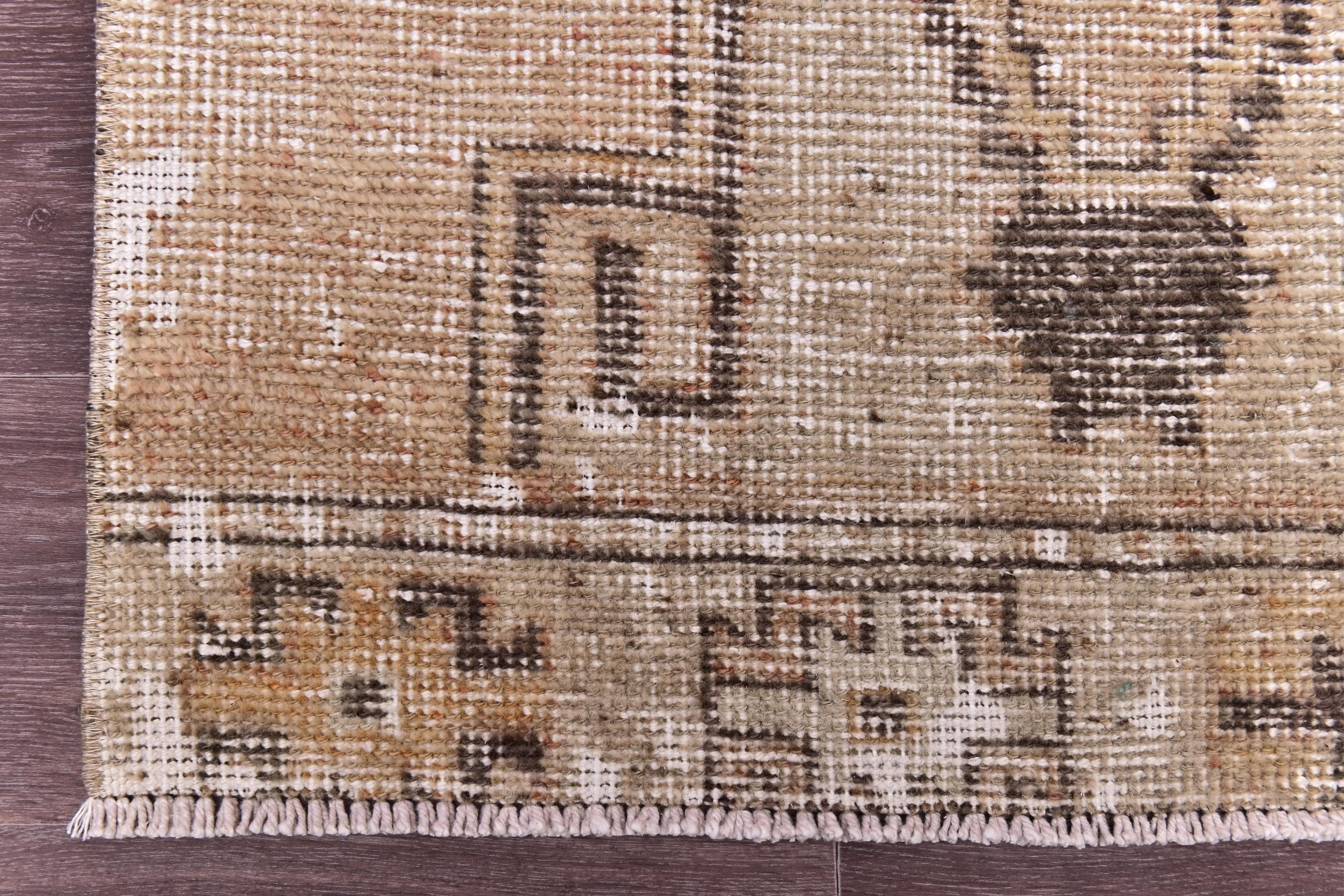 📜📌 Heavily distressed vintage Turkish runner rug featuring worn beige, white, and taupe abstract patterns with authentic aged patina. The narrow wool runner displays extremely faded design with visible weave texture, earthy neutral tones, and shabby chic character perfect for hallways, kitchens, and entryways seeking rustic charm.