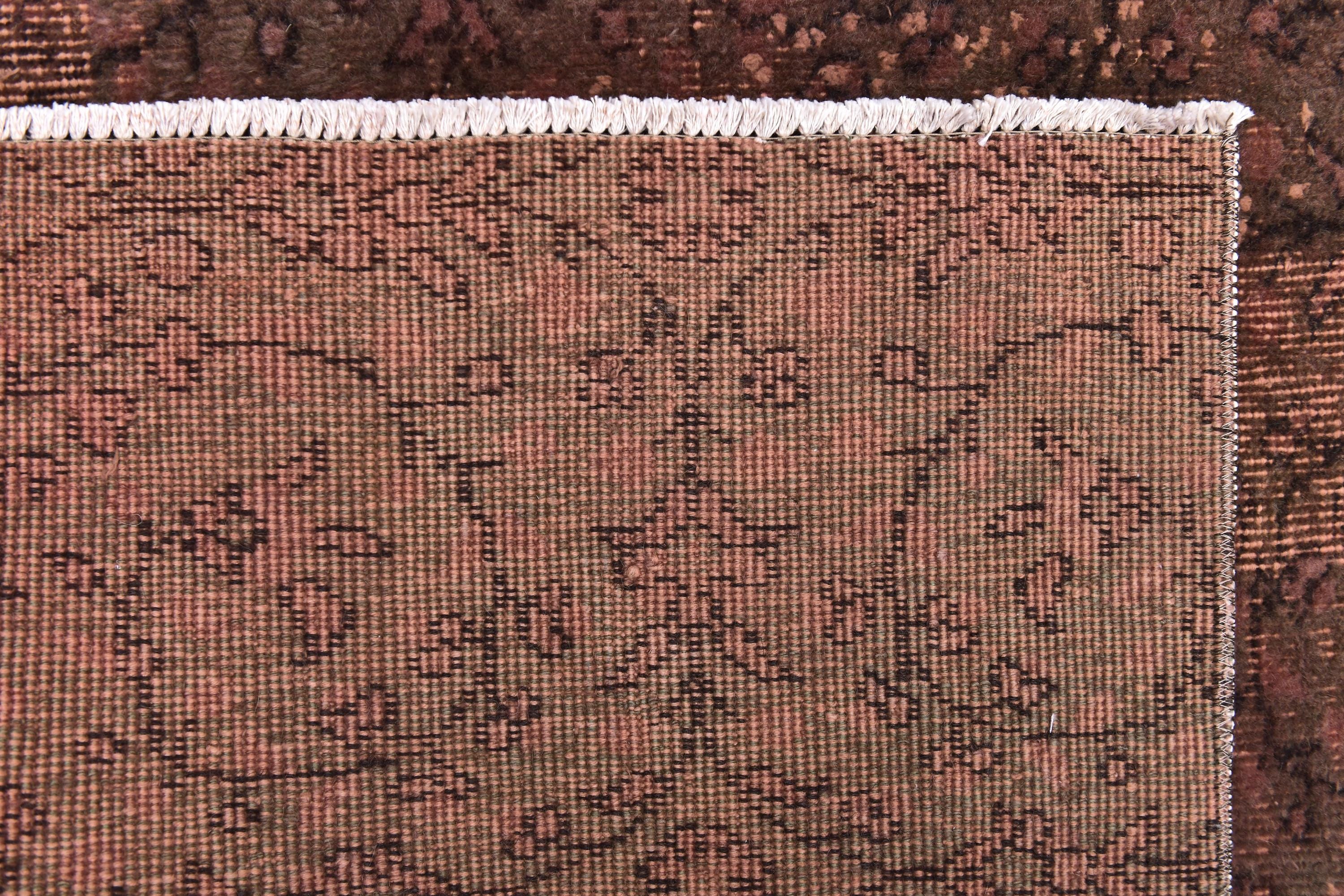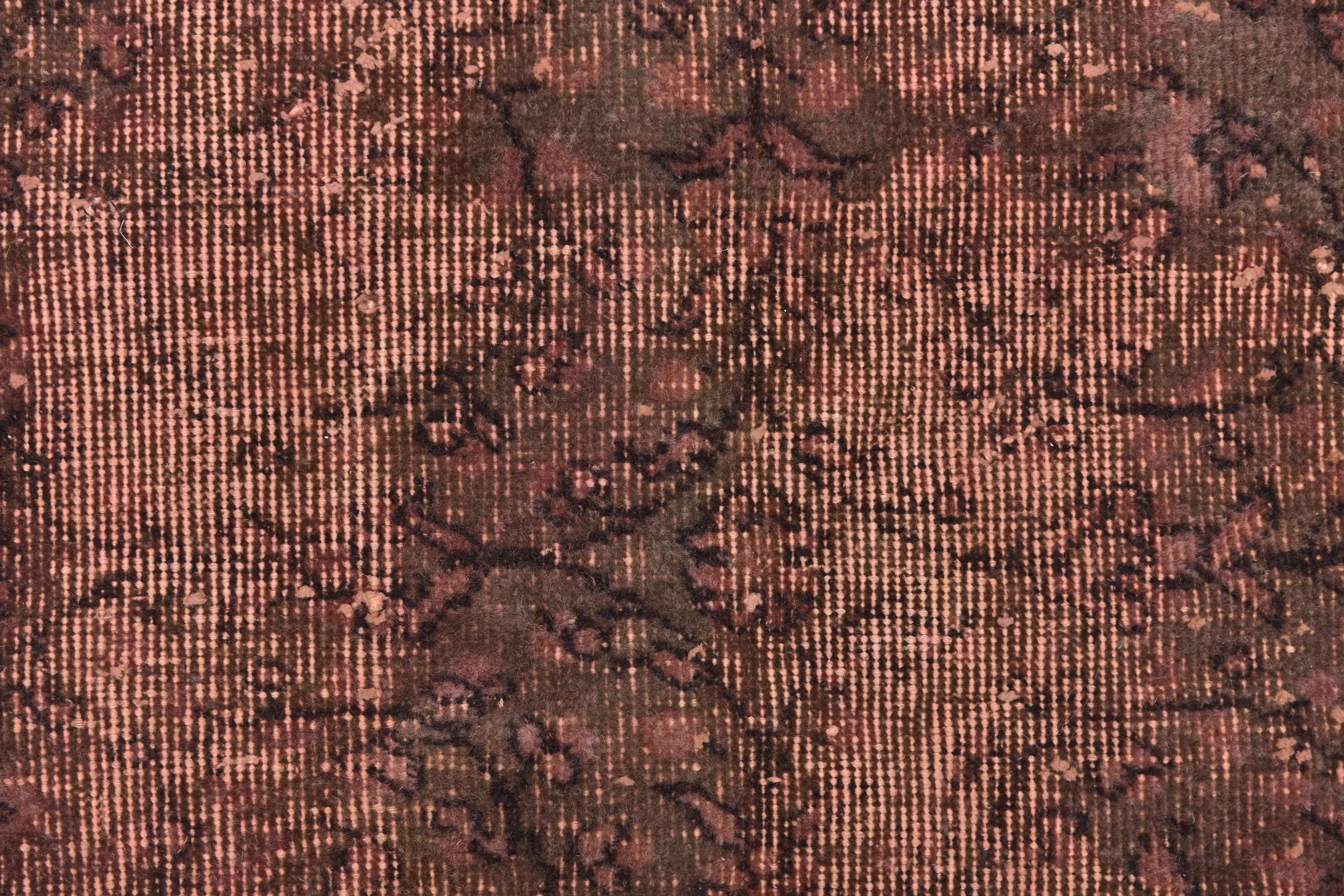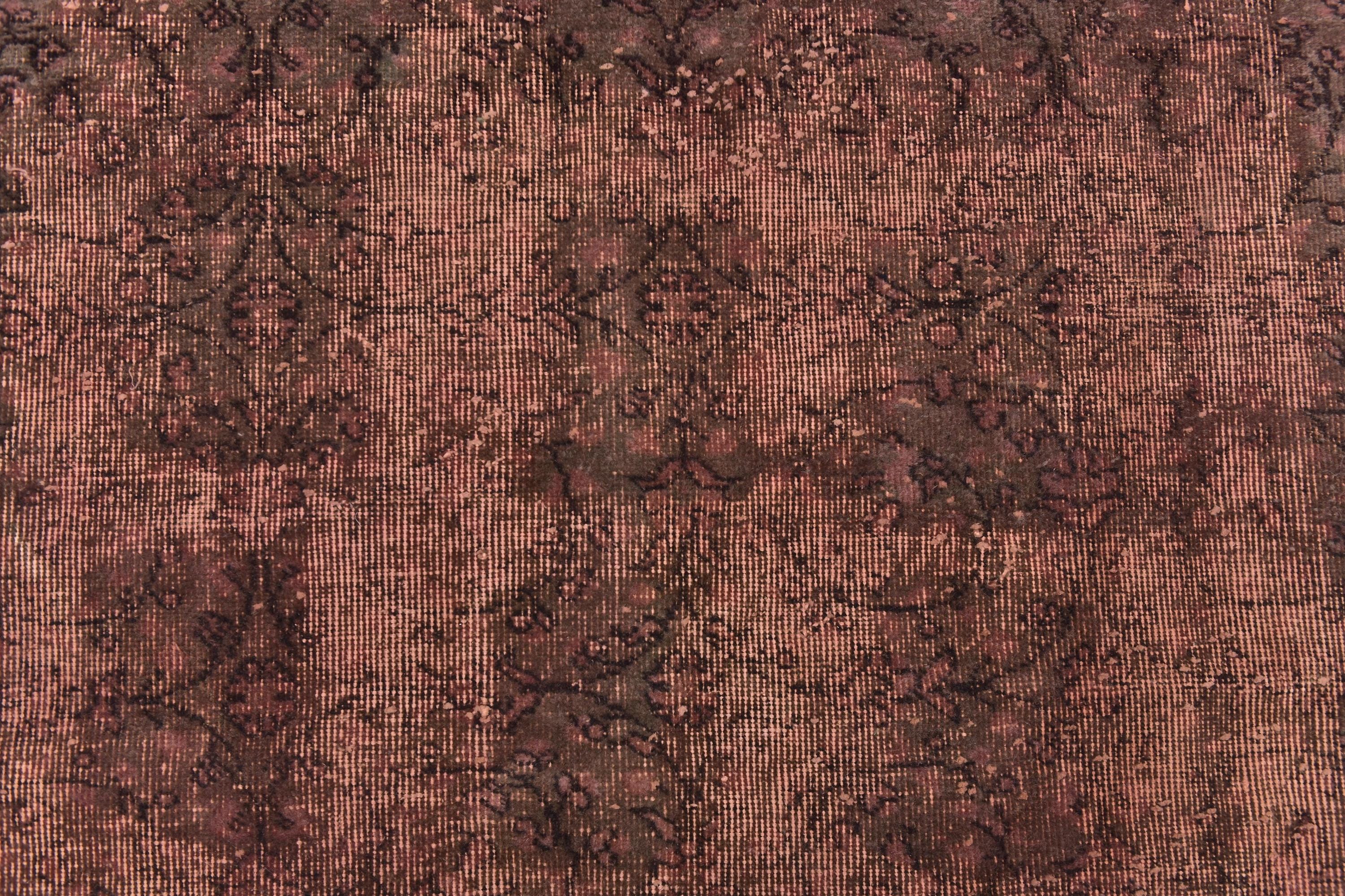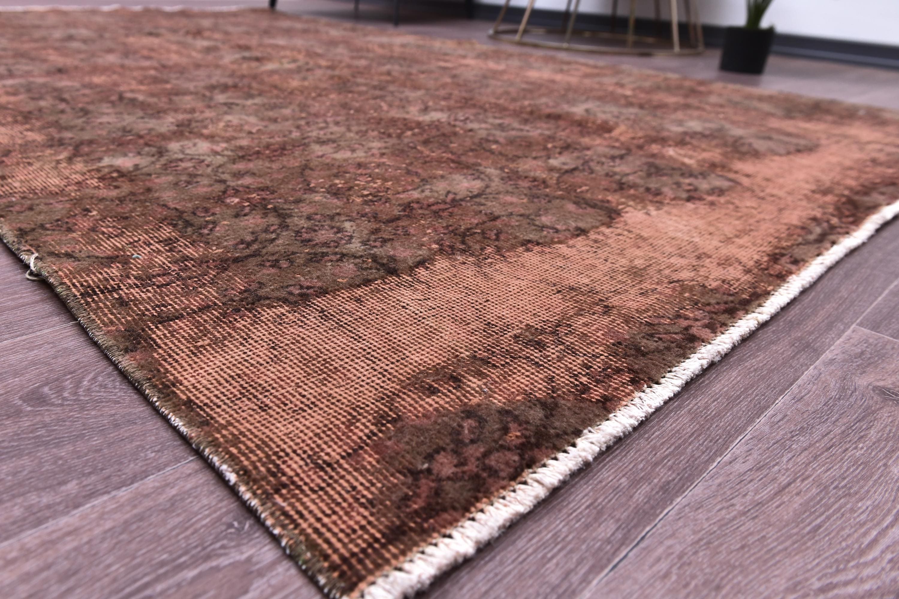 📜📌 Vintage Turkish overdyed area rug in rich brown and copper tones with heavily distressed appearance. Hand-knotted wool carpet featuring subtle faded medallion and floral patterns barely visible through the aged patina. Warm rustic color palette blending chocolate brown, burnt orange, and copper hues creates dramatic vintage aesthetic perfect for industrial and bohemian interiors.