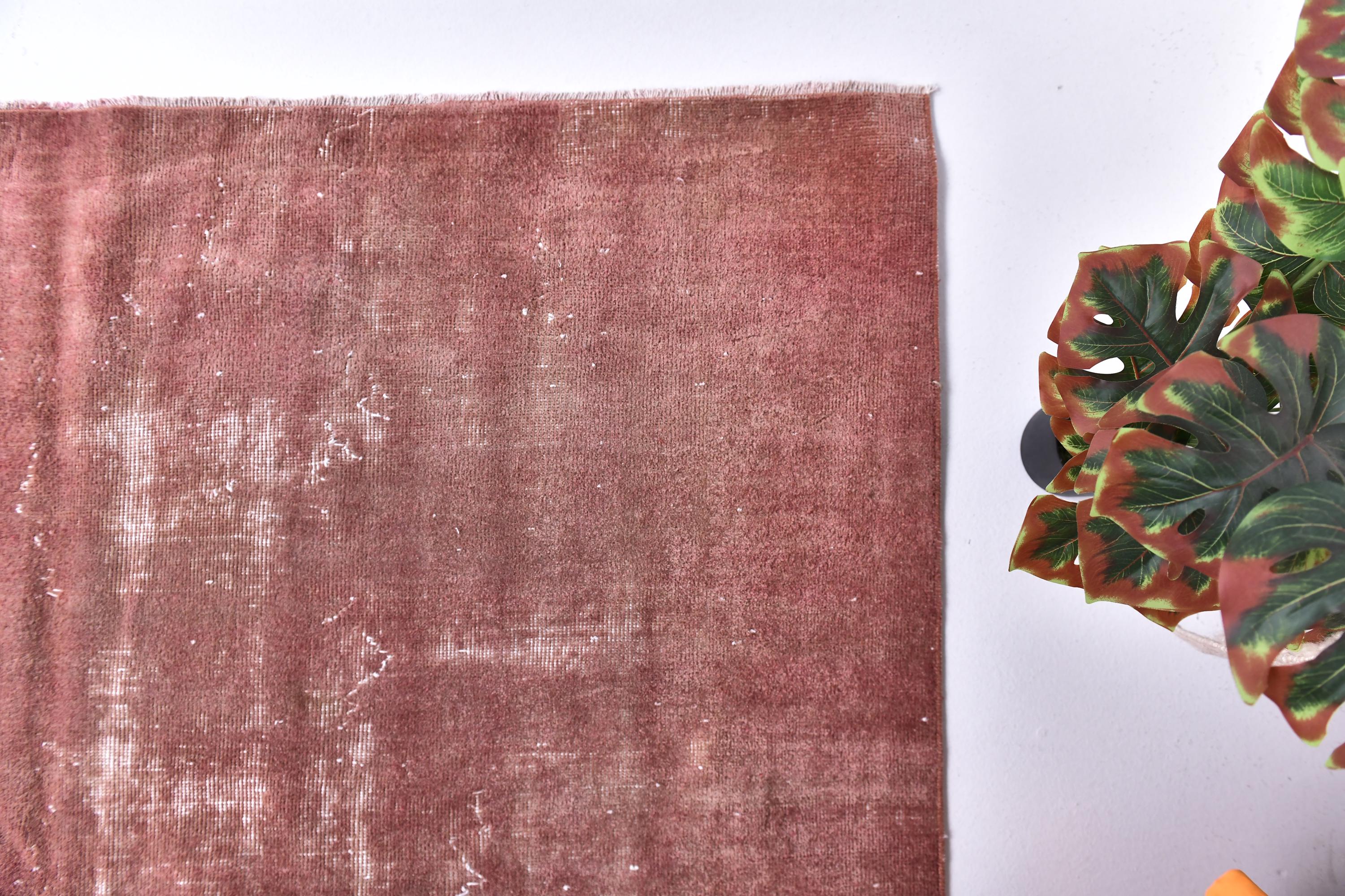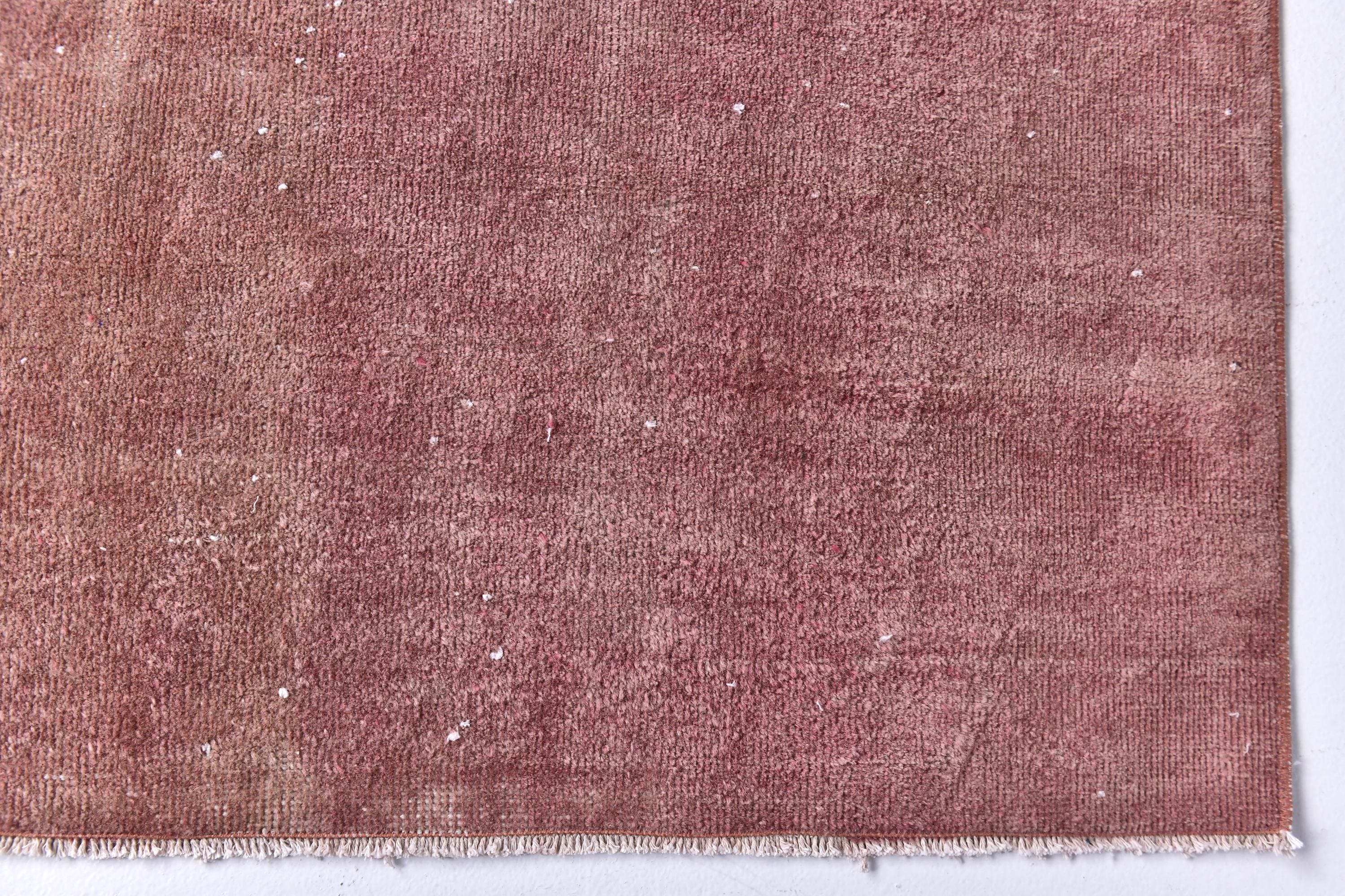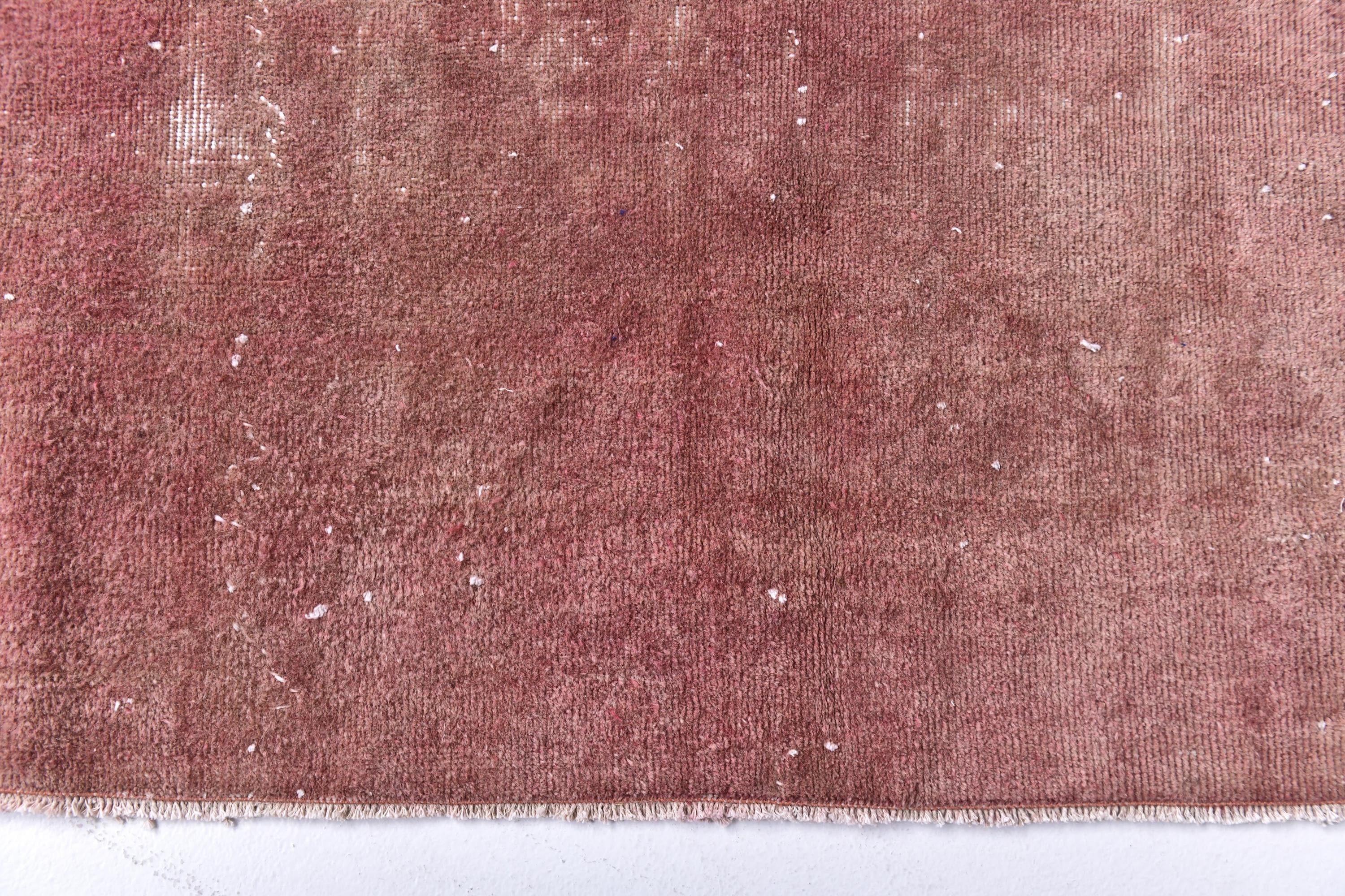 📜📌Large vintage overdyed Turkish area rug in gorgeous dusty rose pink and mauve tones with heavily distressed patina finish, hand-knotted low-pile wool construction showing authentic aged character, solid color design perfect for modern bohemian and contemporary interiors