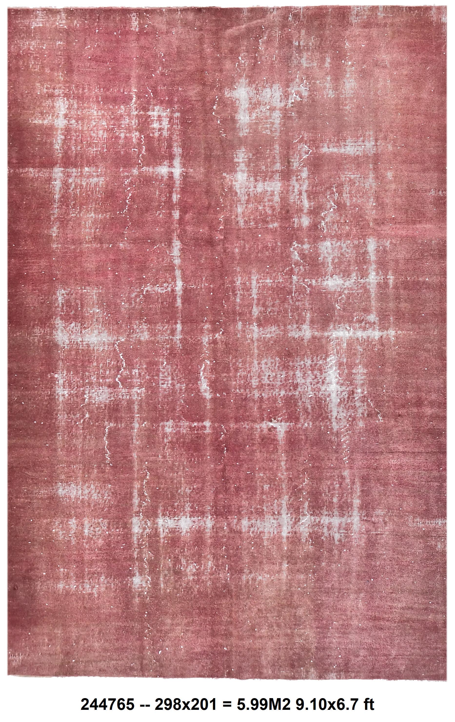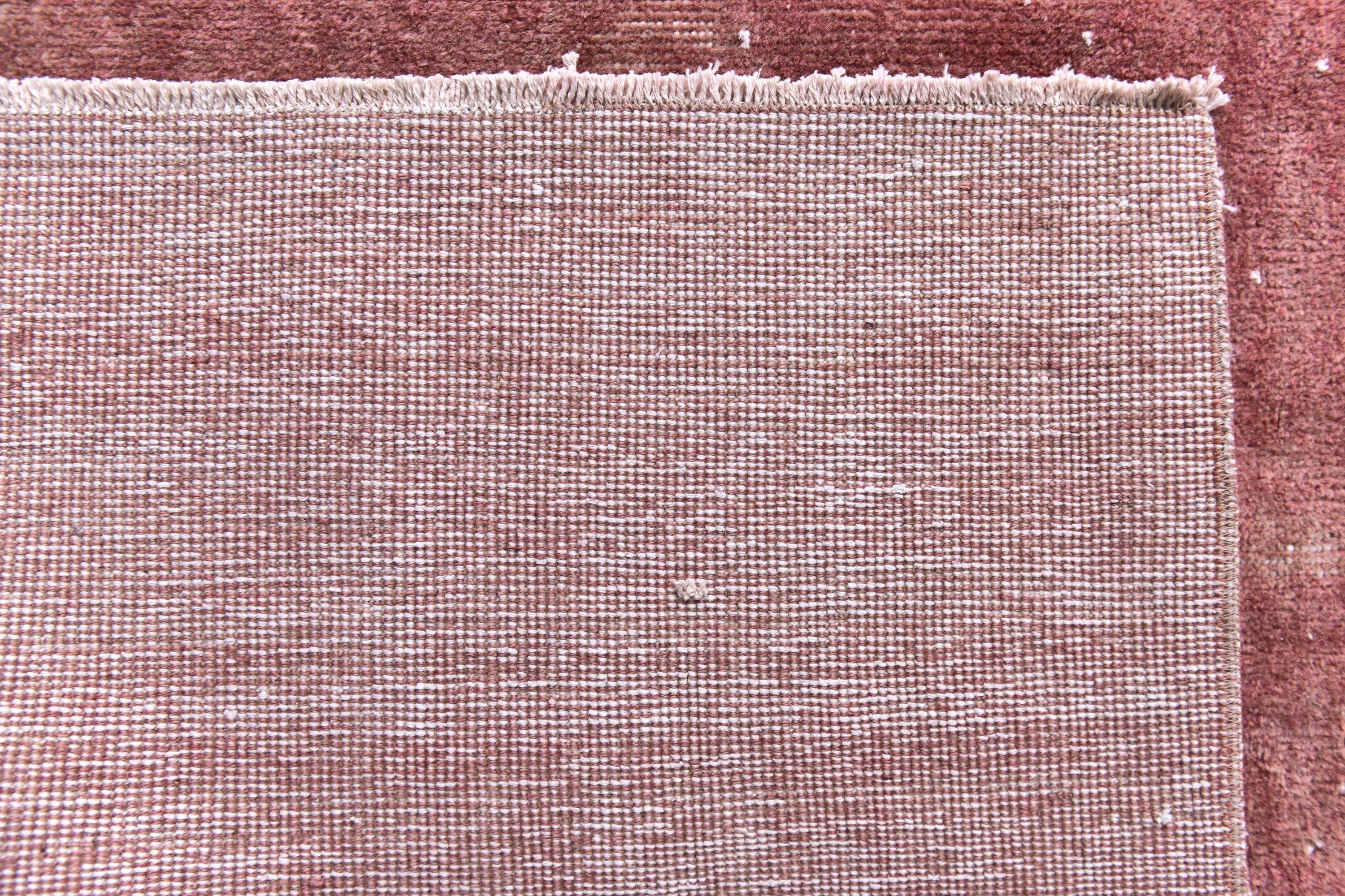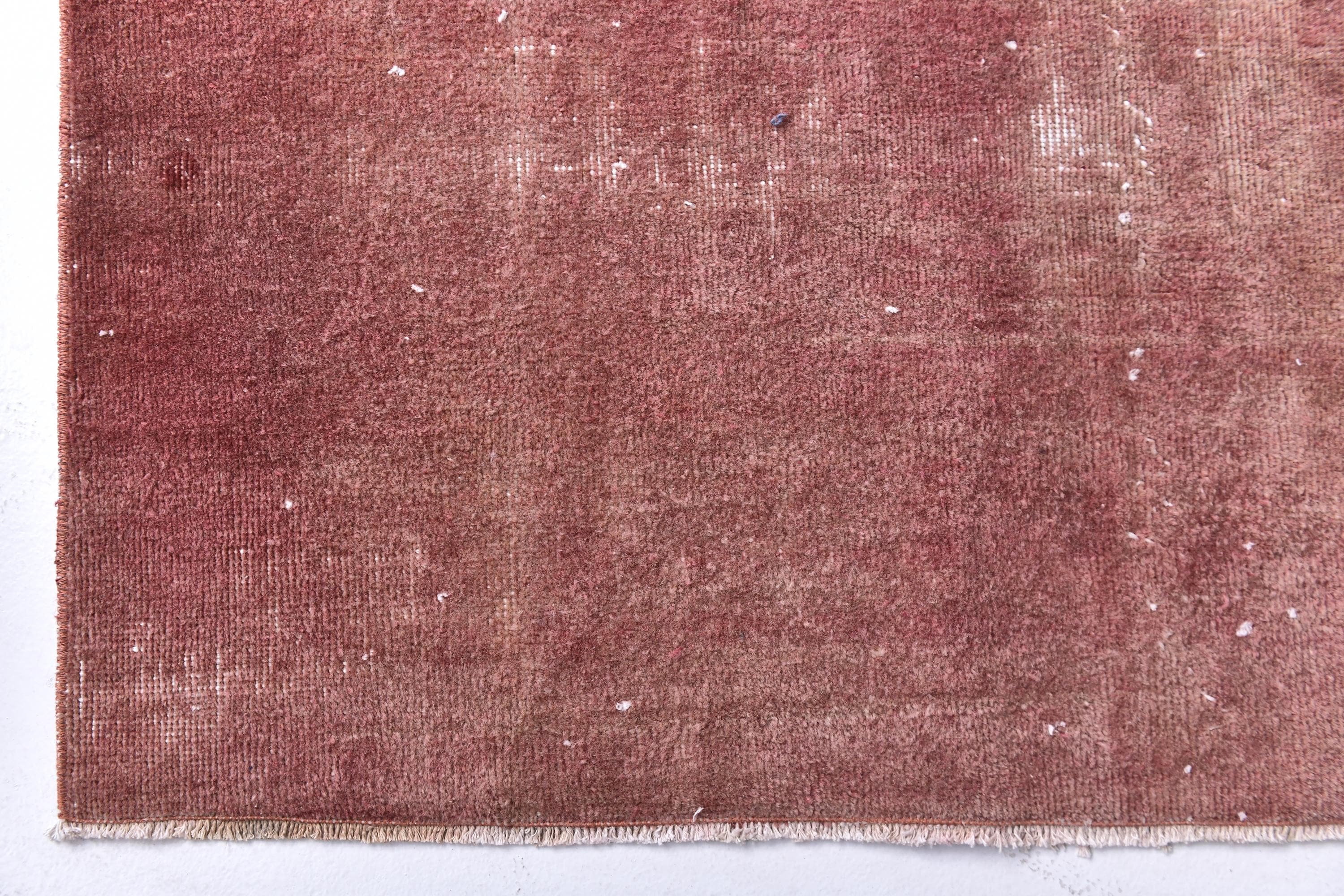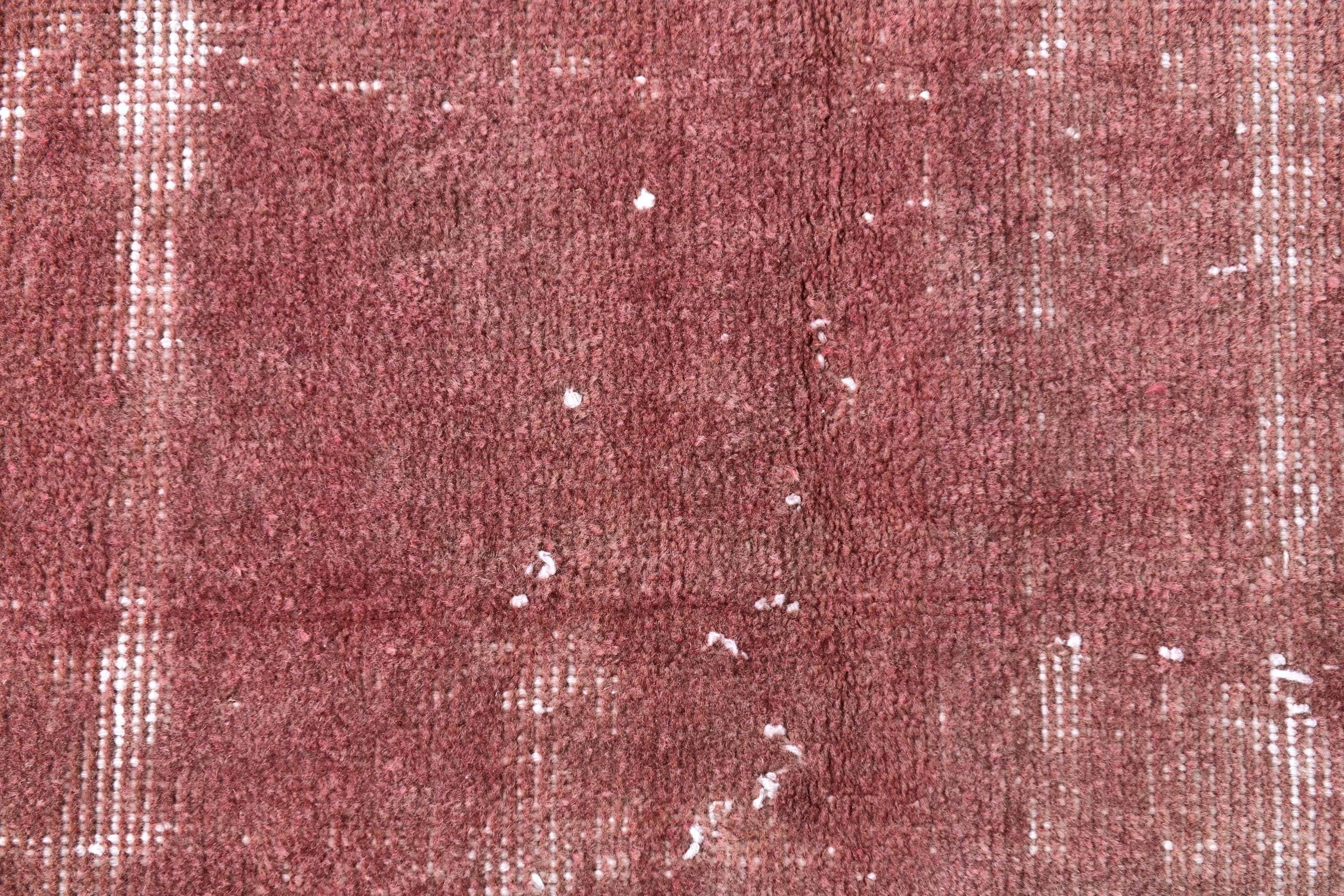 📜📌Large vintage overdyed Turkish area rug in gorgeous dusty rose pink and mauve tones with heavily distressed patina finish, hand-knotted low-pile wool construction showing authentic aged character, solid color design perfect for modern bohemian and contemporary interiors