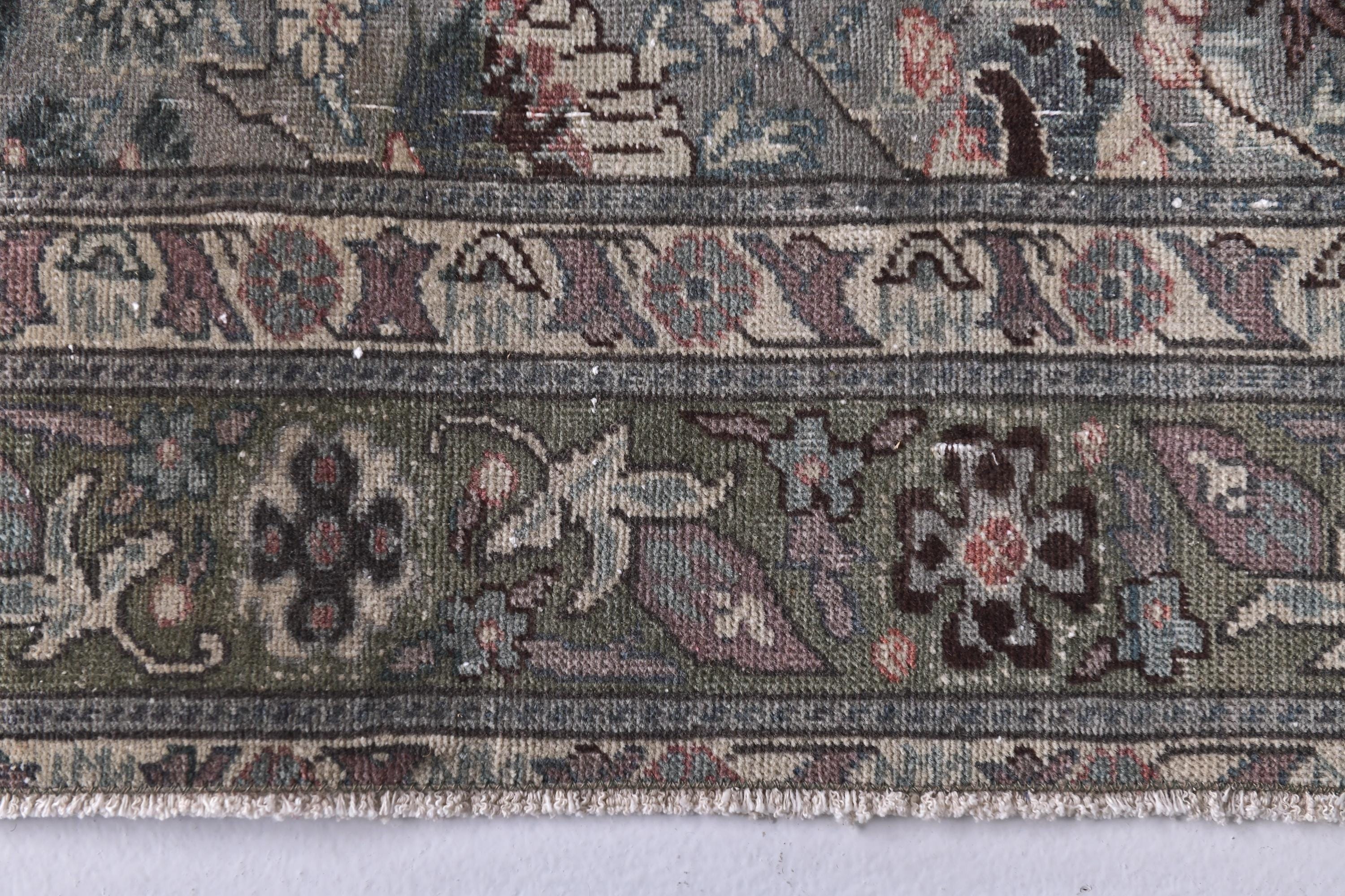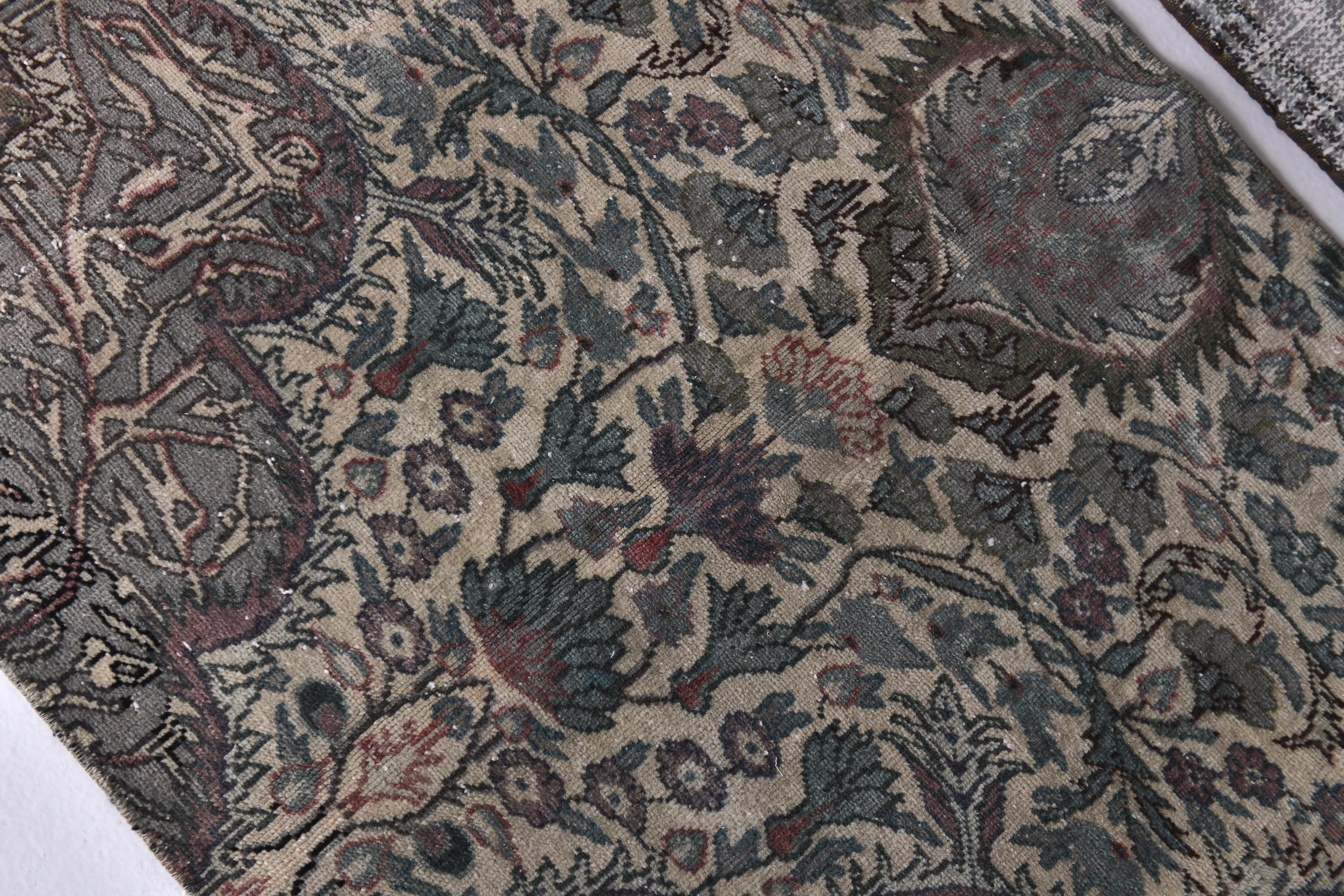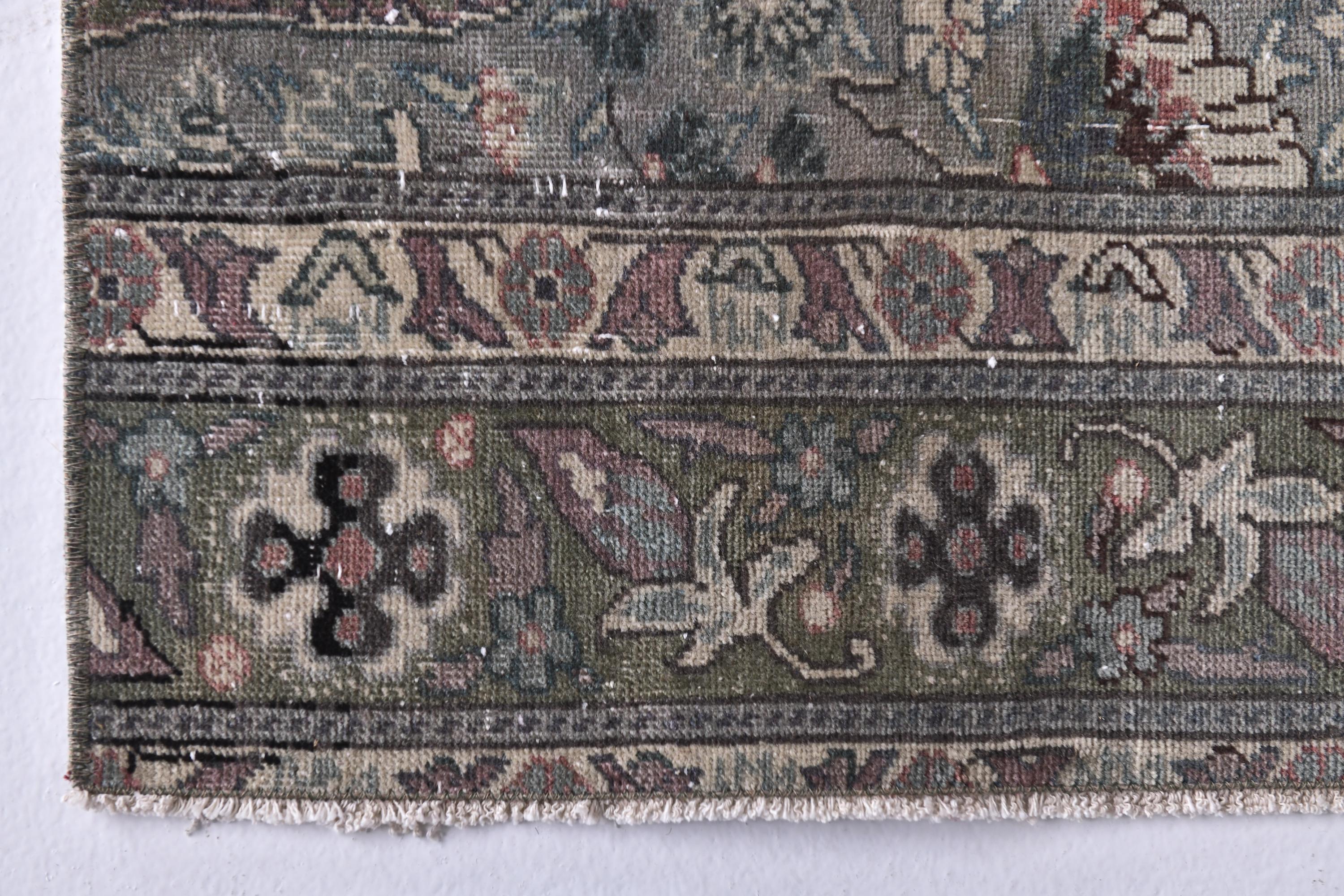 📜📌 Close-up detail of an antique-style Persian style rug showing complex paisley patterns and floral medallions. The carpet features a rich color palette of olive green, cream, rust, and dark accents with fine knotting and traditional Middle Eastern craftsmanship.