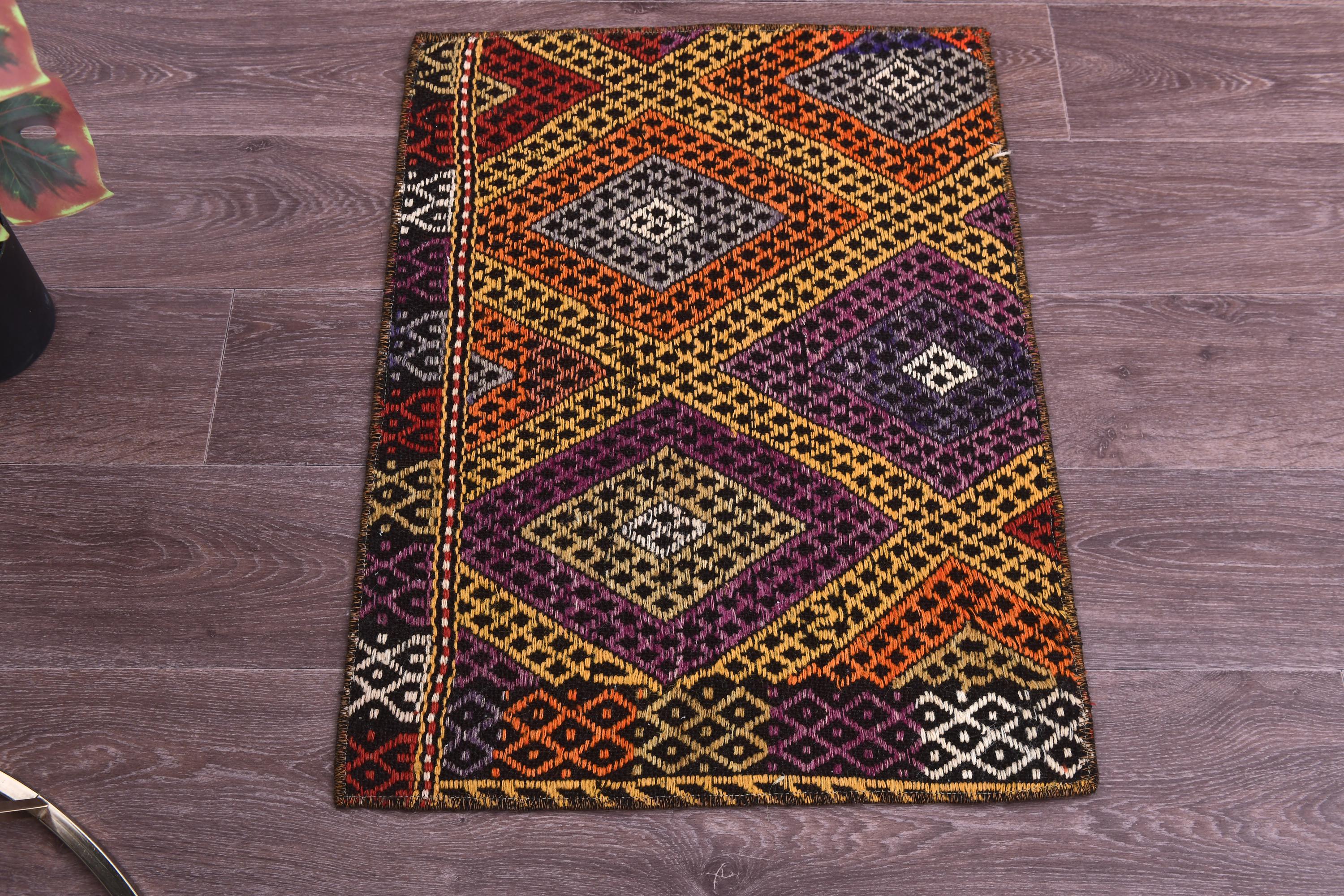 2x2 Vintage Square Doormat Rug, Salmon Gold Purple Color, 2x2 Doormat Rug, 2x2 Rug, 2x2 Vintage Rug, Bedroom Rug, Accent Rug, Antique