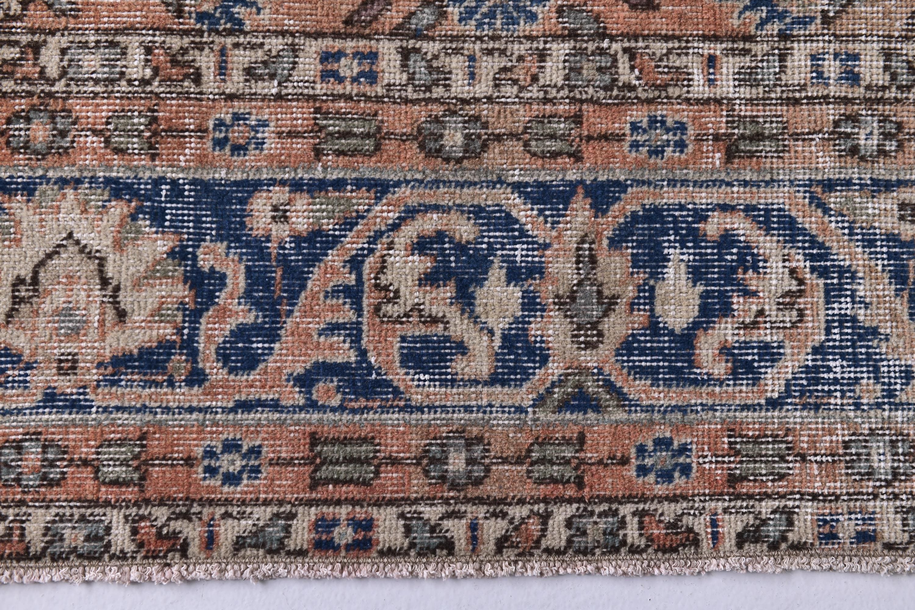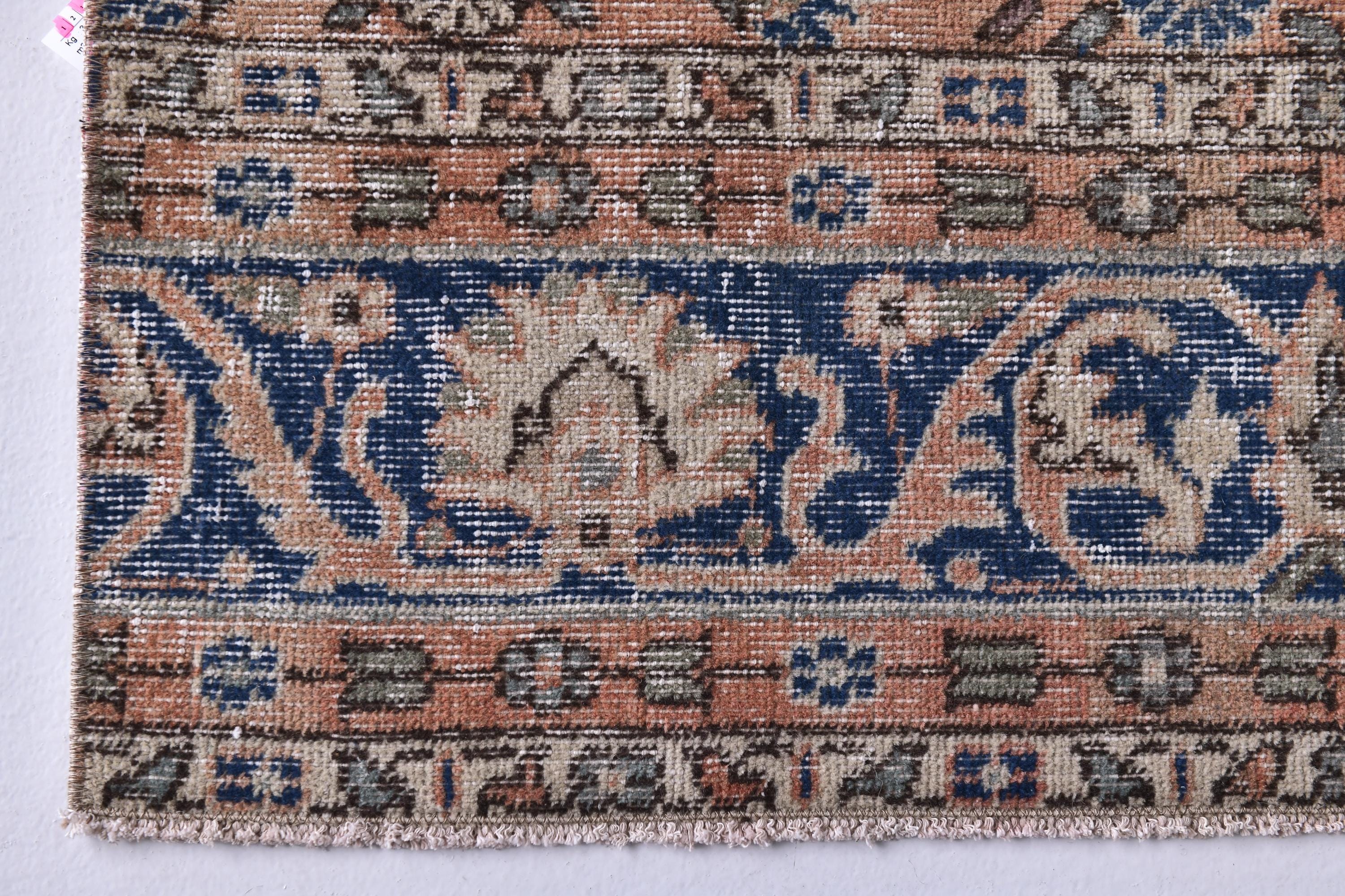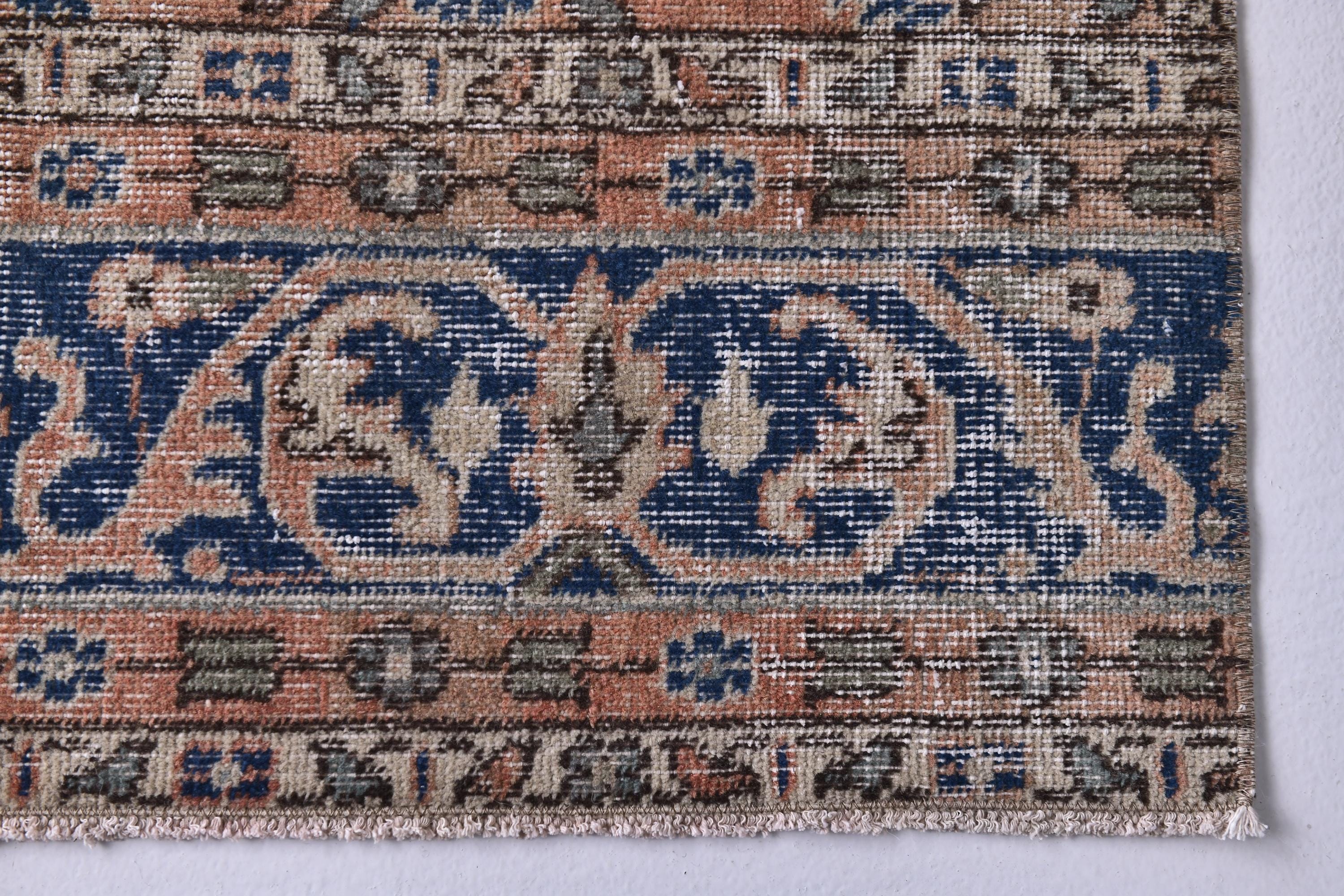📜📌 Vintage distressed runner rug featuring coral pink center field with navy blue and cream accents in traditional Persian design, measuring 6.12x2.7 feet, perfect for hallways, kitchens and bohemian home styling with beautiful aged patina.