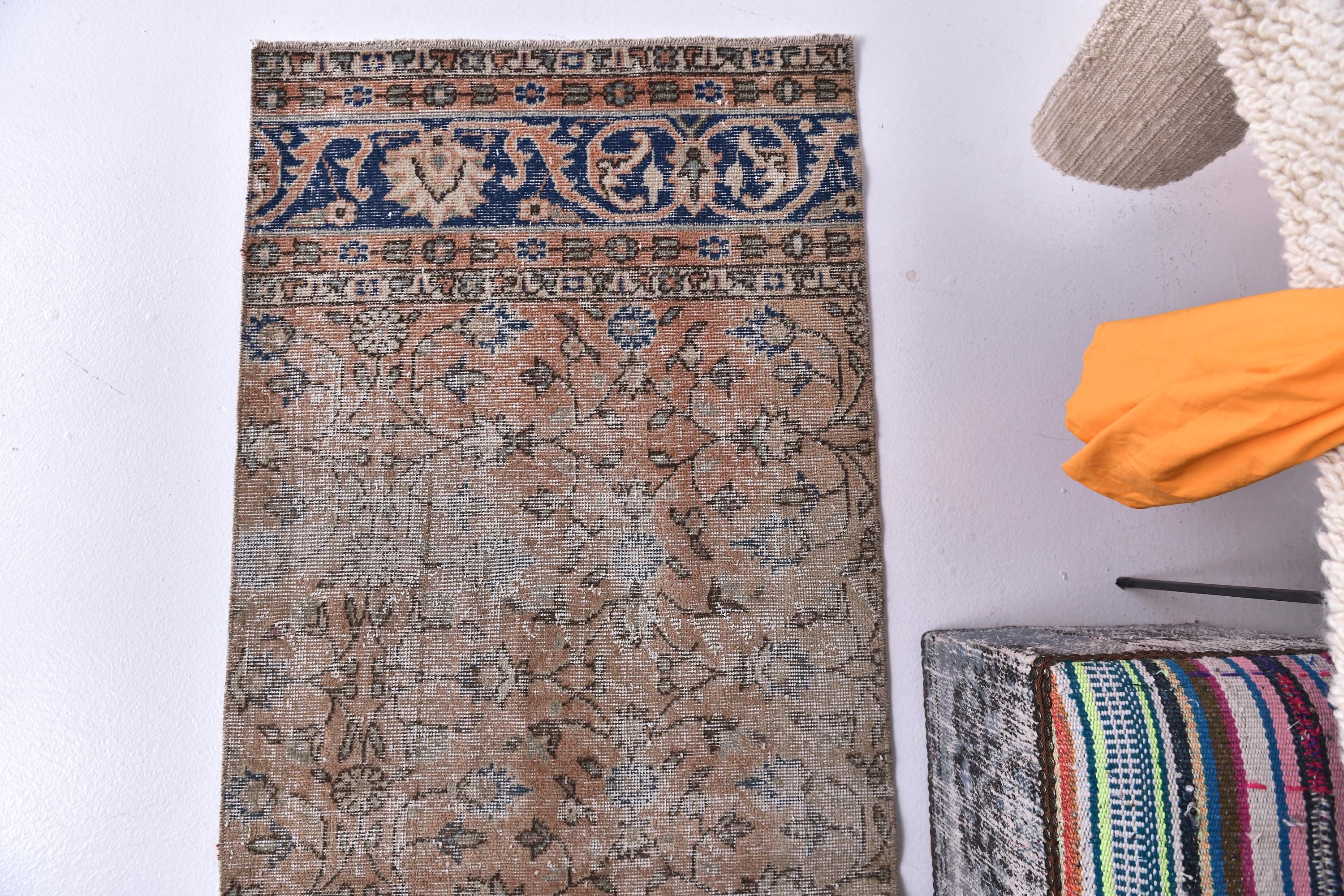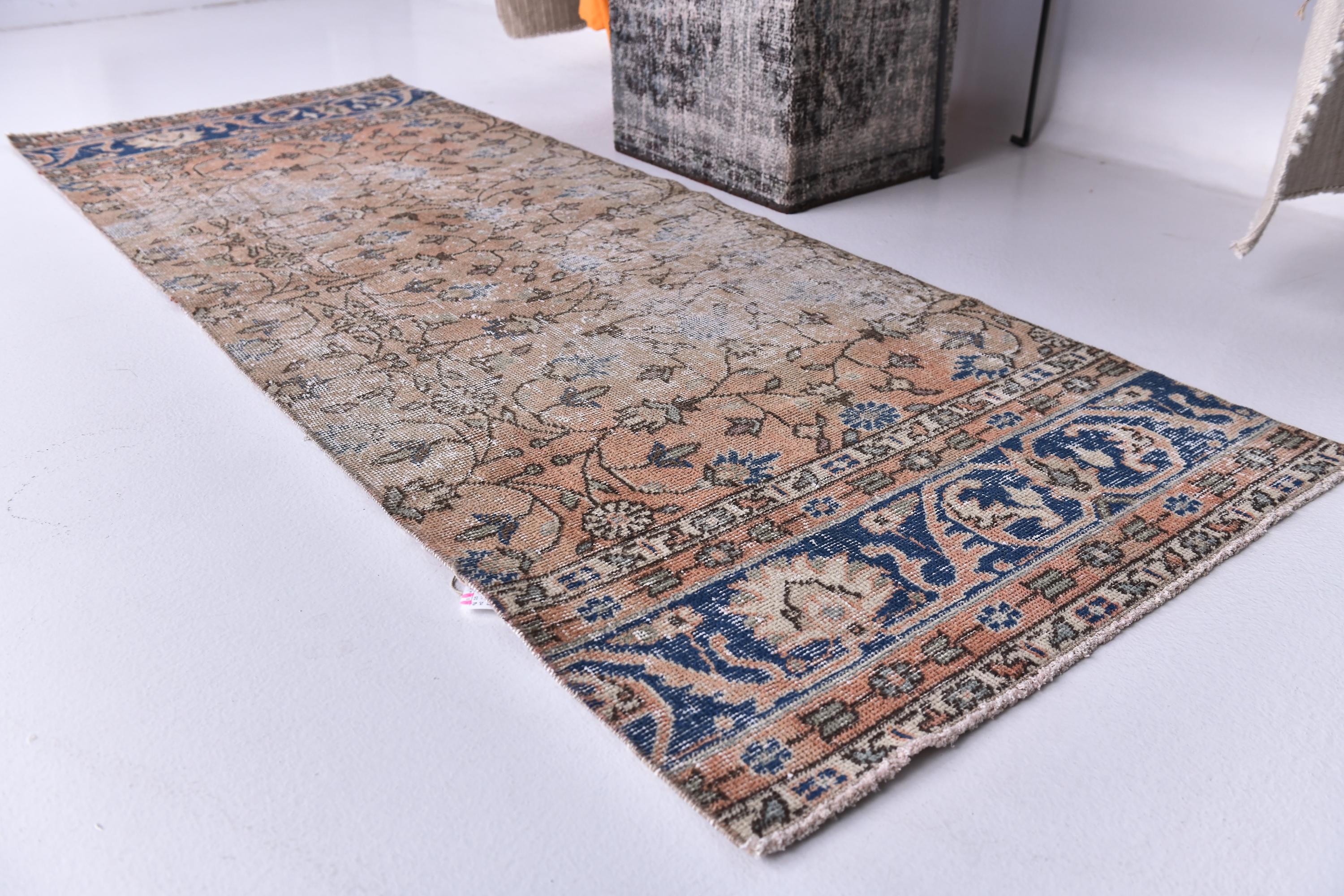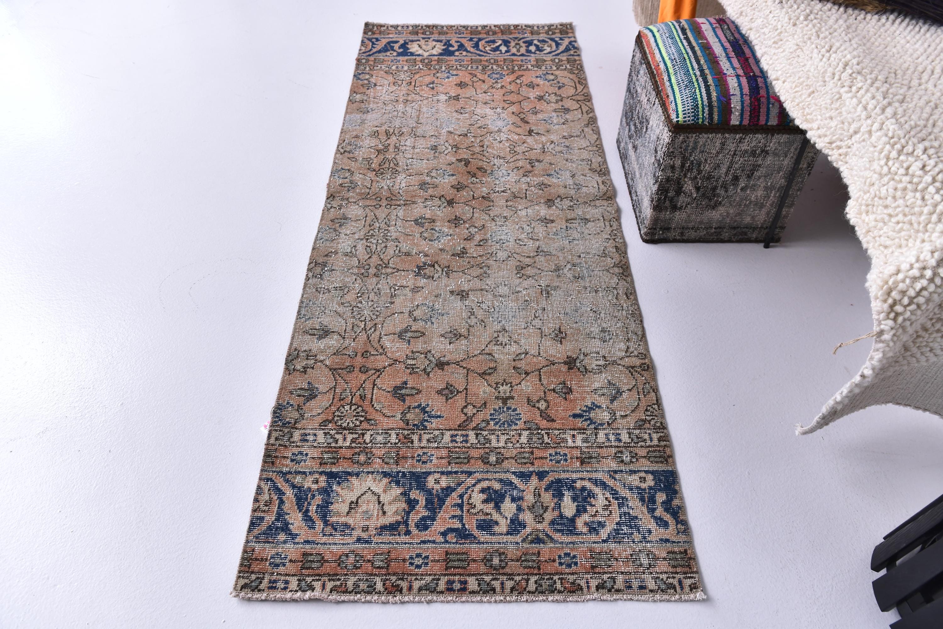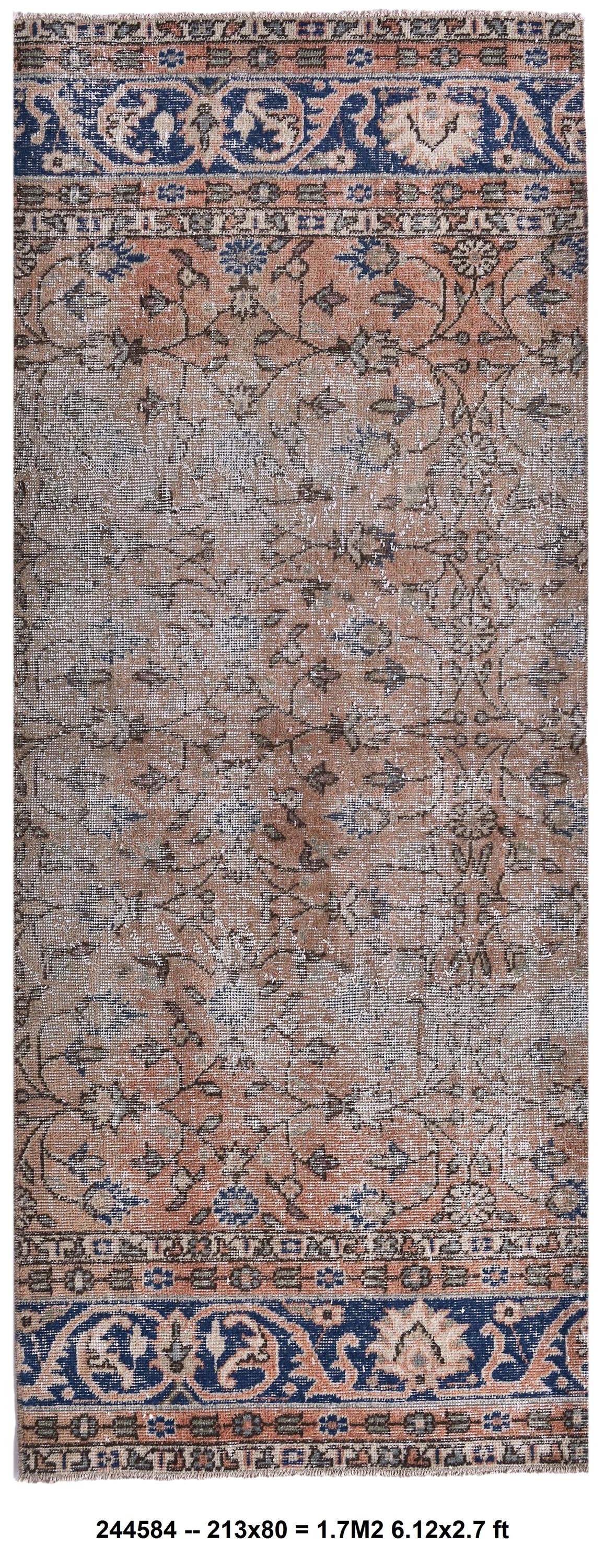 📜📌 Vintage distressed runner rug featuring coral pink center field with navy blue and cream accents in traditional Persian design, measuring 6.12x2.7 feet, perfect for hallways, kitchens and bohemian home styling with beautiful aged patina.